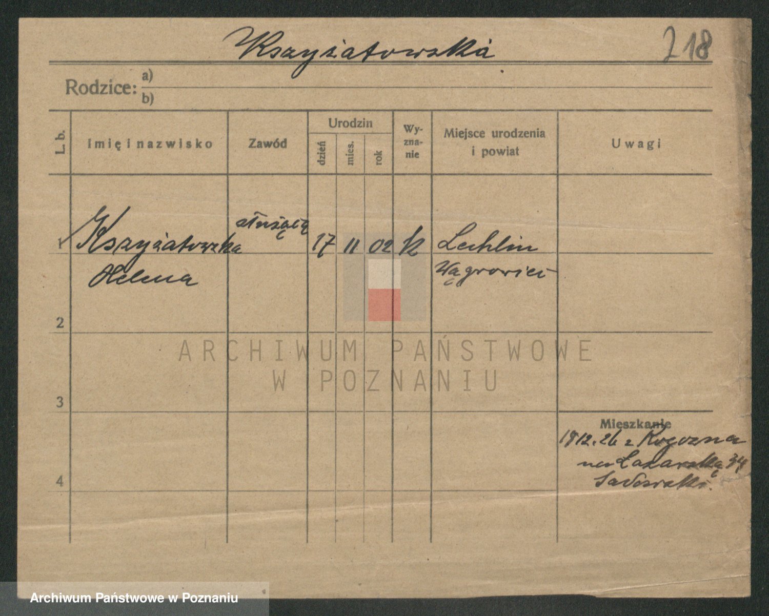 Krzyzankiewicz z d. Palacz, Helena
