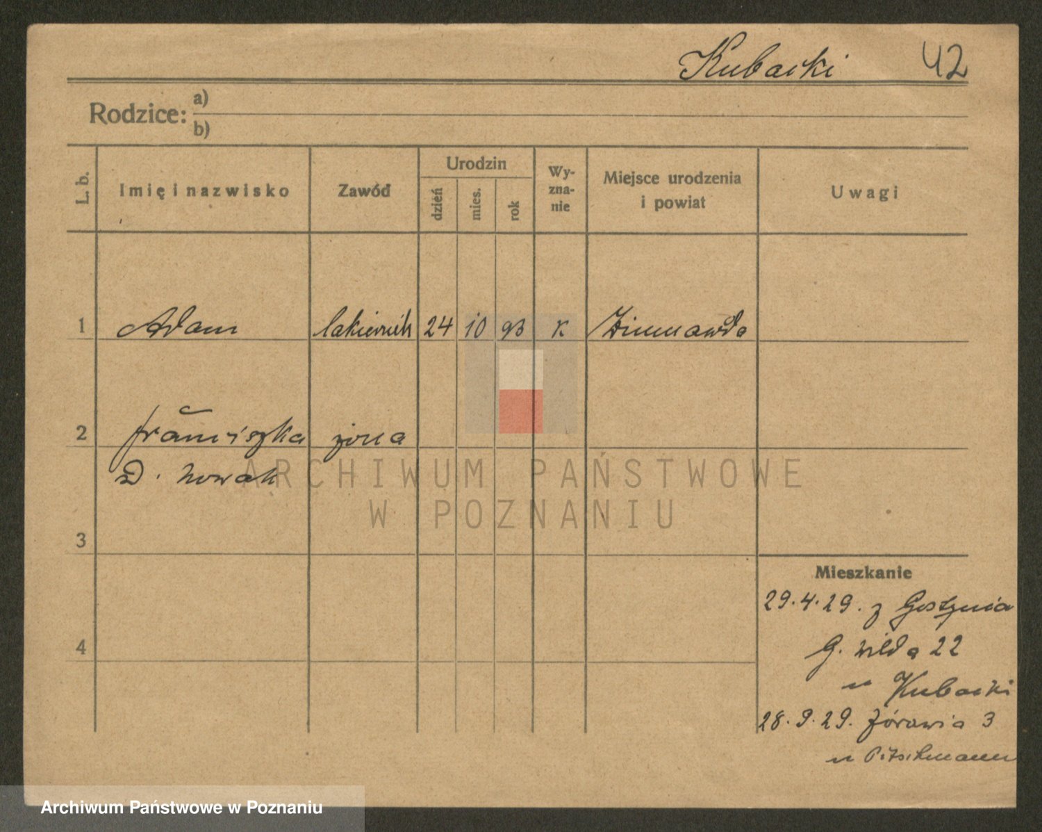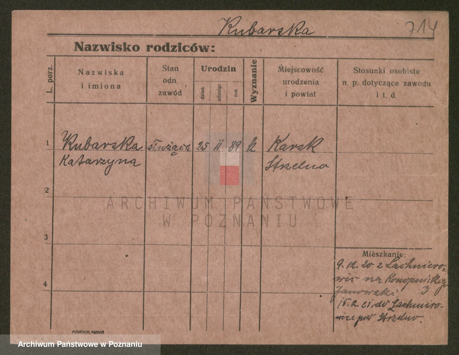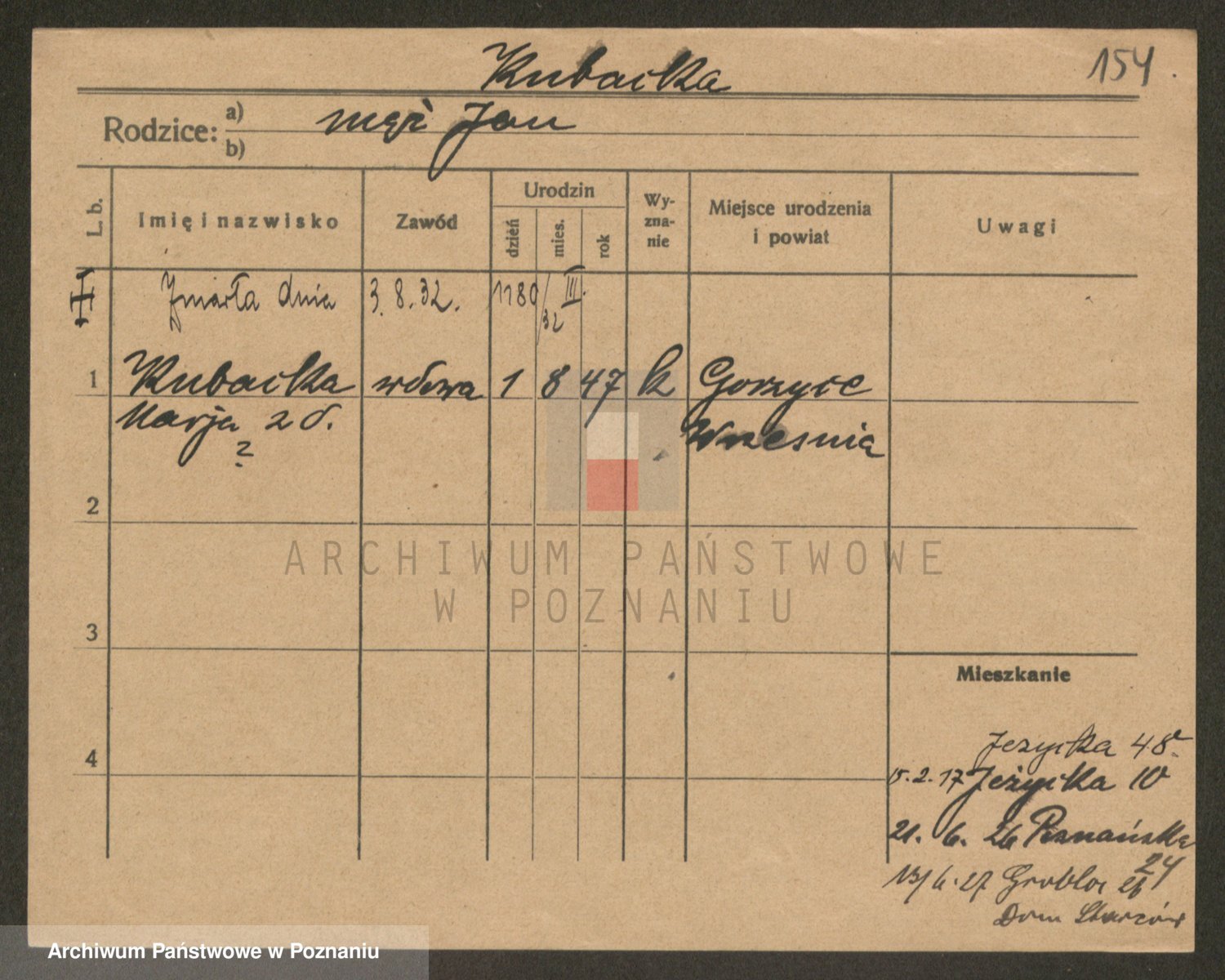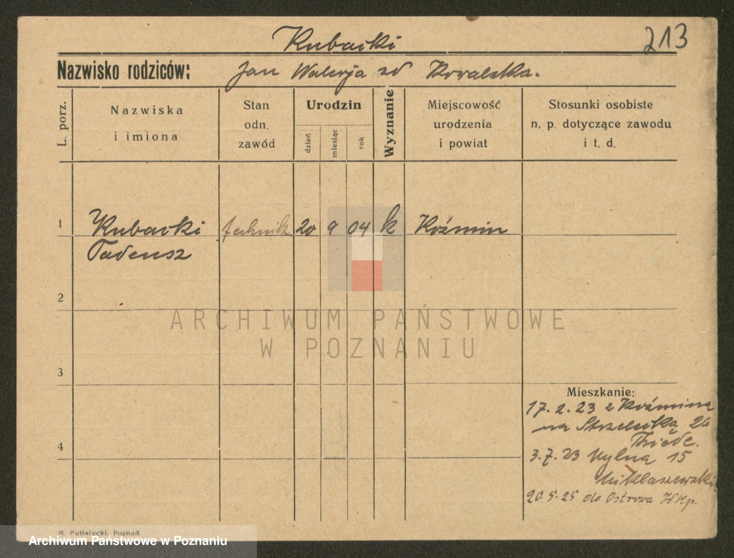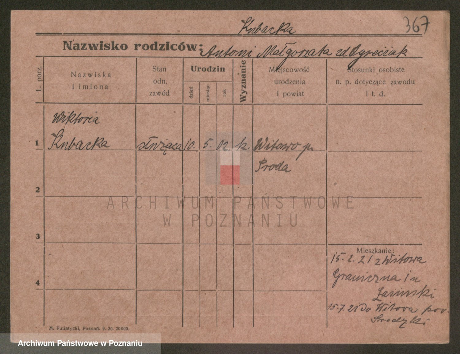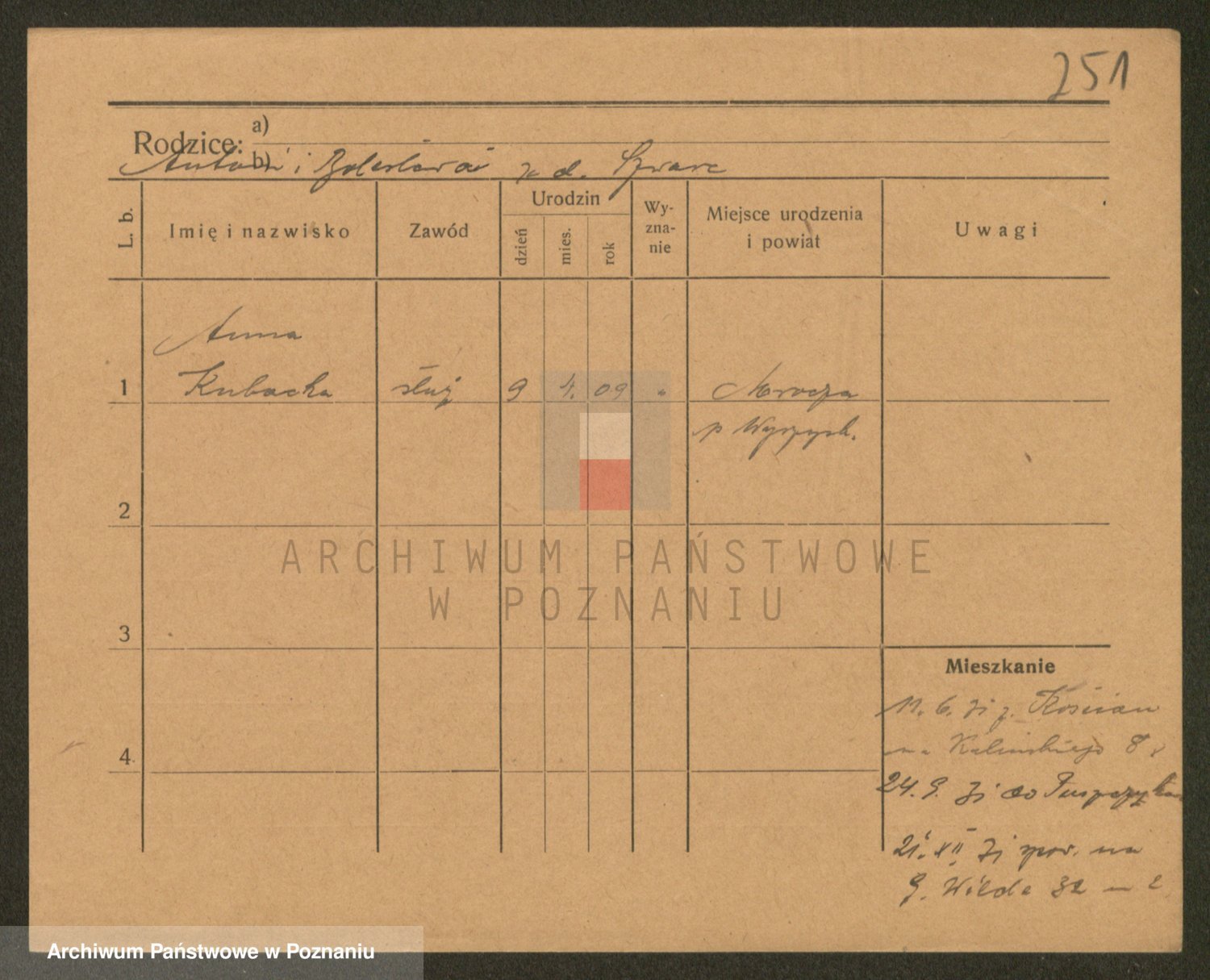 Podgląd karty osobowej dostępny jest po kliknięciu na nazwisko lub ikonkę karty. Można dokonywać powiększenia (ikony na górze) lub przechodzić między kolejnymi skanami (strzałki po bokach).