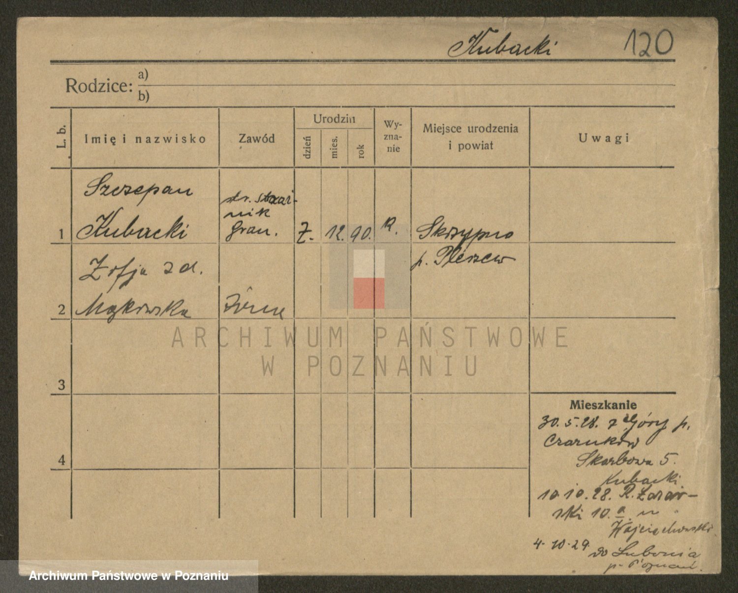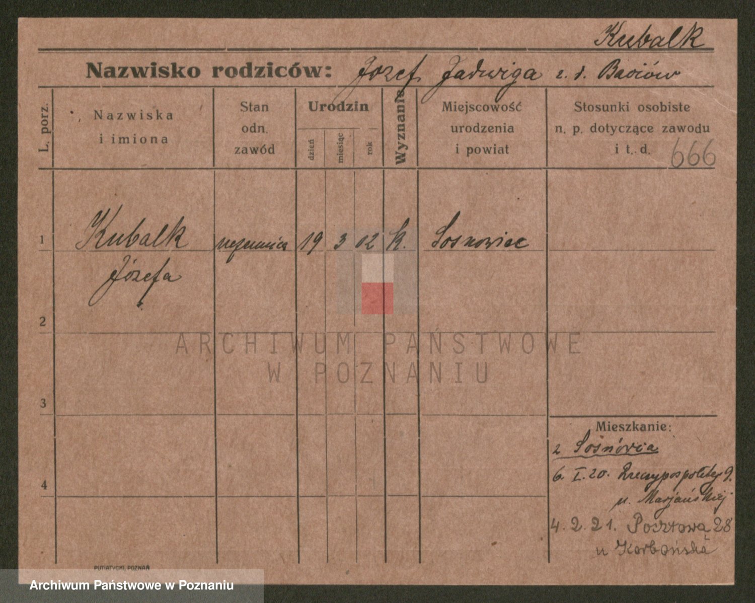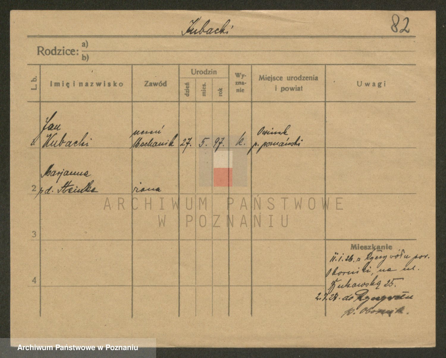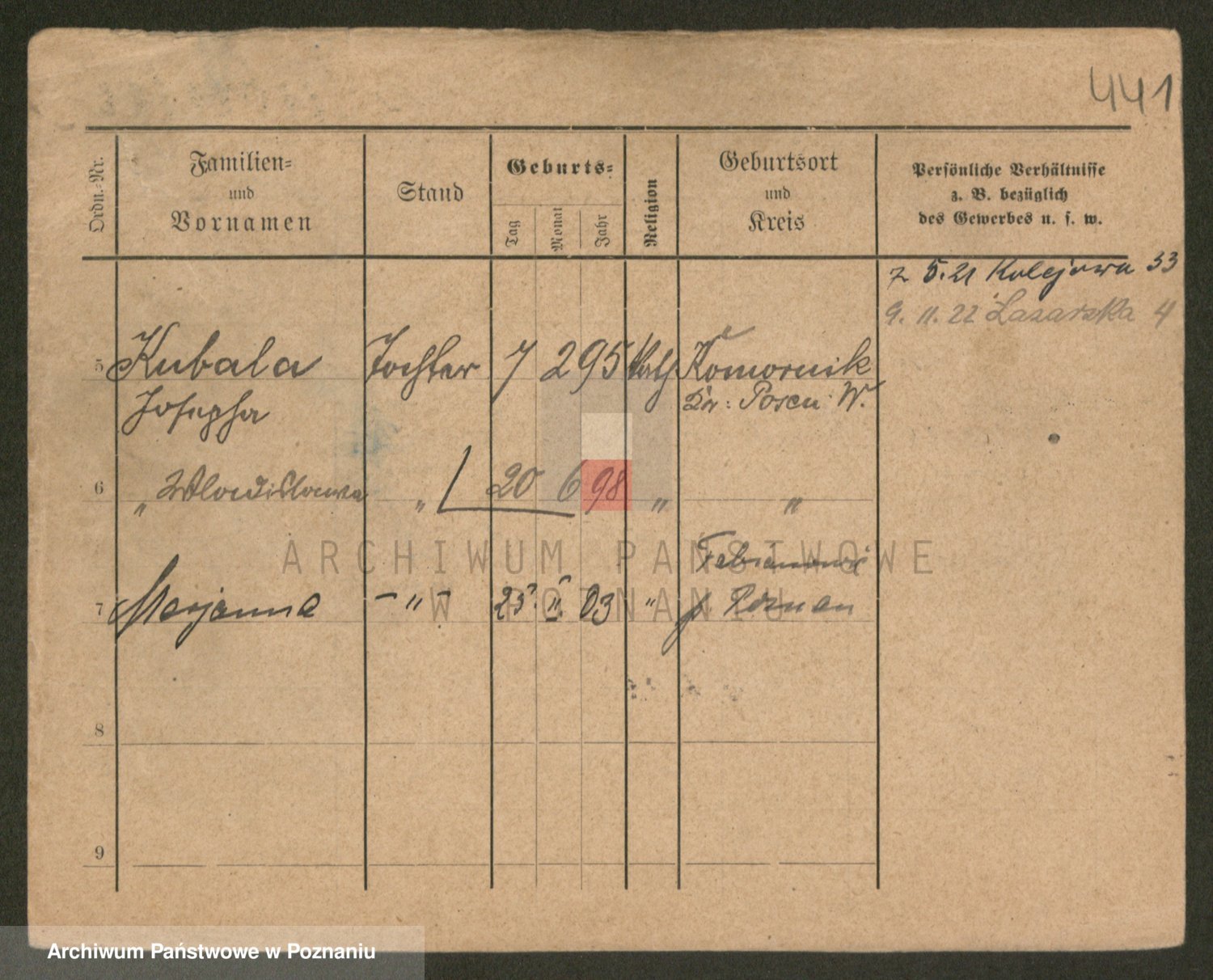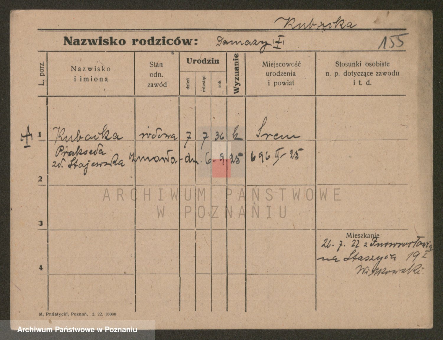 Podgląd karty osobowej dostępny jest po kliknięciu na nazwisko lub ikonkę karty. Można dokonywać powiększenia (ikony na górze) lub przechodzić między kolejnymi skanami (strzałki po bokach).