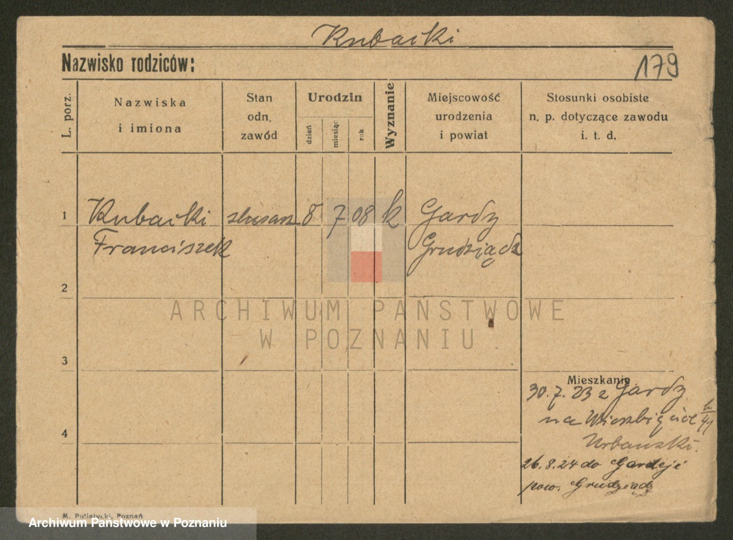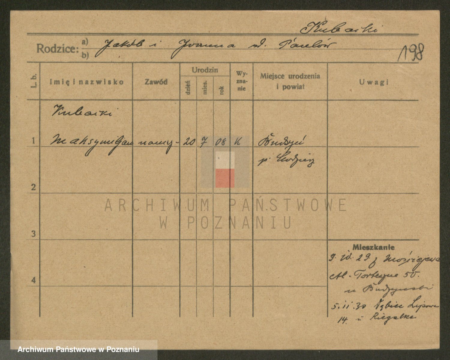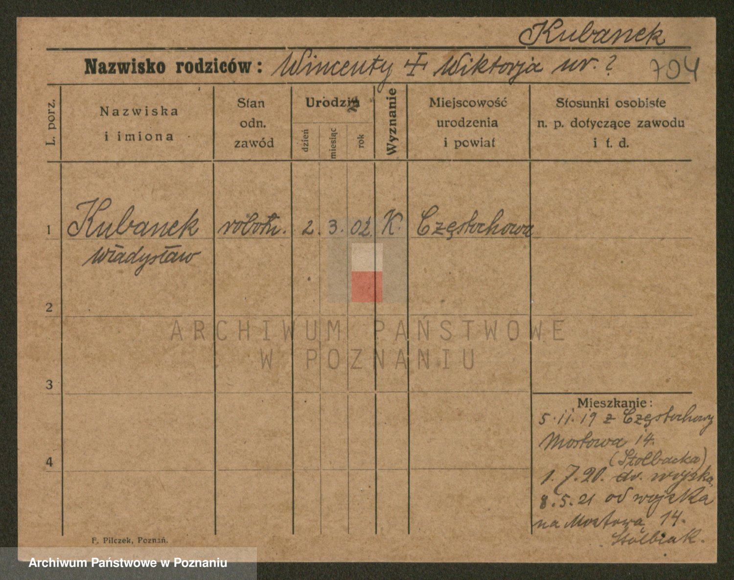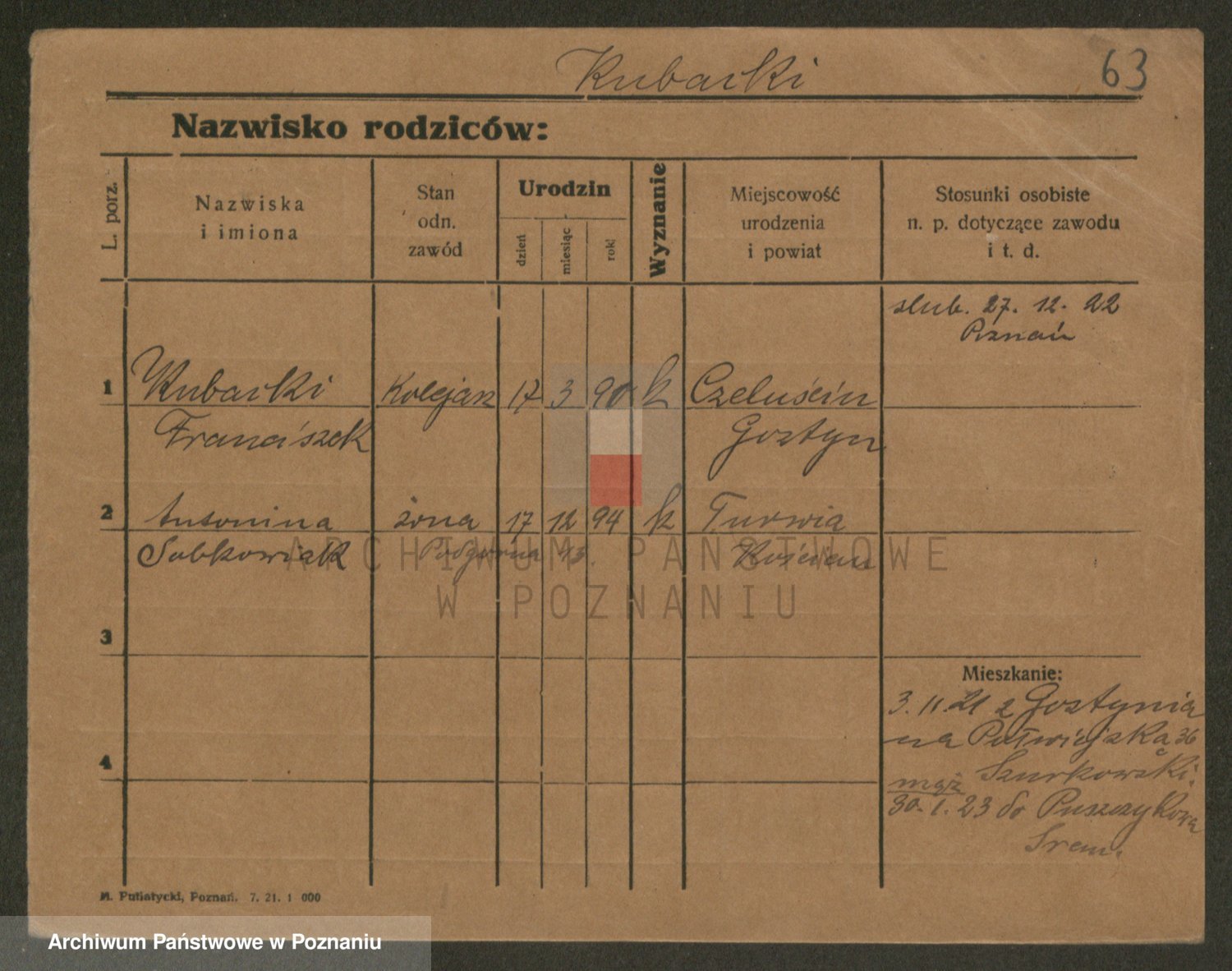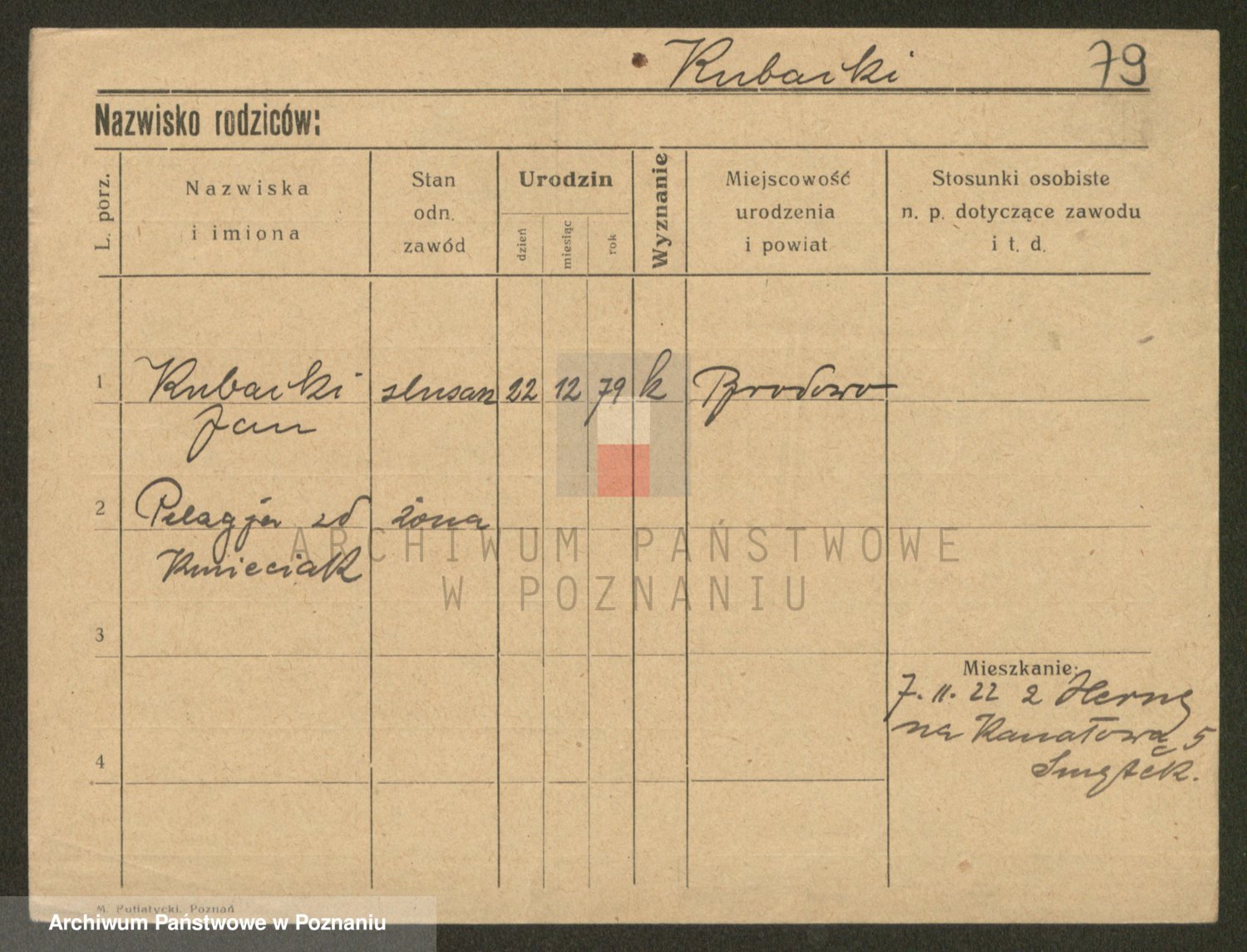 Podgląd karty osobowej dostępny jest po kliknięciu na nazwisko lub ikonkę karty. Można dokonywać powiększenia (ikony na górze) lub przechodzić między kolejnymi skanami (strzałki po bokach).