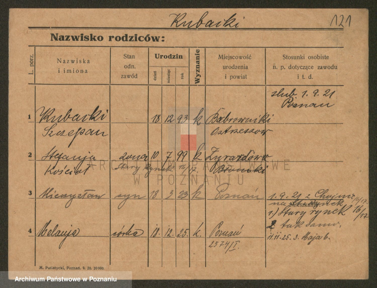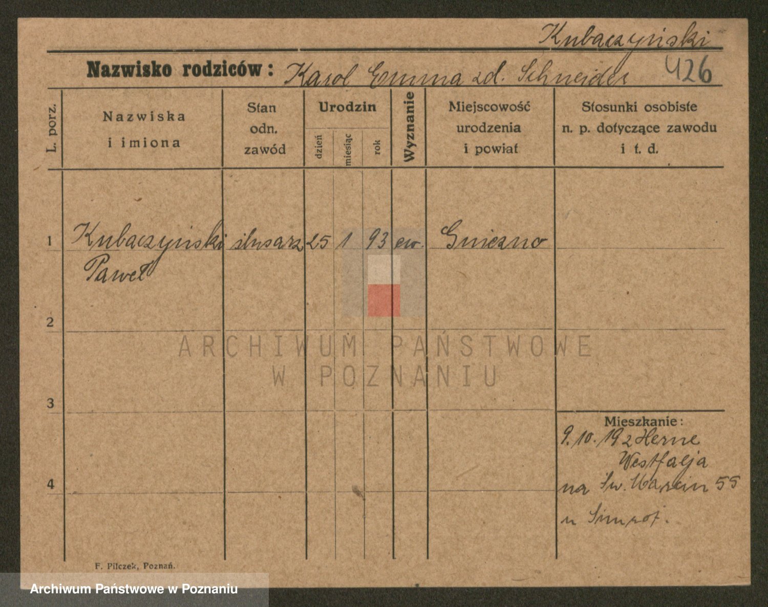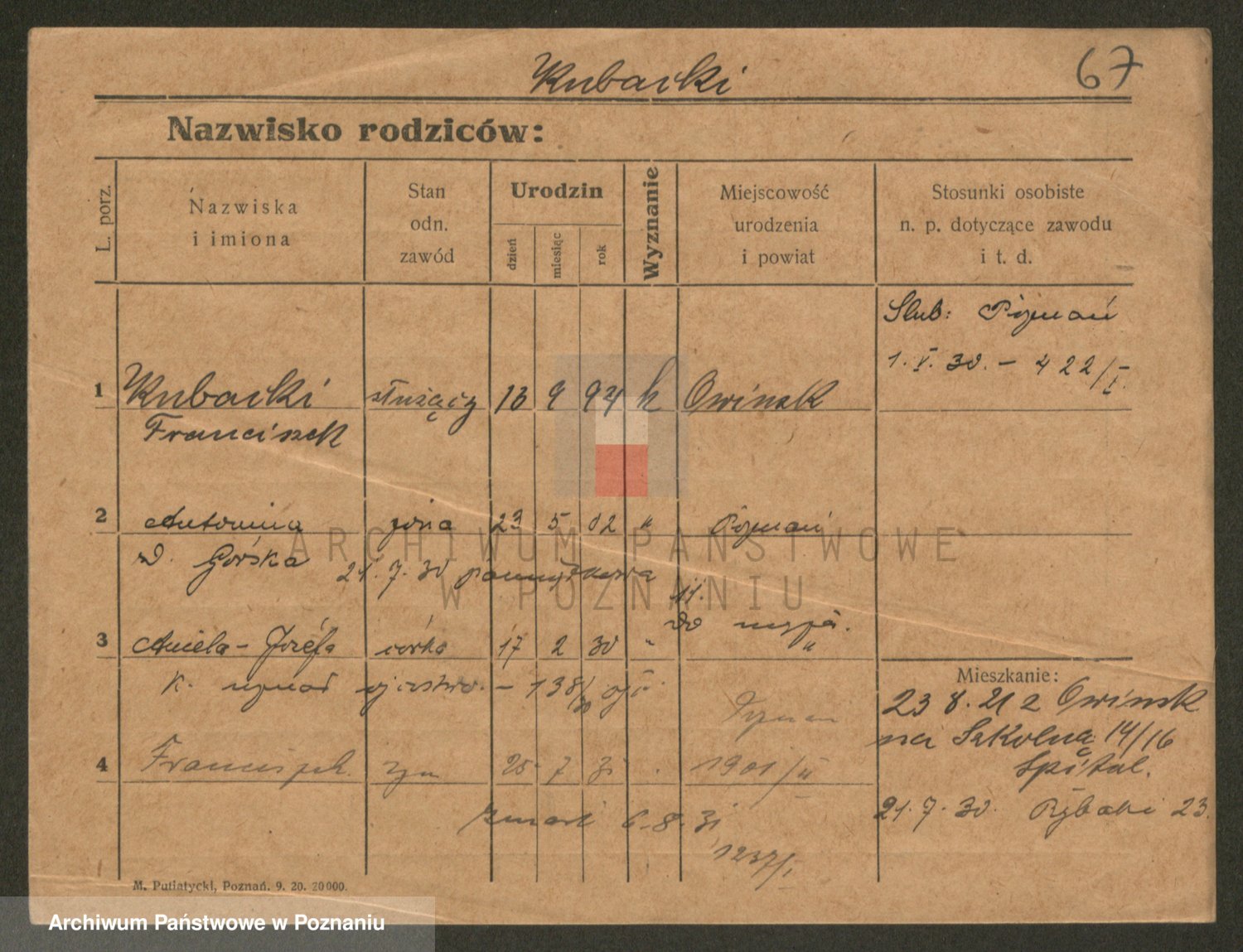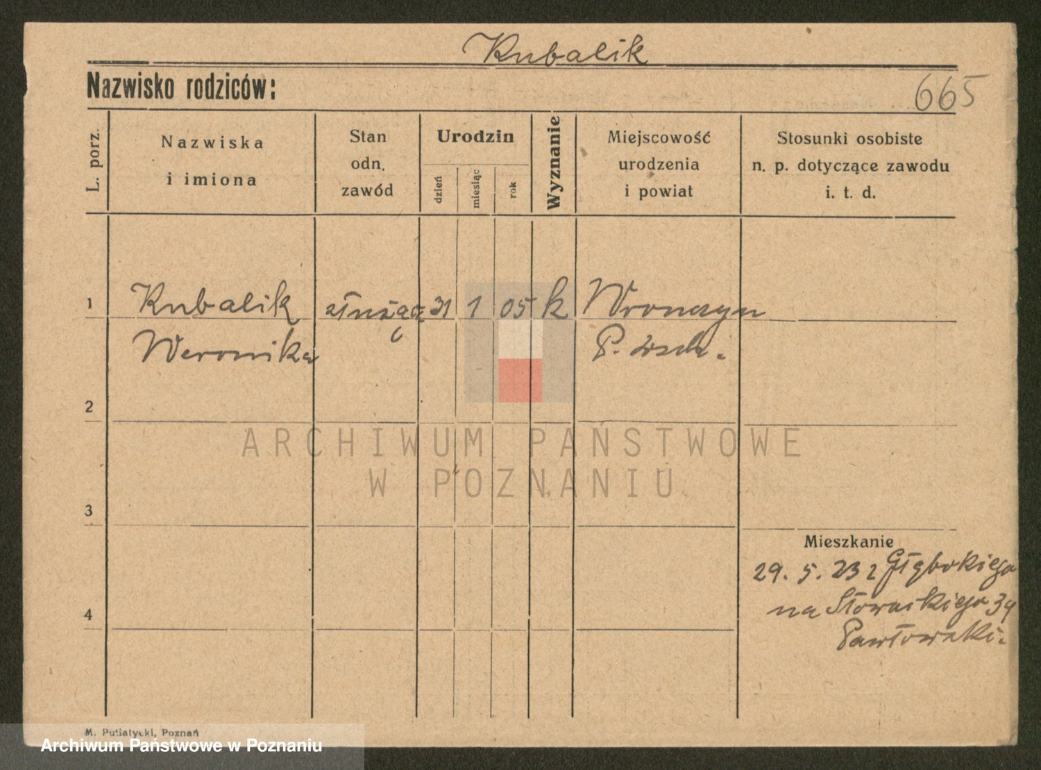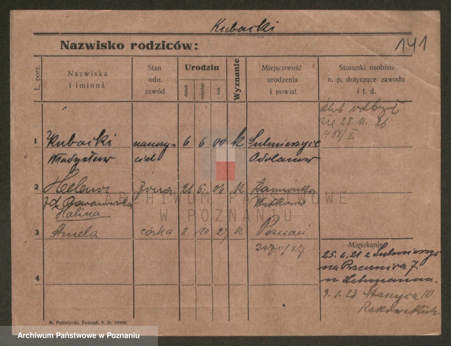 Podgląd karty osobowej dostępny jest po kliknięciu na nazwisko lub ikonkę karty. Można dokonywać powiększenia (ikony na górze) lub przechodzić między kolejnymi skanami (strzałki po bokach).