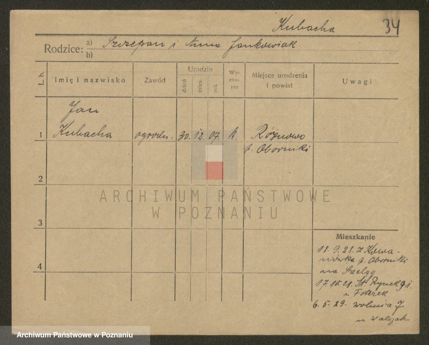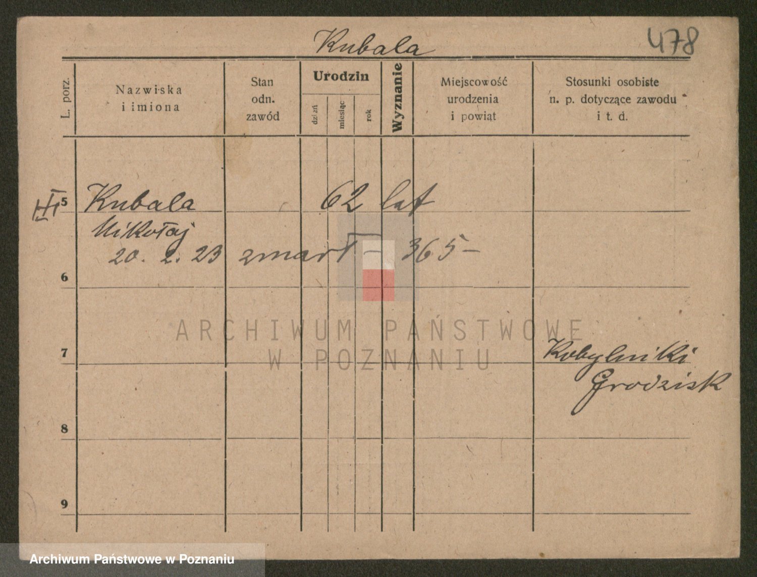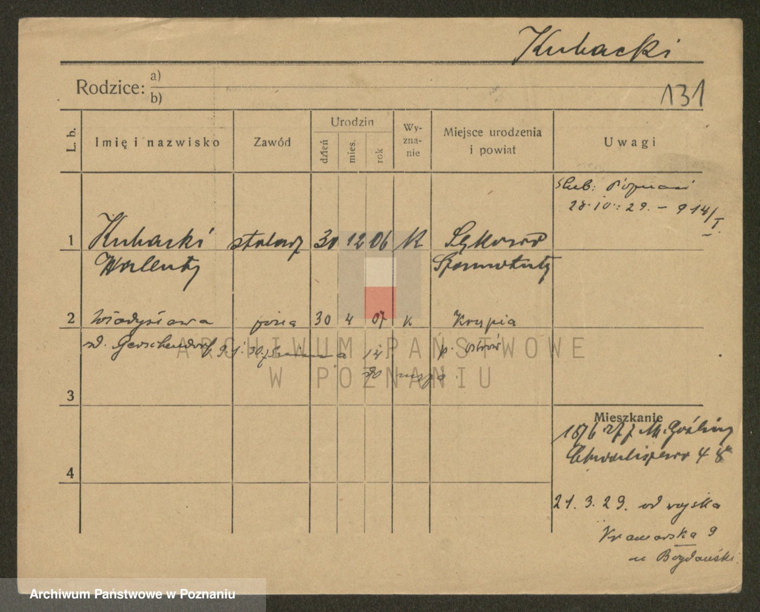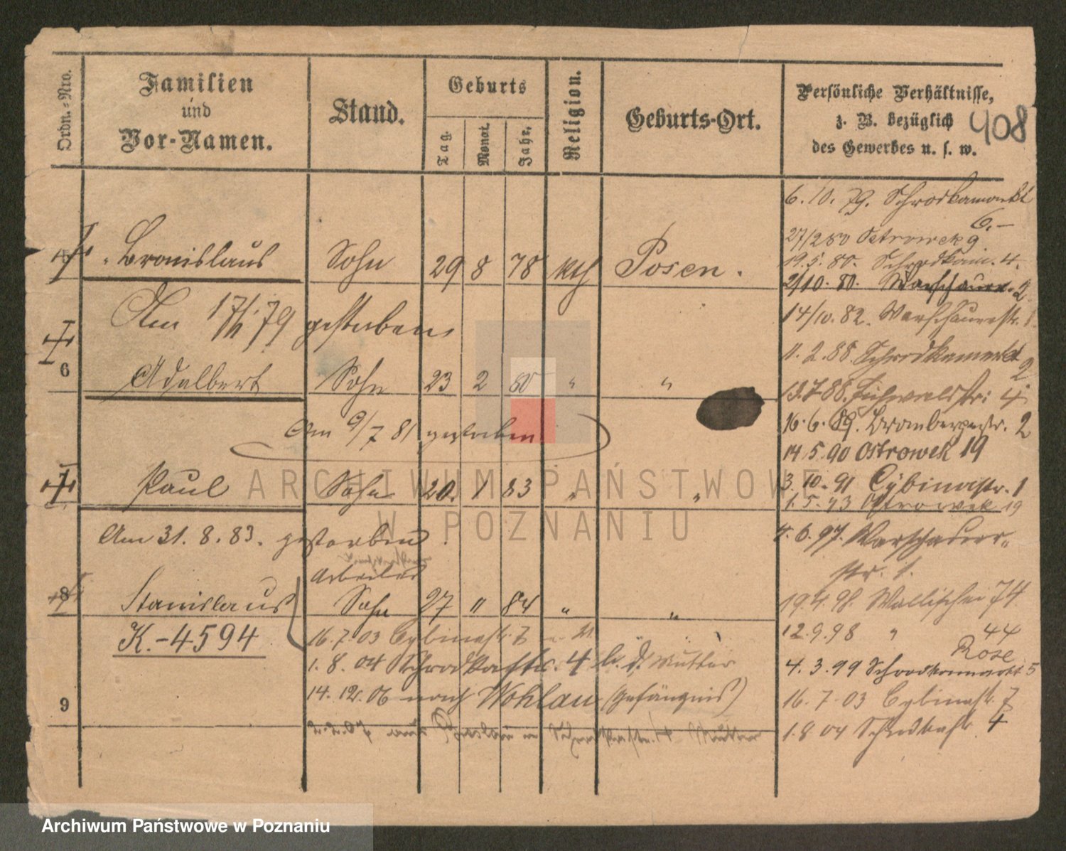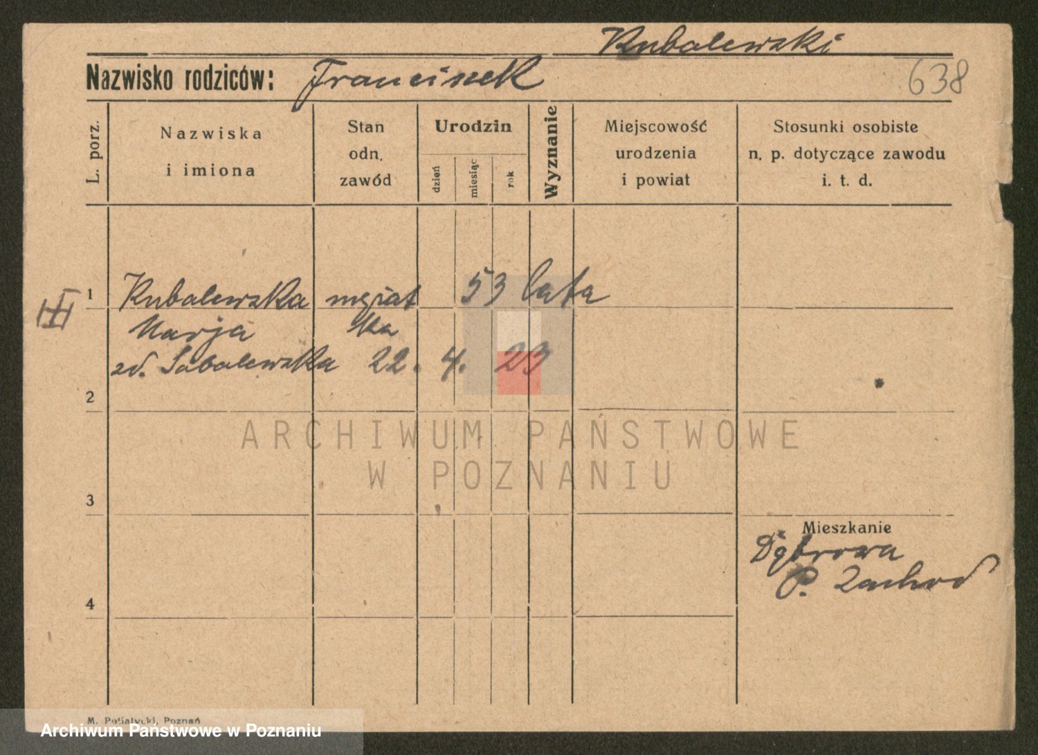 Podgląd karty osobowej dostępny jest po kliknięciu na nazwisko lub ikonkę karty. Można dokonywać powiększenia (ikony na górze) lub przechodzić między kolejnymi skanami (strzałki po bokach).