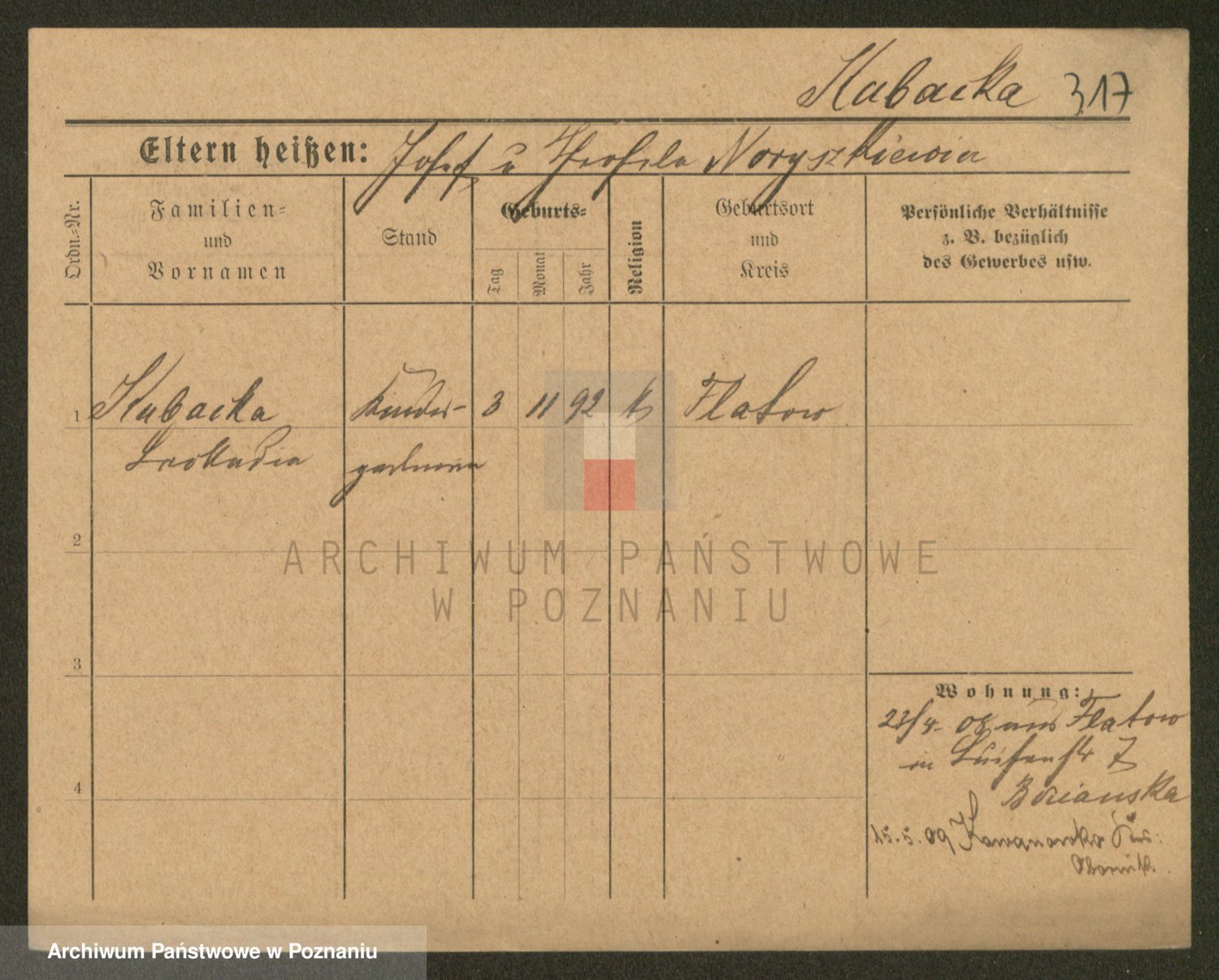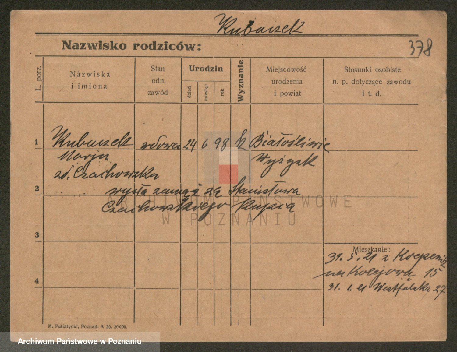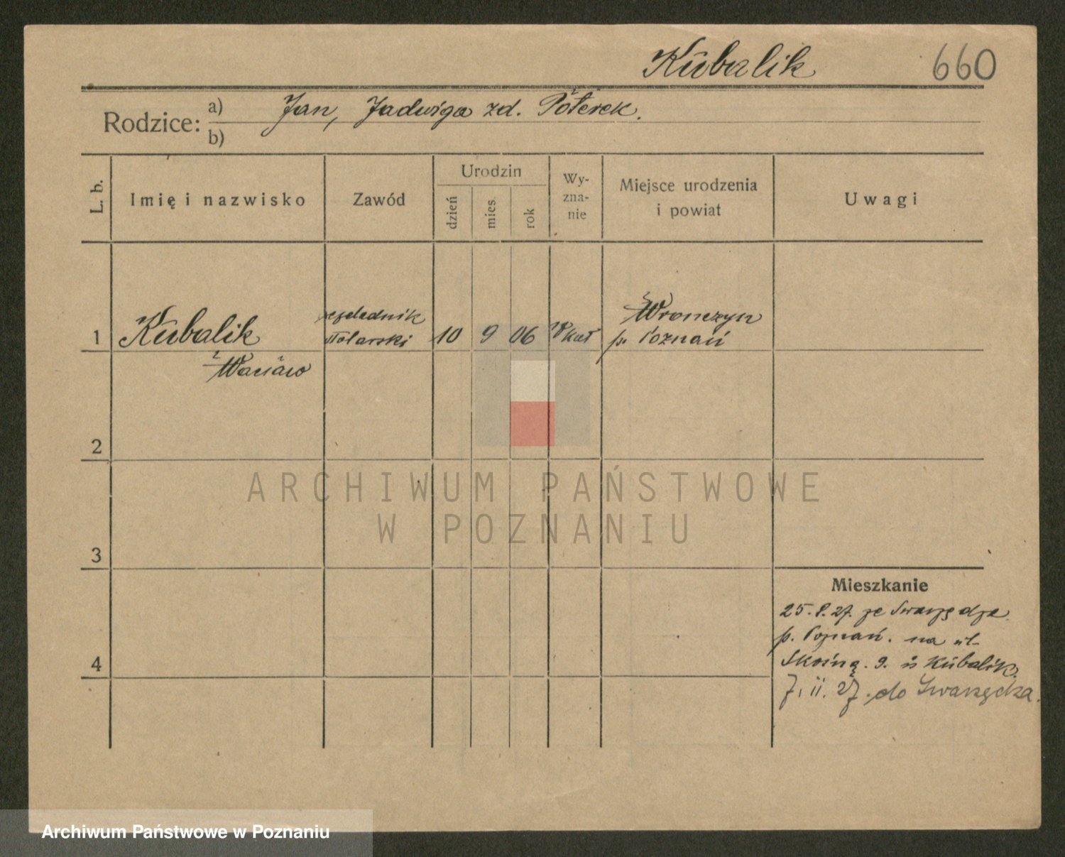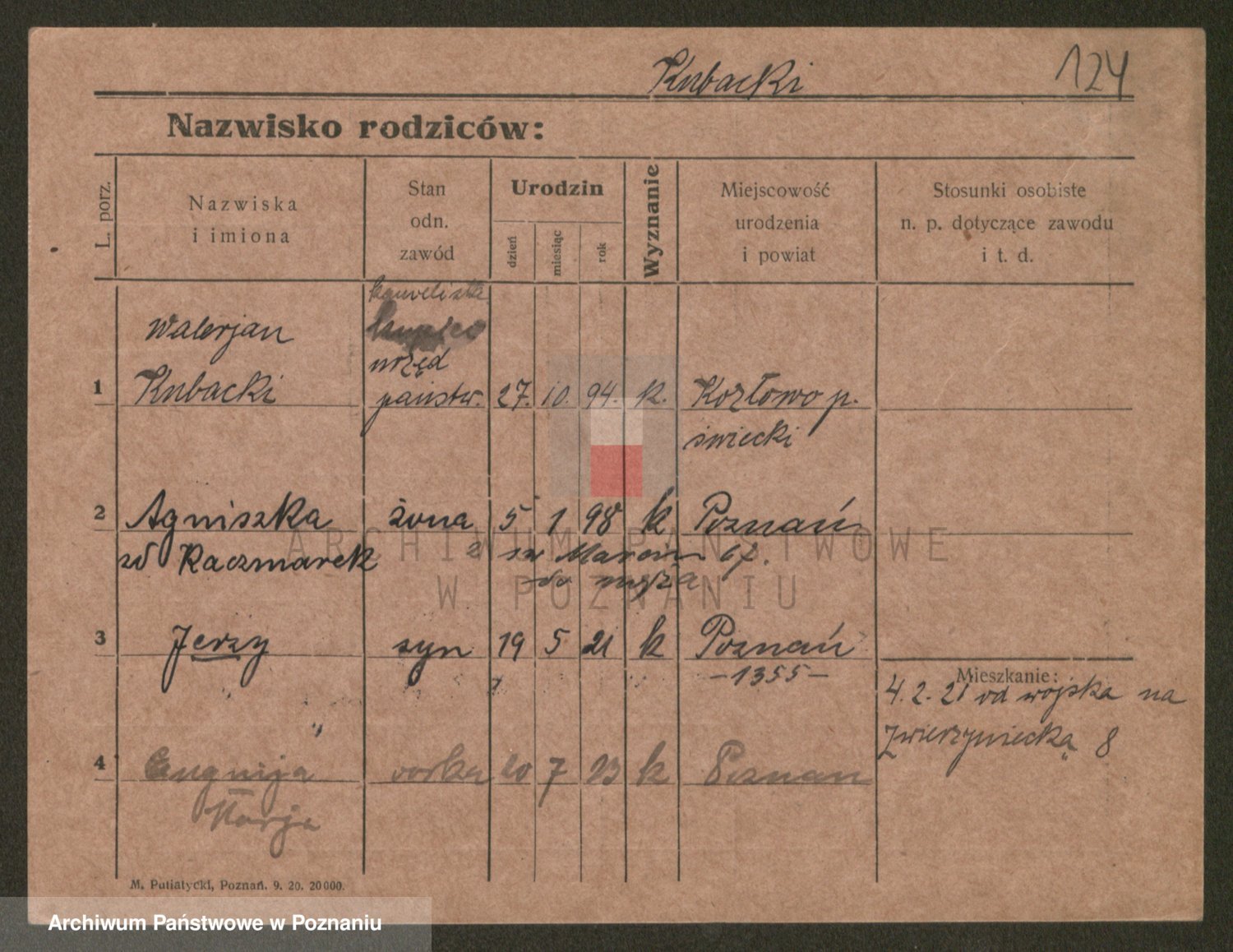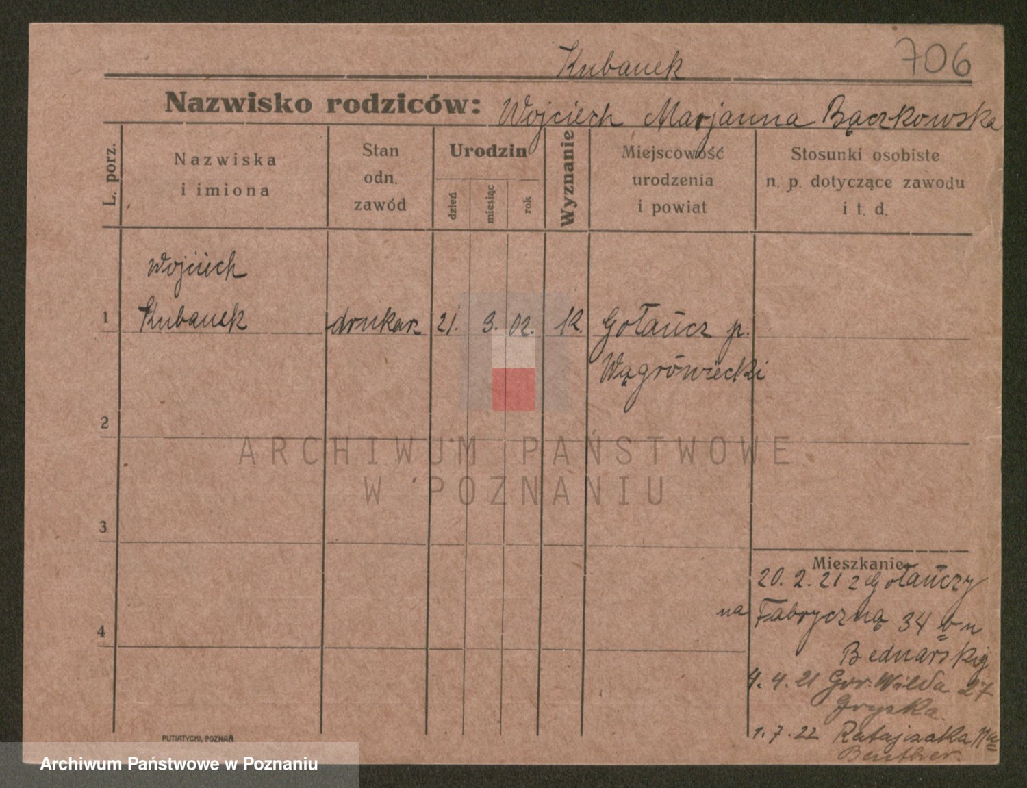 Podgląd karty osobowej dostępny jest po kliknięciu na nazwisko lub ikonkę karty. Można dokonywać powiększenia (ikony na górze) lub przechodzić między kolejnymi skanami (strzałki po bokach).