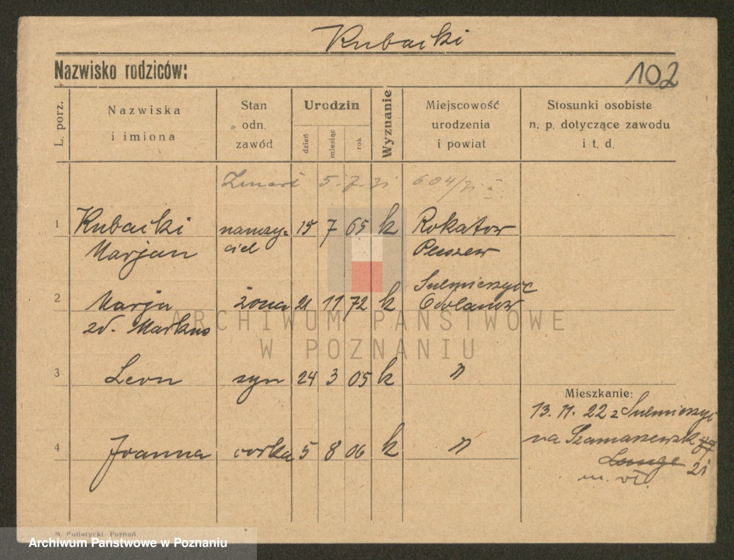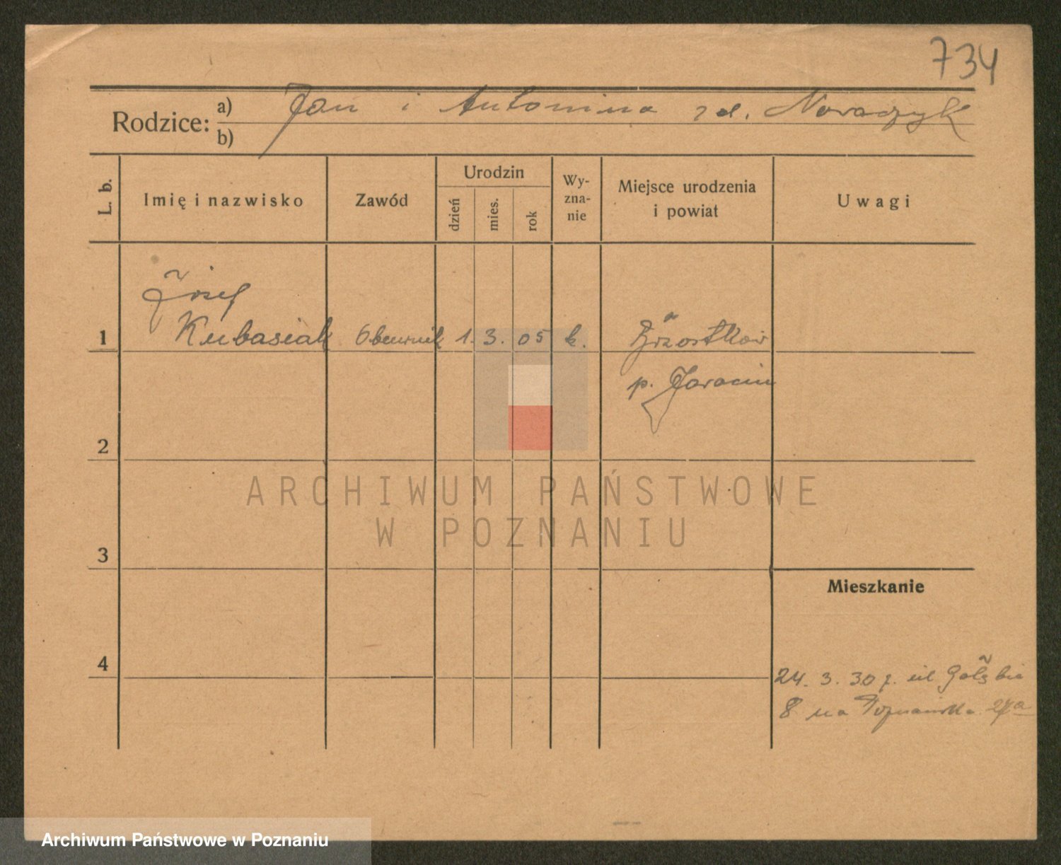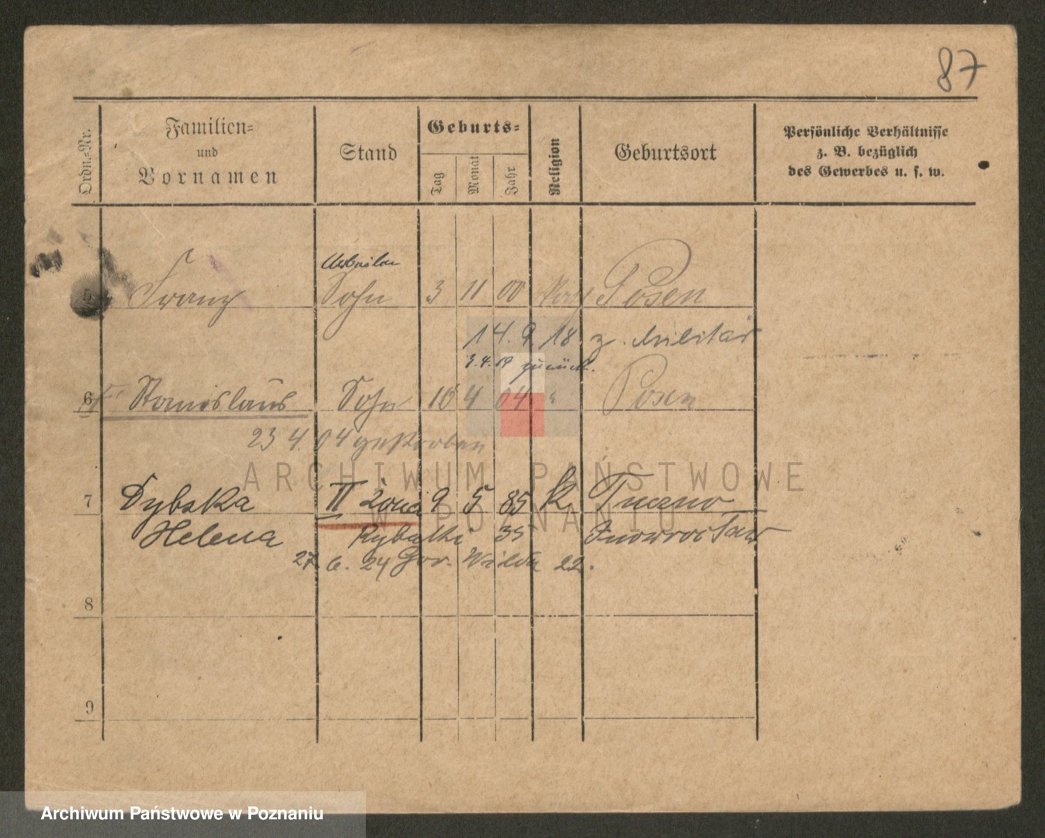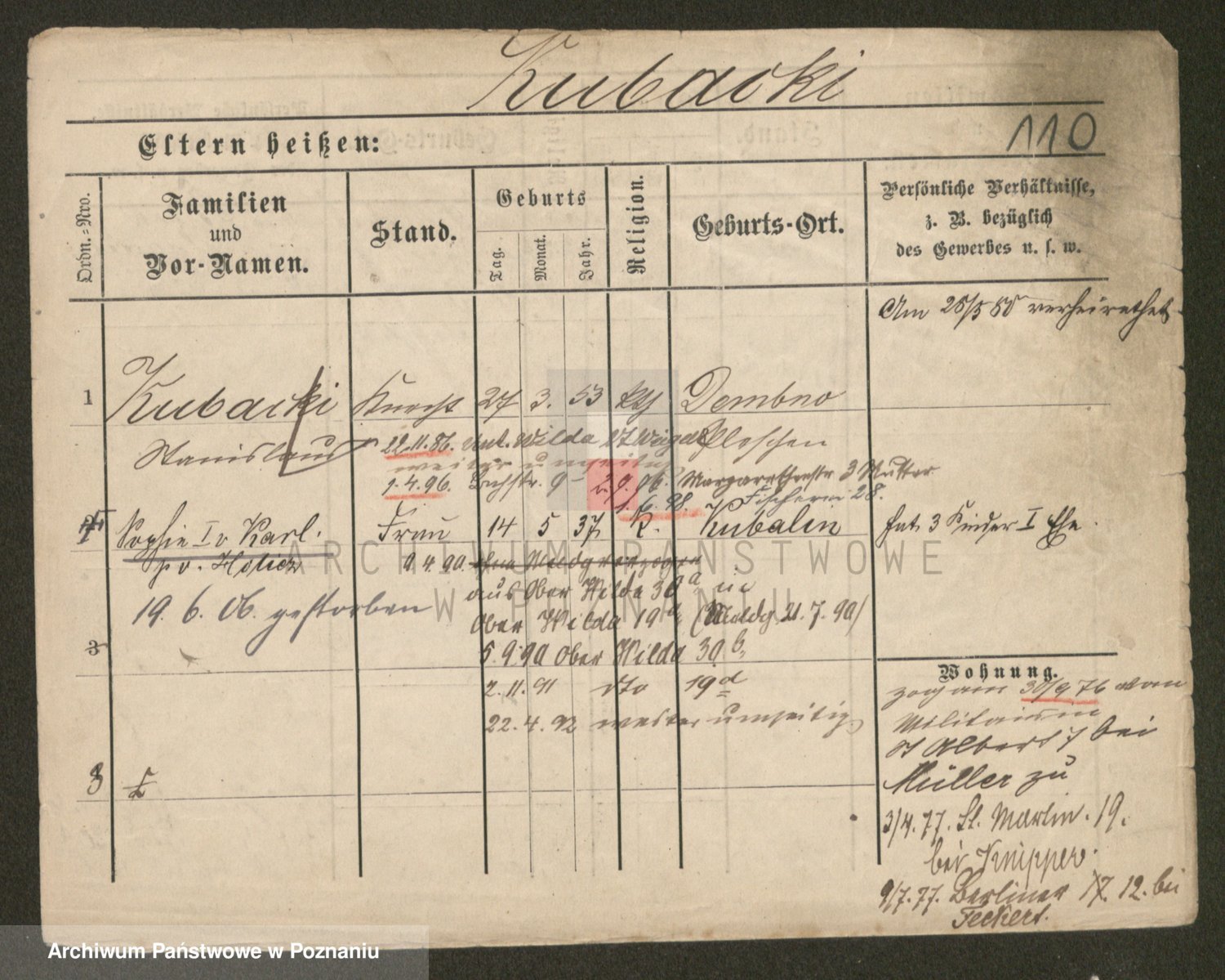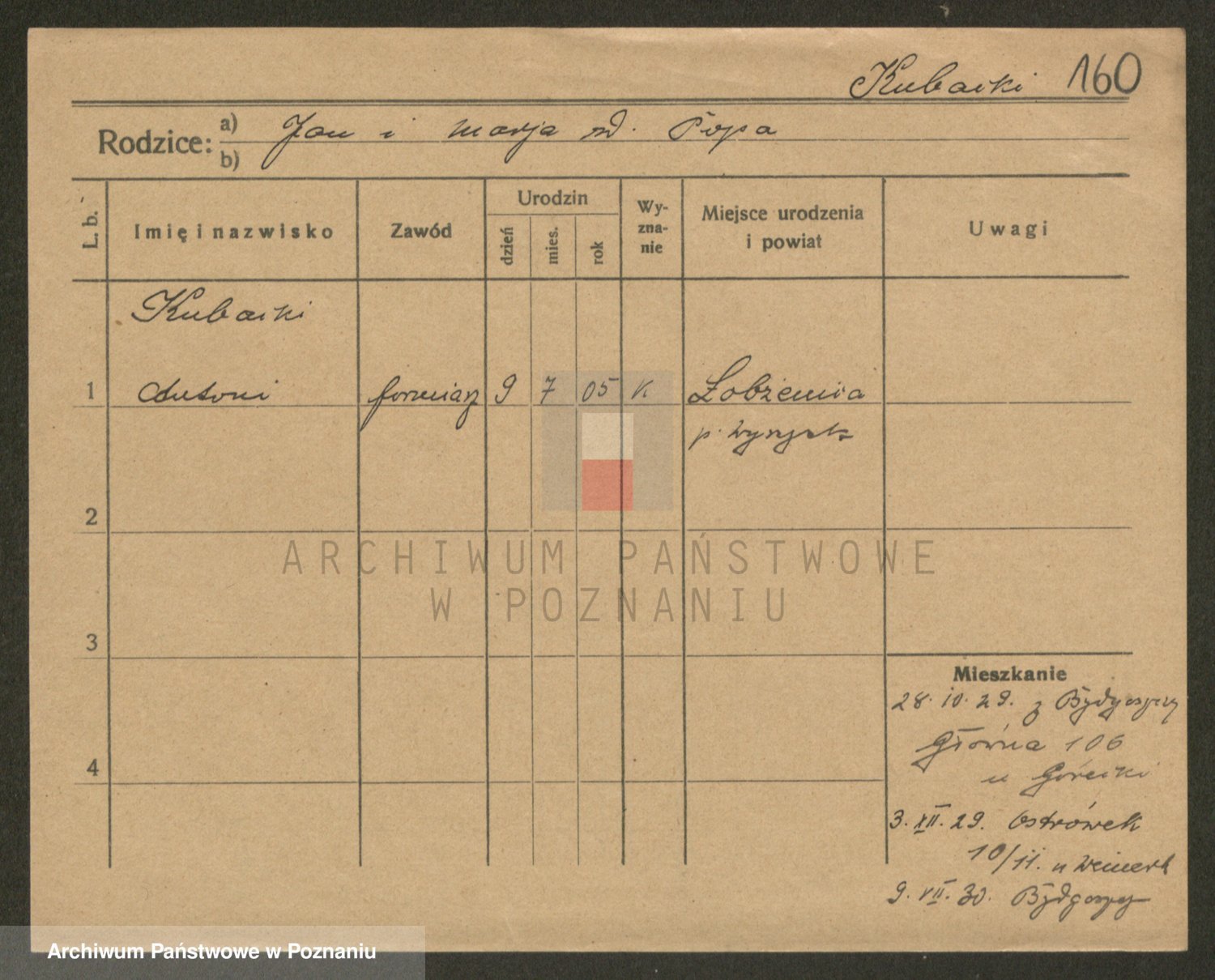 Podgląd karty osobowej dostępny jest po kliknięciu na nazwisko lub ikonkę karty. Można dokonywać powiększenia (ikony na górze) lub przechodzić między kolejnymi skanami (strzałki po bokach).
