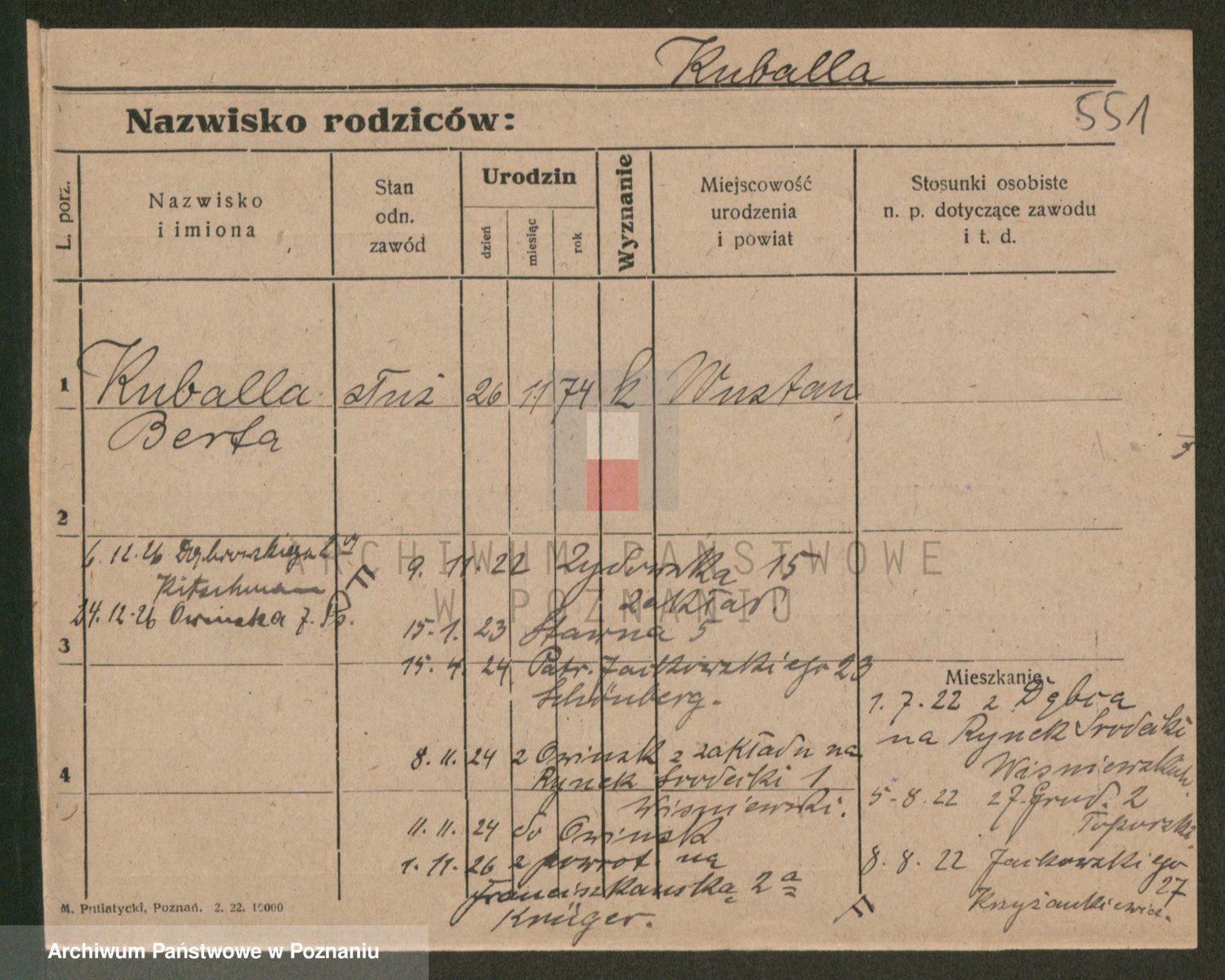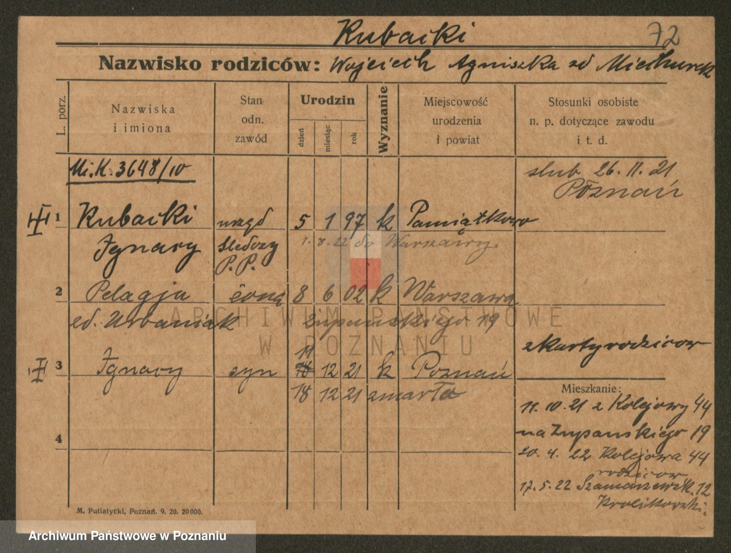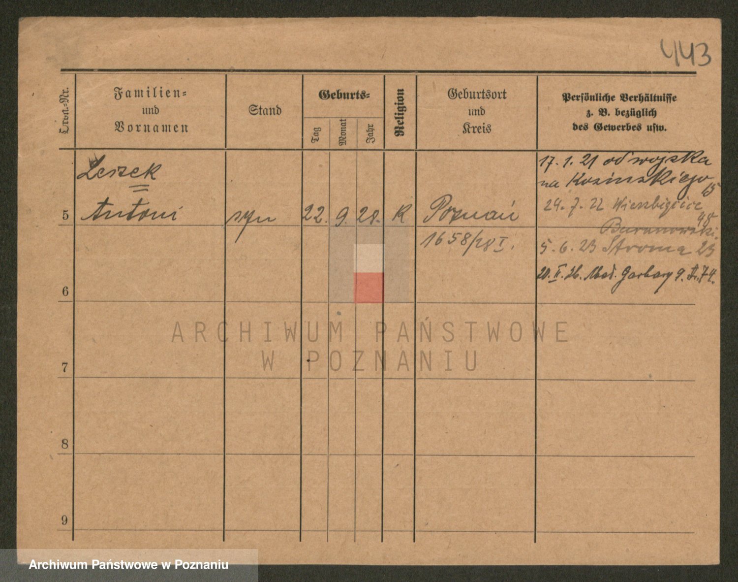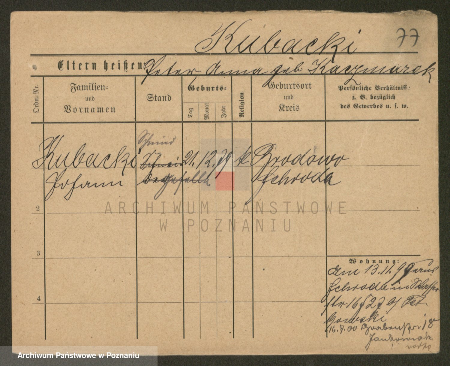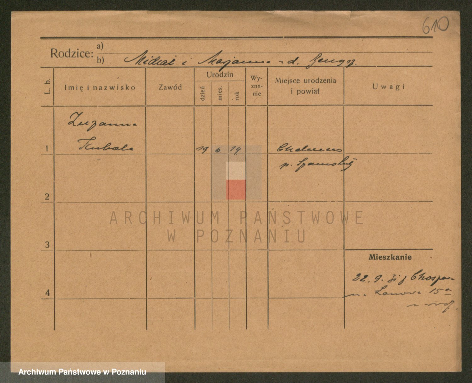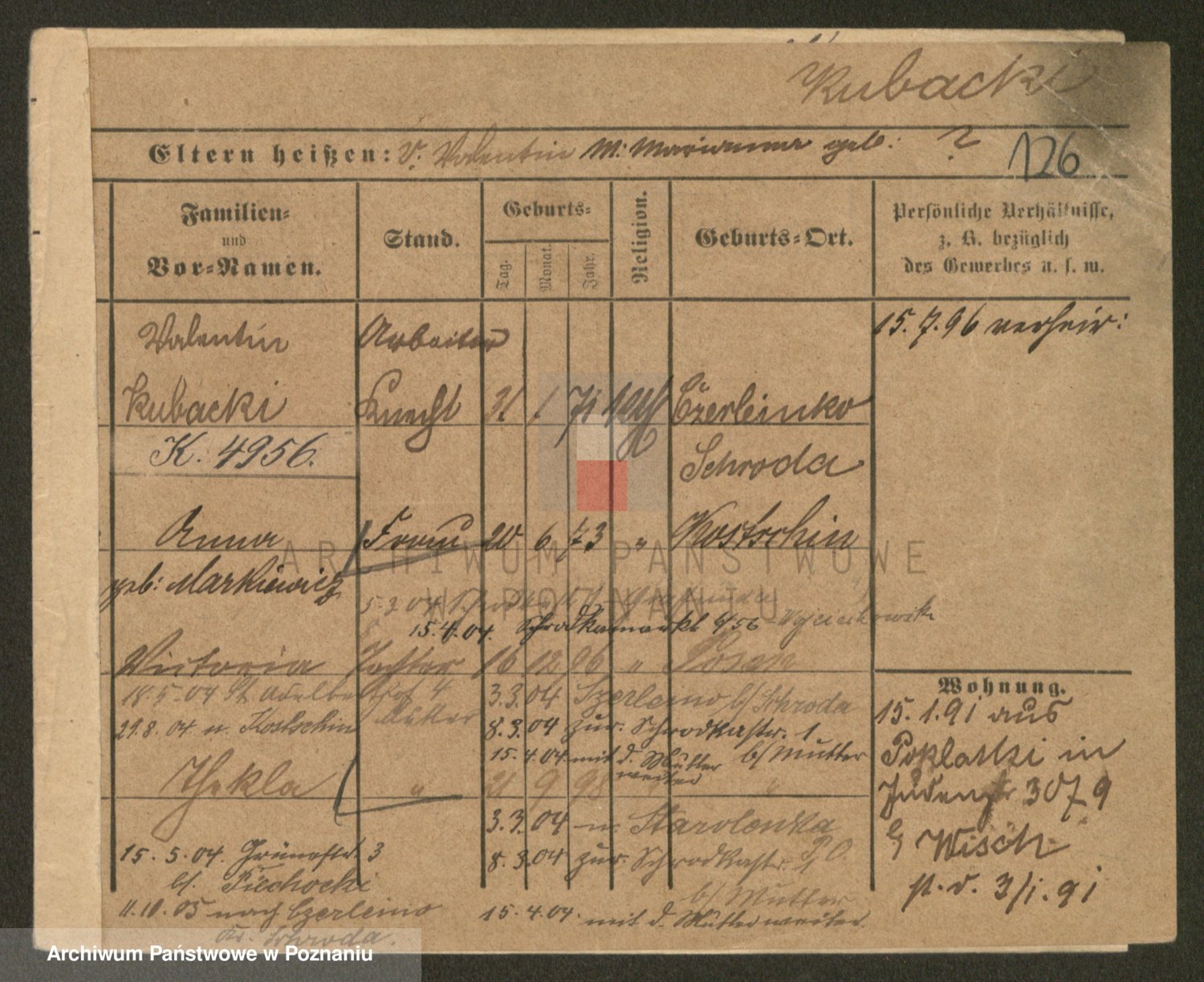 Podgląd karty osobowej dostępny jest po kliknięciu na nazwisko lub ikonkę karty. Można dokonywać powiększenia (ikony na górze) lub przechodzić między kolejnymi skanami (strzałki po bokach).