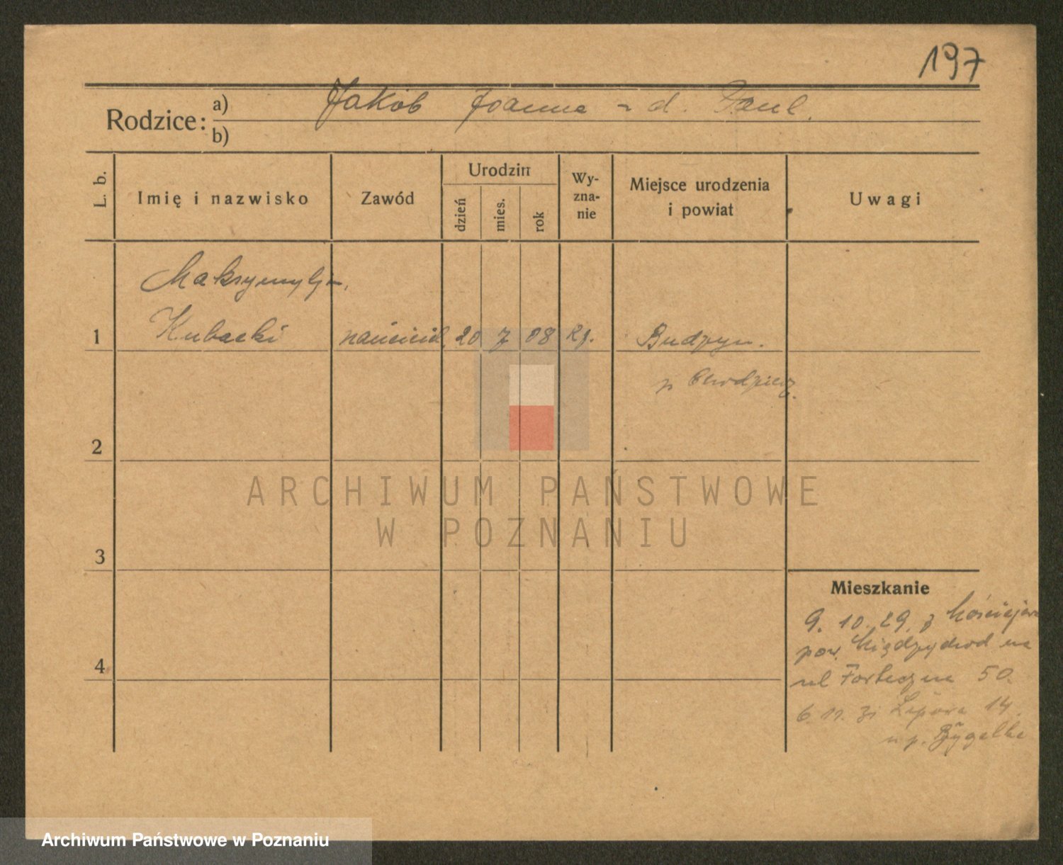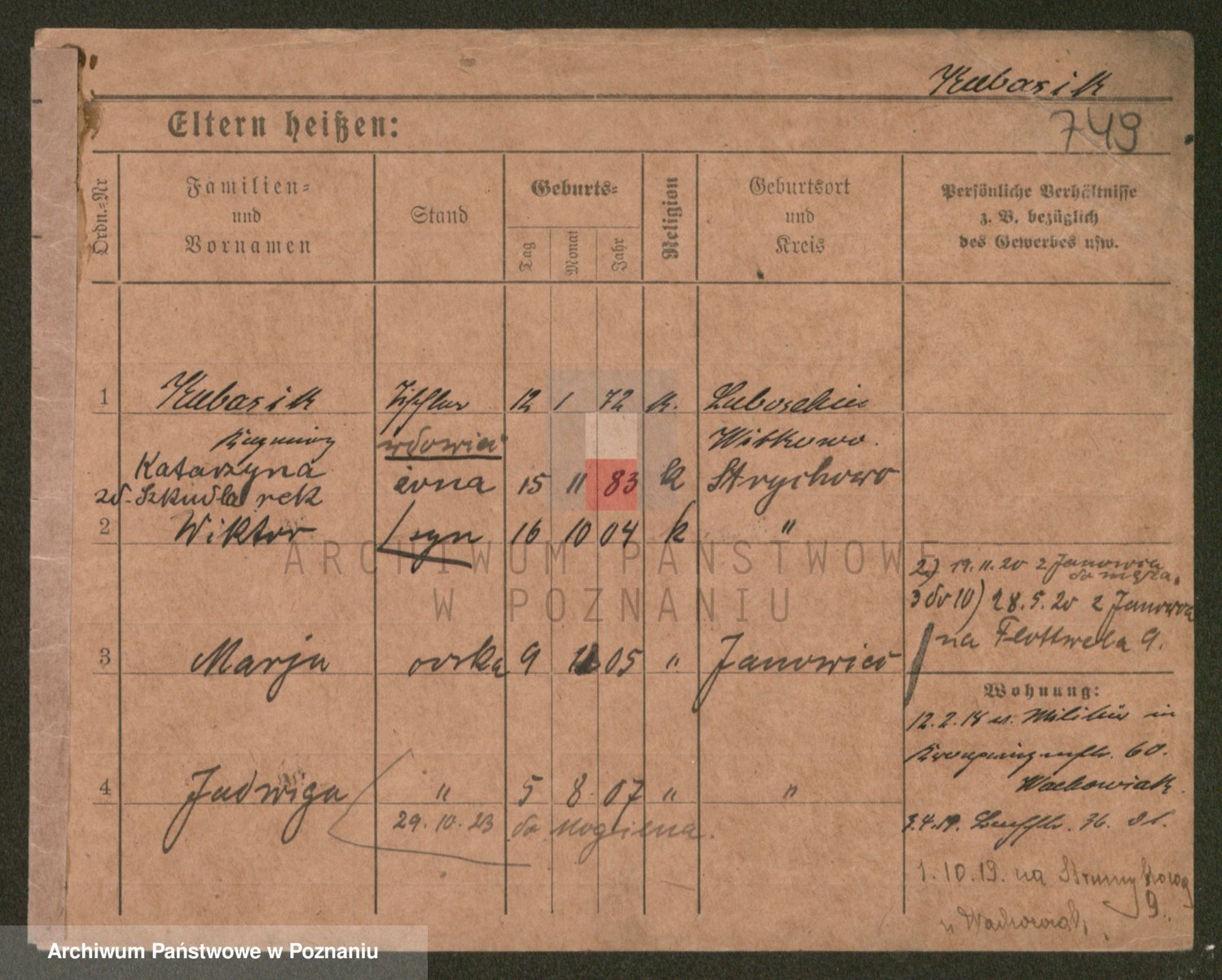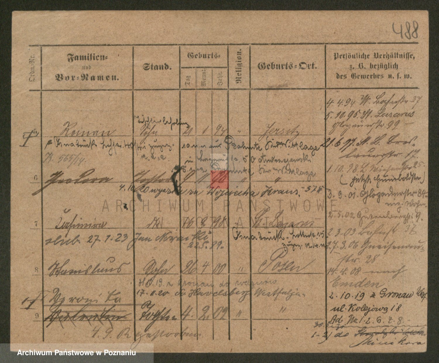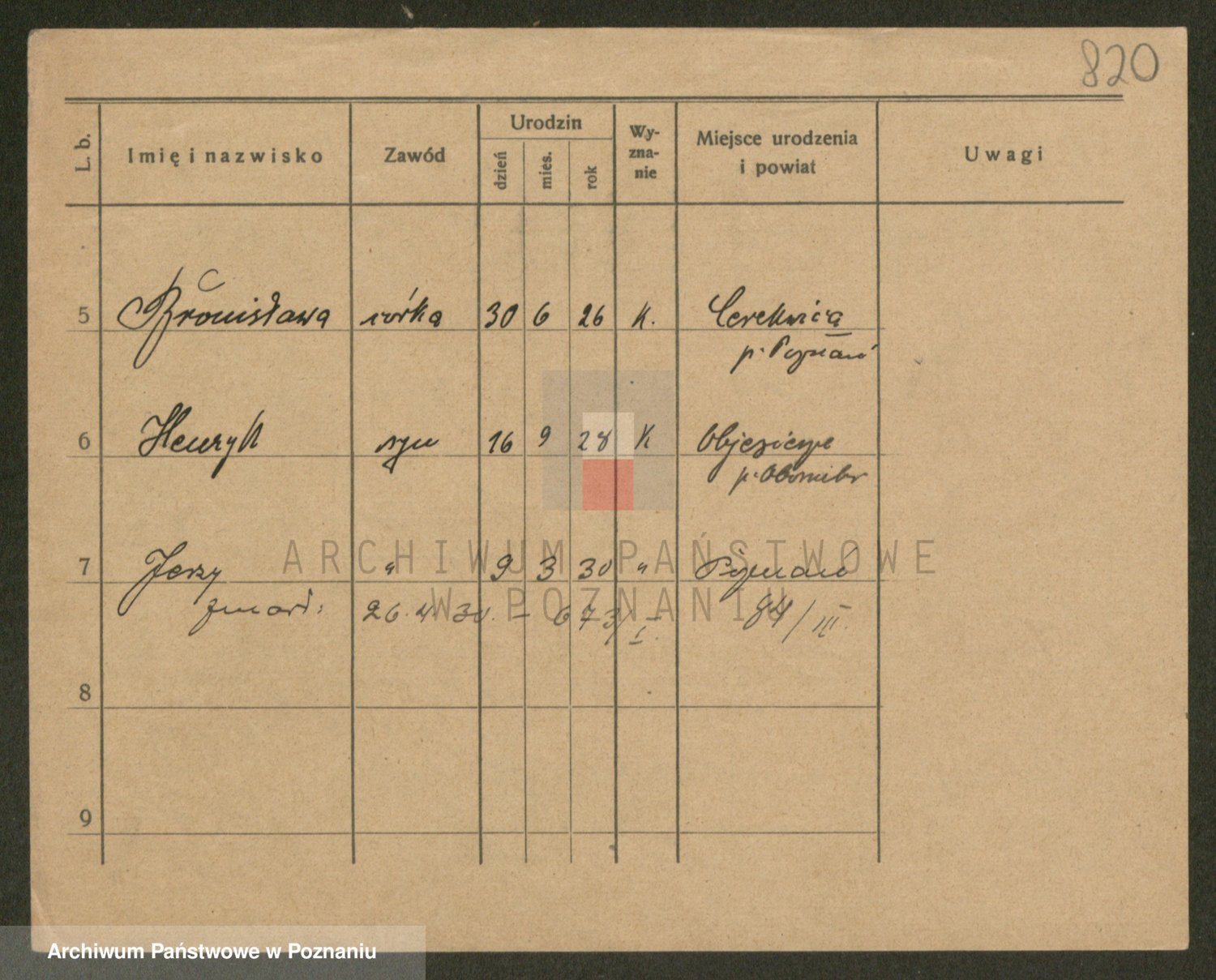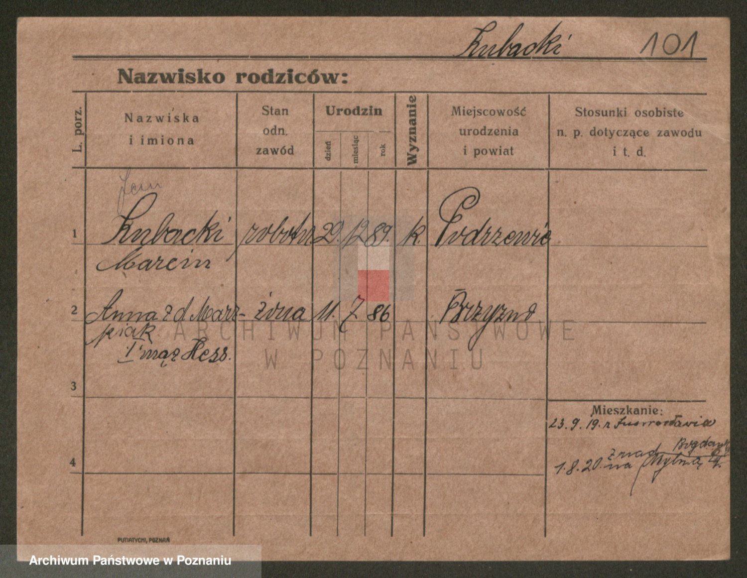 Podgląd karty osobowej dostępny jest po kliknięciu na nazwisko lub ikonkę karty. Można dokonywać powiększenia (ikony na górze) lub przechodzić między kolejnymi skanami (strzałki po bokach).