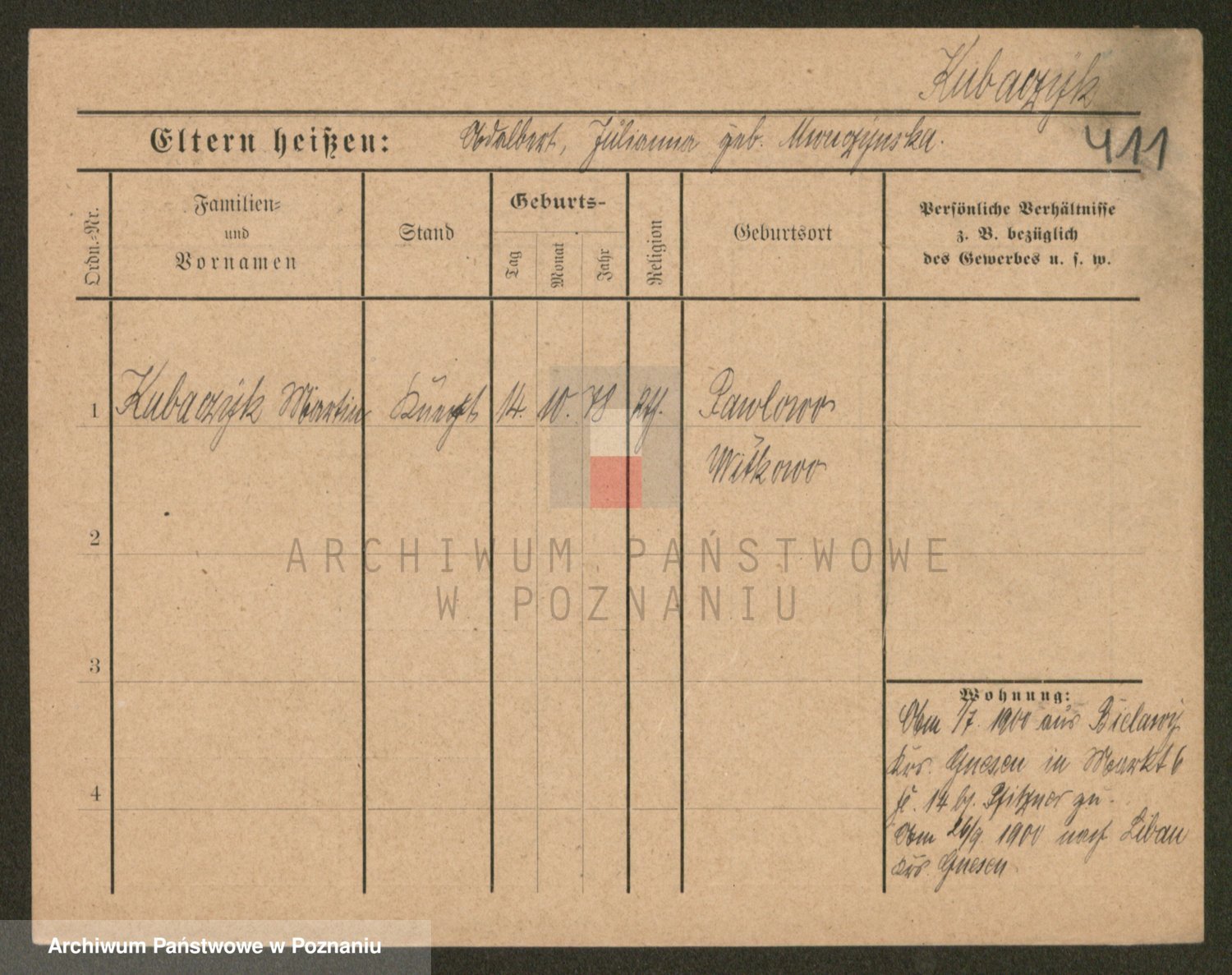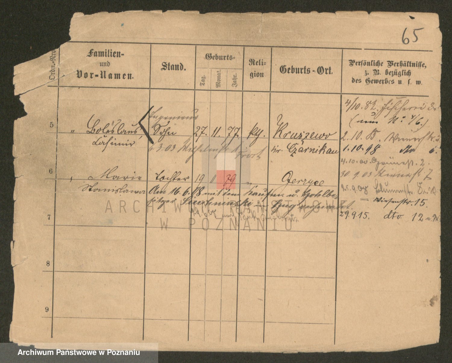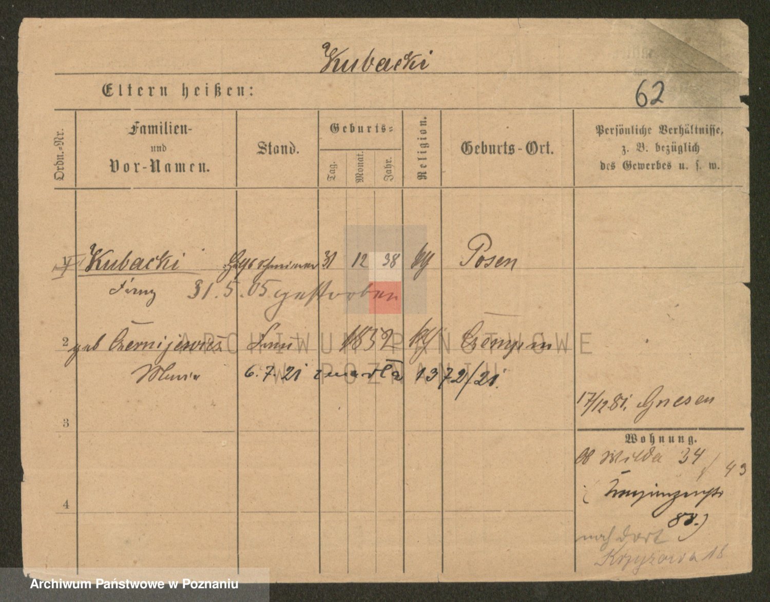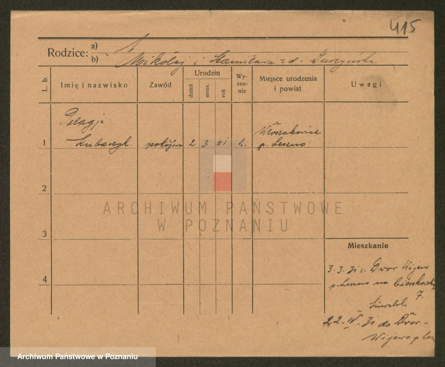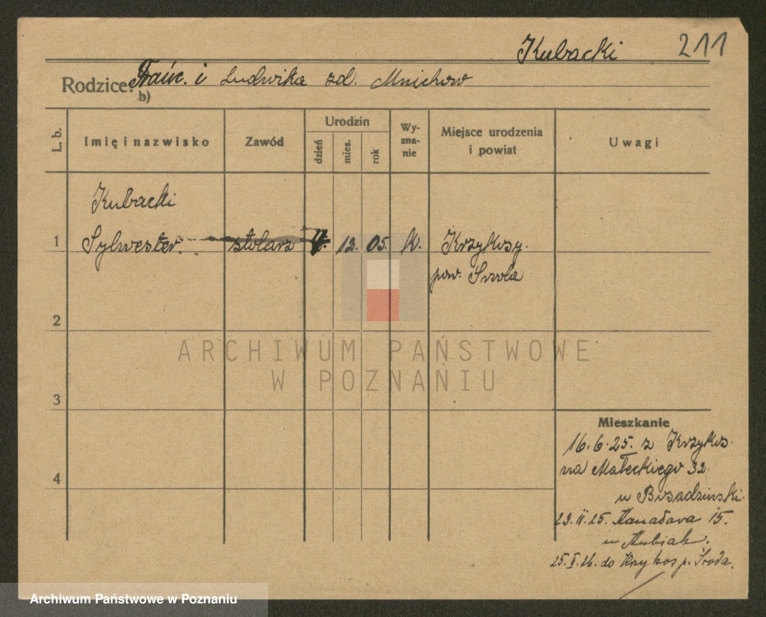 Podgląd karty osobowej dostępny jest po kliknięciu na nazwisko lub ikonkę karty. Można dokonywać powiększenia (ikony na górze) lub przechodzić między kolejnymi skanami (strzałki po bokach).