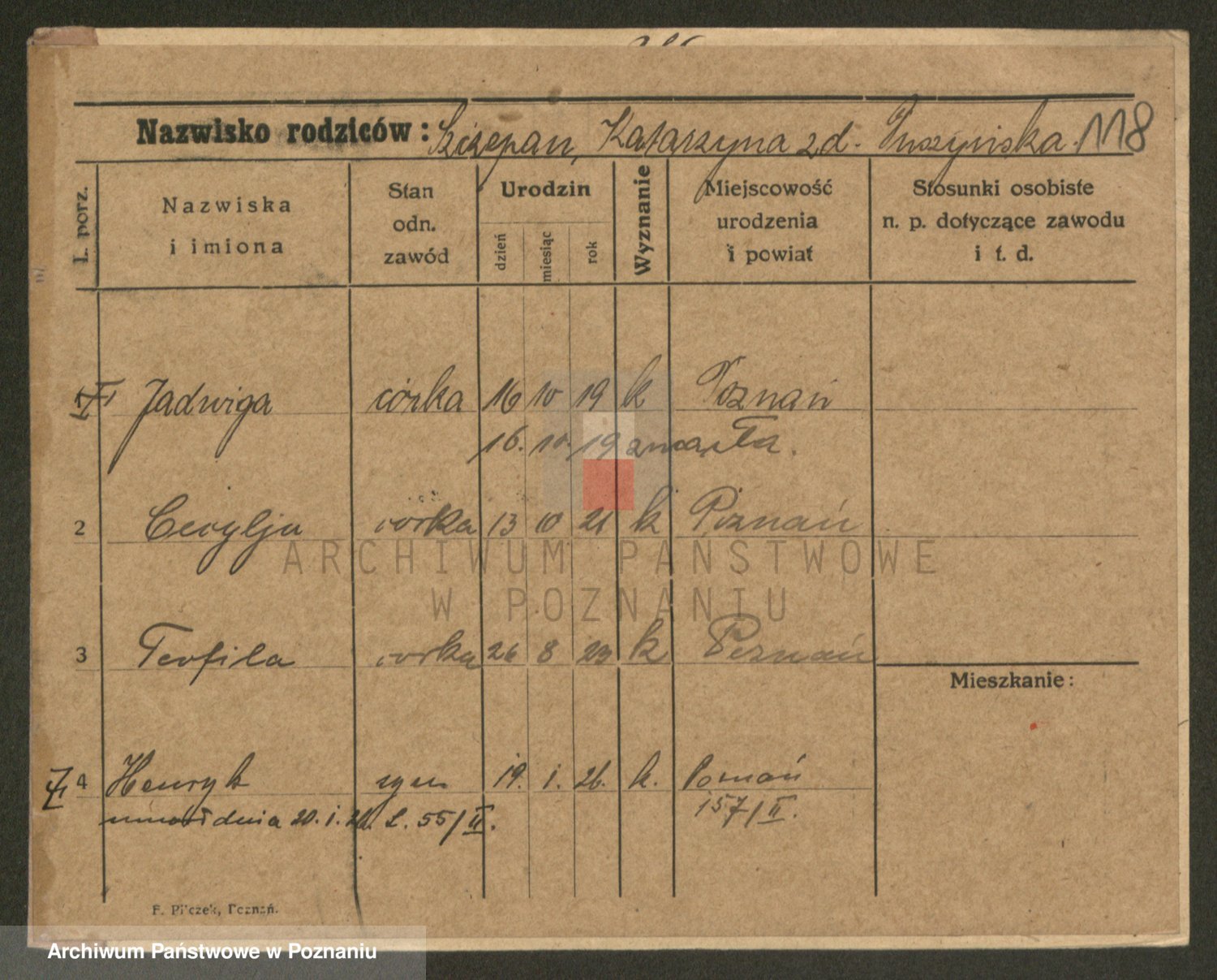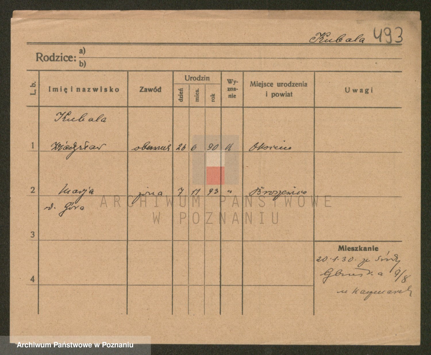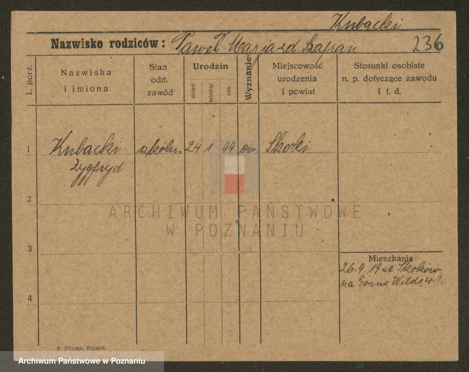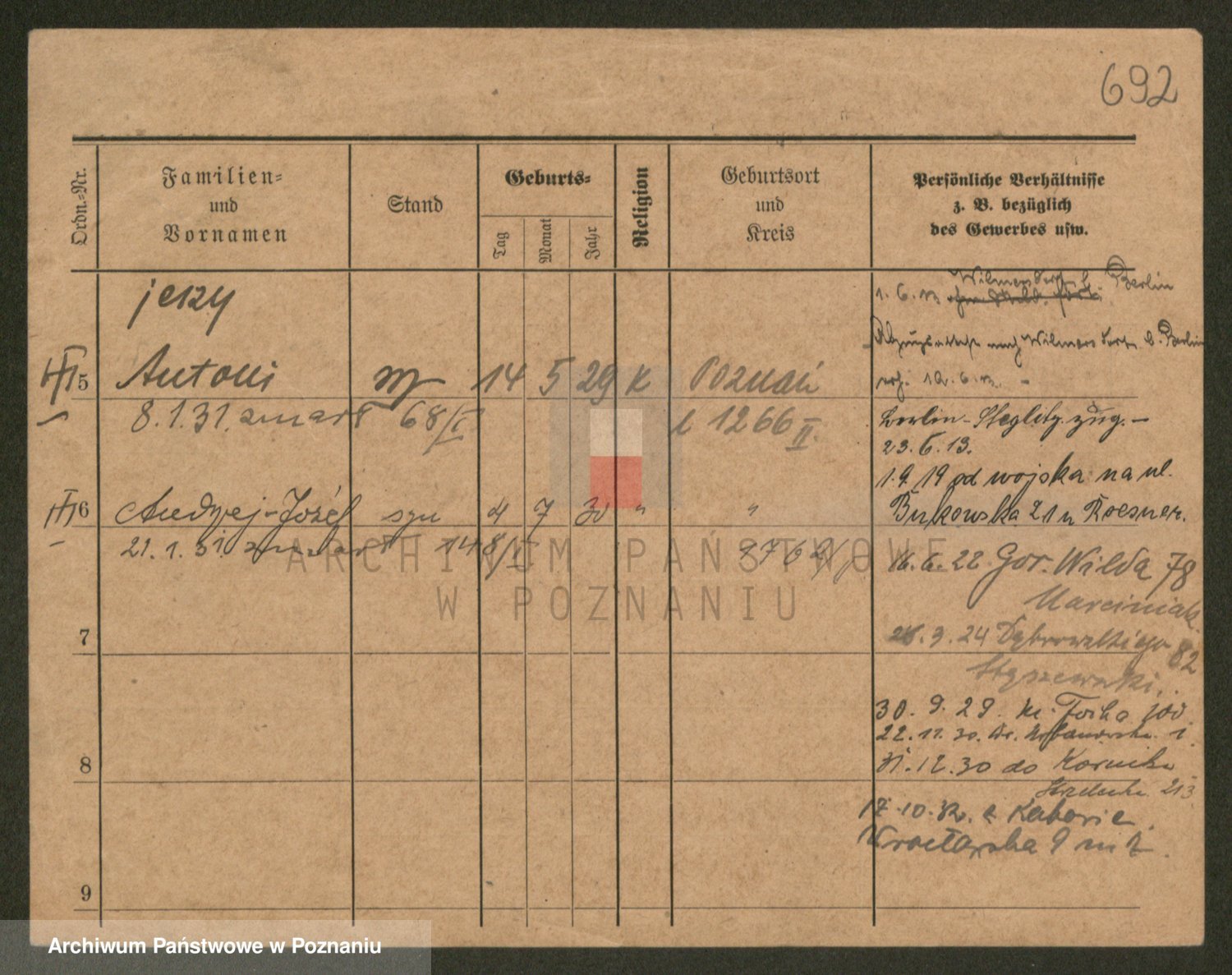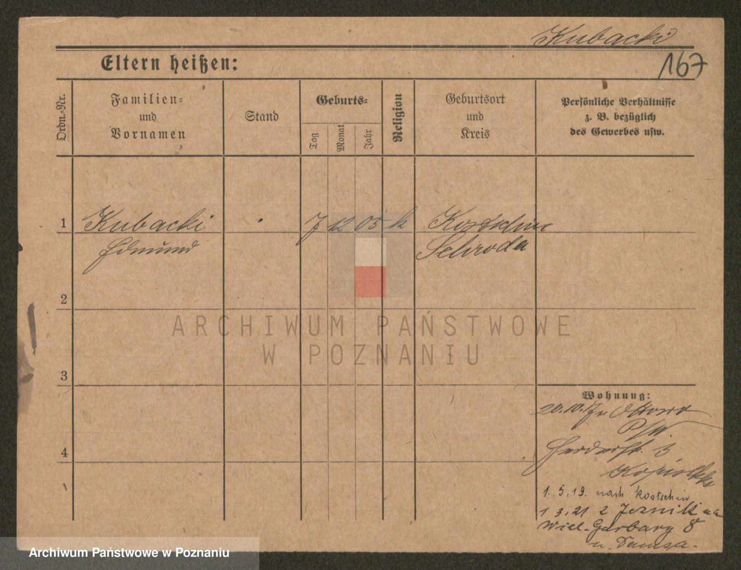 Podgląd karty osobowej dostępny jest po kliknięciu na nazwisko lub ikonkę karty. Można dokonywać powiększenia (ikony na górze) lub przechodzić między kolejnymi skanami (strzałki po bokach).