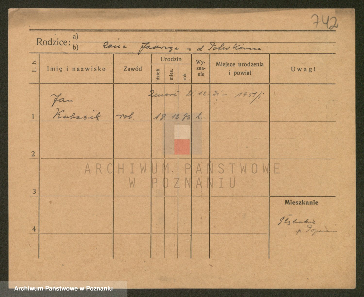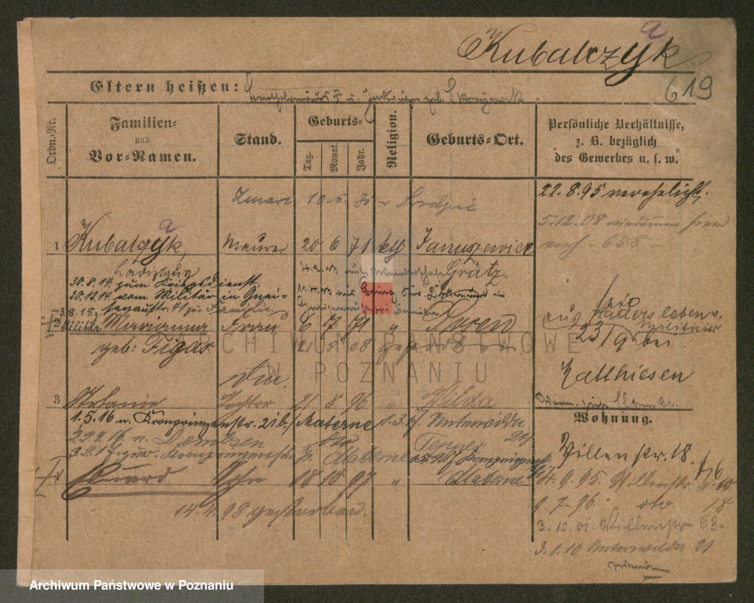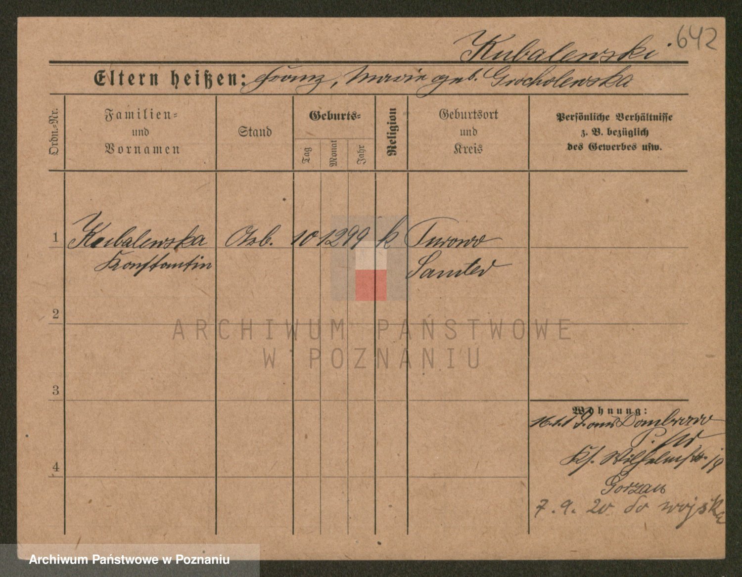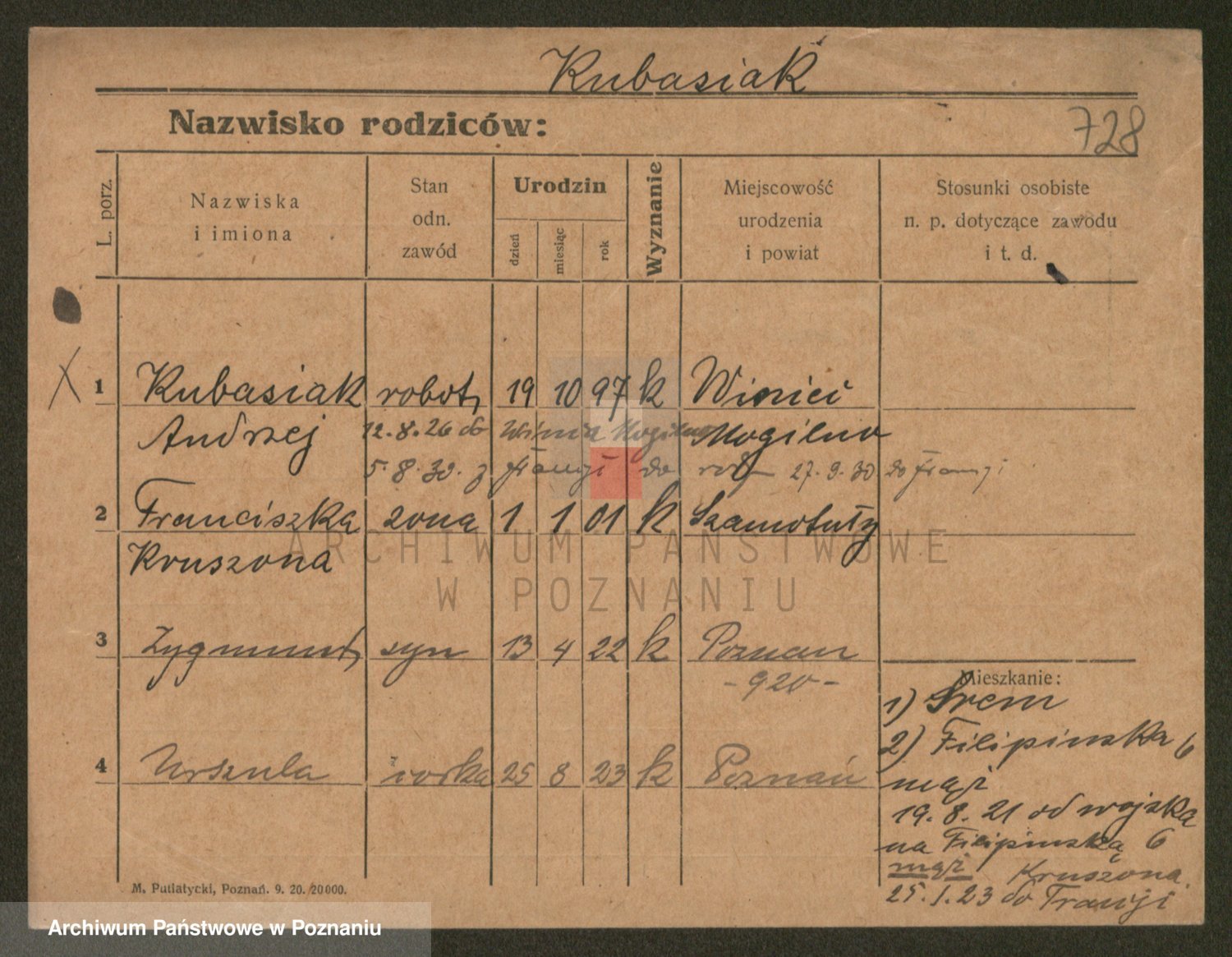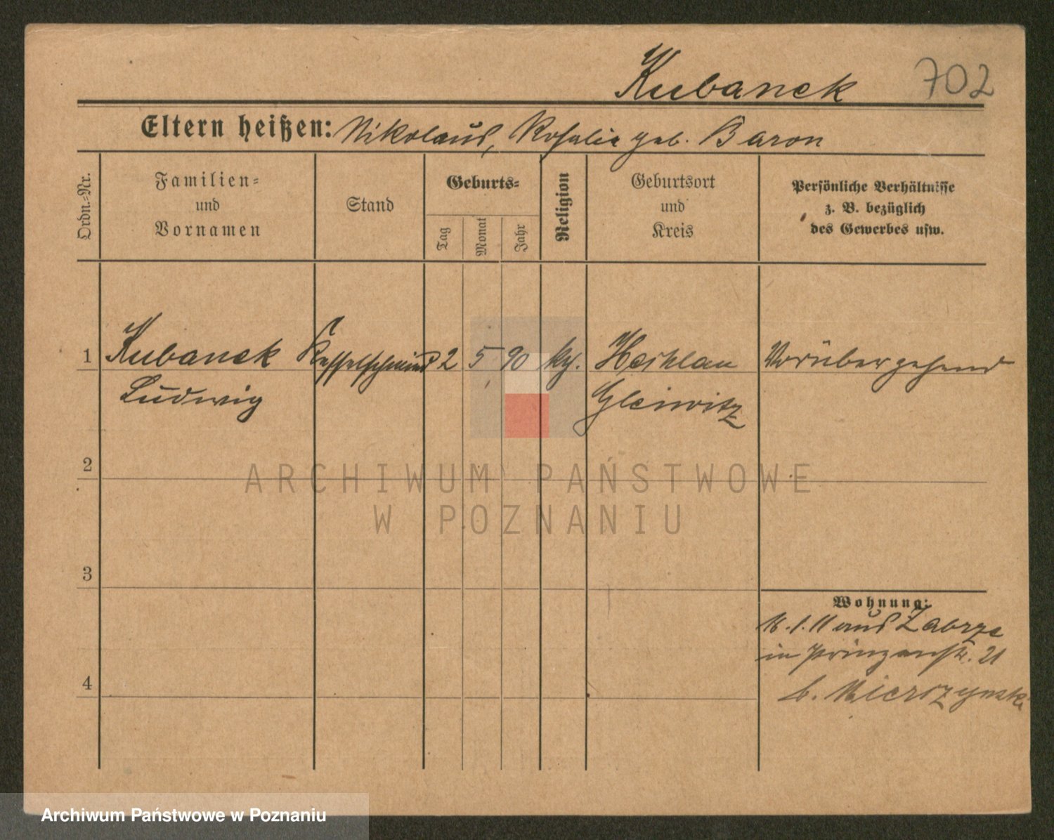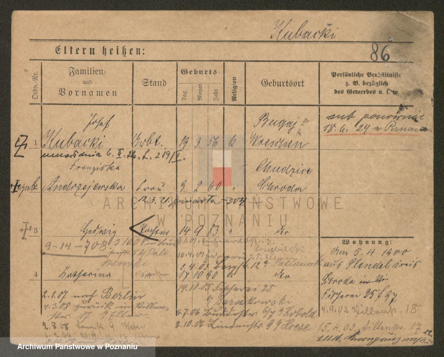 Podgląd karty osobowej dostępny jest po kliknięciu na nazwisko lub ikonkę karty. Można dokonywać powiększenia (ikony na górze) lub przechodzić między kolejnymi skanami (strzałki po bokach).