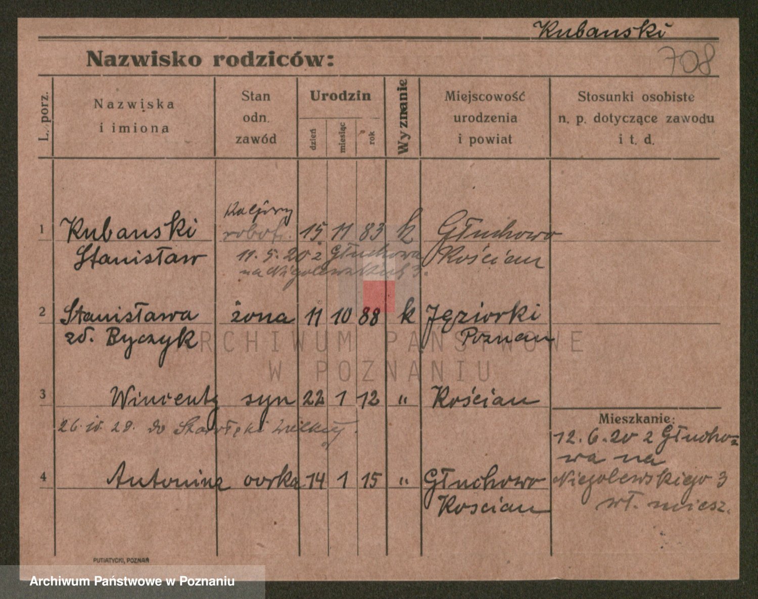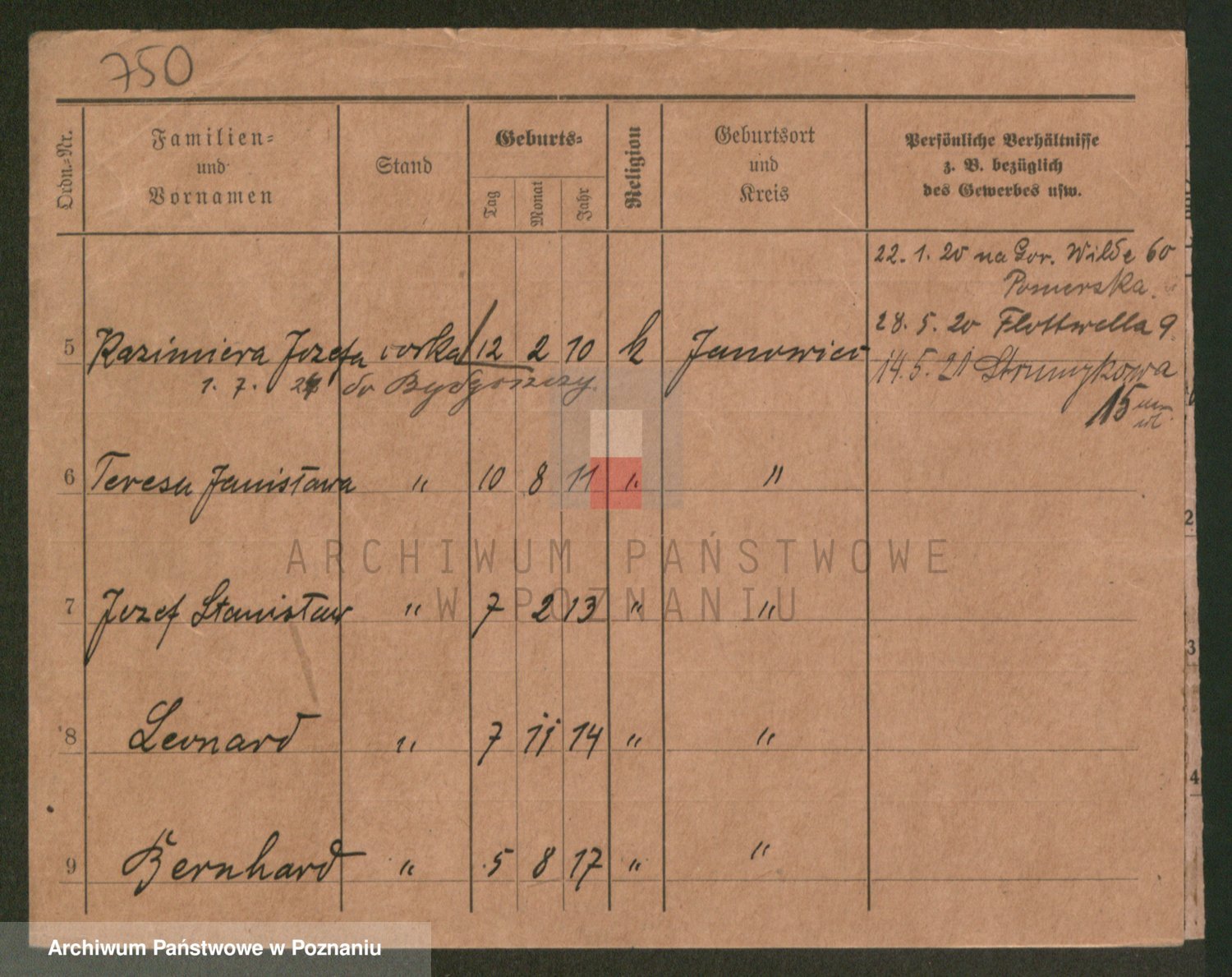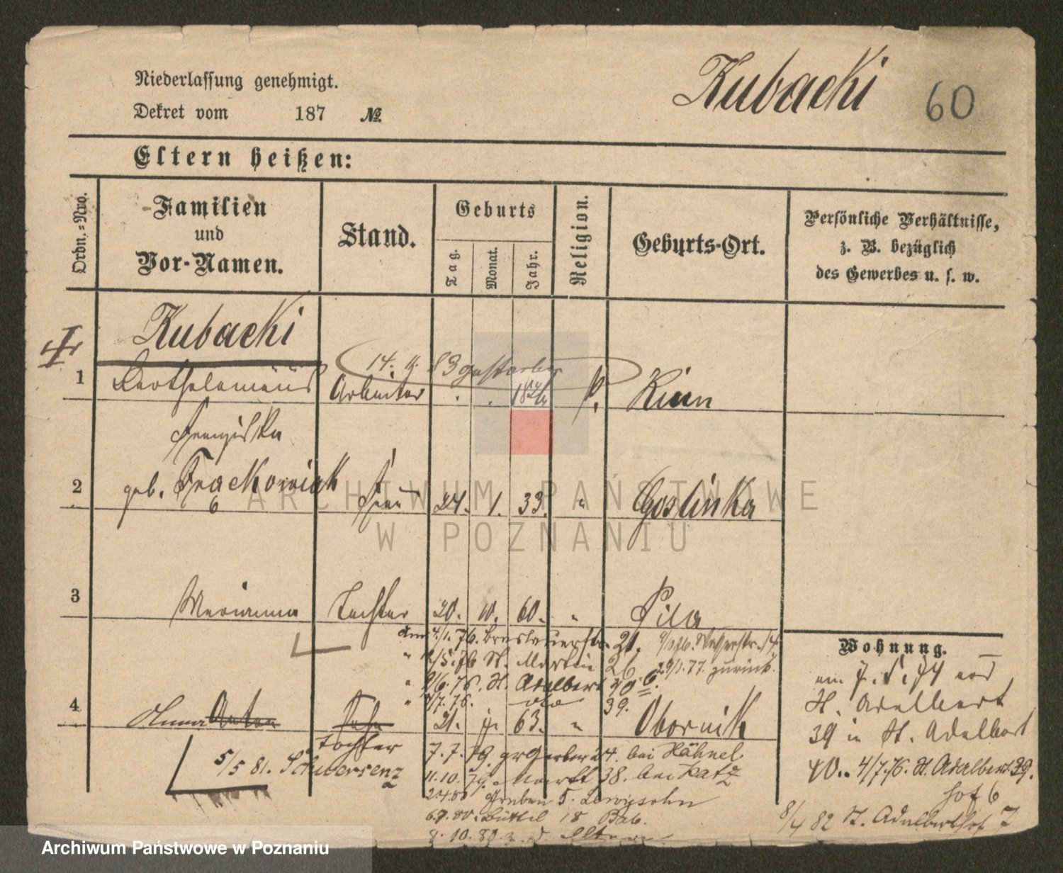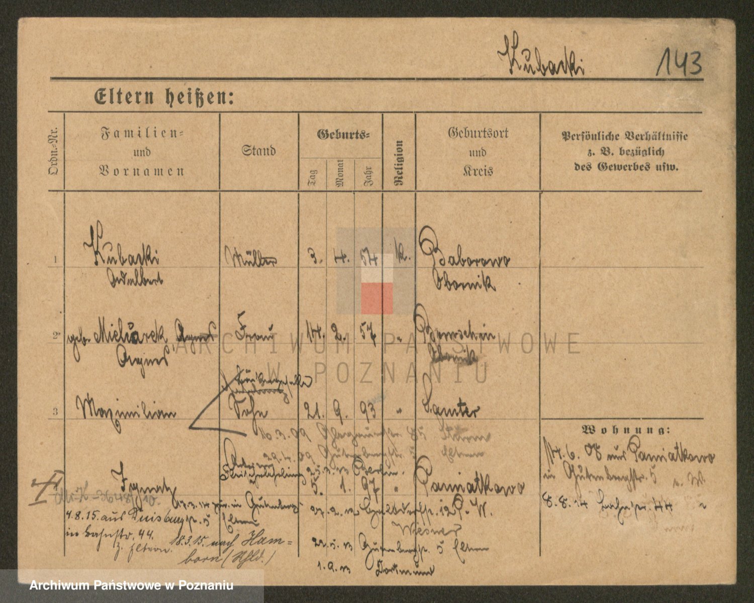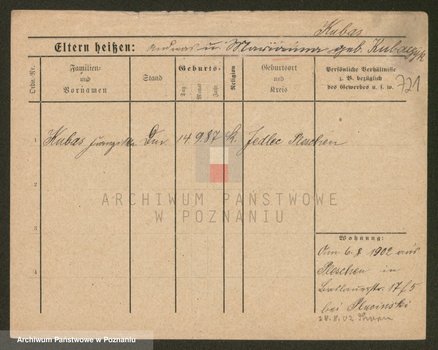 Podgląd karty osobowej dostępny jest po kliknięciu na nazwisko lub ikonkę karty. Można dokonywać powiększenia (ikony na górze) lub przechodzić między kolejnymi skanami (strzałki po bokach).