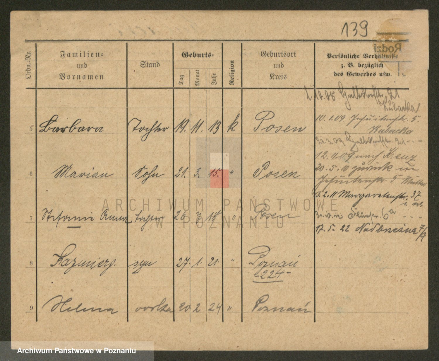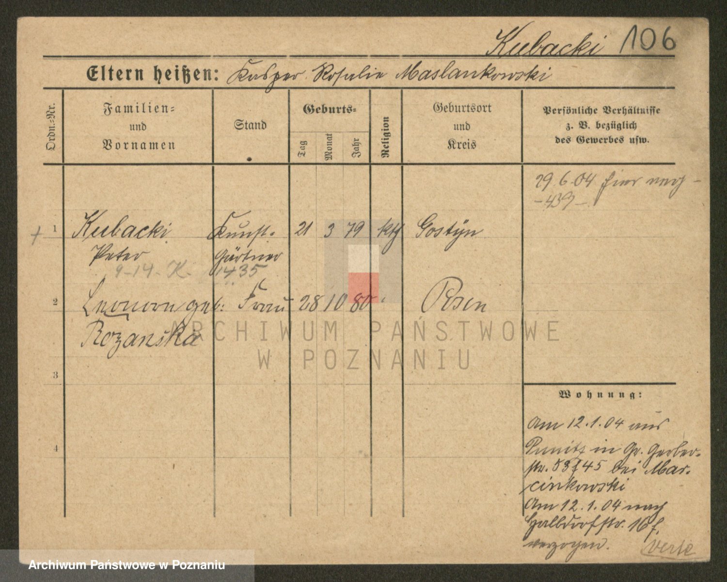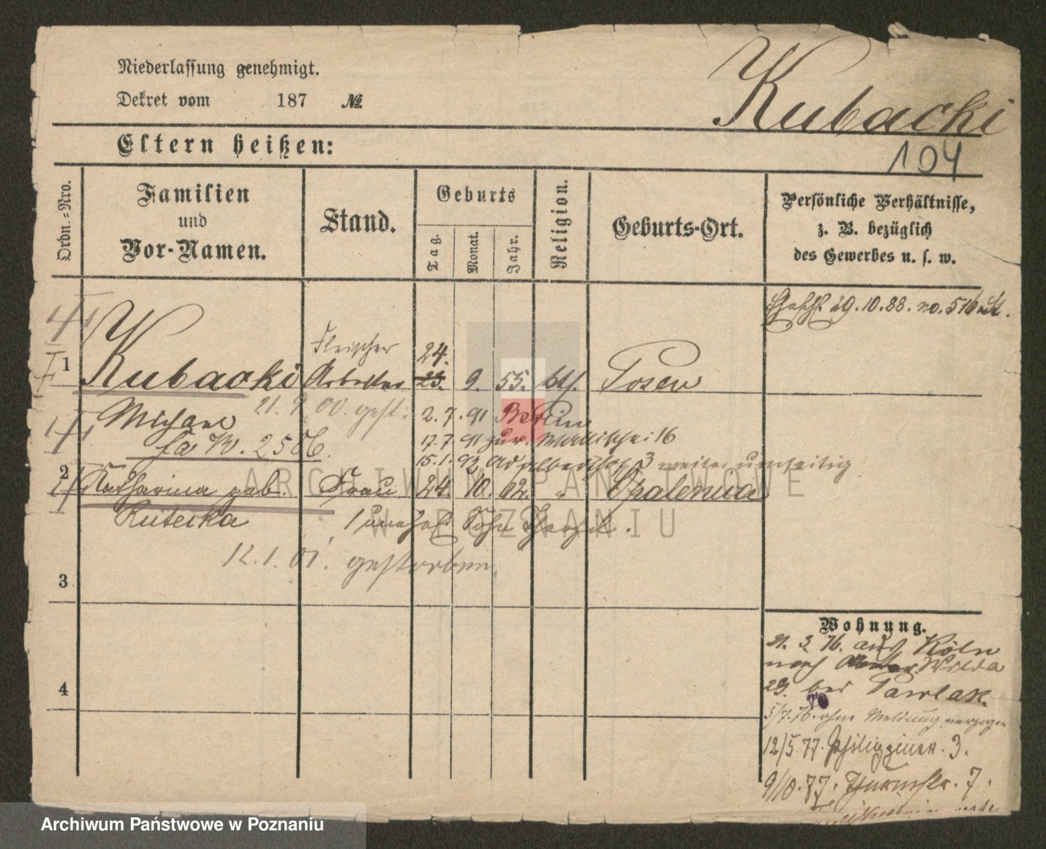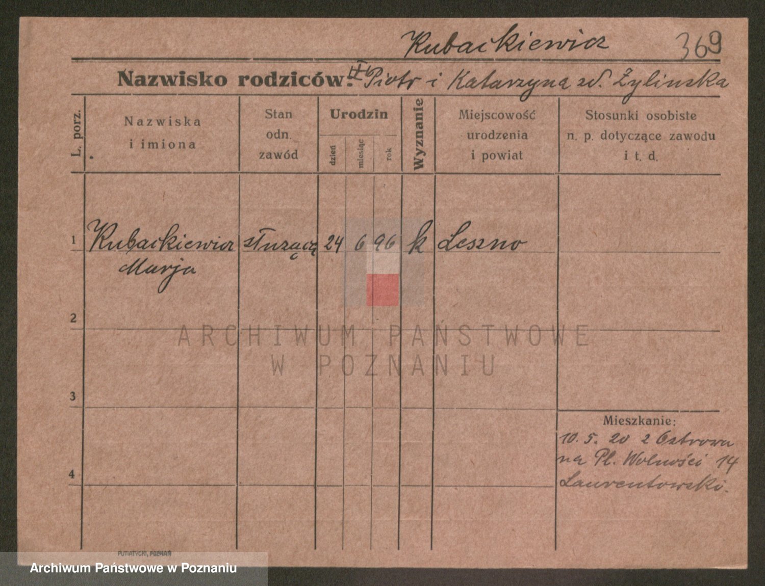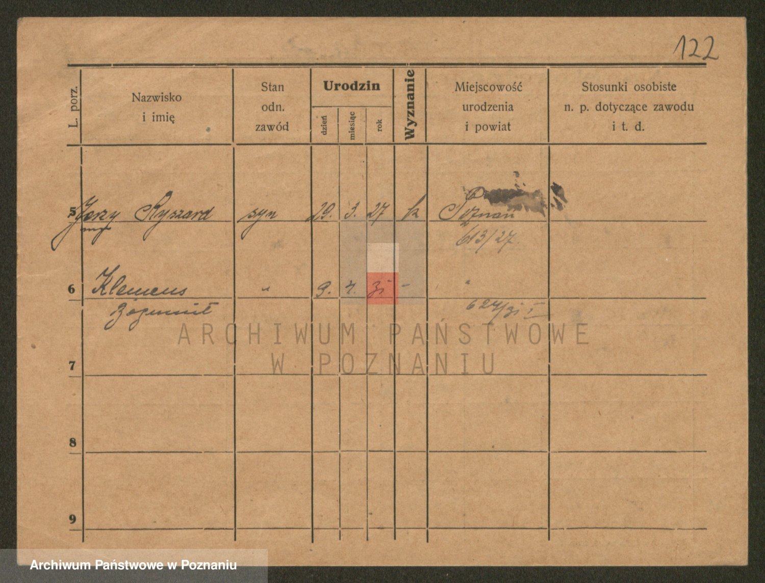 Podgląd karty osobowej dostępny jest po kliknięciu na nazwisko lub ikonkę karty. Można dokonywać powiększenia (ikony na górze) lub przechodzić między kolejnymi skanami (strzałki po bokach).