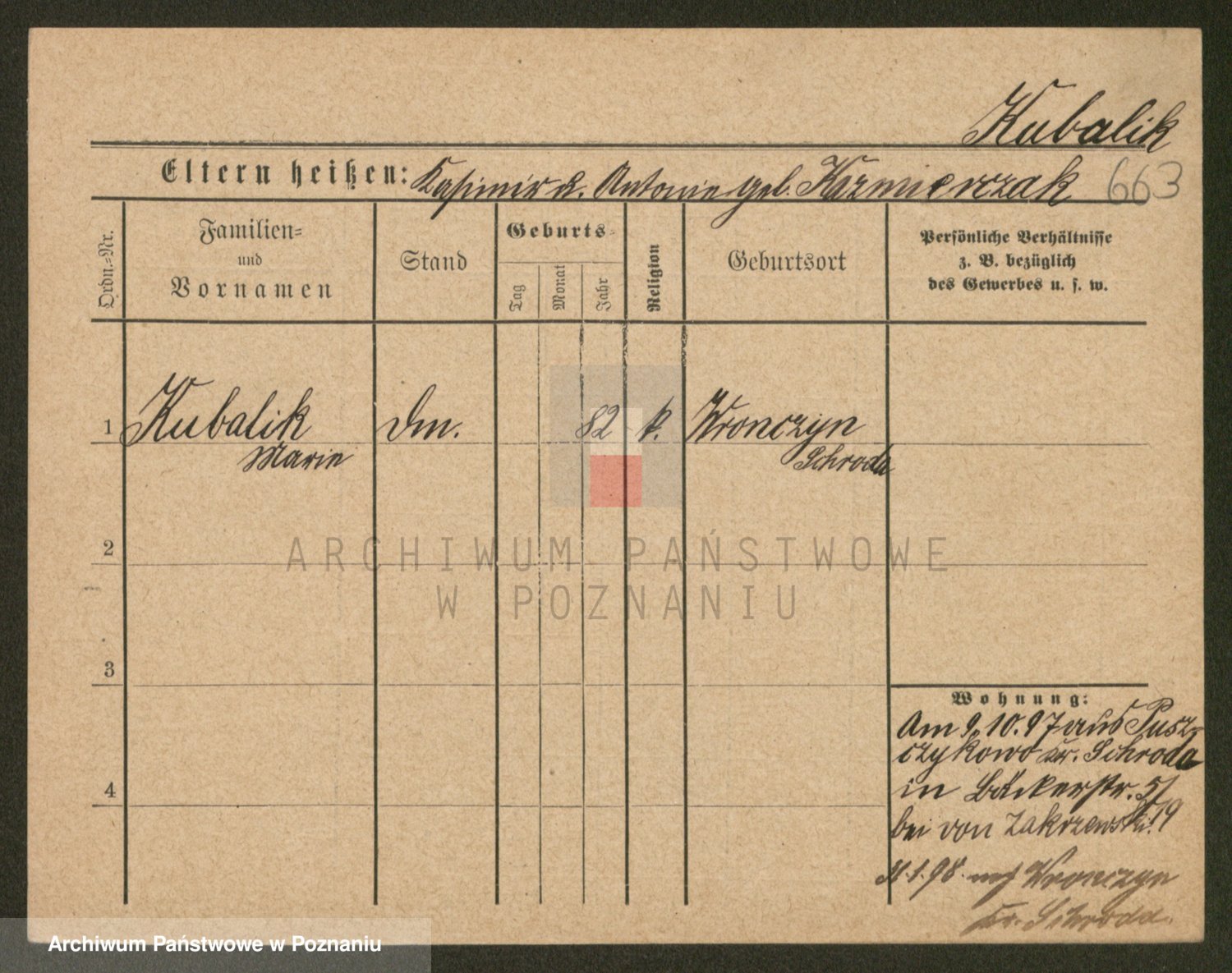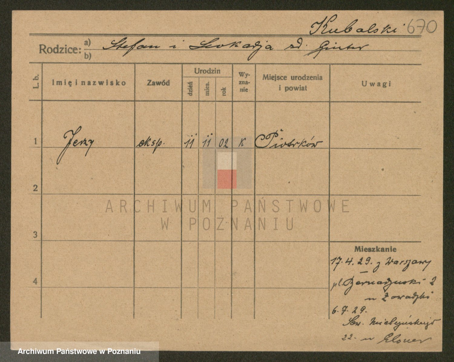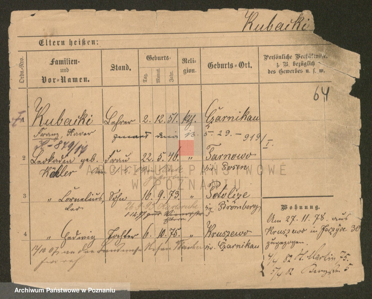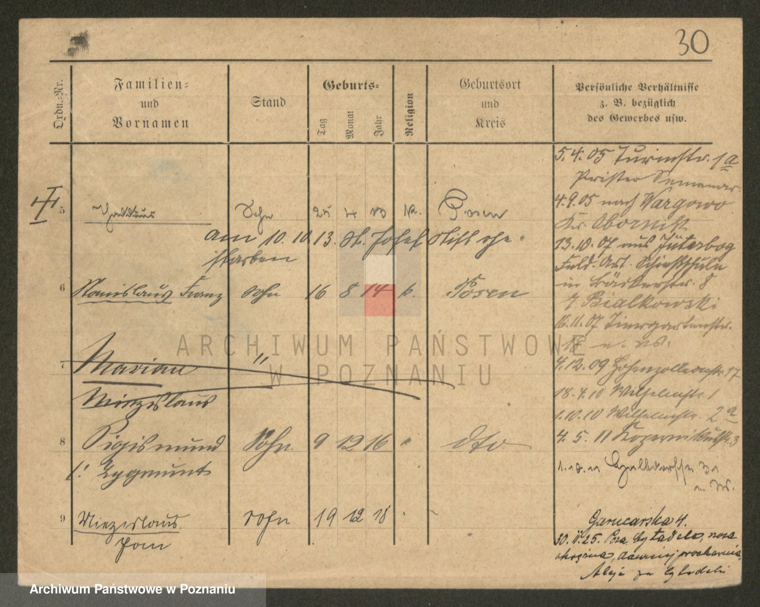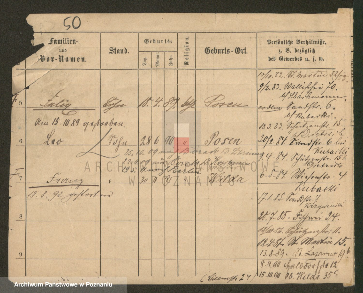 Podgląd karty osobowej dostępny jest po kliknięciu na nazwisko lub ikonkę karty. Można dokonywać powiększenia (ikony na górze) lub przechodzić między kolejnymi skanami (strzałki po bokach).