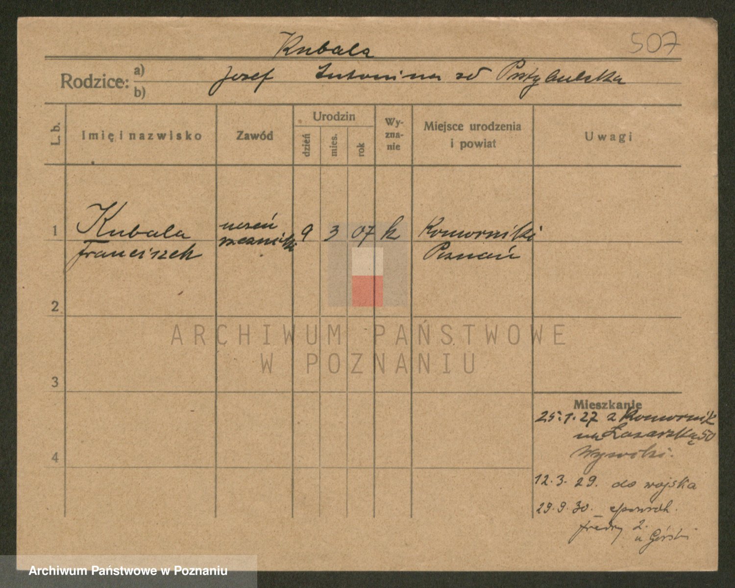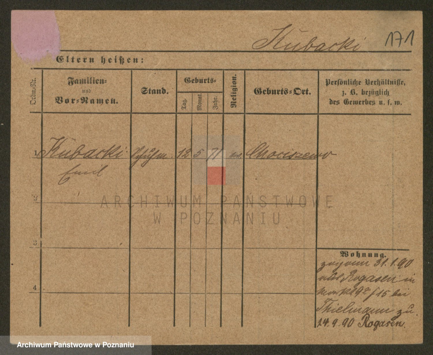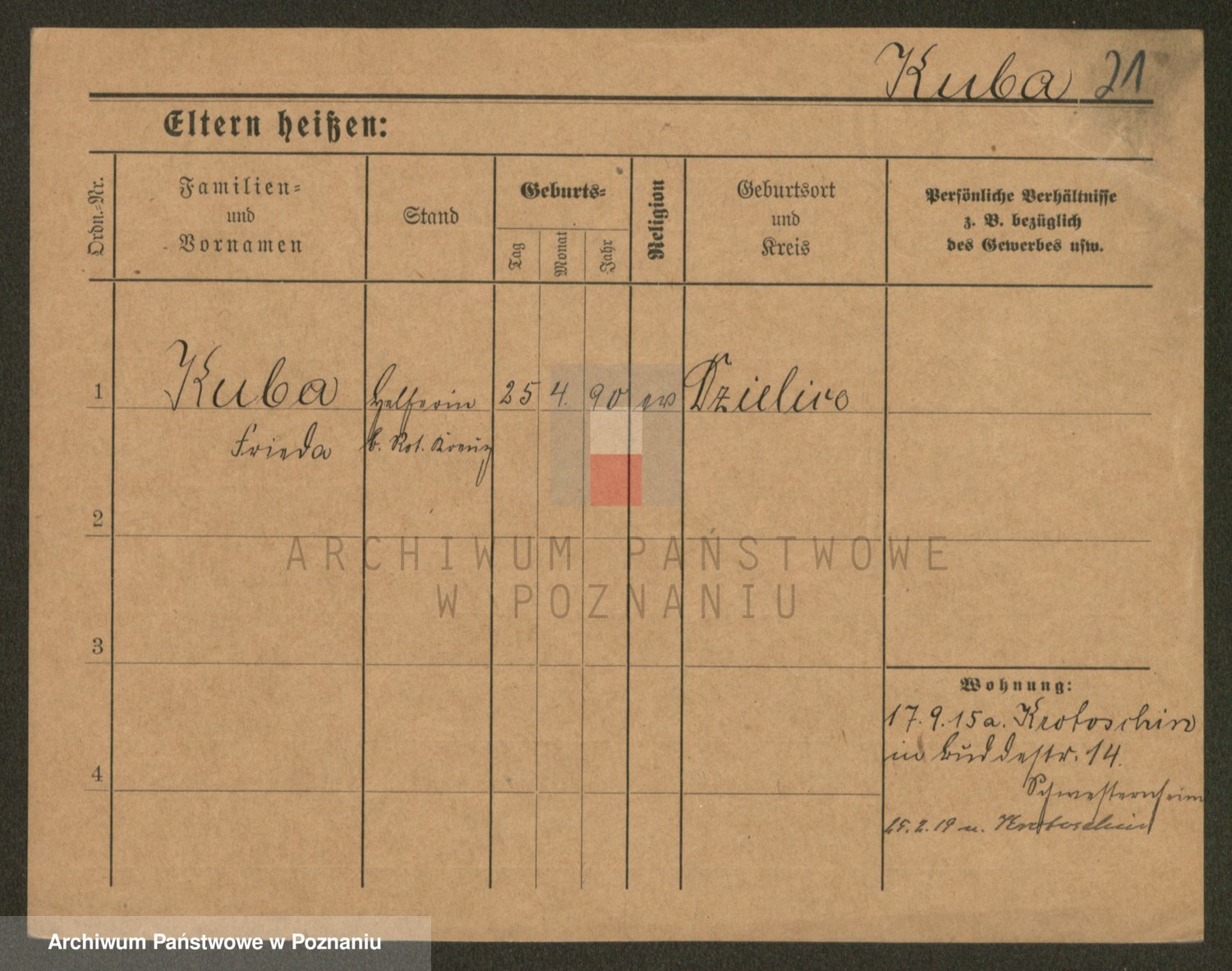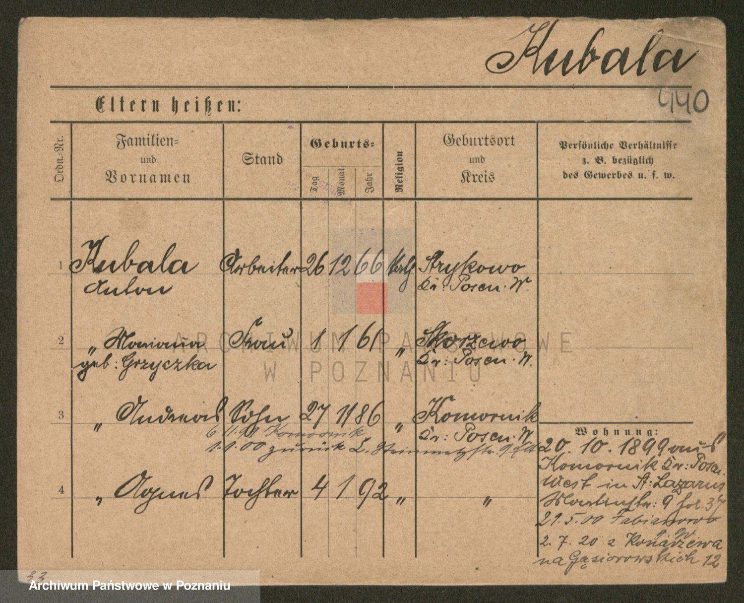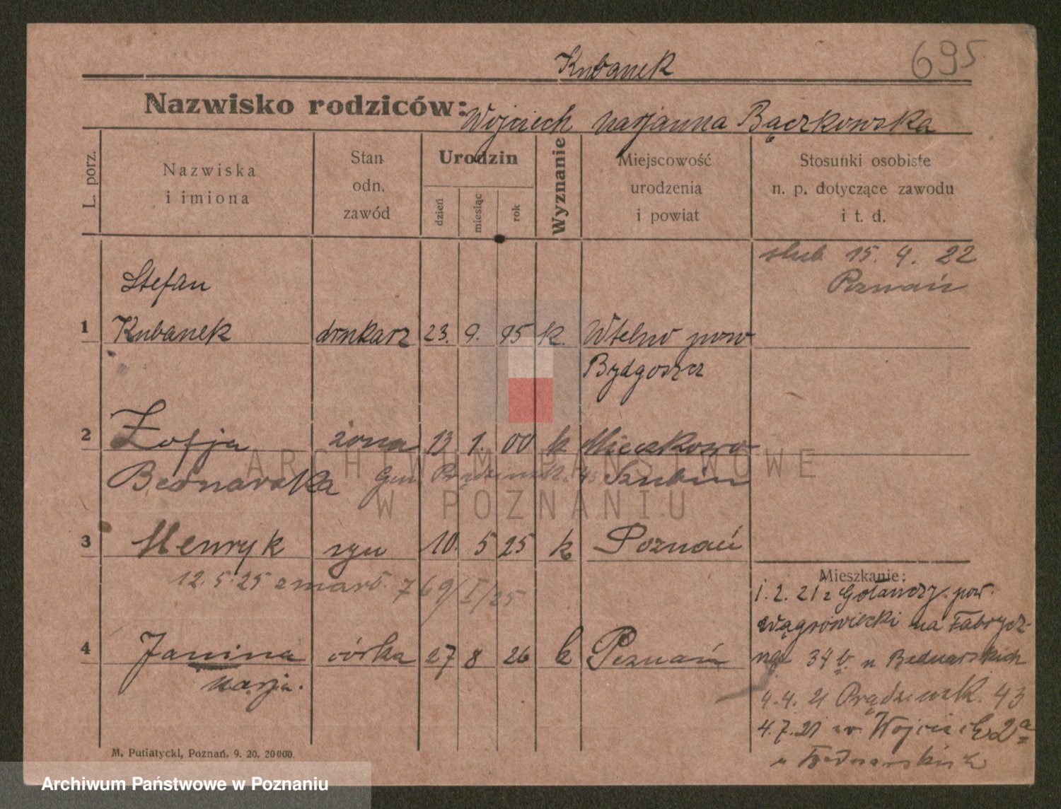 Podgląd karty osobowej dostępny jest po kliknięciu na nazwisko lub ikonkę karty. Można dokonywać powiększenia (ikony na górze) lub przechodzić między kolejnymi skanami (strzałki po bokach).