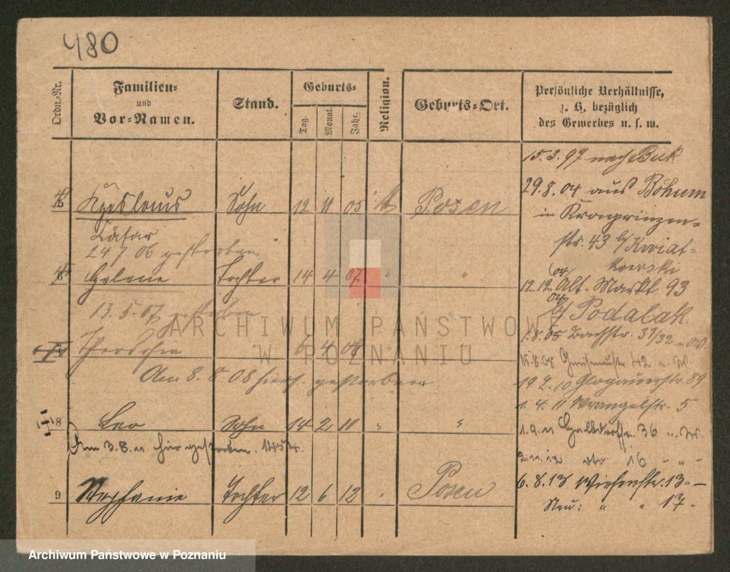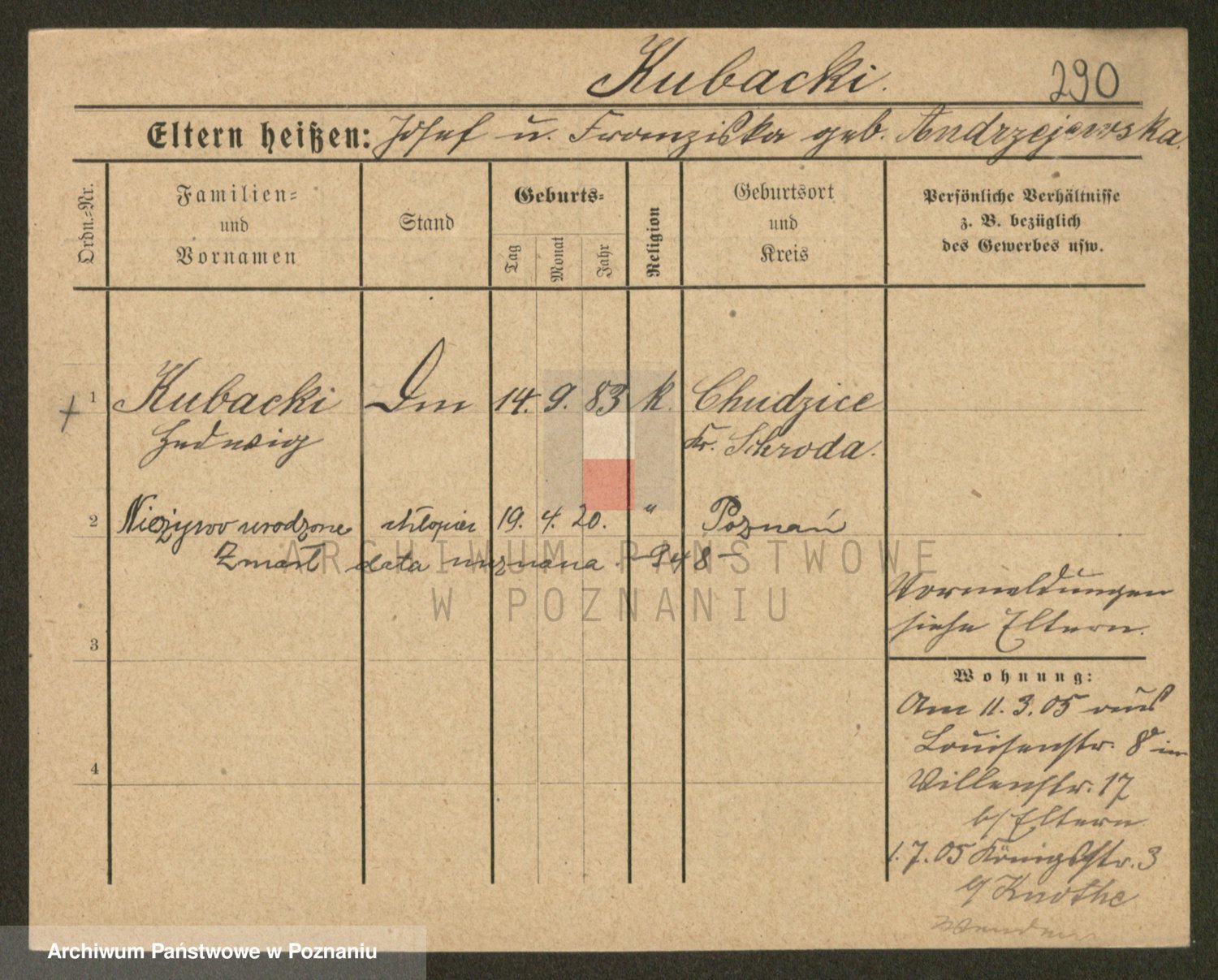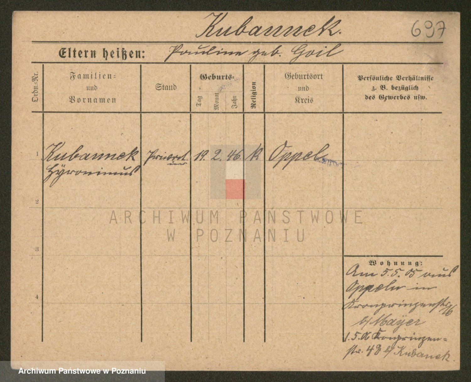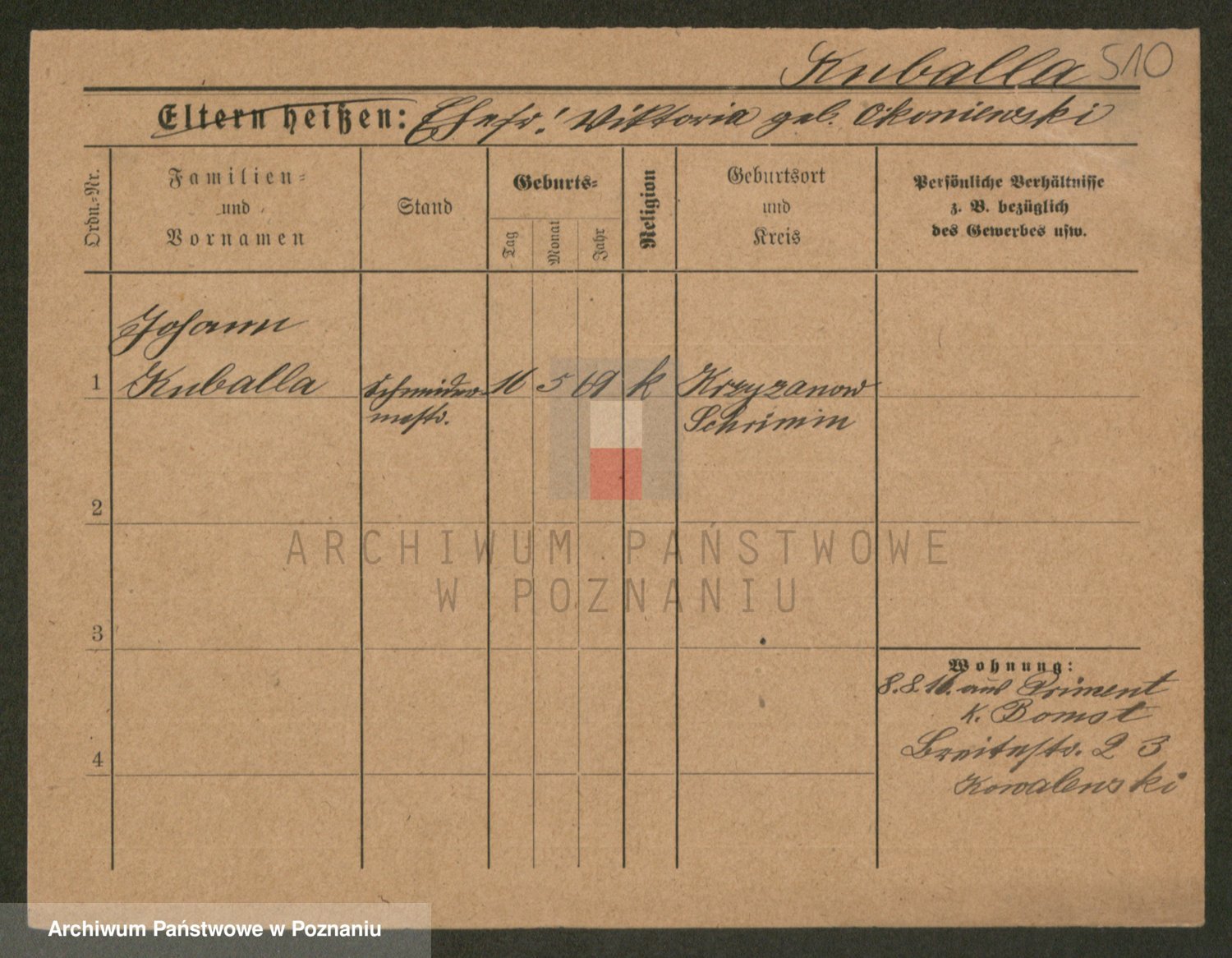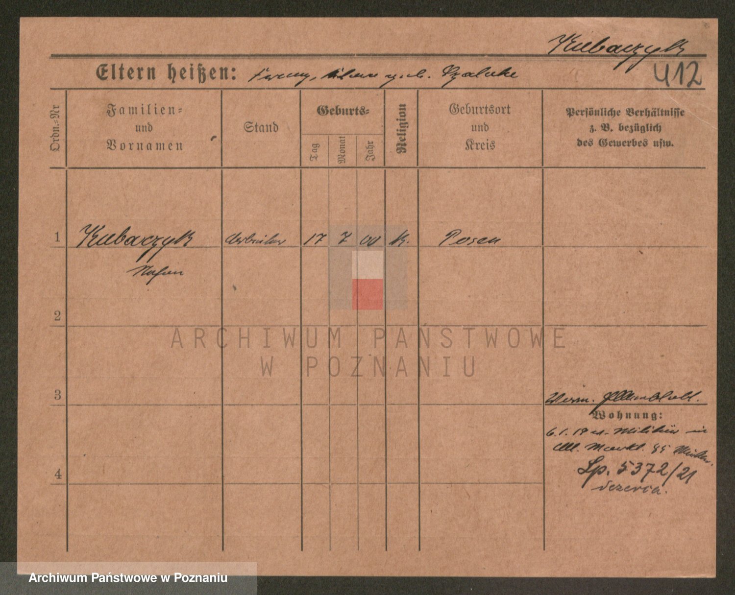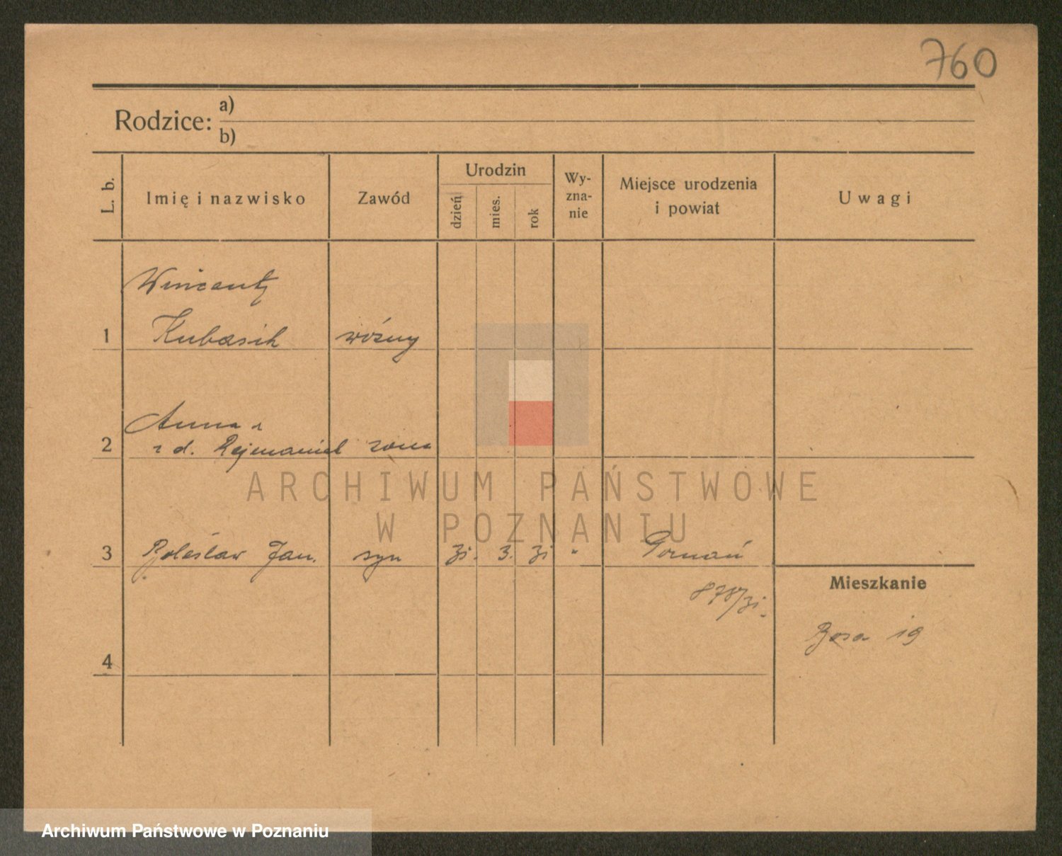 Podgląd karty osobowej dostępny jest po kliknięciu na nazwisko lub ikonkę karty. Można dokonywać powiększenia (ikony na górze) lub przechodzić między kolejnymi skanami (strzałki po bokach).