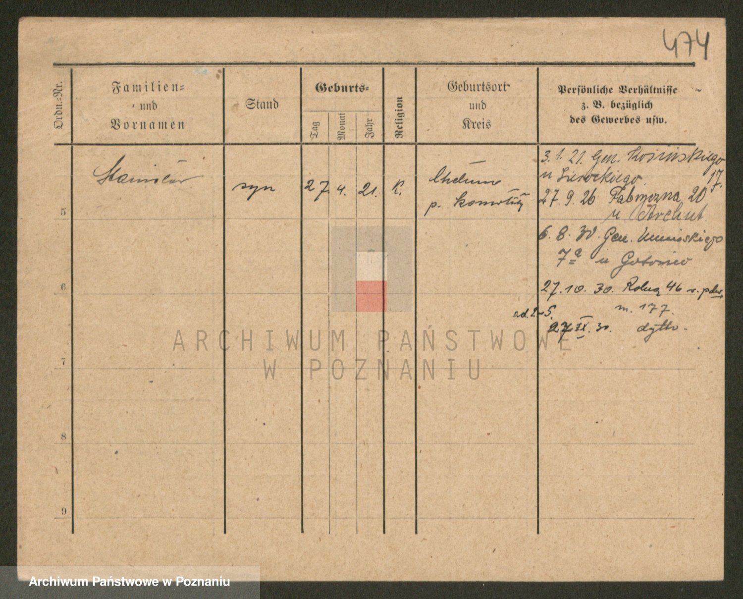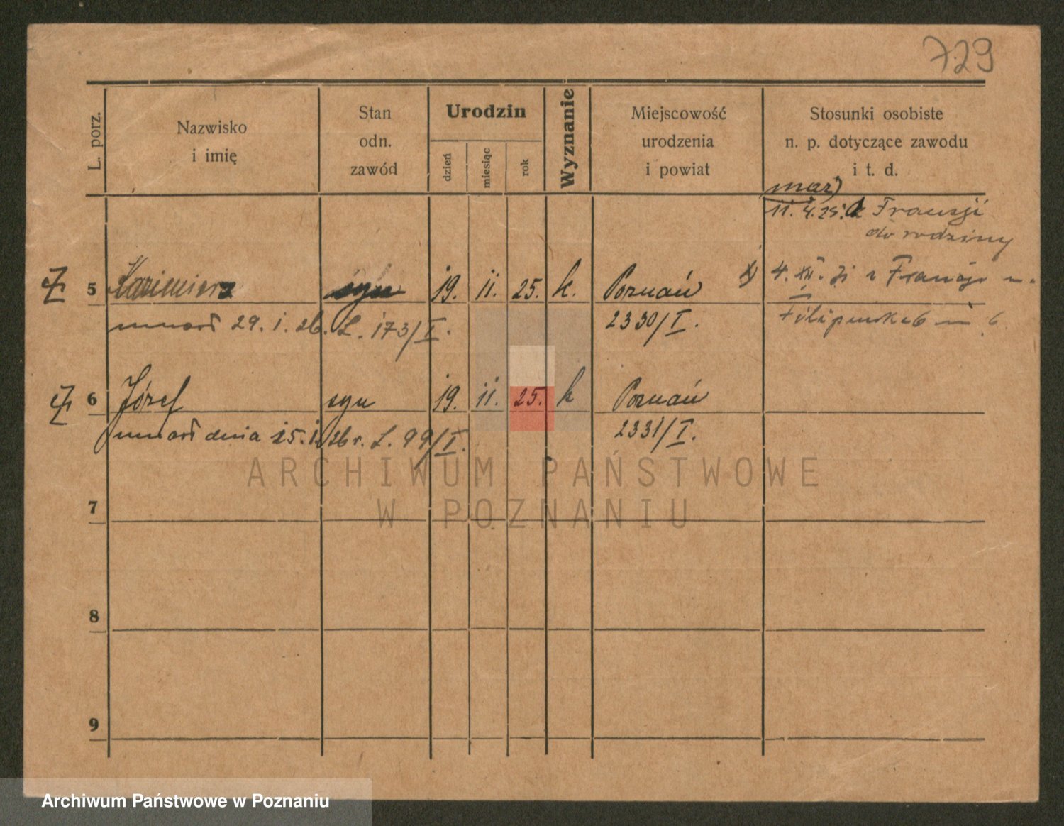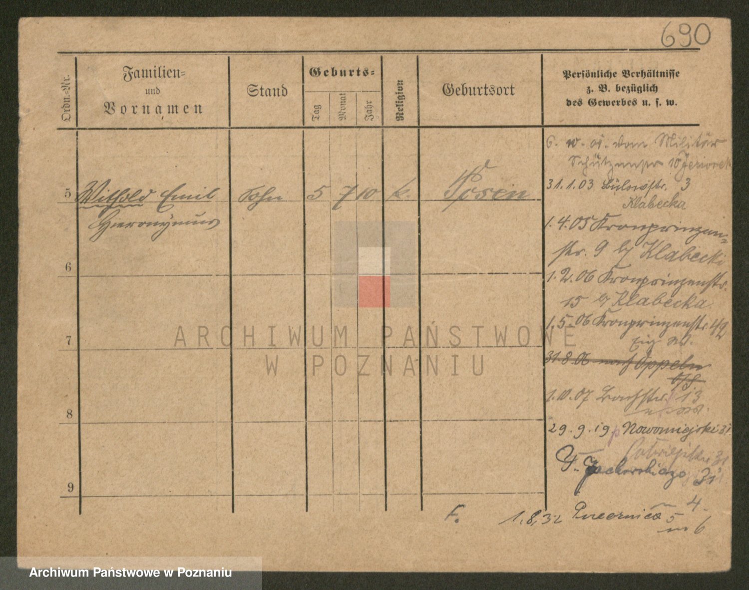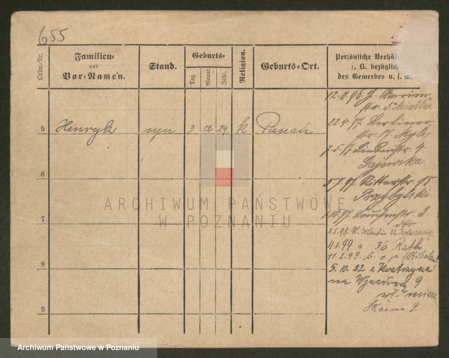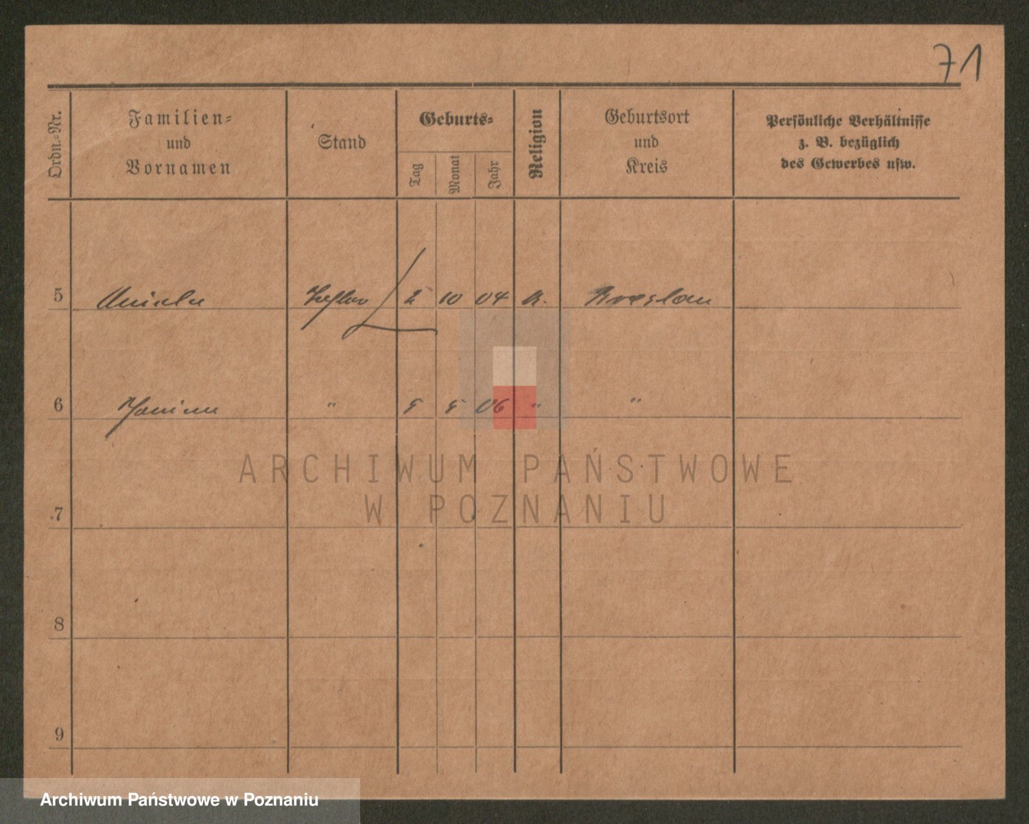 Podgląd karty osobowej dostępny jest po kliknięciu na nazwisko lub ikonkę karty. Można dokonywać powiększenia (ikony na górze) lub przechodzić między kolejnymi skanami (strzałki po bokach).