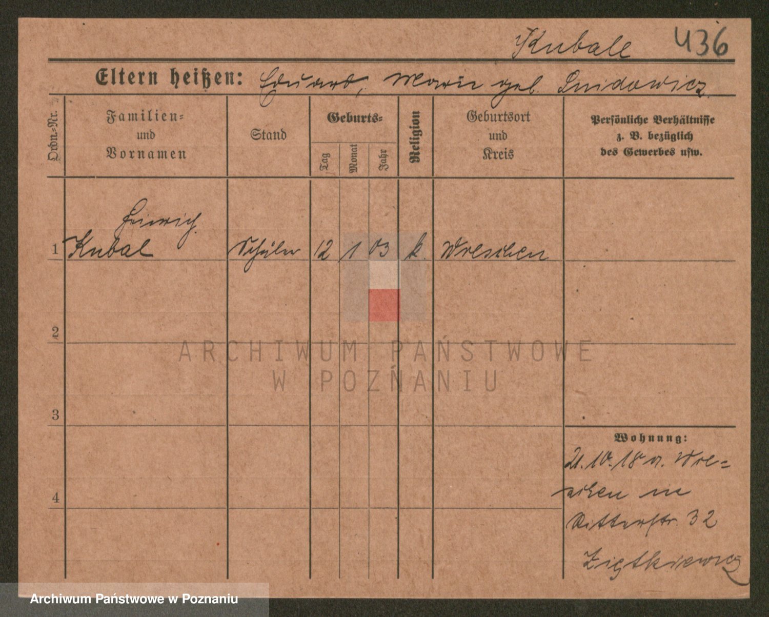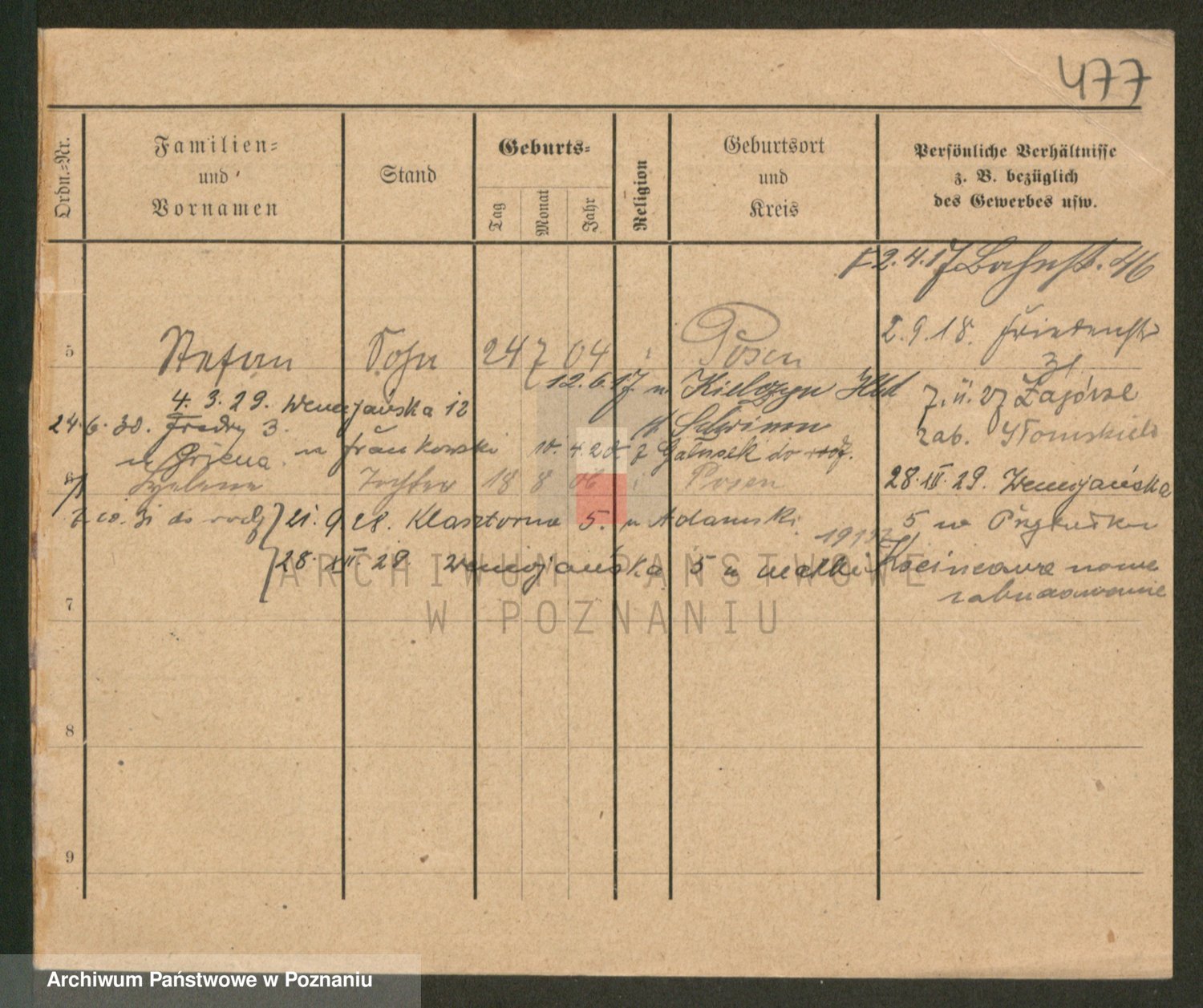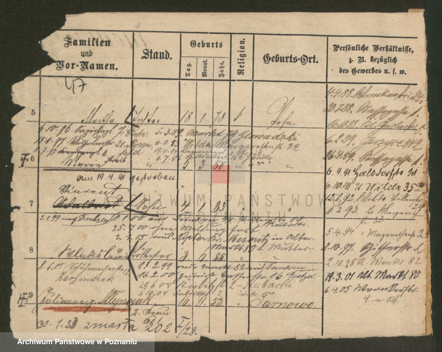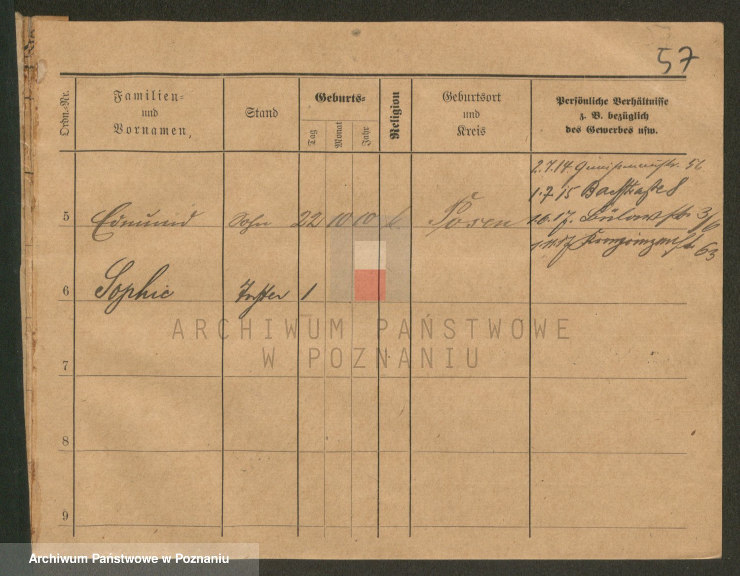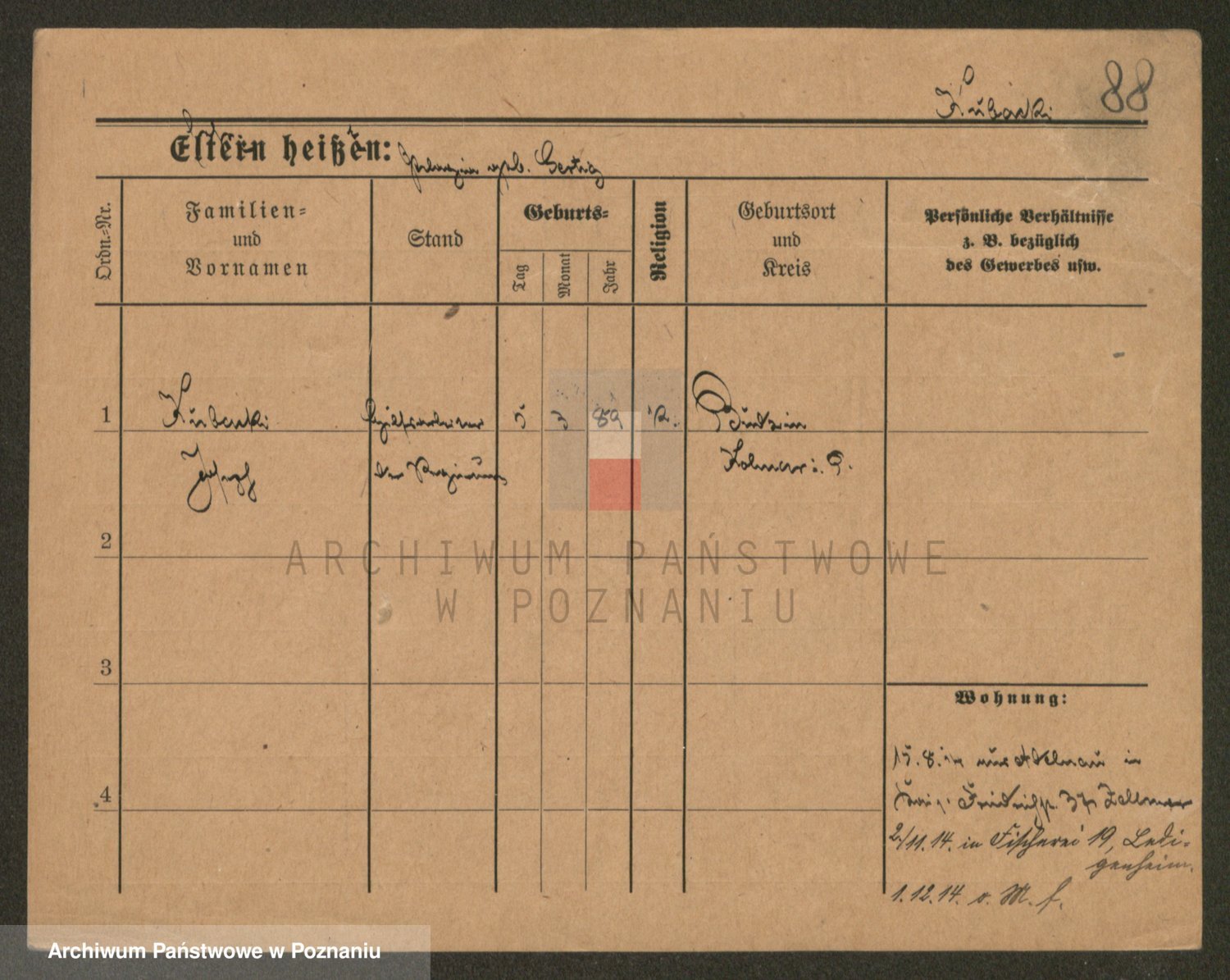 Podgląd karty osobowej dostępny jest po kliknięciu na nazwisko lub ikonkę karty. Można dokonywać powiększenia (ikony na górze) lub przechodzić między kolejnymi skanami (strzałki po bokach).