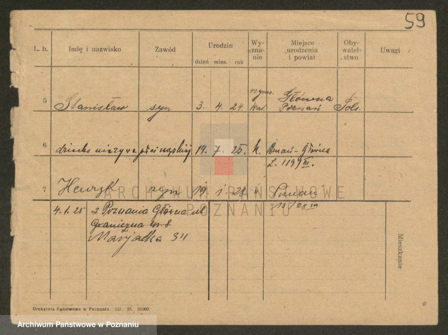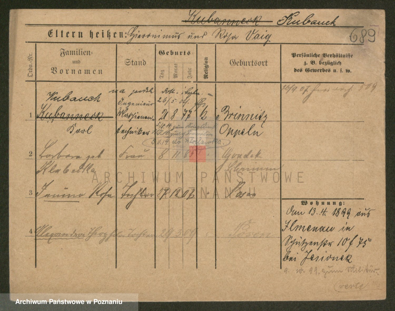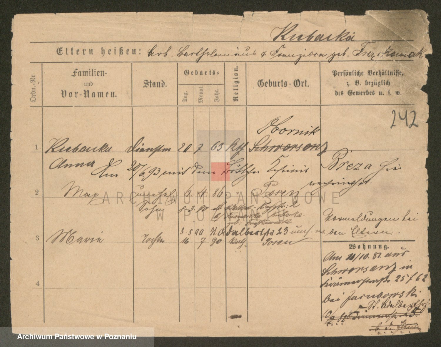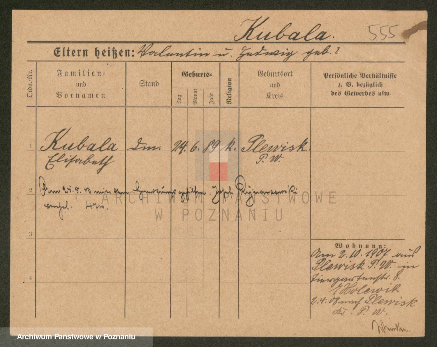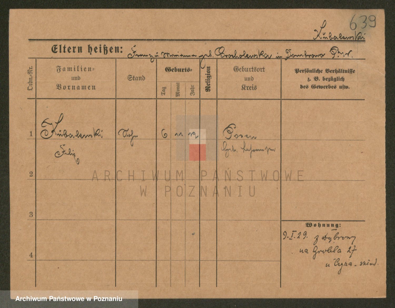 Podgląd karty osobowej dostępny jest po kliknięciu na nazwisko lub ikonkę karty. Można dokonywać powiększenia (ikony na górze) lub przechodzić między kolejnymi skanami (strzałki po bokach).