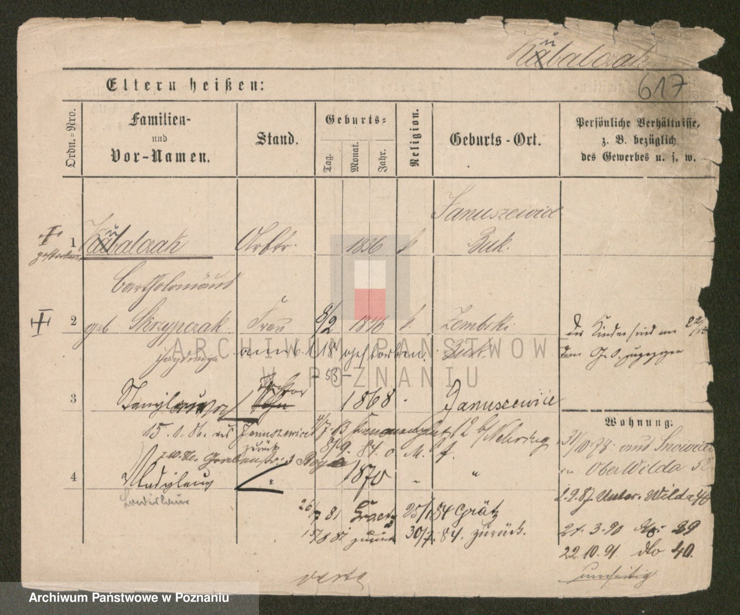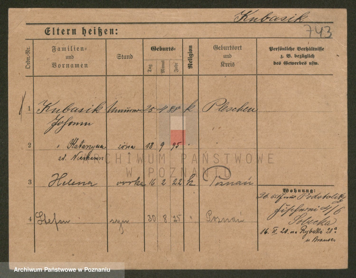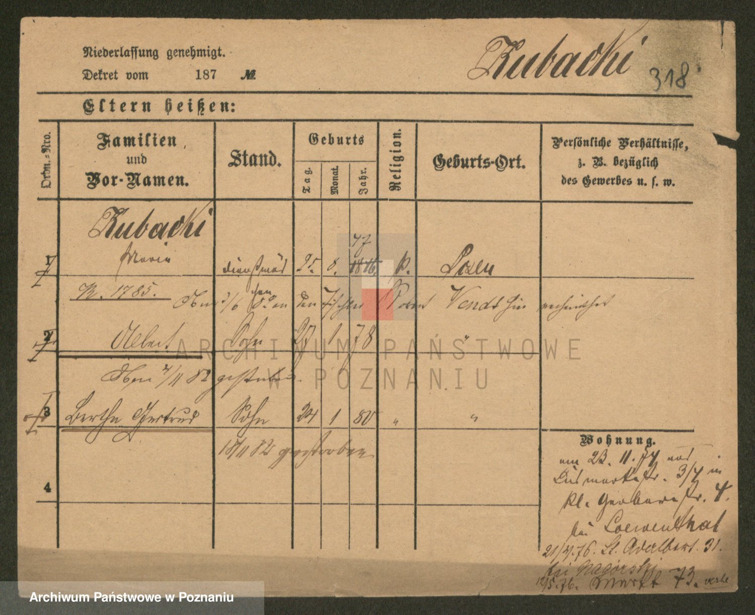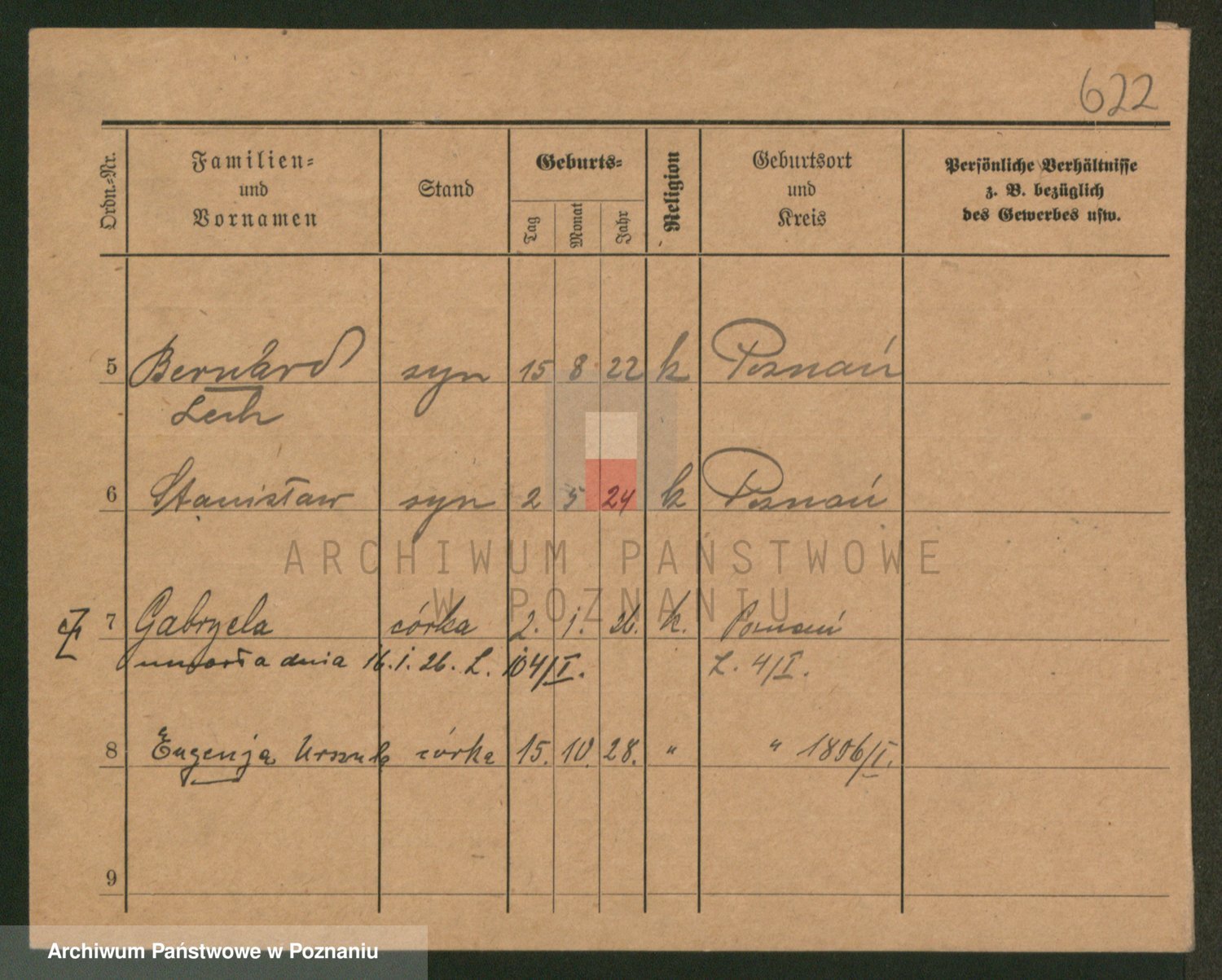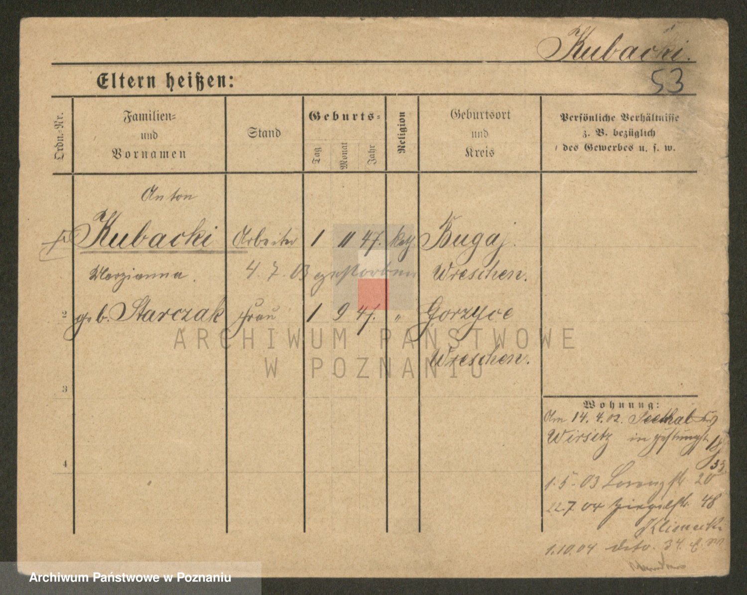 Podgląd karty osobowej dostępny jest po kliknięciu na nazwisko lub ikonkę karty. Można dokonywać powiększenia (ikony na górze) lub przechodzić między kolejnymi skanami (strzałki po bokach).