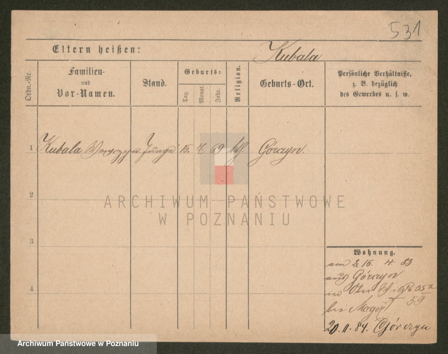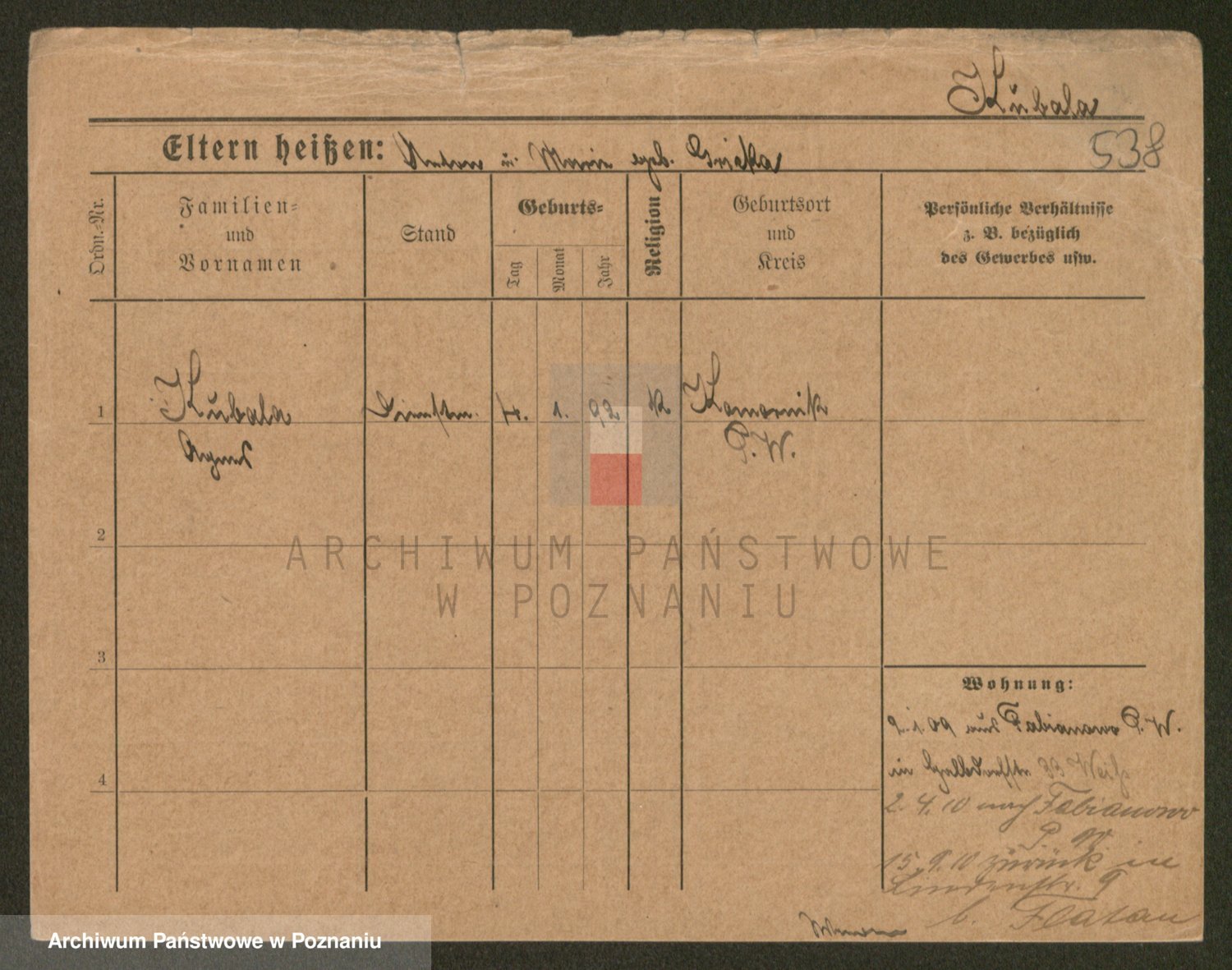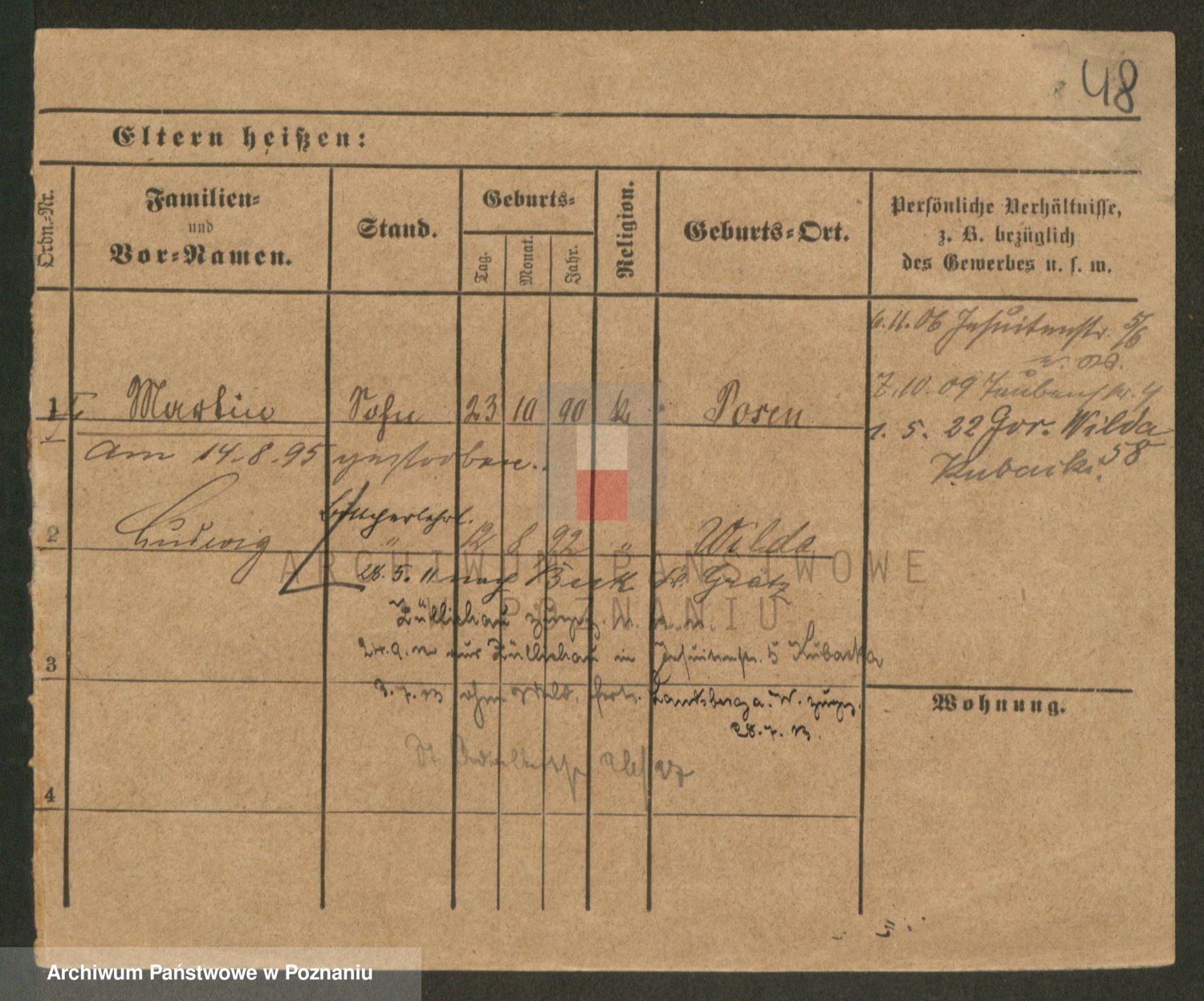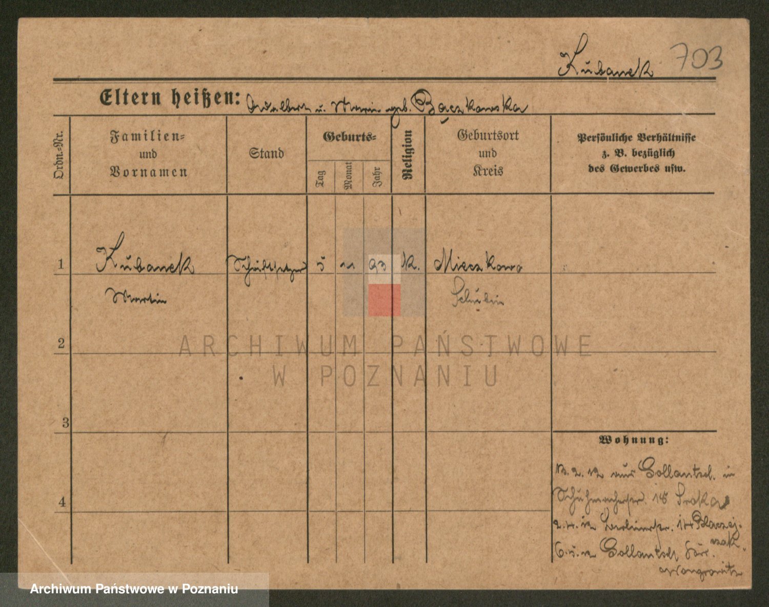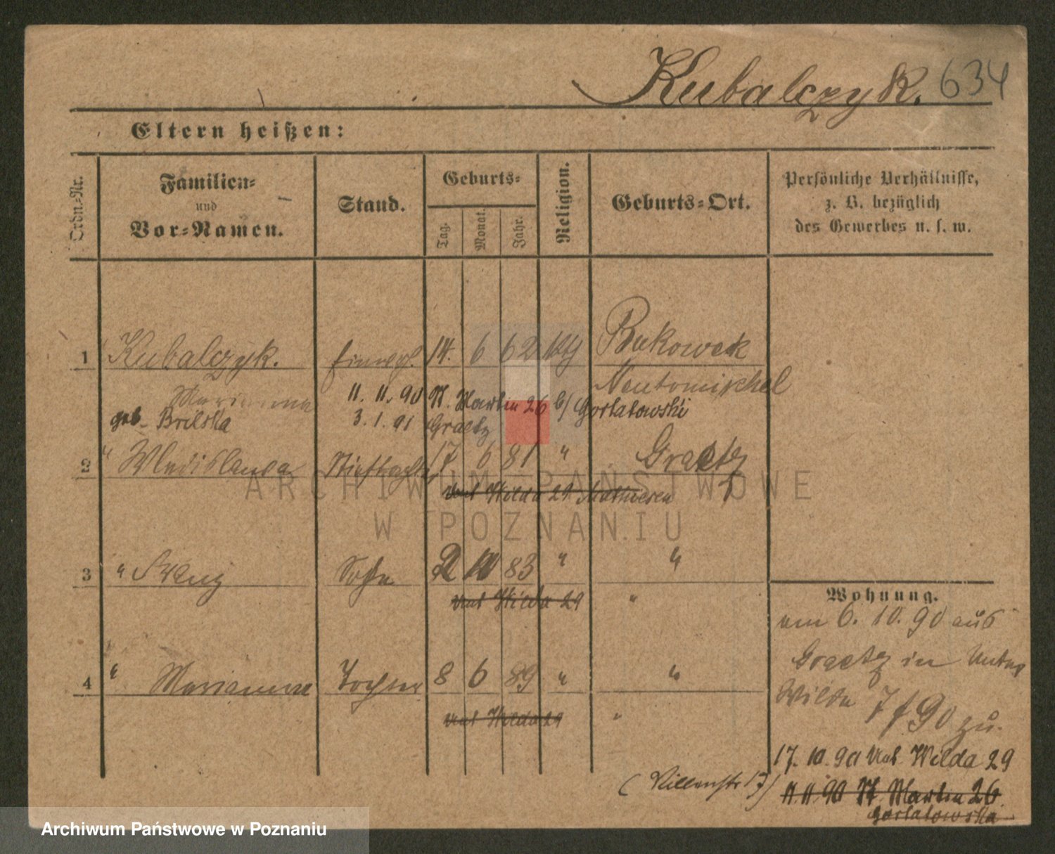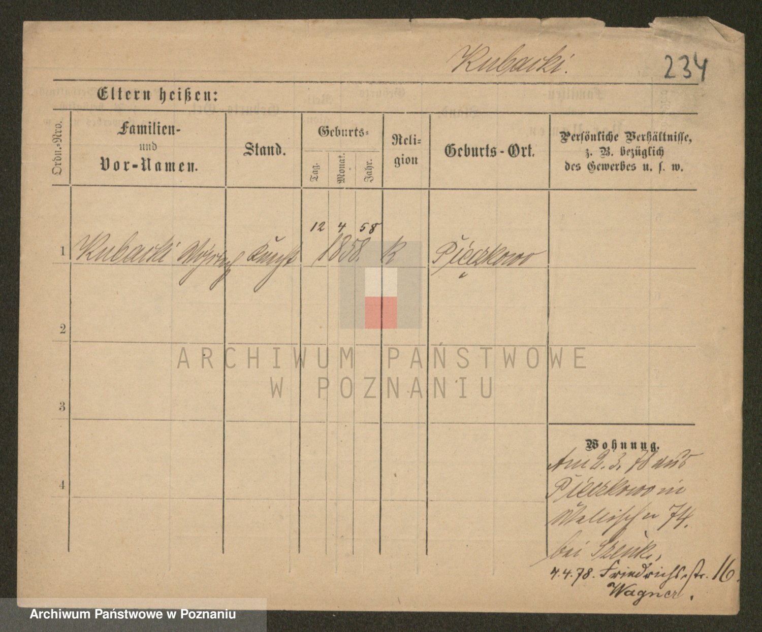 Podgląd karty osobowej dostępny jest po kliknięciu na nazwisko lub ikonkę karty. Można dokonywać powiększenia (ikony na górze) lub przechodzić między kolejnymi skanami (strzałki po bokach).