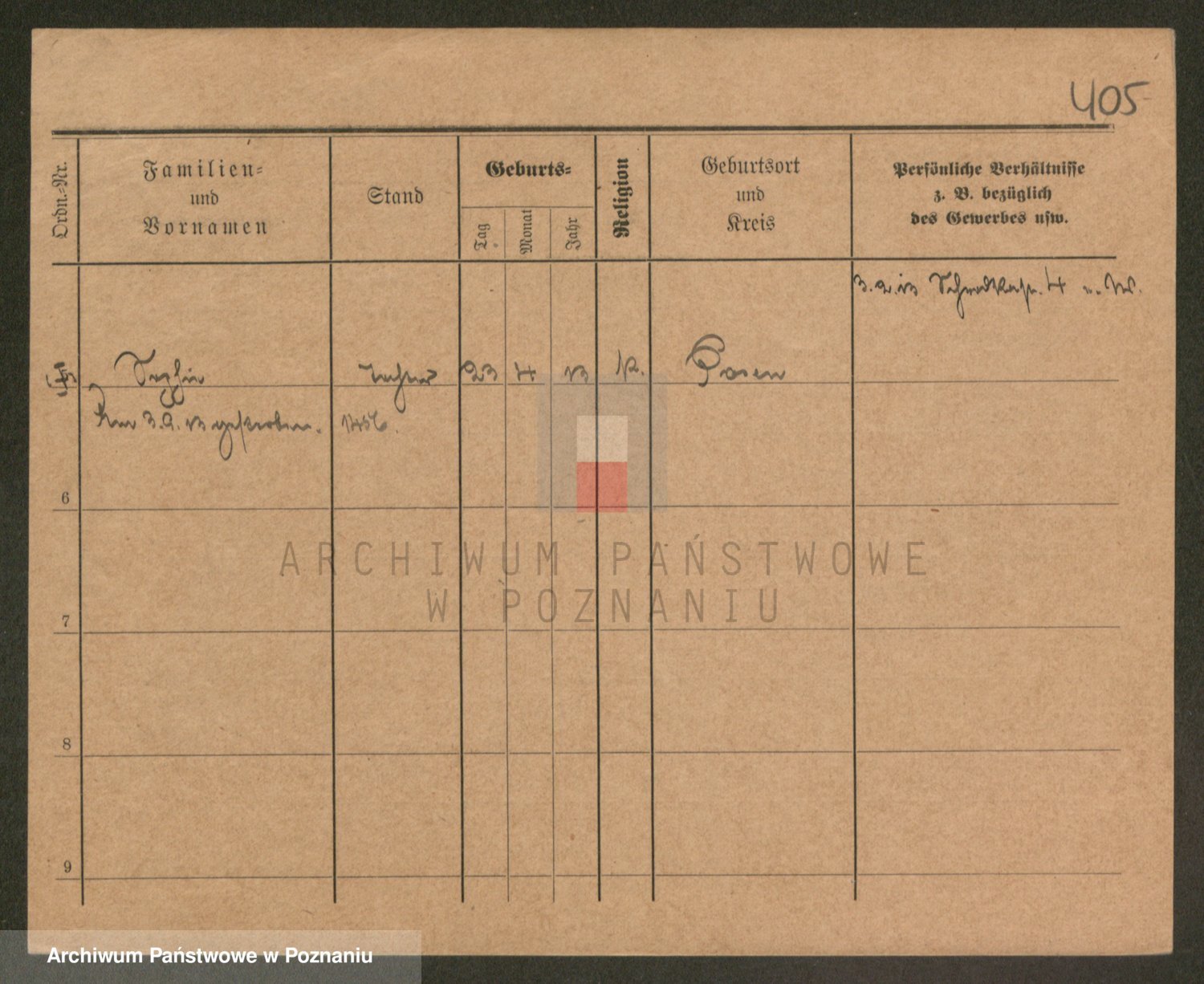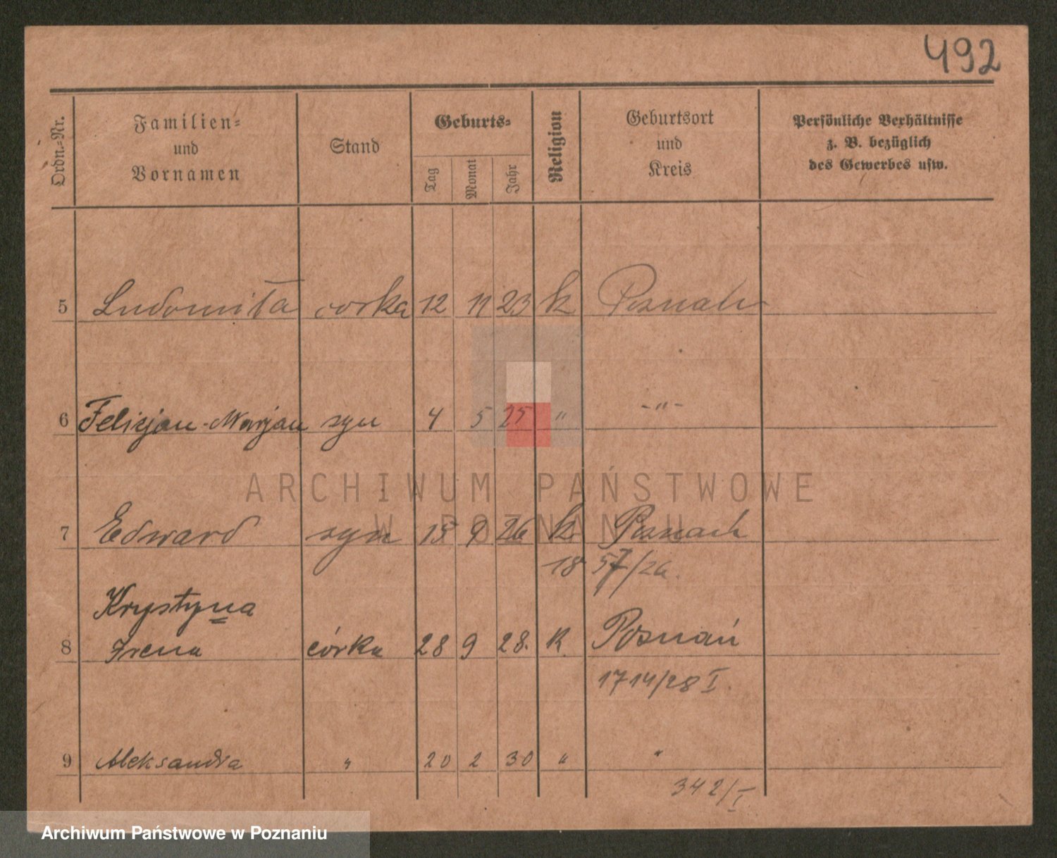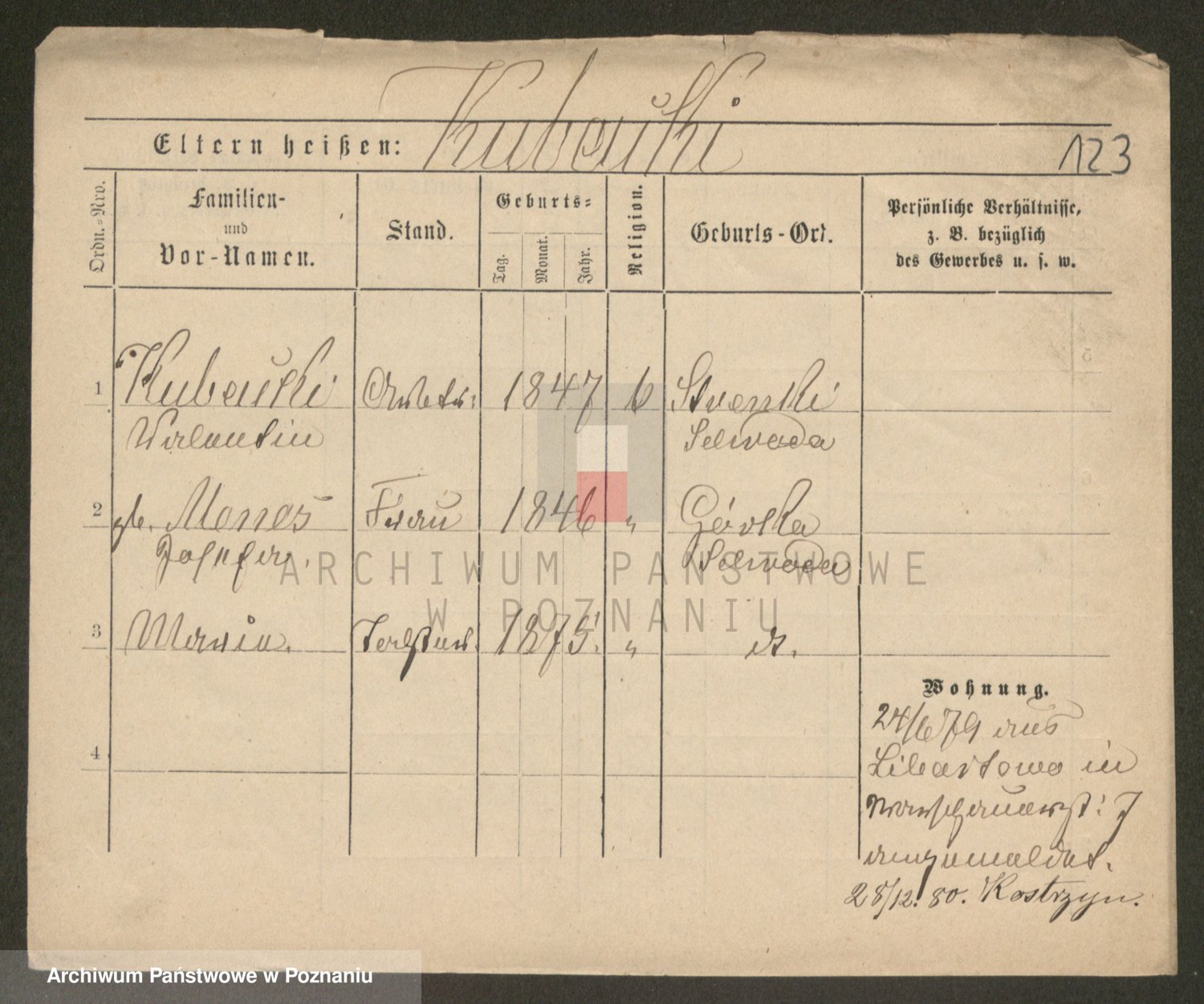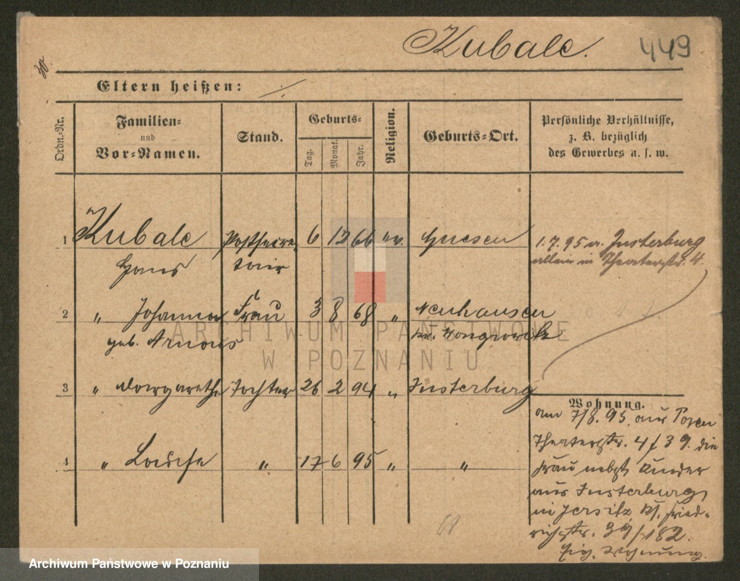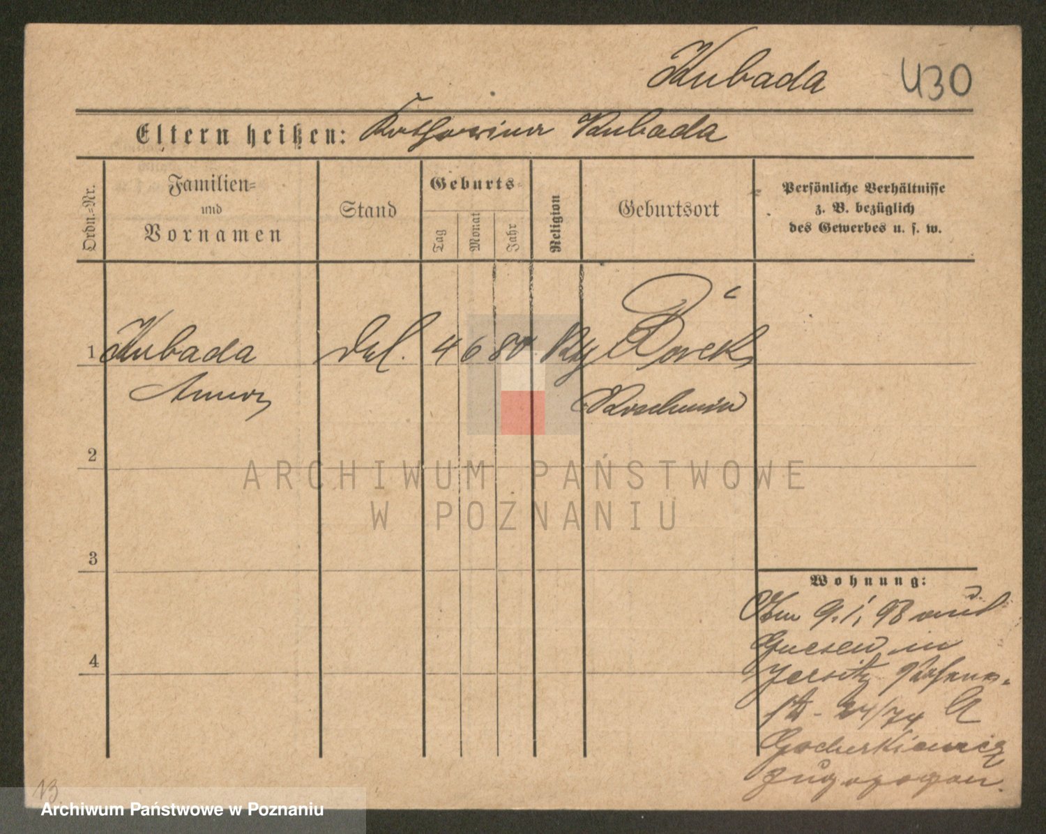 Podgląd karty osobowej dostępny jest po kliknięciu na nazwisko lub ikonkę karty. Można dokonywać powiększenia (ikony na górze) lub przechodzić między kolejnymi skanami (strzałki po bokach).