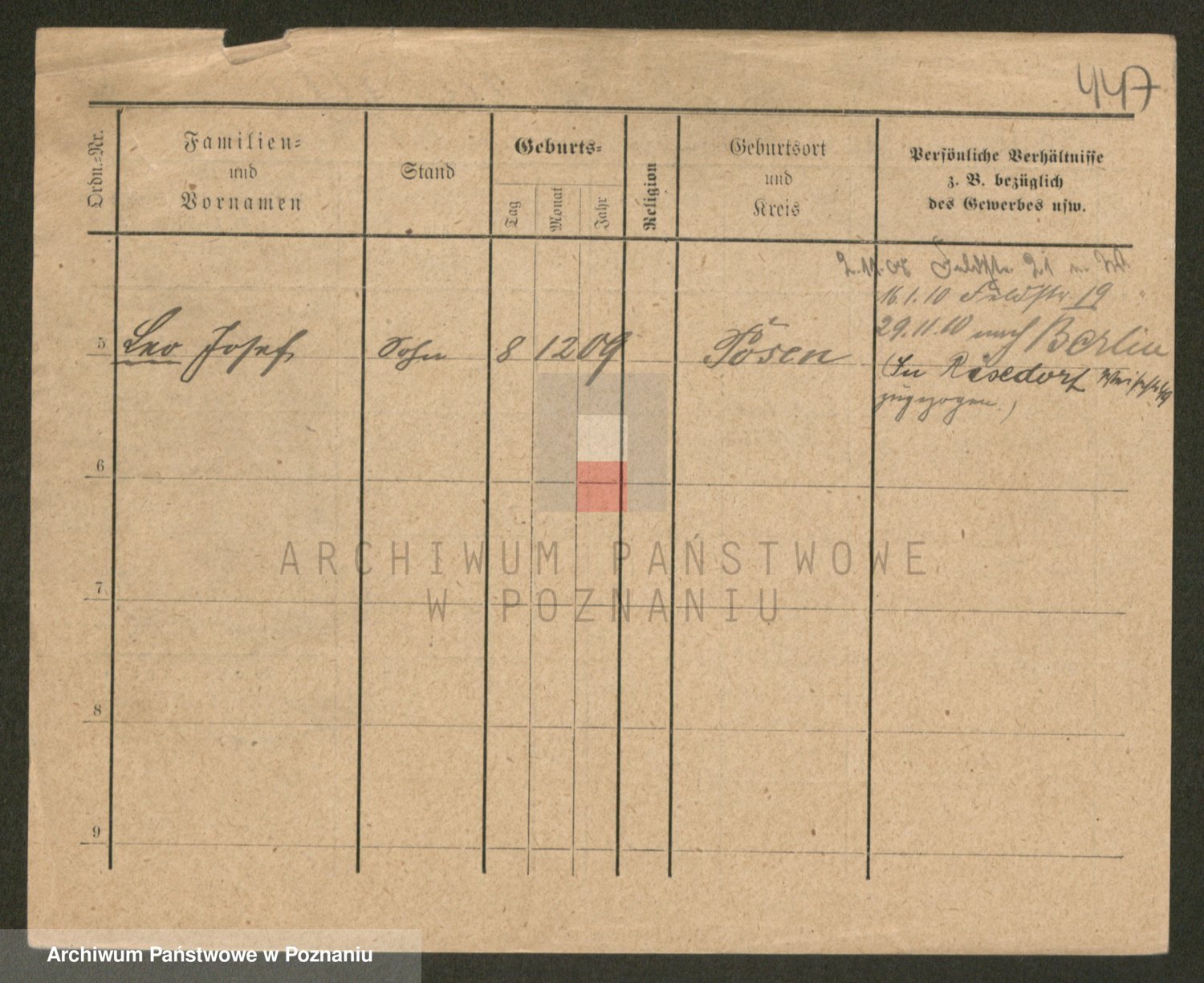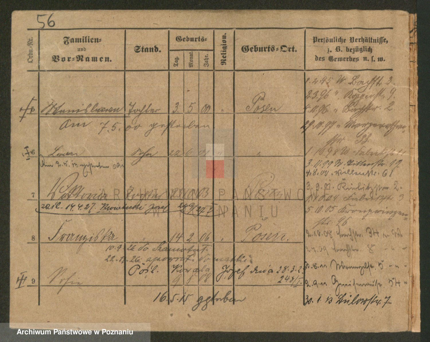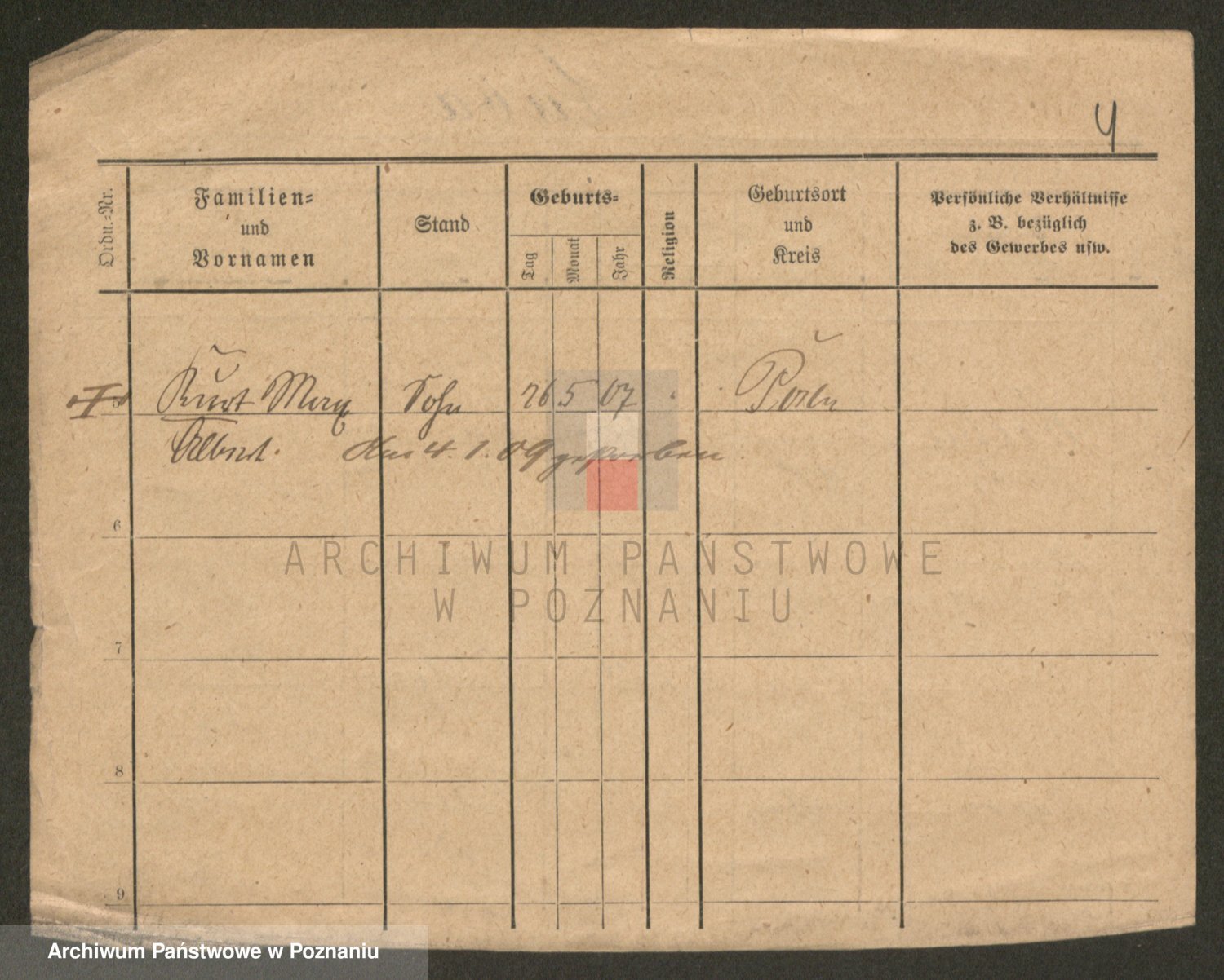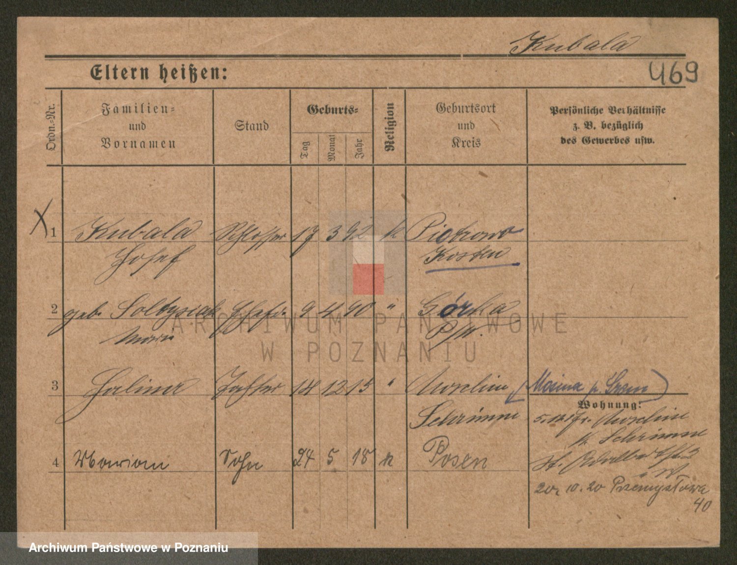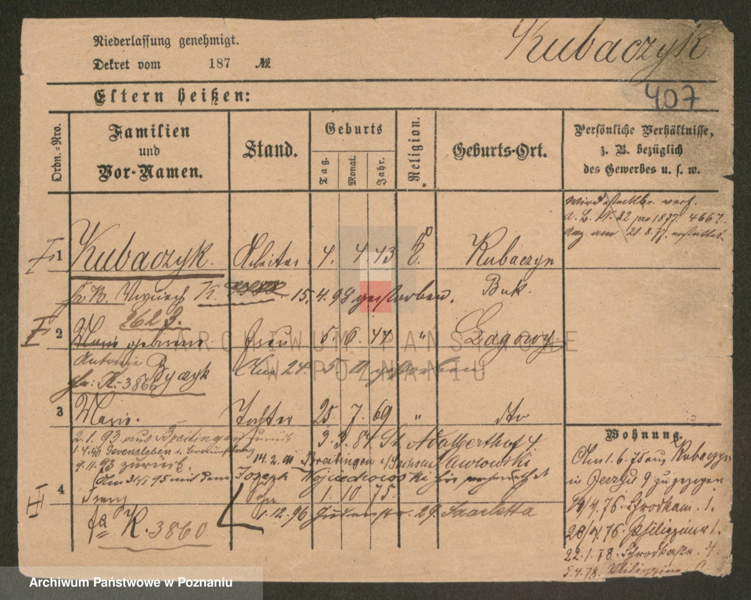 Podgląd karty osobowej dostępny jest po kliknięciu na nazwisko lub ikonkę karty. Można dokonywać powiększenia (ikony na górze) lub przechodzić między kolejnymi skanami (strzałki po bokach).