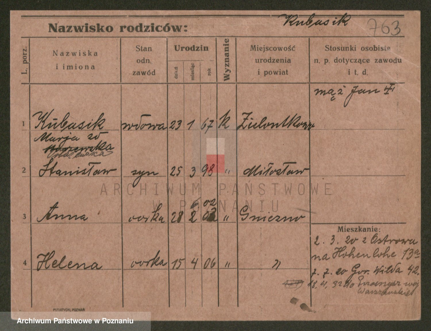 Kubasik z d. Smiałowska, Marja