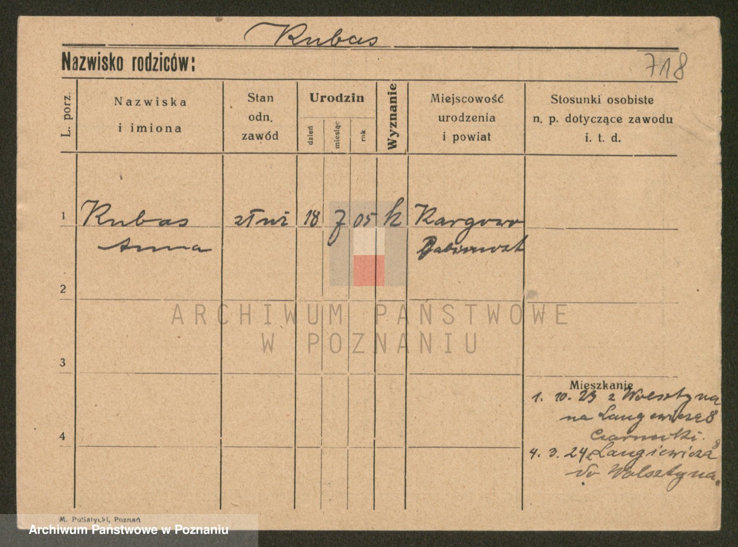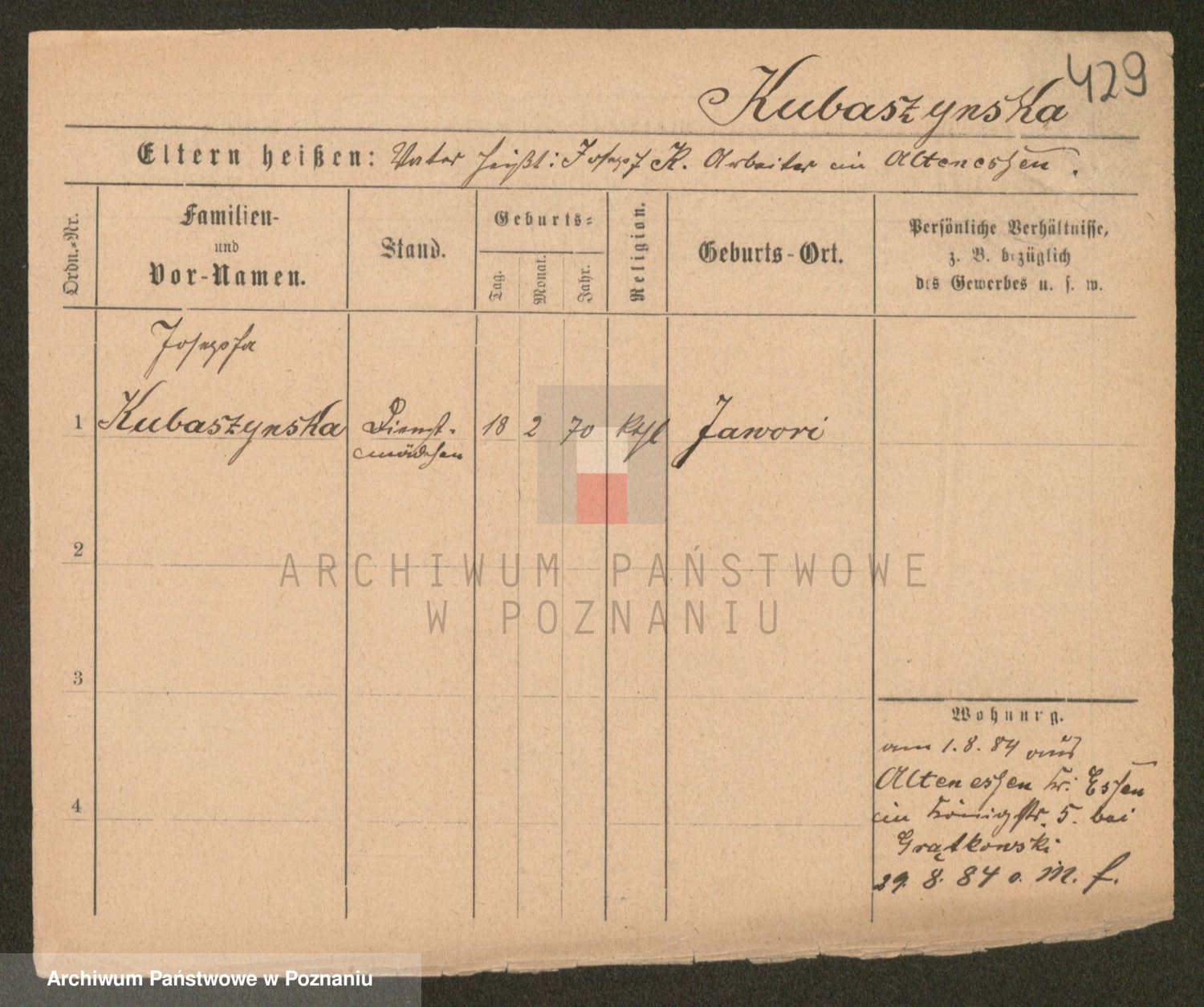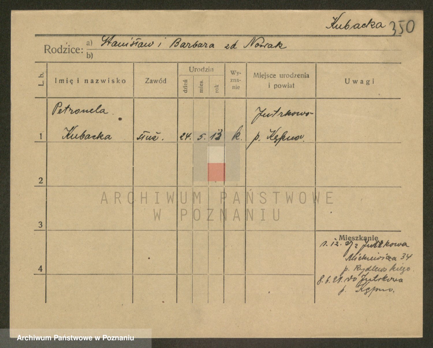 Kubasik z d. Piątkowska, Anastazja