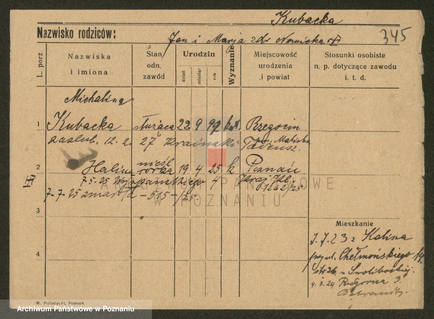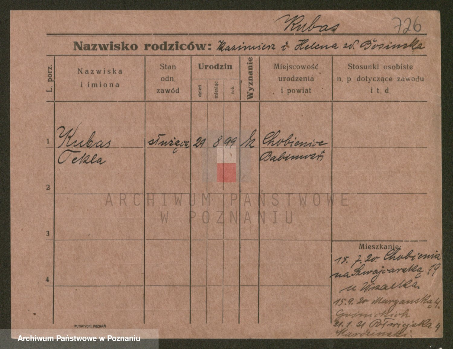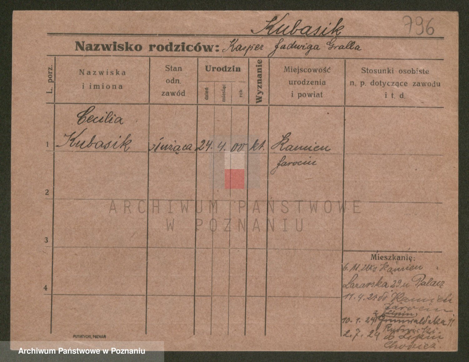 Kubasinski z d. Kasztelan, Stanislawa