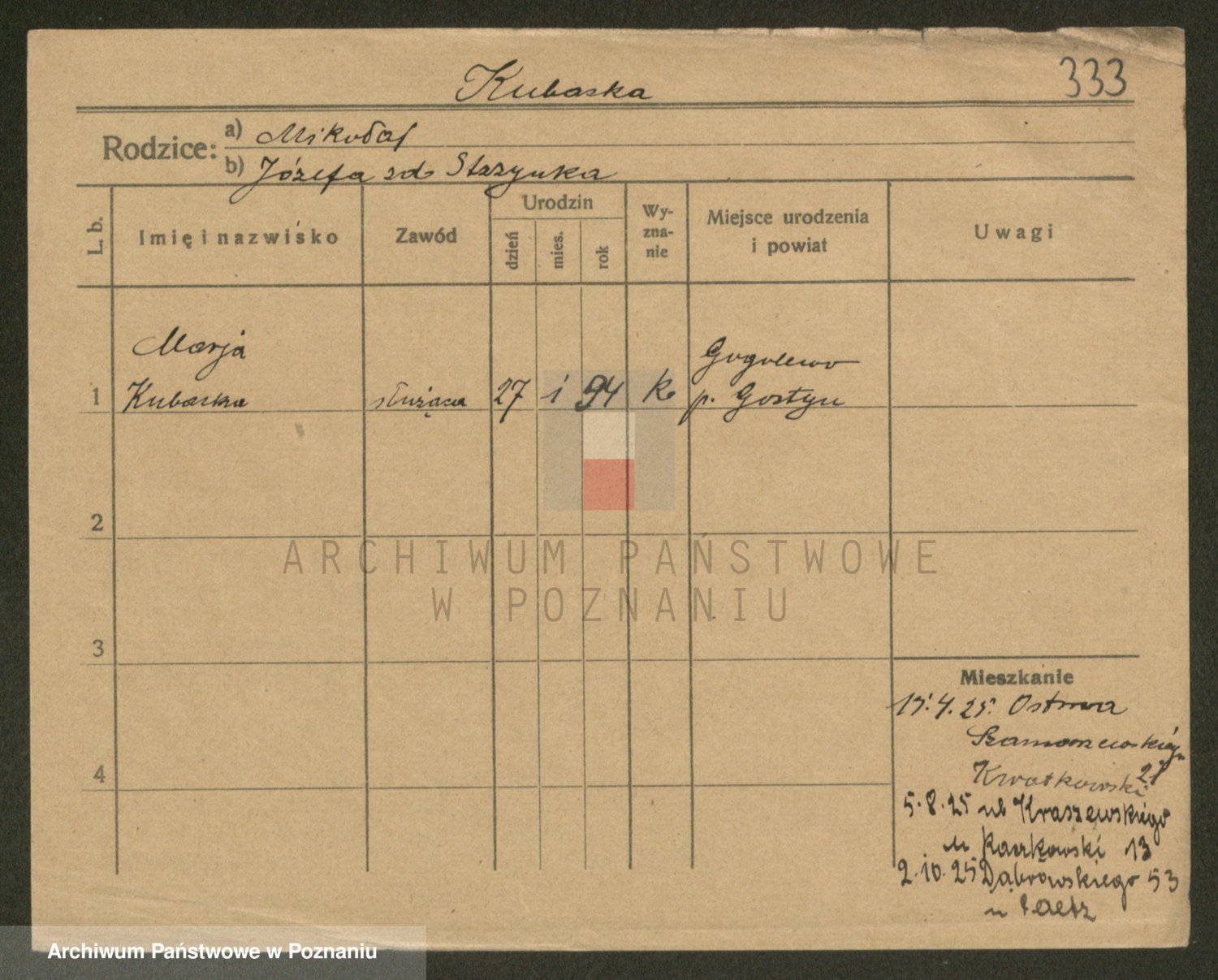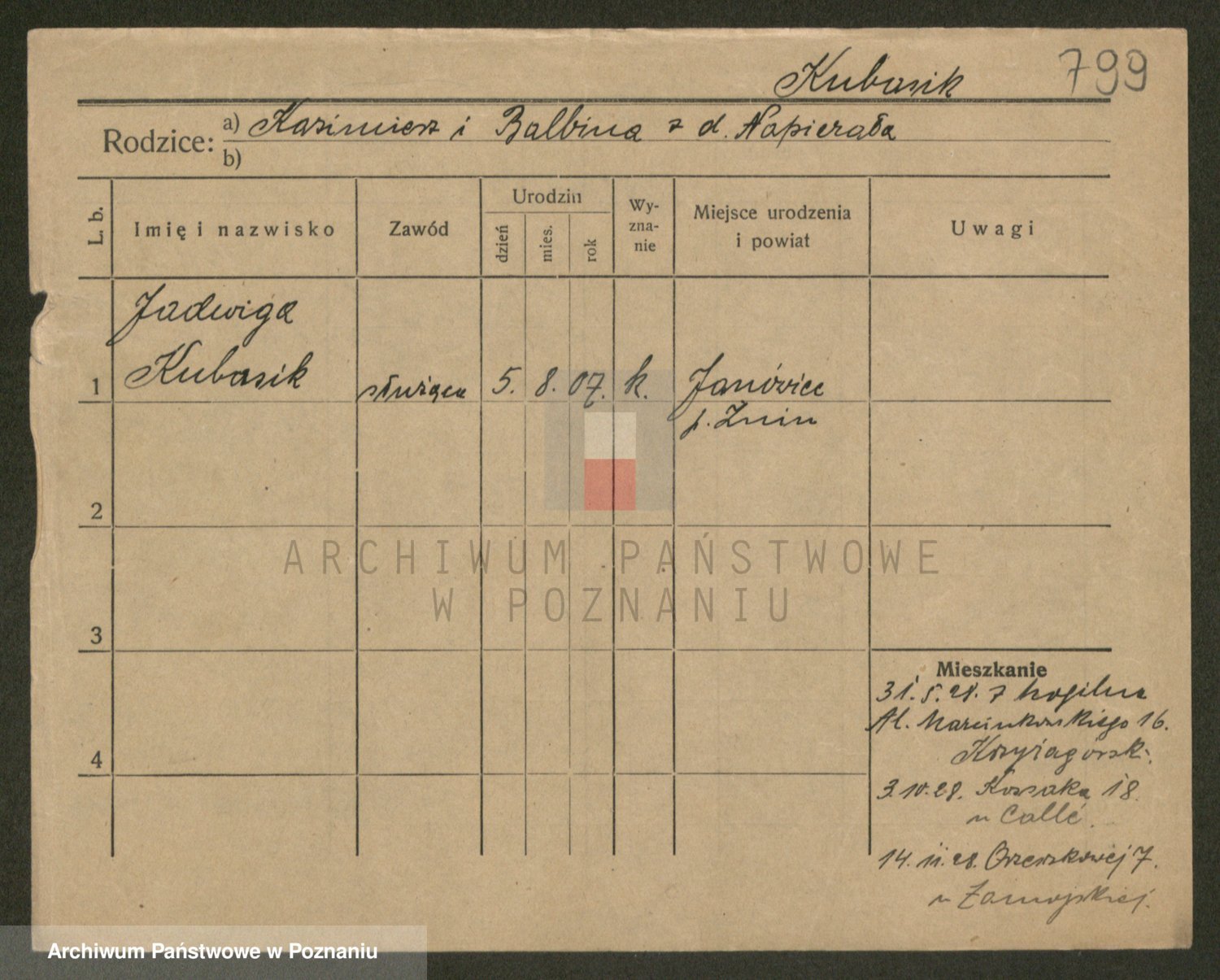 Kubasik z d. Starzewska, Marja
