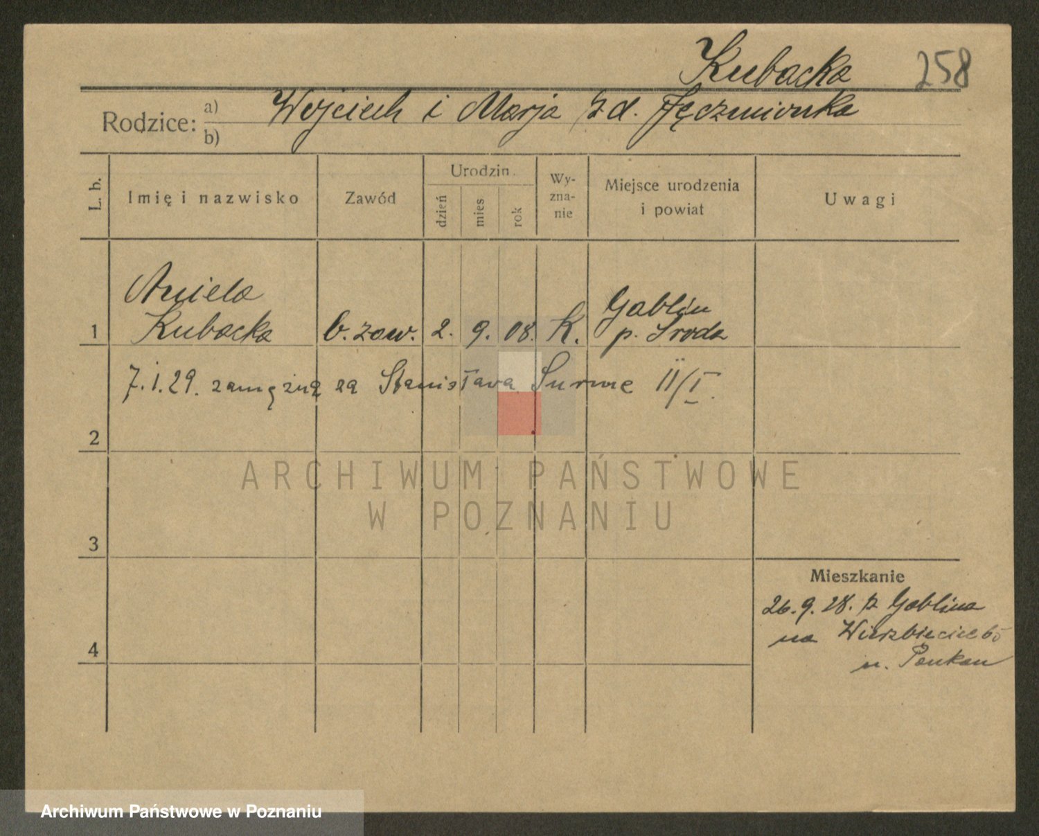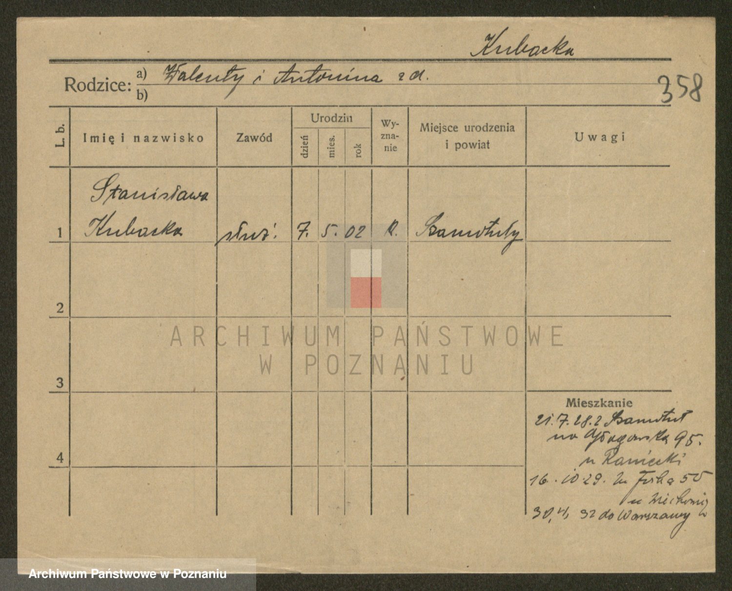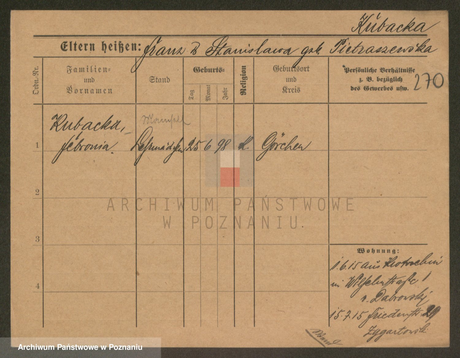 Kubacha z d. Gąsiorek, Stanisława