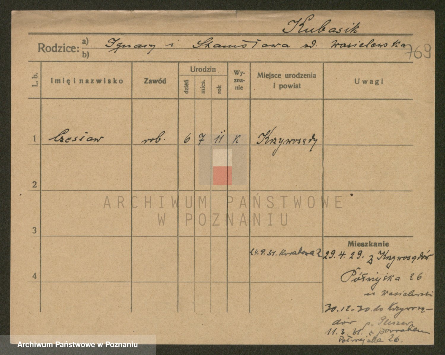 Kubasik, Kazimiera