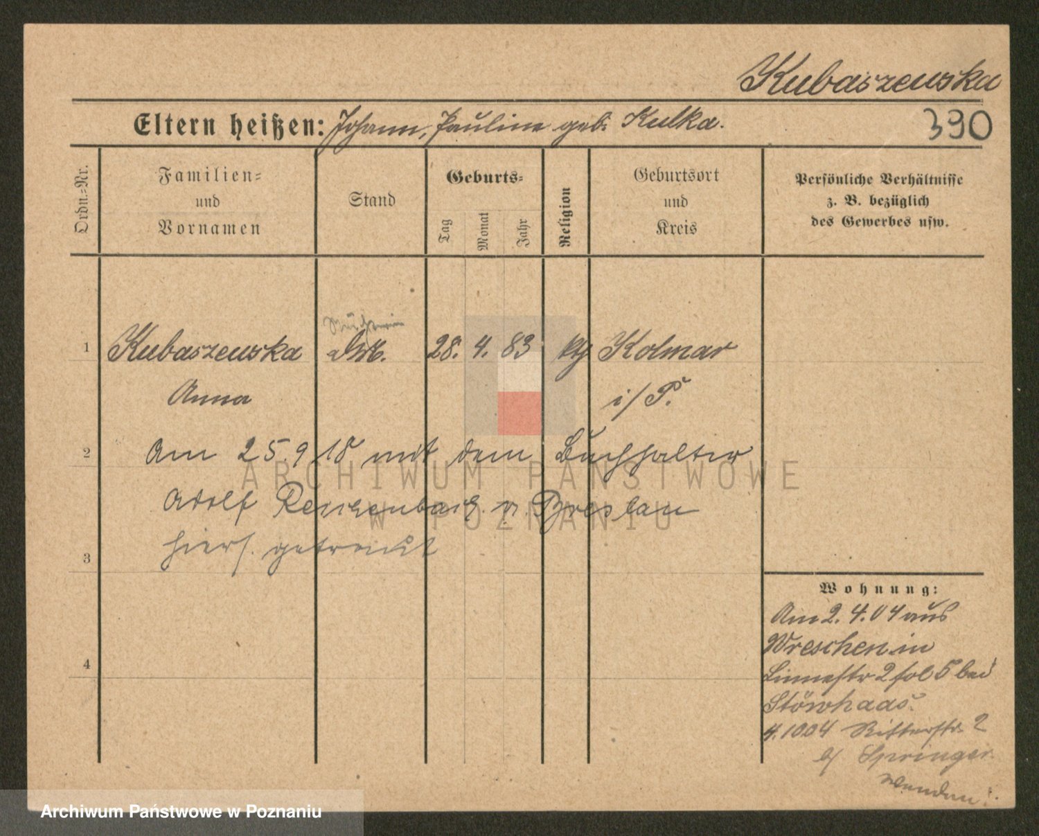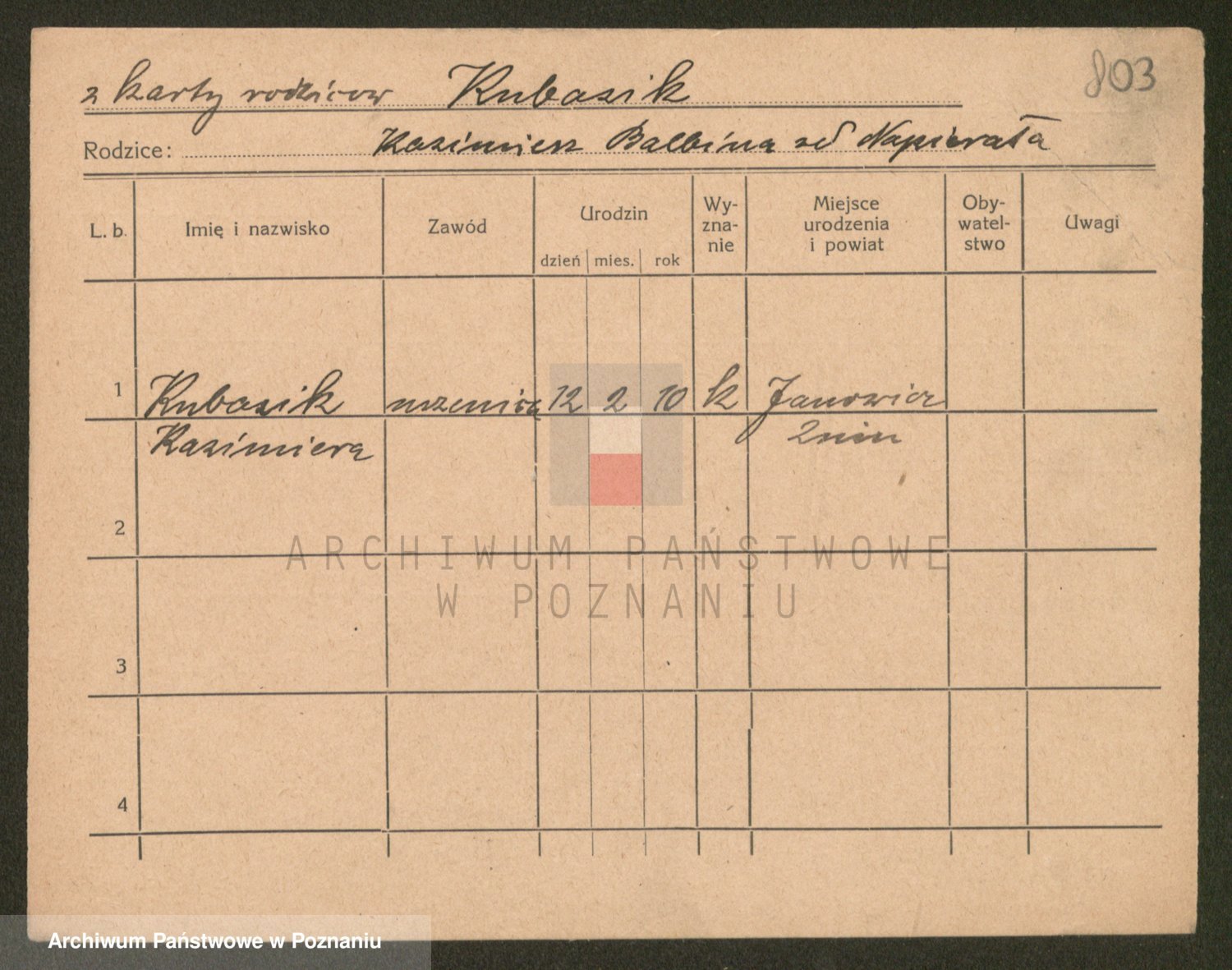Kubasik z d. Rejmaniak, Anna