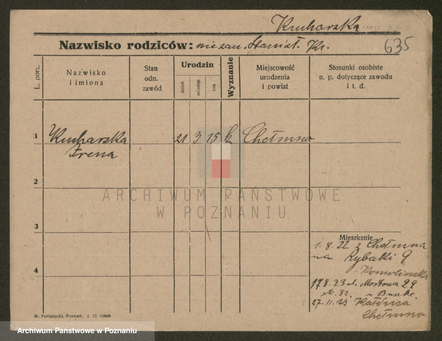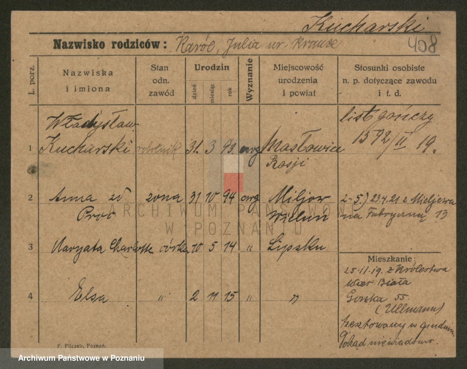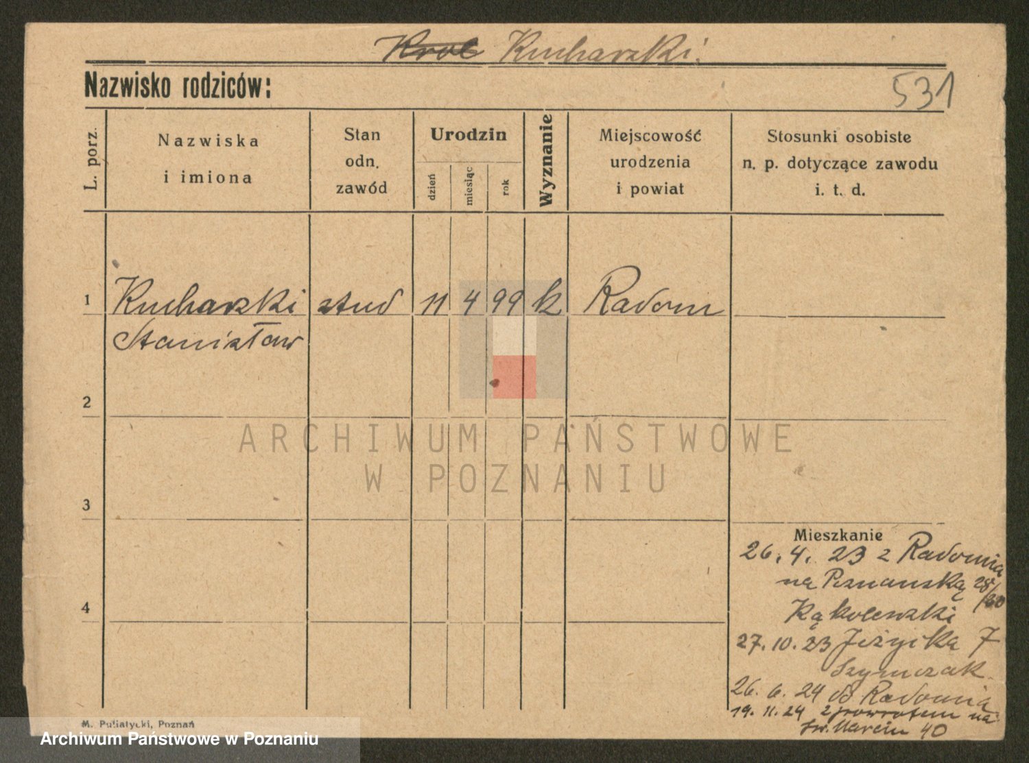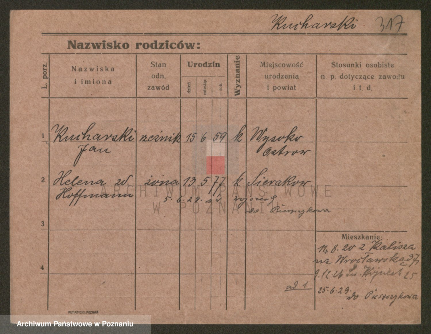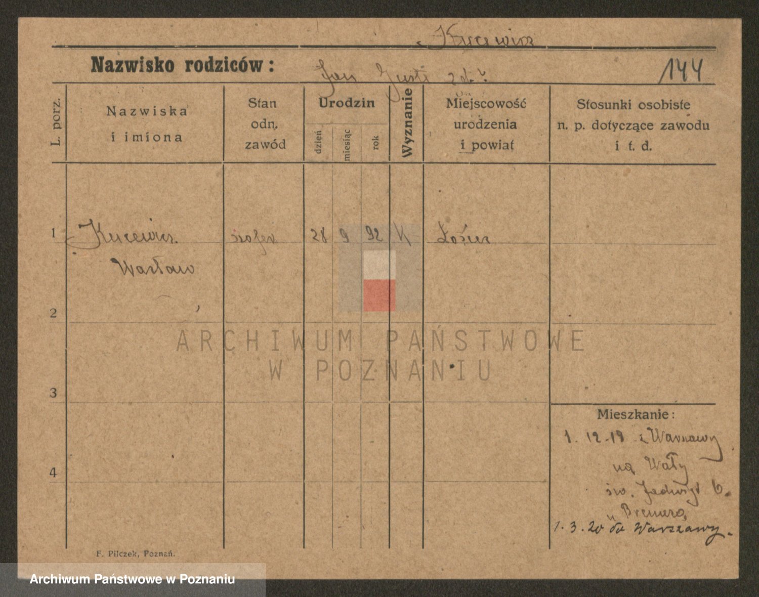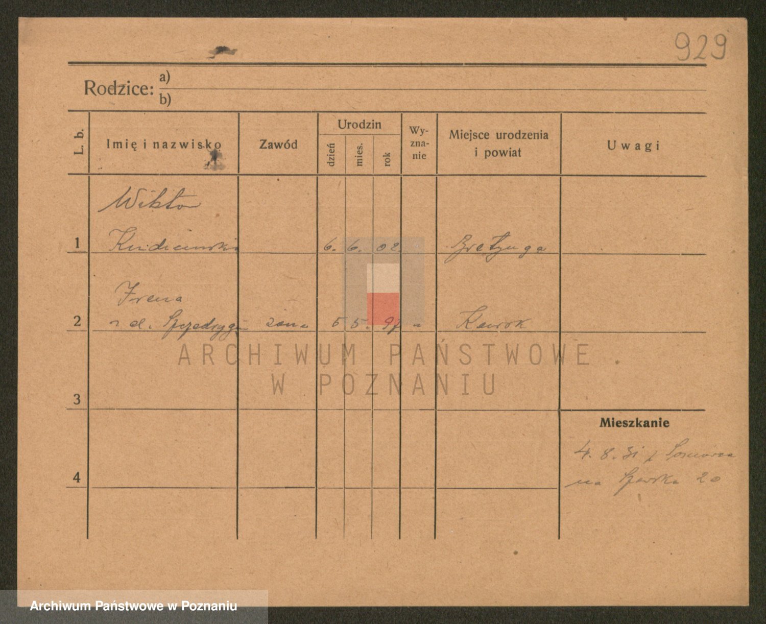 Podgląd karty osobowej dostępny jest po kliknięciu na nazwisko lub ikonkę karty. Można dokonywać powiększenia (ikony na górze) lub przechodzić między kolejnymi skanami (strzałki po bokach).
