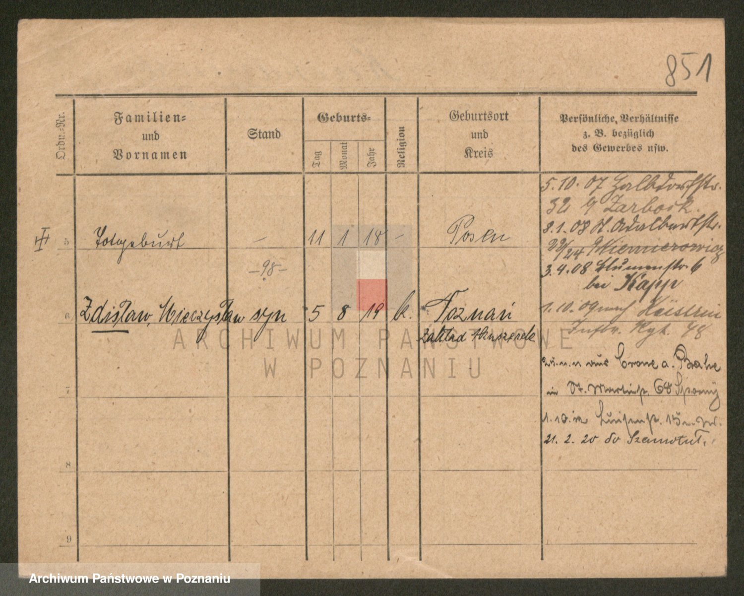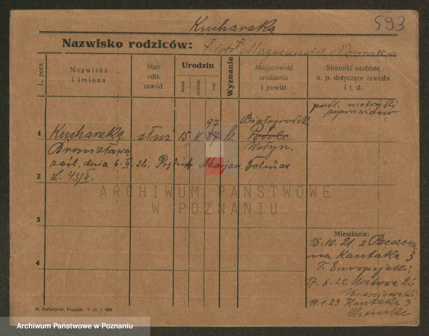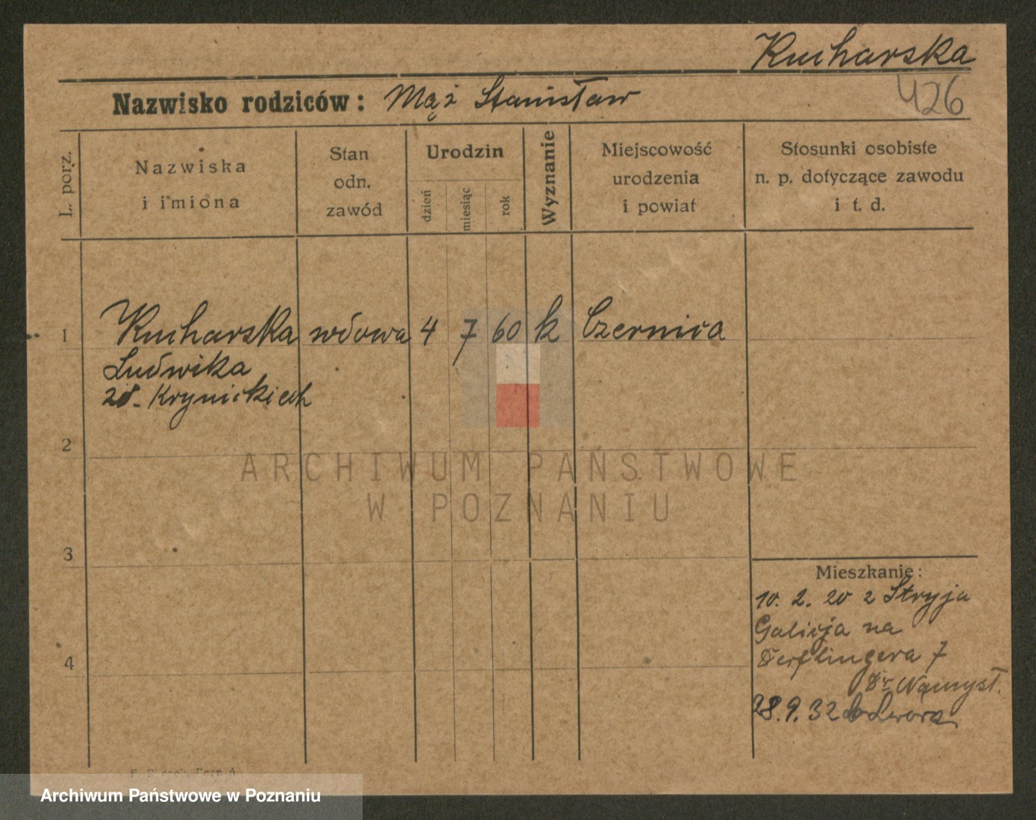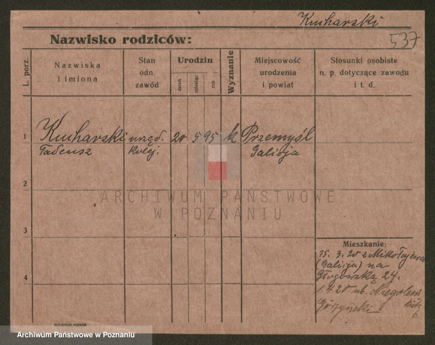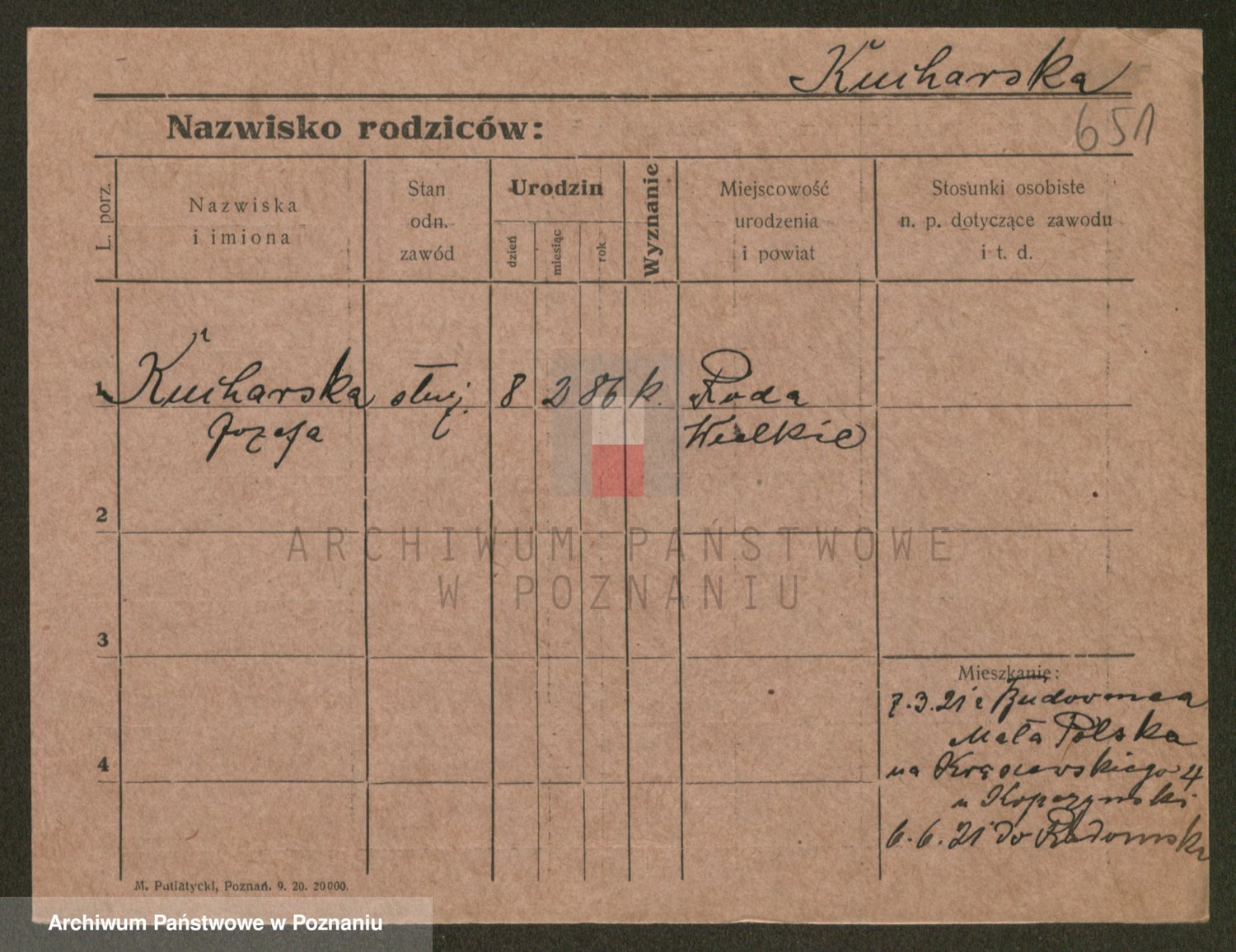 Podgląd karty osobowej dostępny jest po kliknięciu na nazwisko lub ikonkę karty. Można dokonywać powiększenia (ikony na górze) lub przechodzić między kolejnymi skanami (strzałki po bokach).