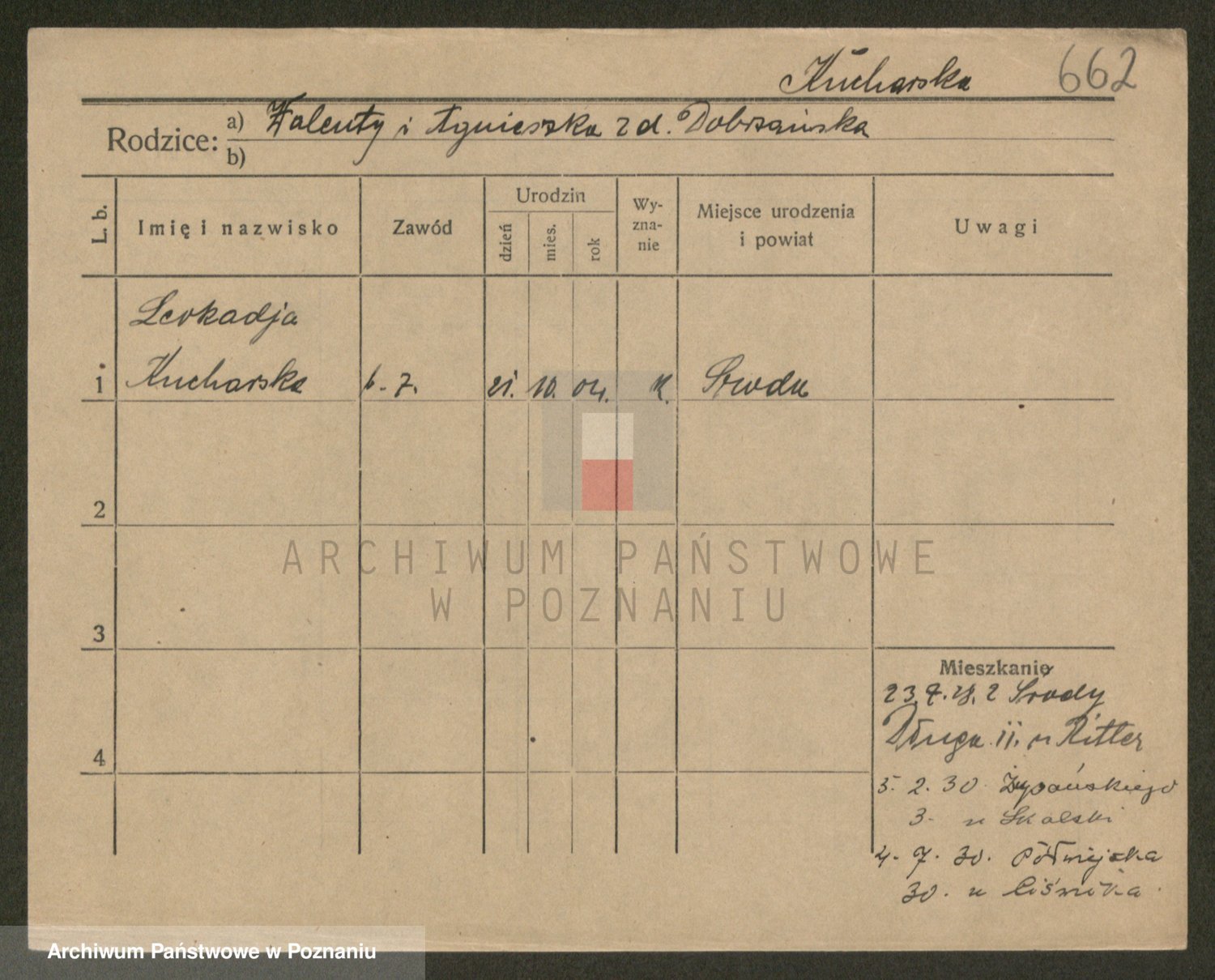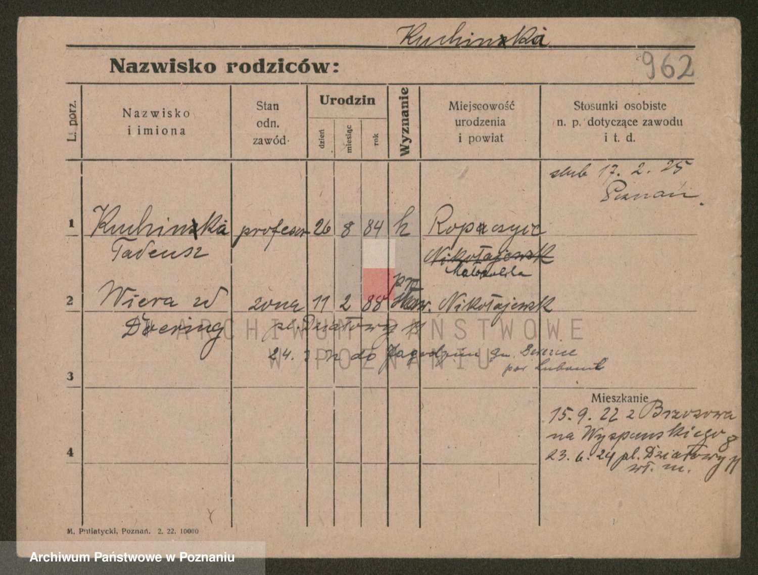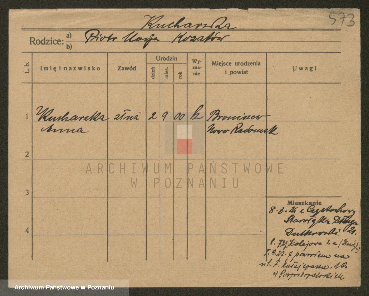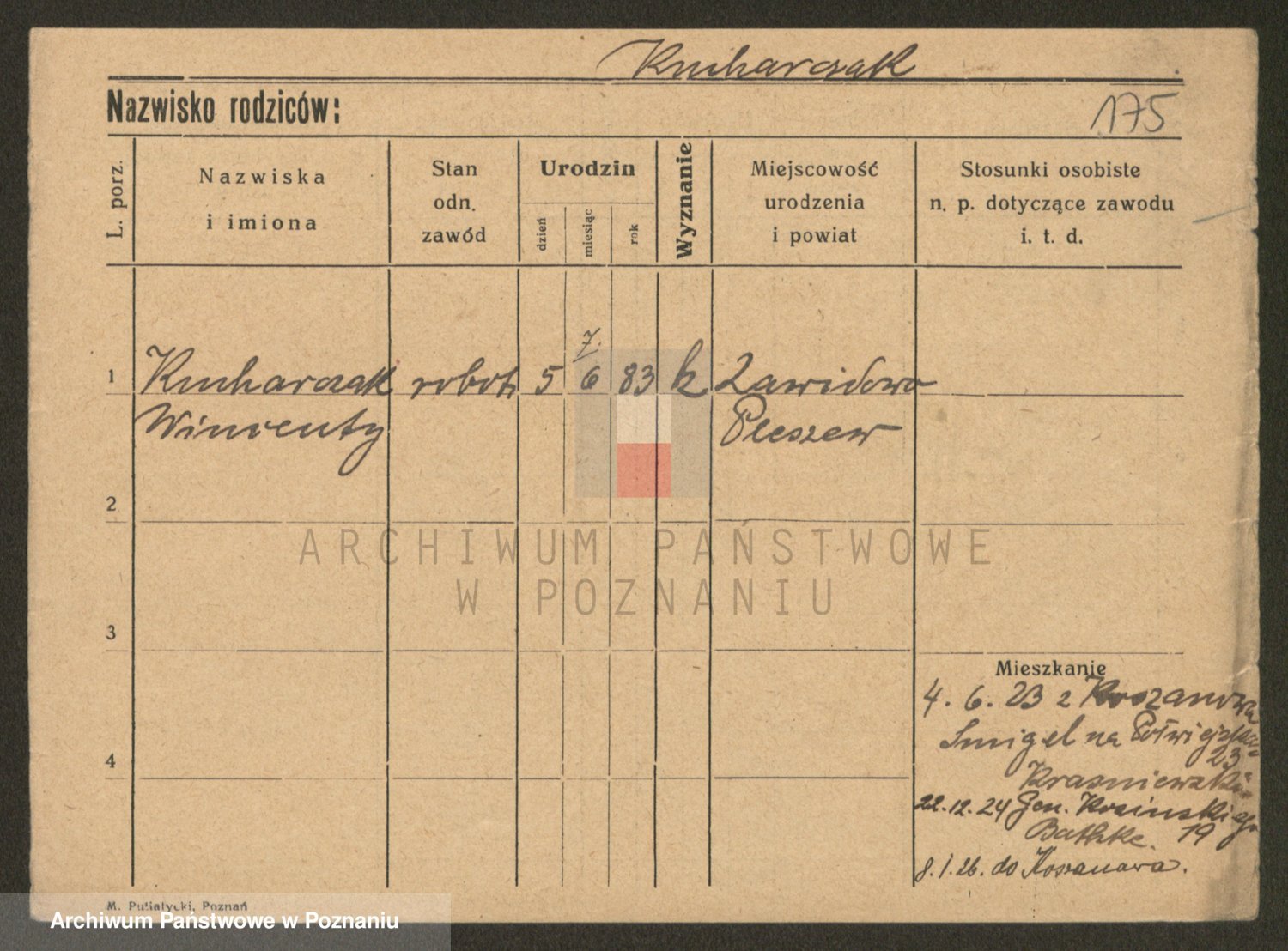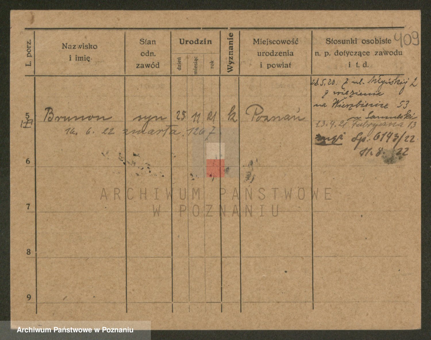 Podgląd karty osobowej dostępny jest po kliknięciu na nazwisko lub ikonkę karty. Można dokonywać powiększenia (ikony na górze) lub przechodzić między kolejnymi skanami (strzałki po bokach).
