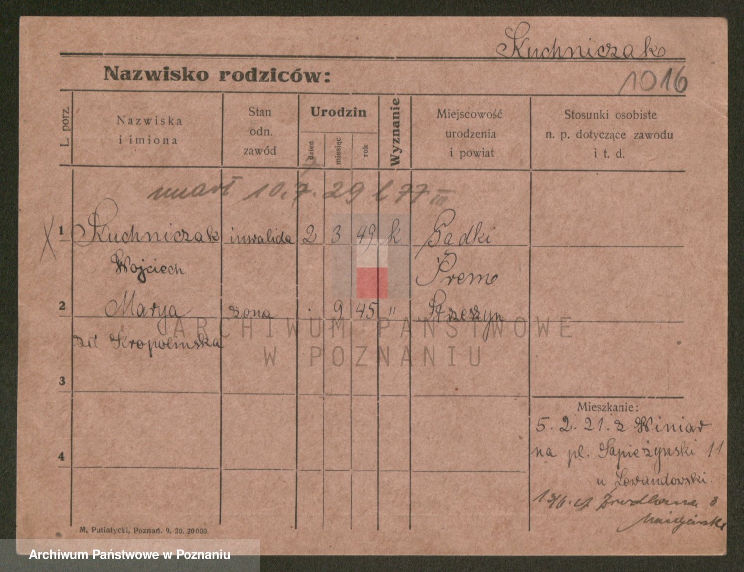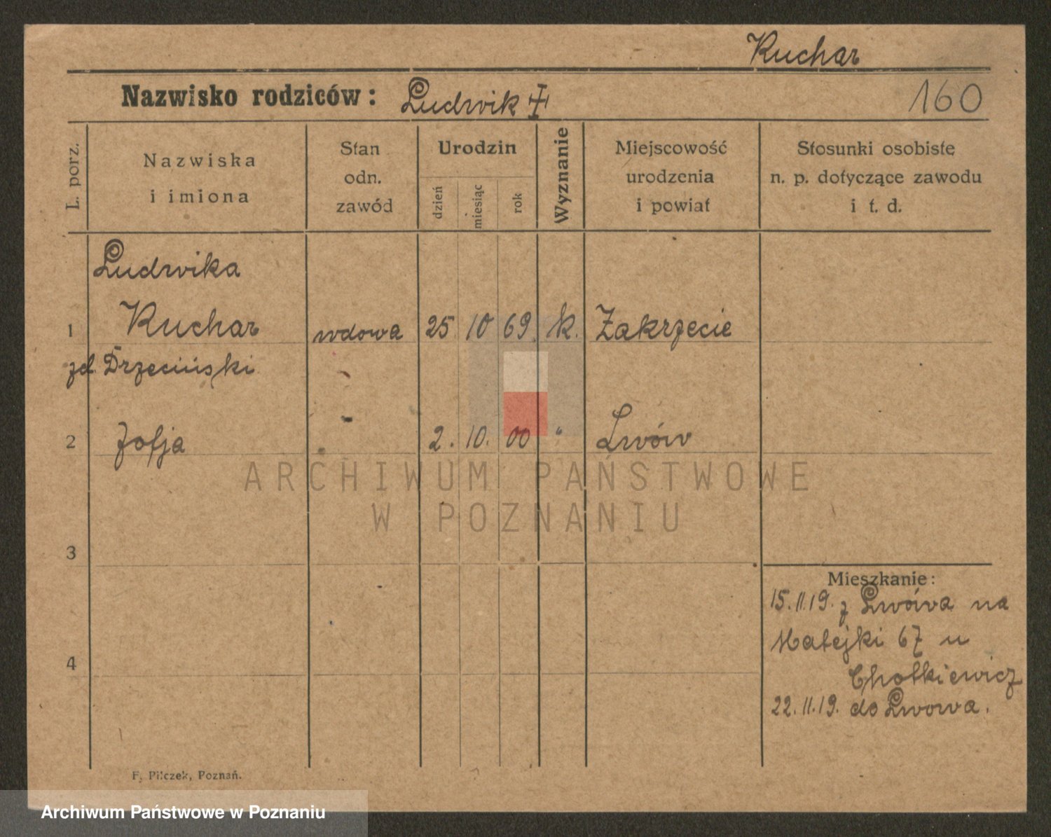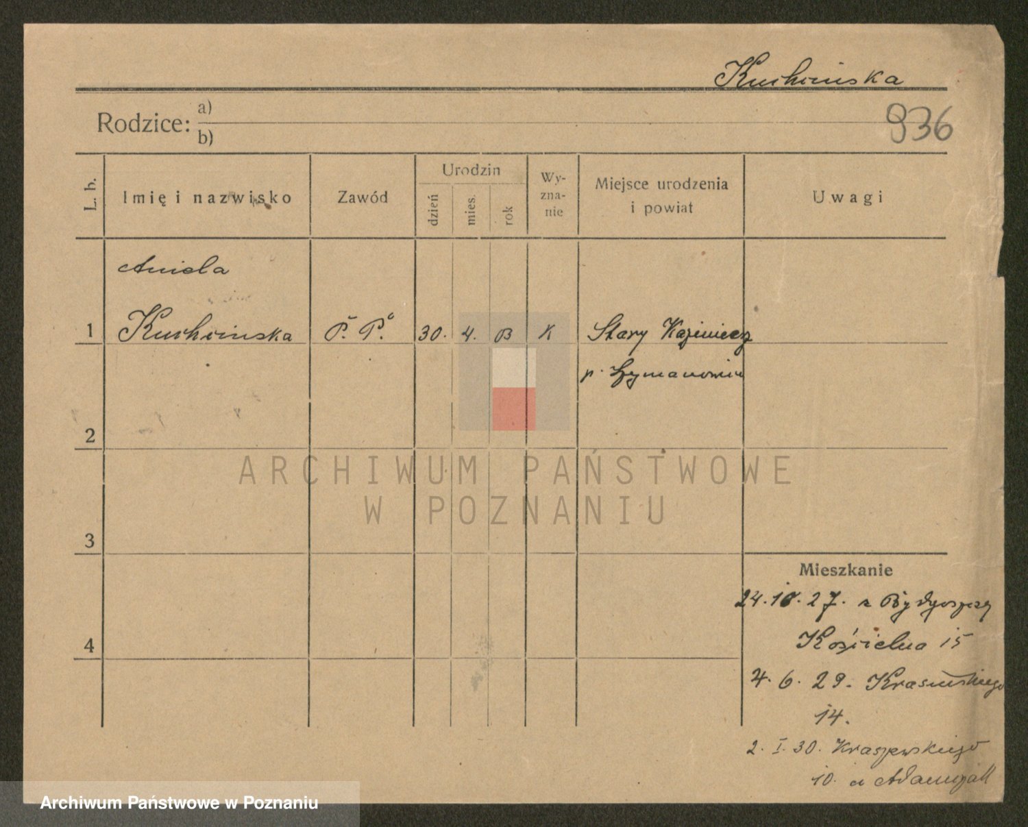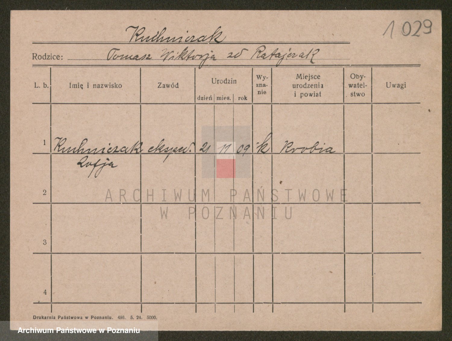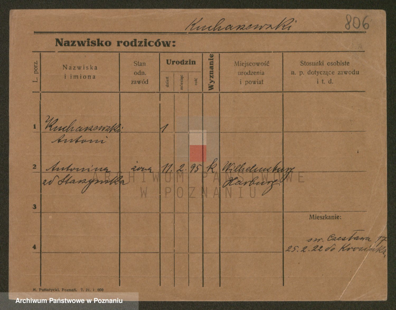 Podgląd karty osobowej dostępny jest po kliknięciu na nazwisko lub ikonkę karty. Można dokonywać powiększenia (ikony na górze) lub przechodzić między kolejnymi skanami (strzałki po bokach).