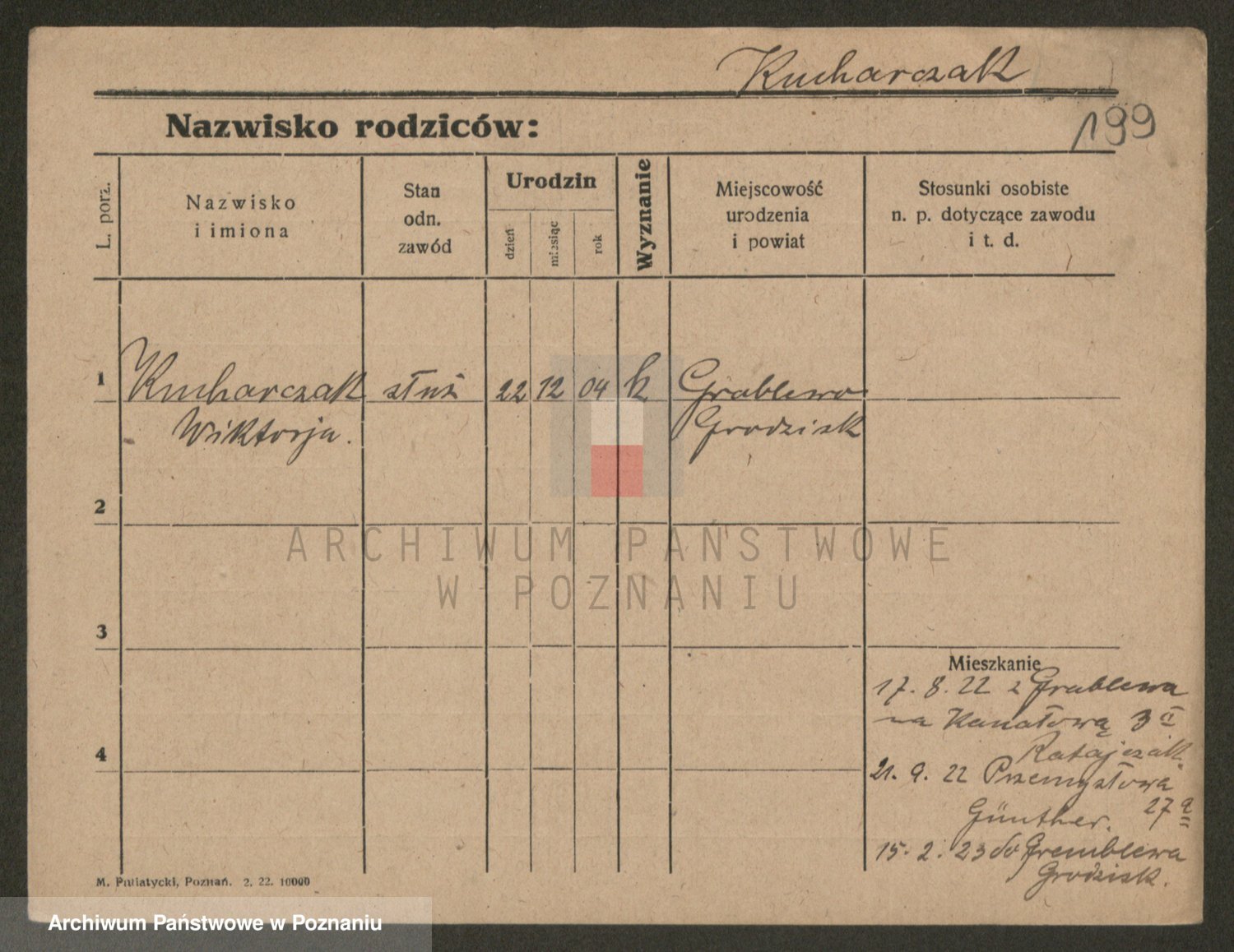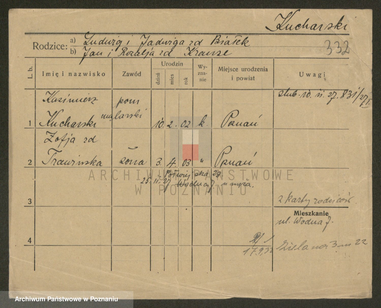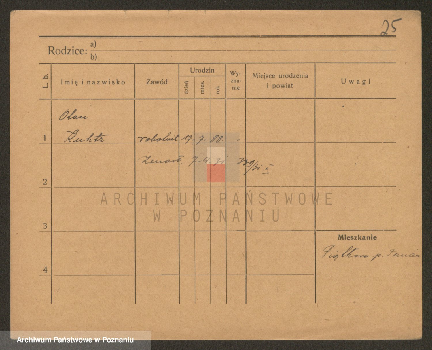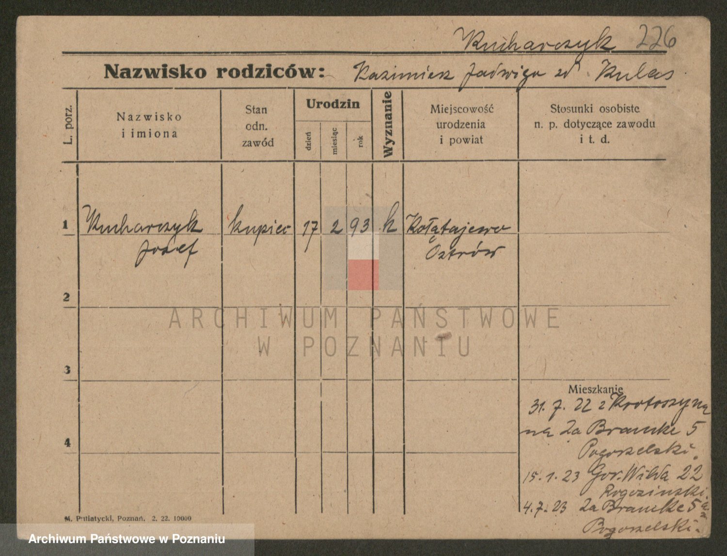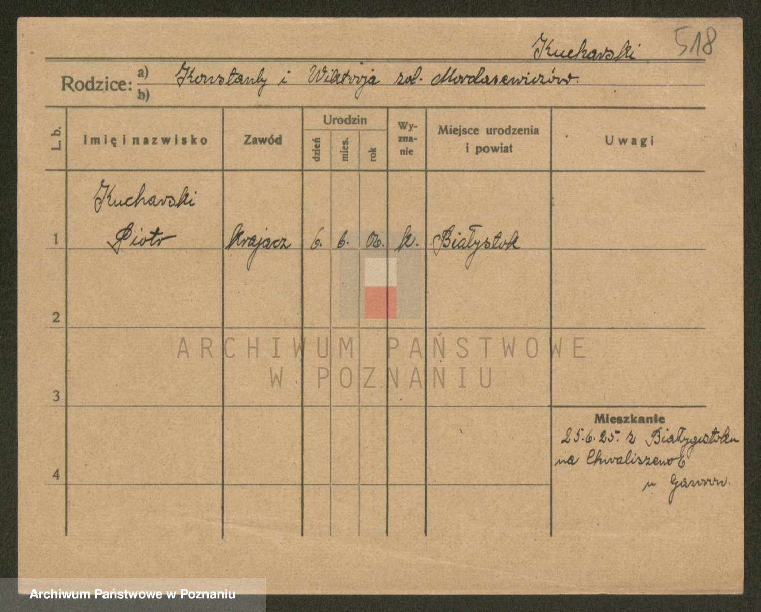 Podgląd karty osobowej dostępny jest po kliknięciu na nazwisko lub ikonkę karty. Można dokonywać powiększenia (ikony na górze) lub przechodzić między kolejnymi skanami (strzałki po bokach).