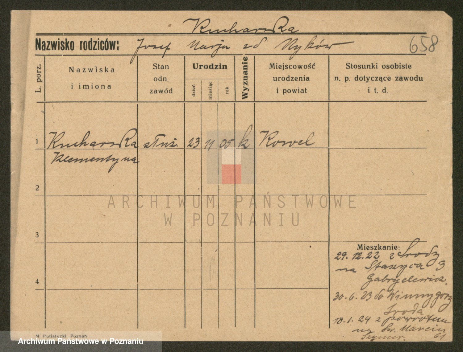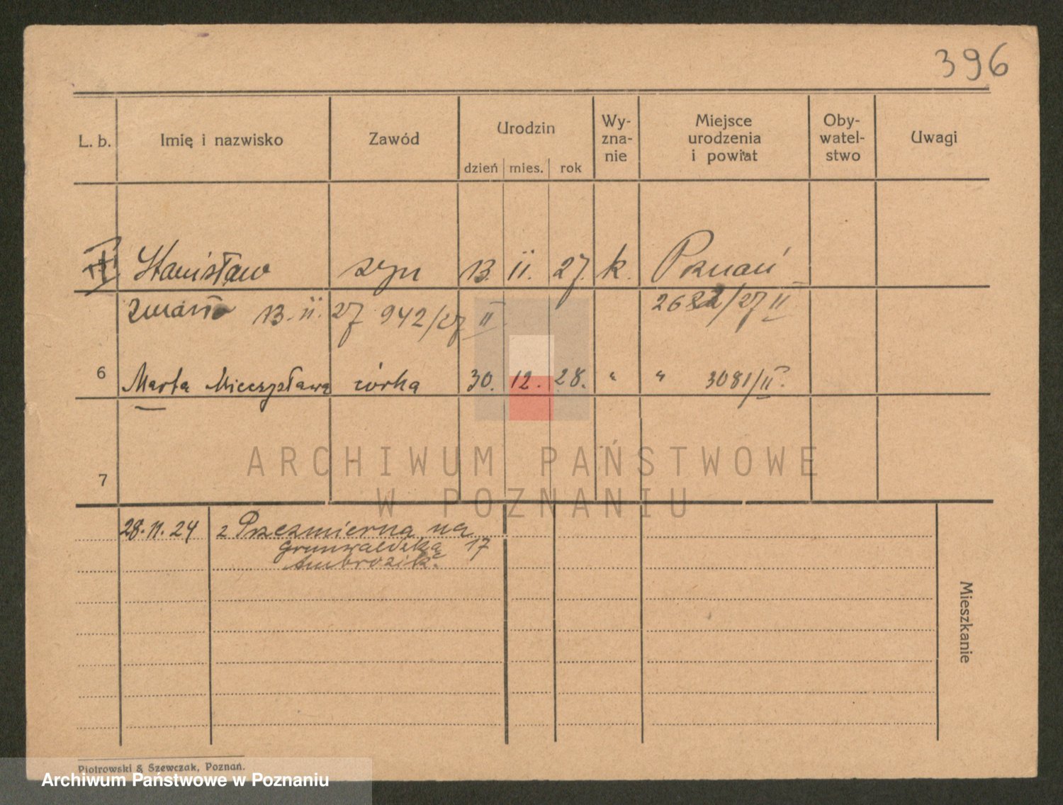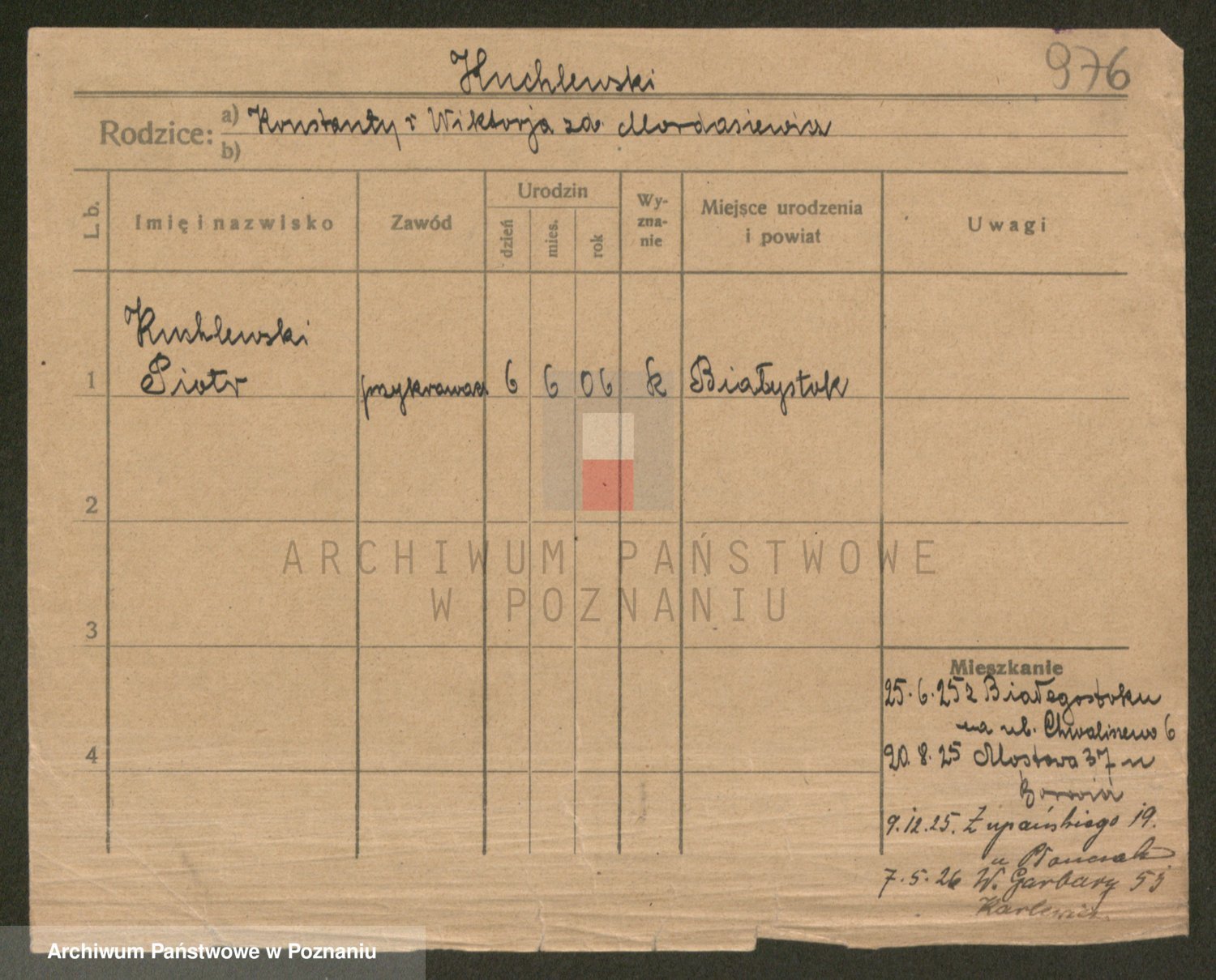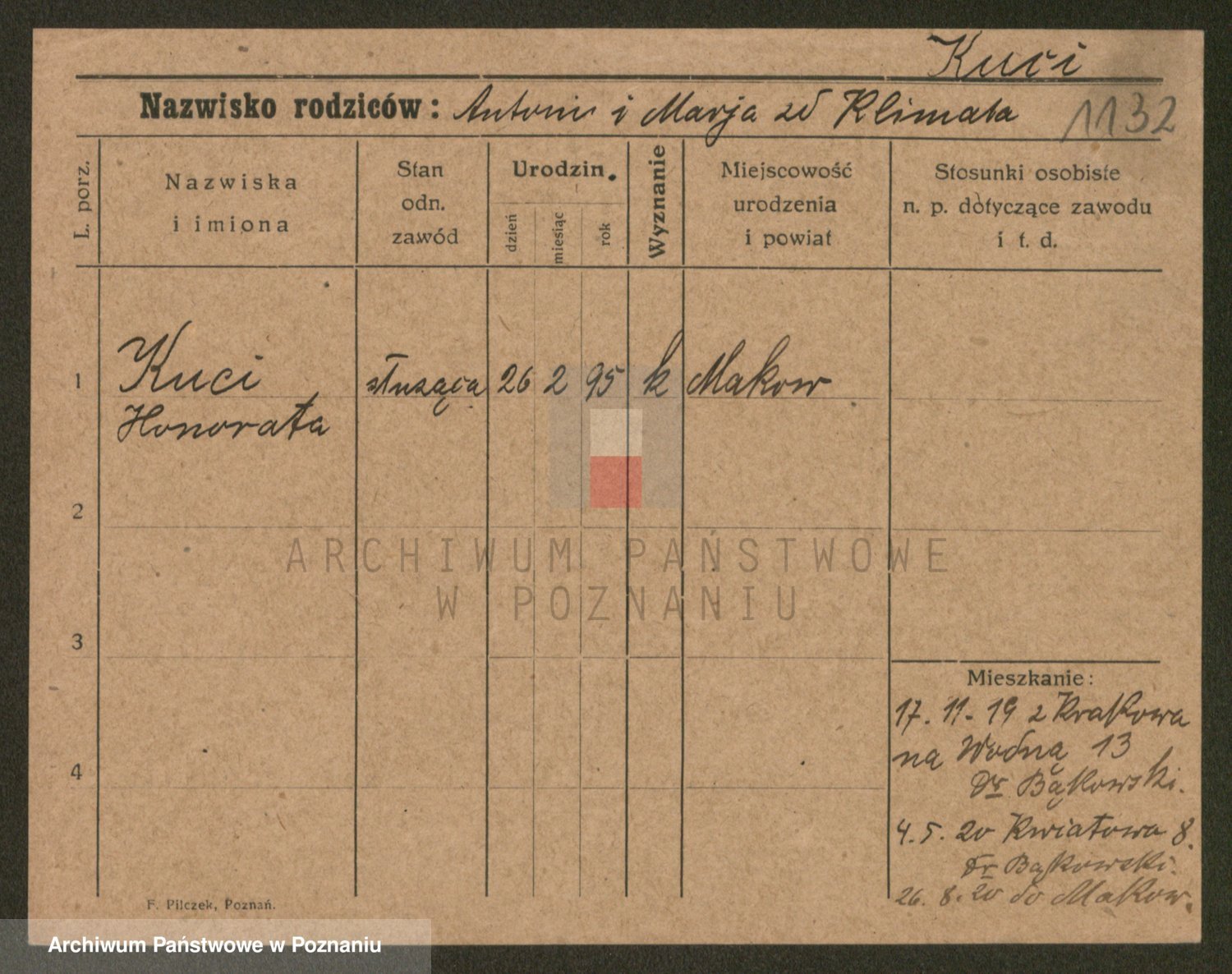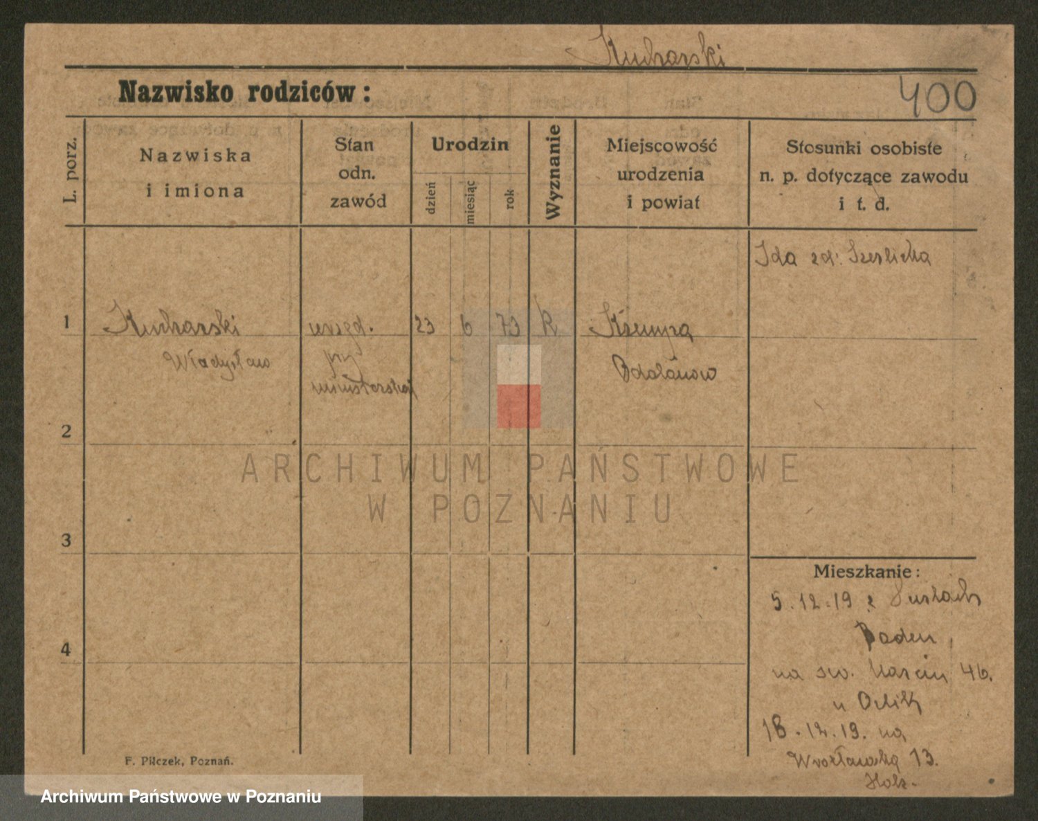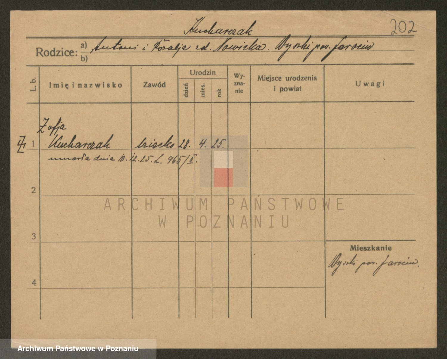 Podgląd karty osobowej dostępny jest po kliknięciu na nazwisko lub ikonkę karty. Można dokonywać powiększenia (ikony na górze) lub przechodzić między kolejnymi skanami (strzałki po bokach).