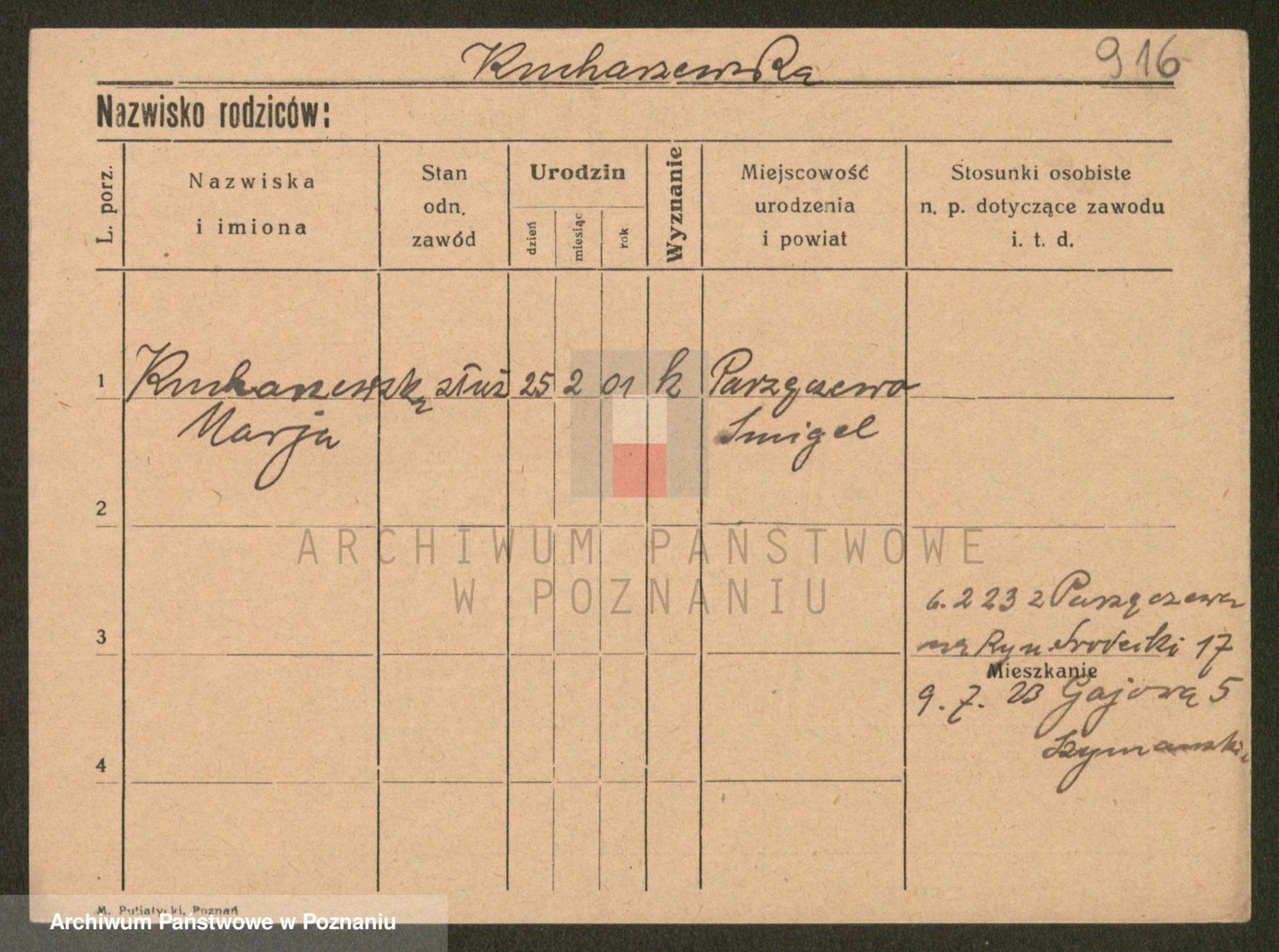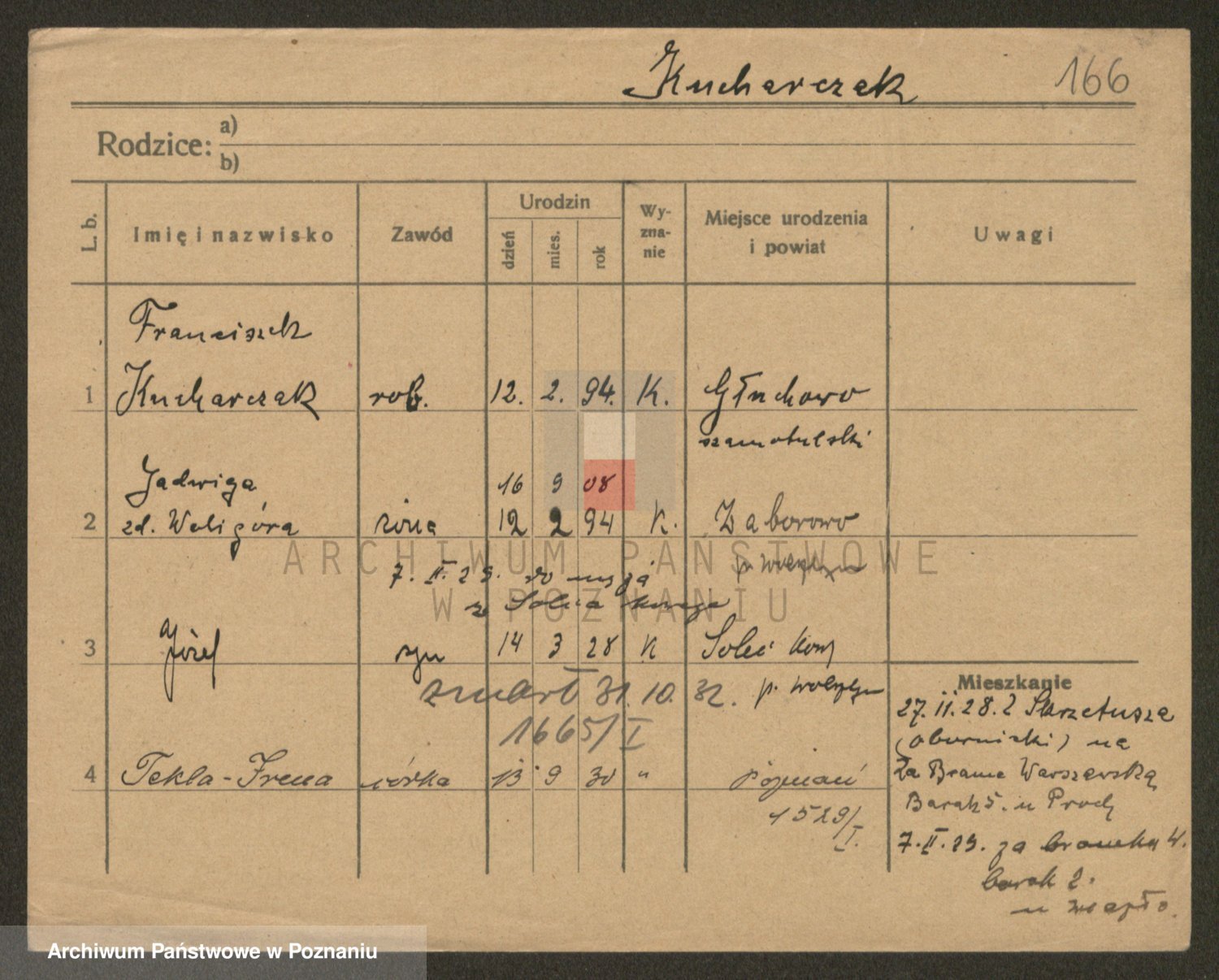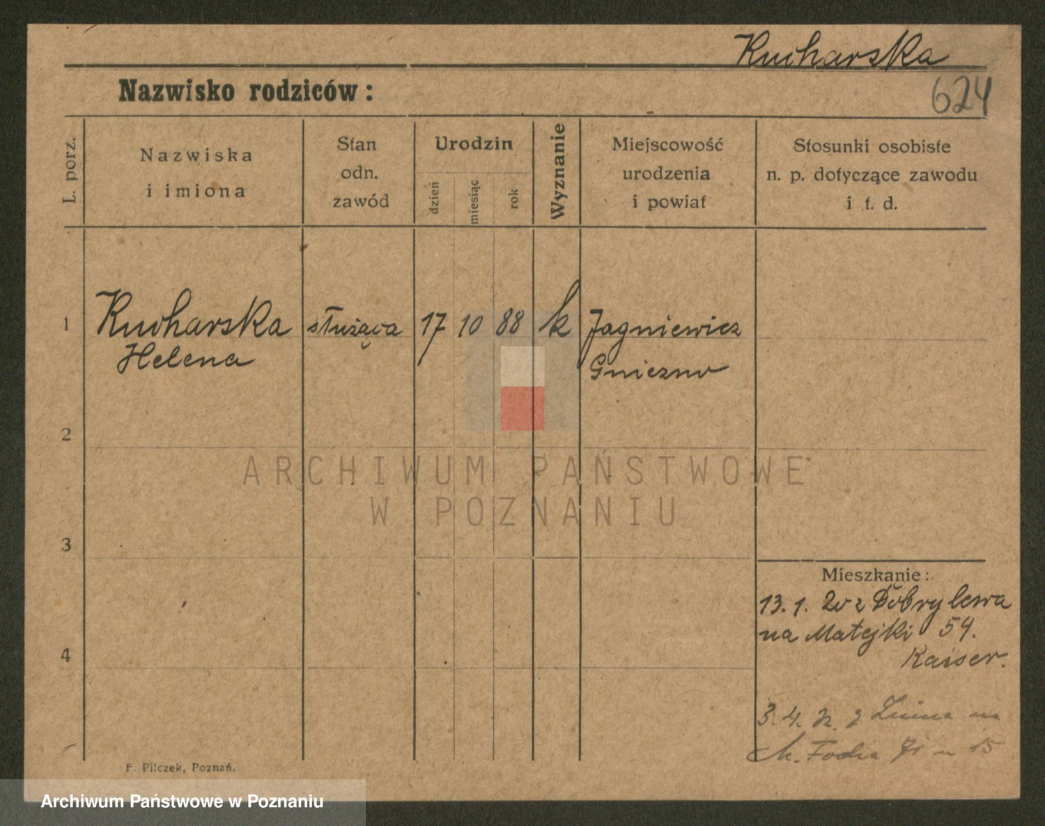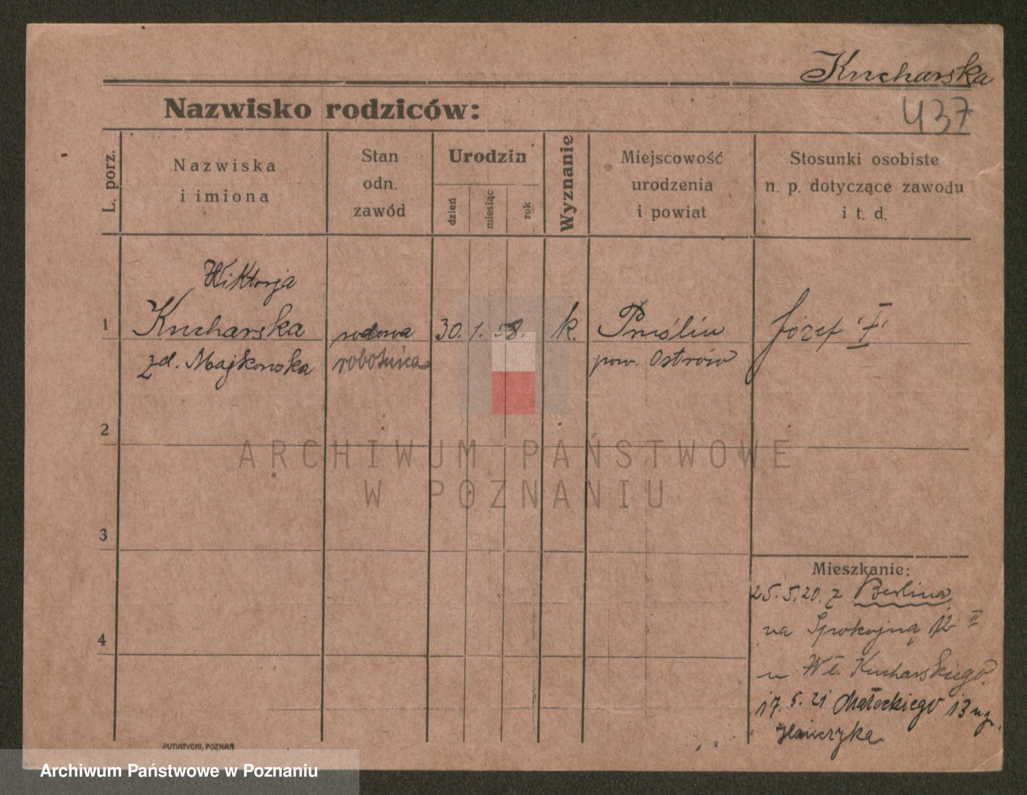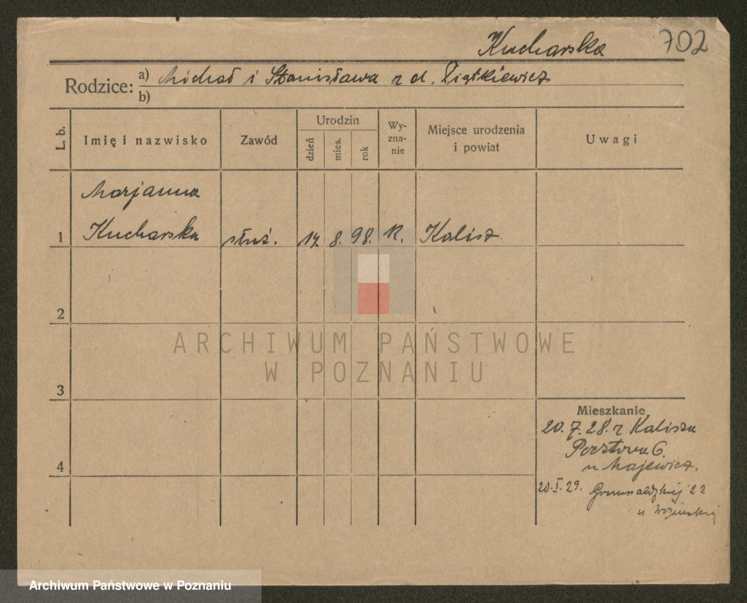 Podgląd karty osobowej dostępny jest po kliknięciu na nazwisko lub ikonkę karty. Można dokonywać powiększenia (ikony na górze) lub przechodzić między kolejnymi skanami (strzałki po bokach).