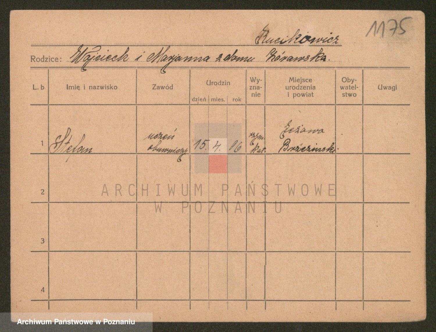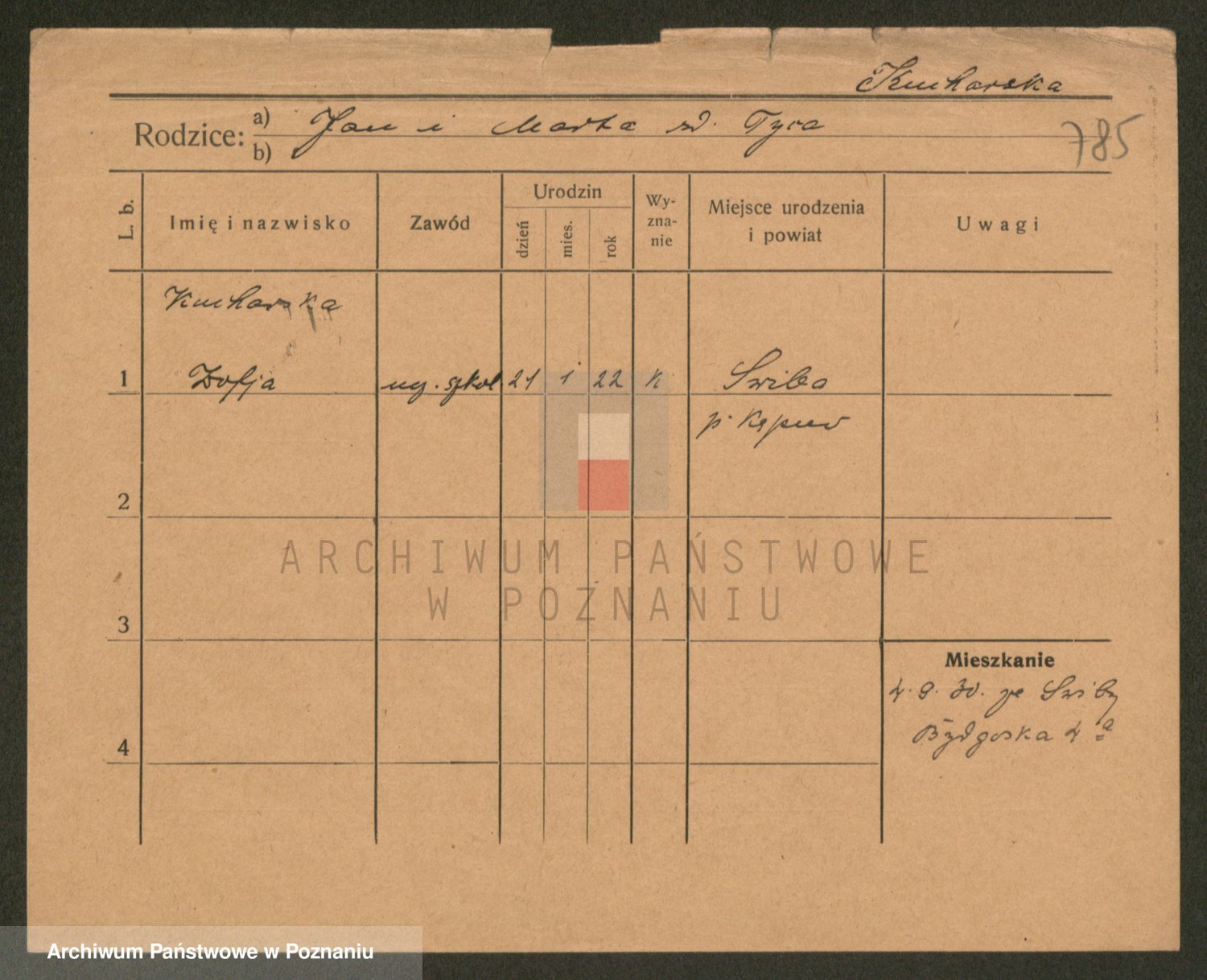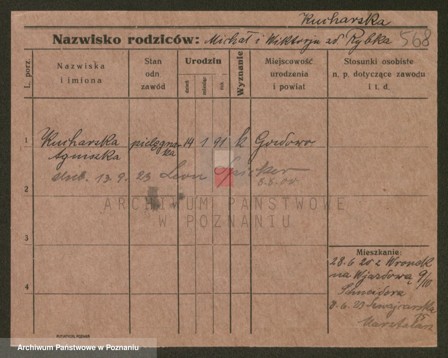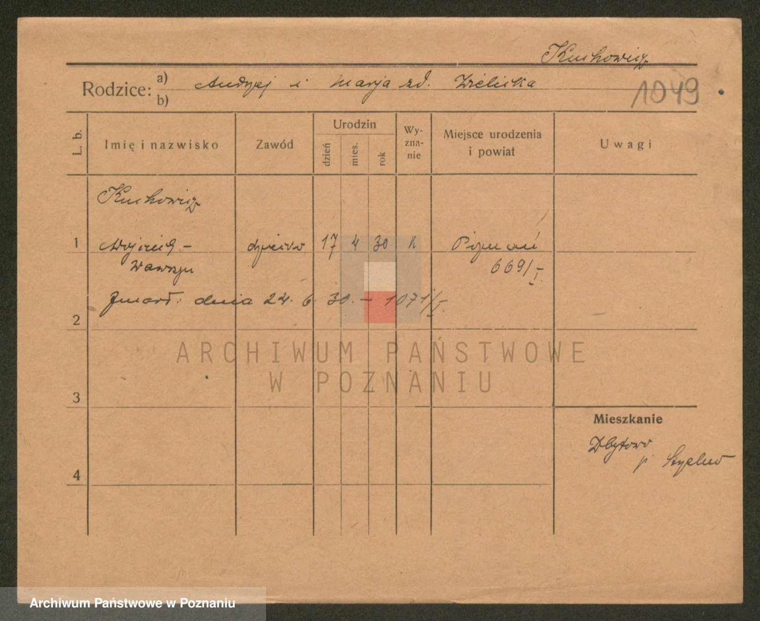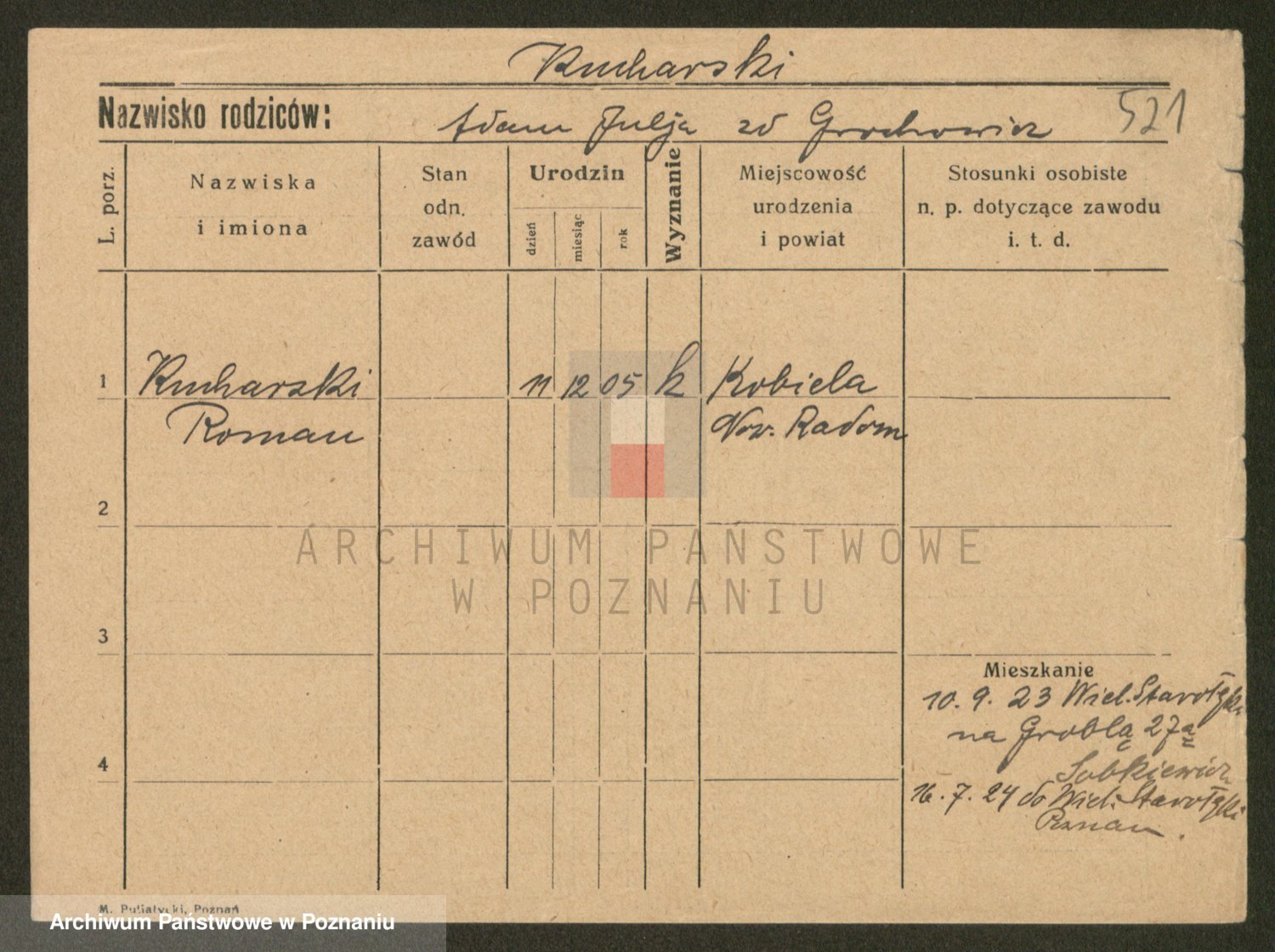 Podgląd karty osobowej dostępny jest po kliknięciu na nazwisko lub ikonkę karty. Można dokonywać powiększenia (ikony na górze) lub przechodzić między kolejnymi skanami (strzałki po bokach).