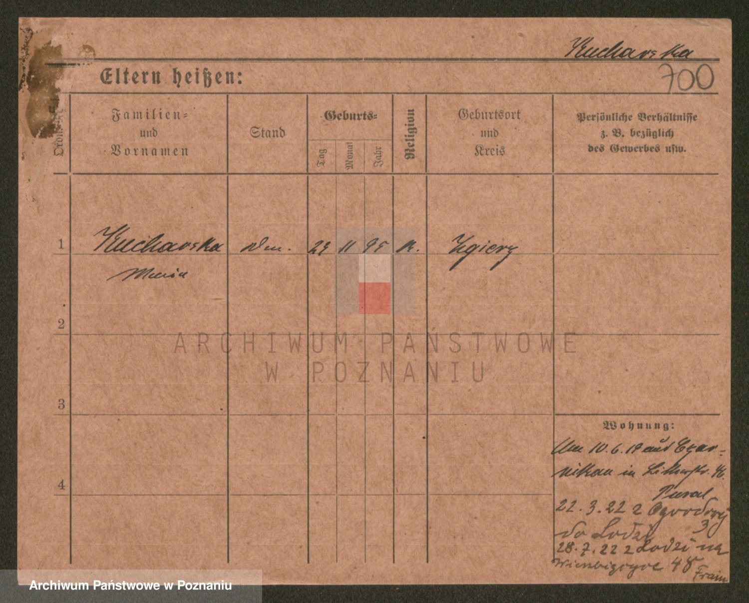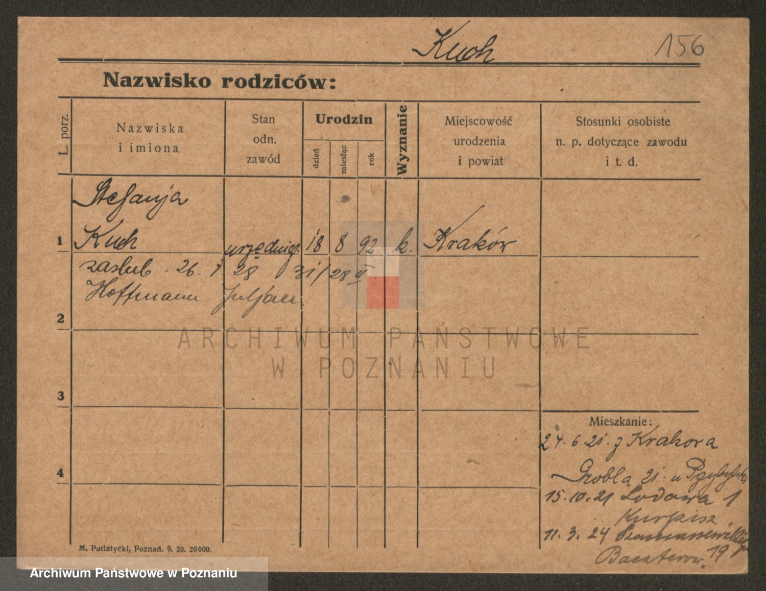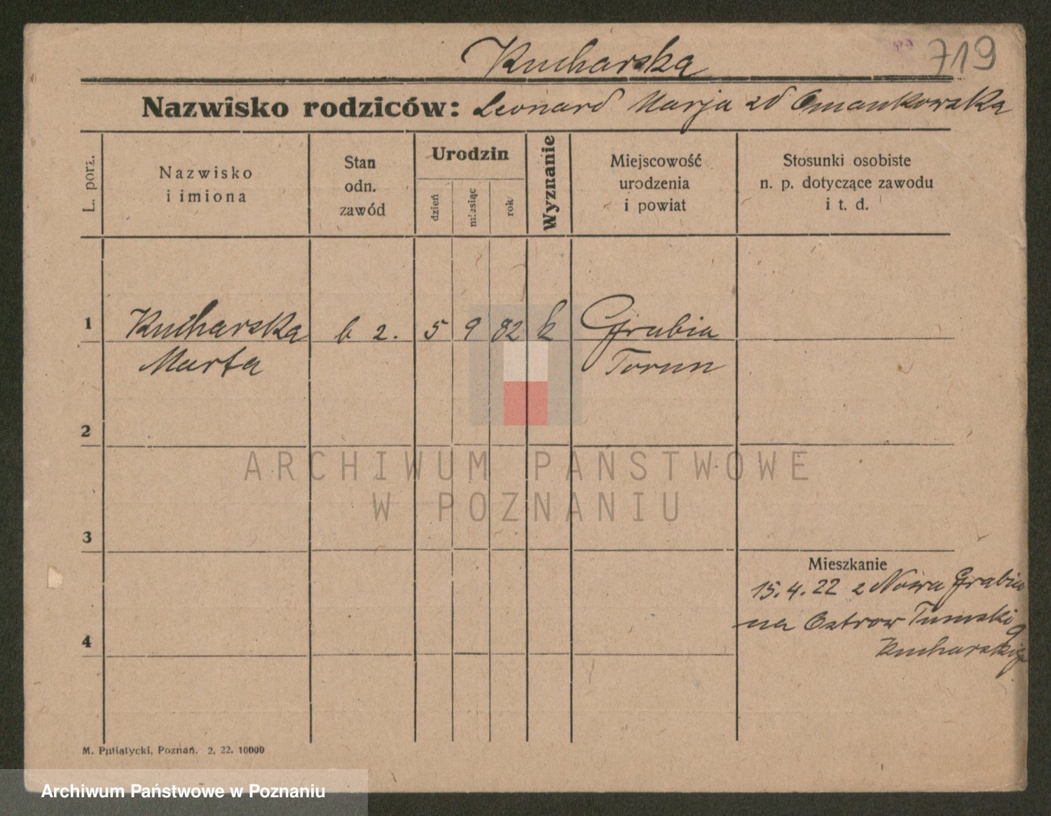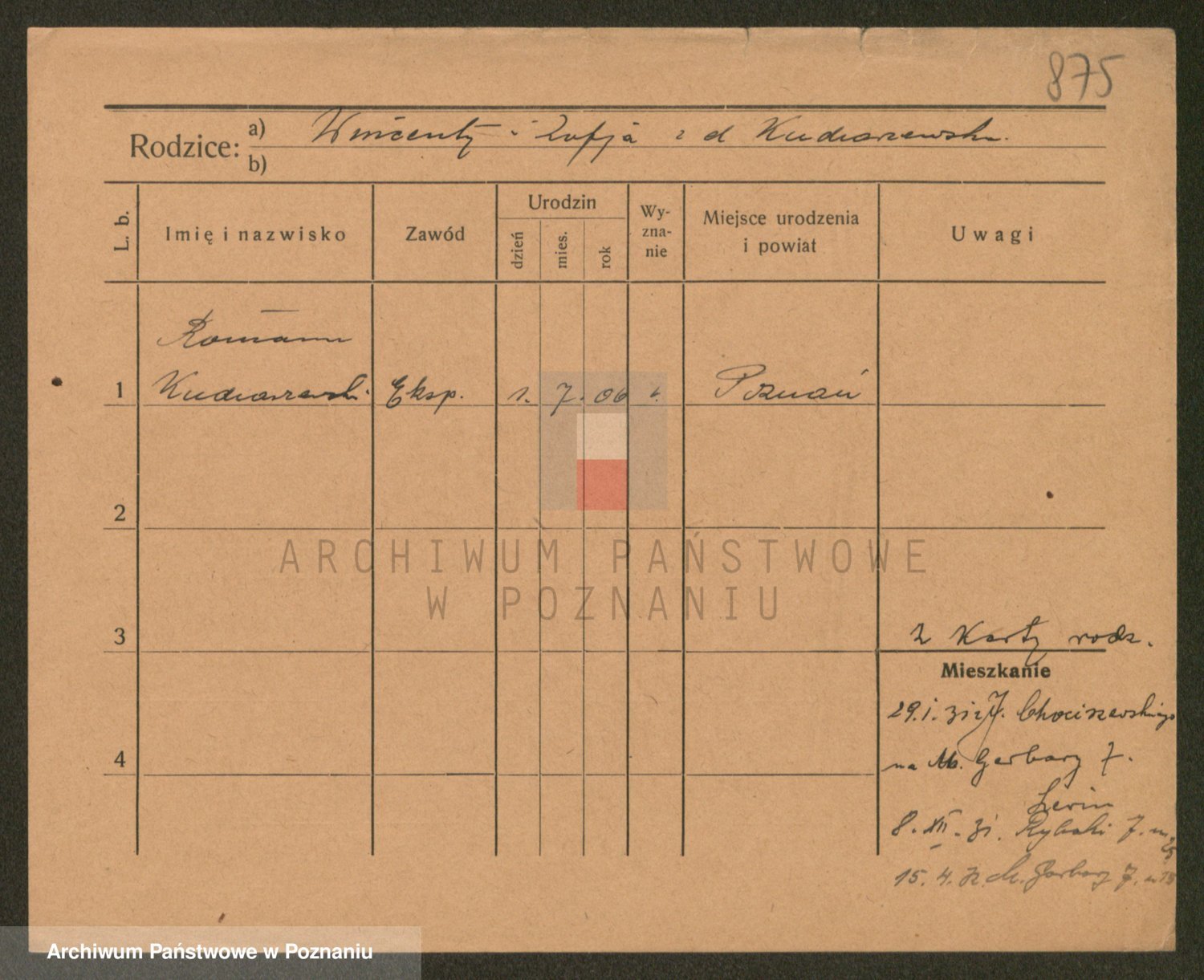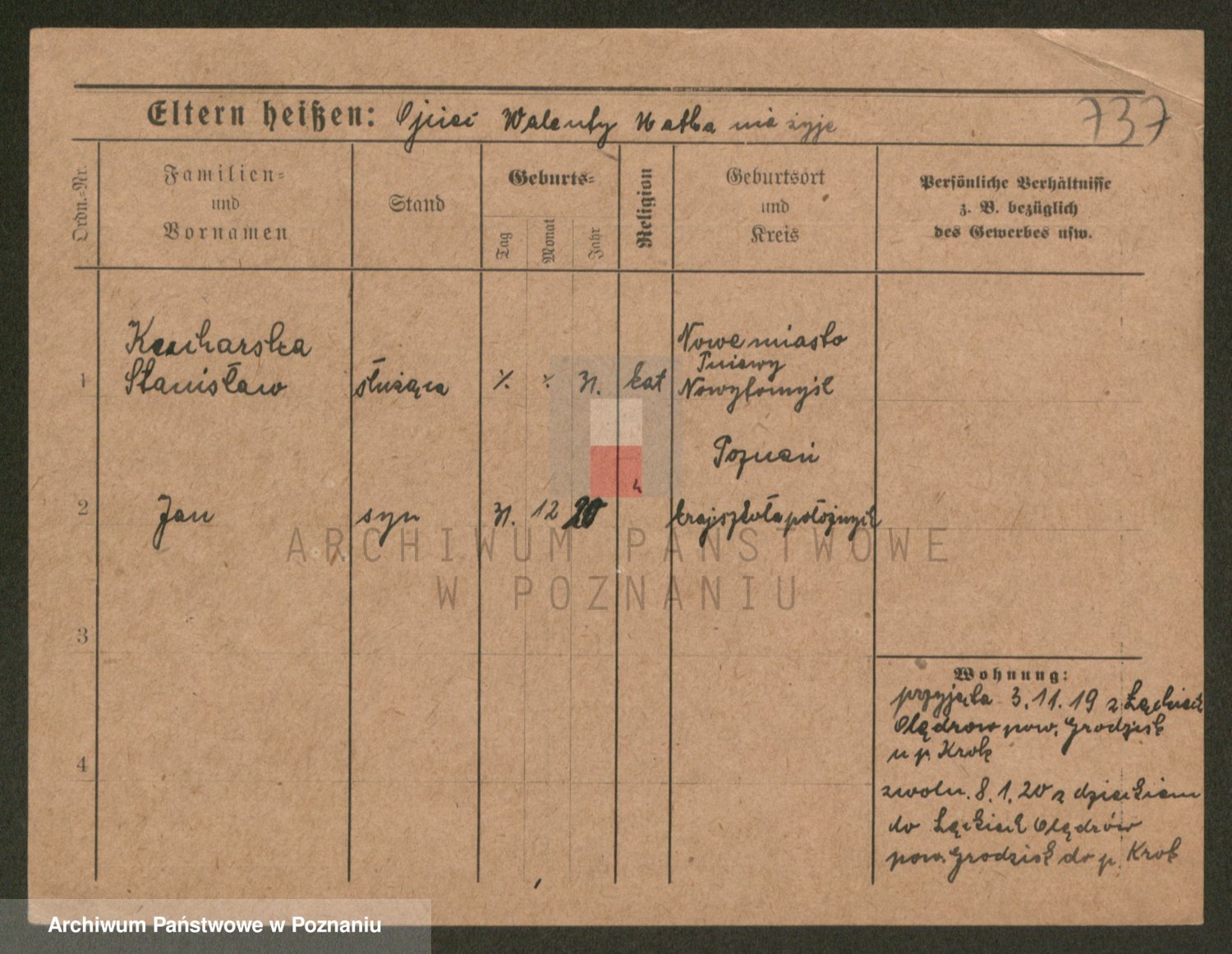 Podgląd karty osobowej dostępny jest po kliknięciu na nazwisko lub ikonkę karty. Można dokonywać powiększenia (ikony na górze) lub przechodzić między kolejnymi skanami (strzałki po bokach).