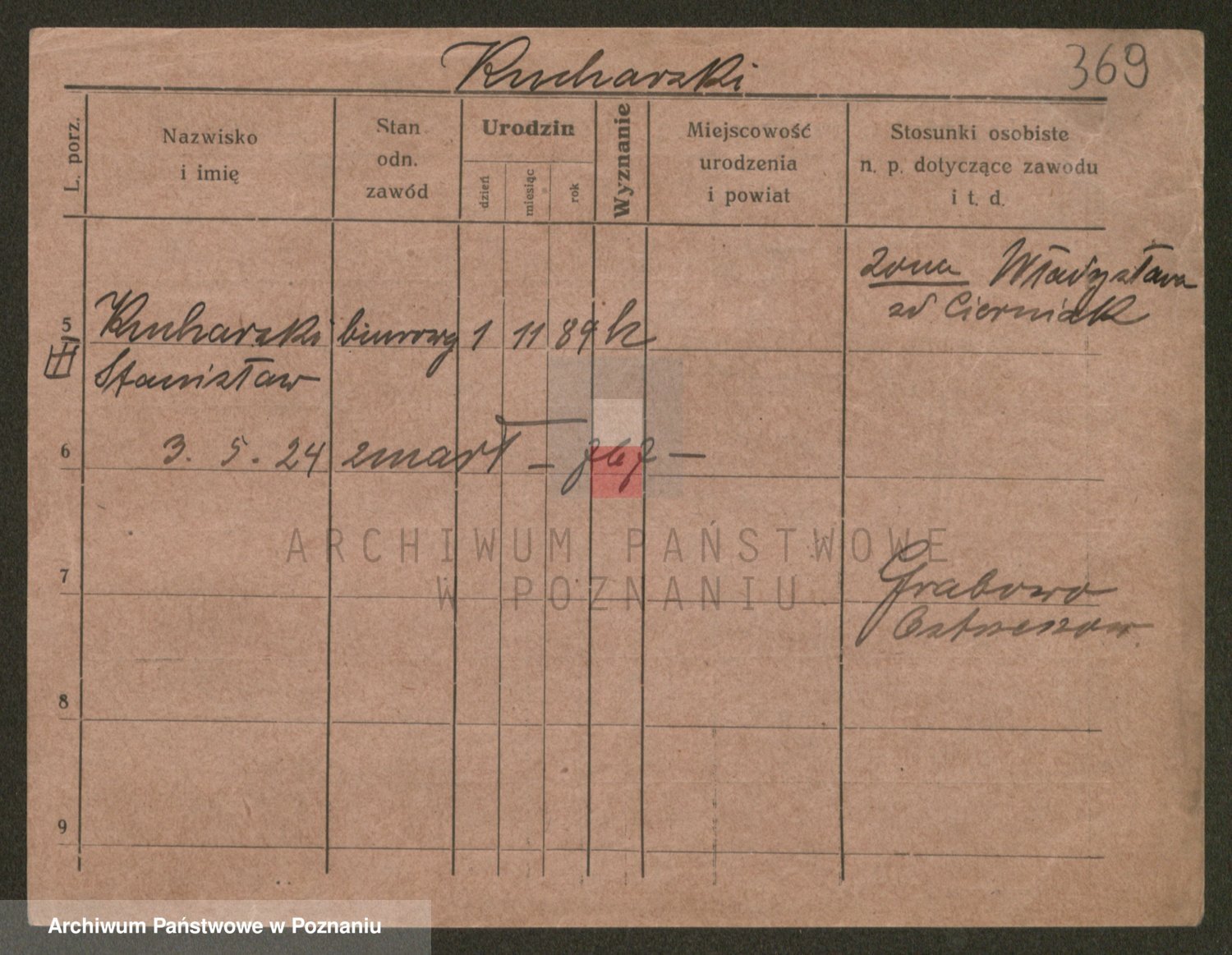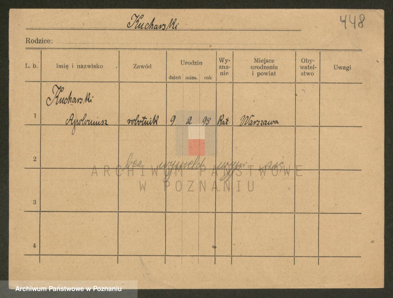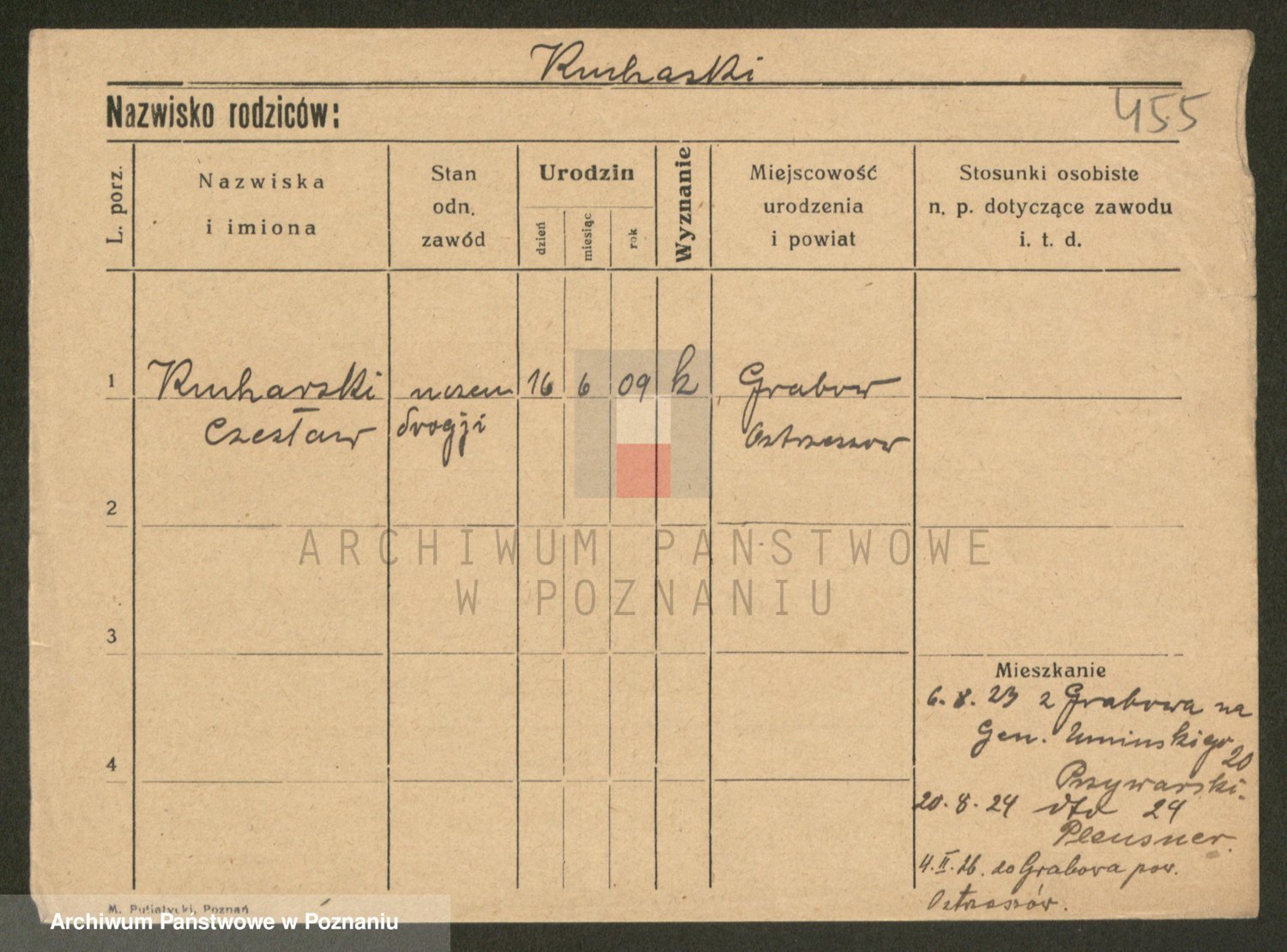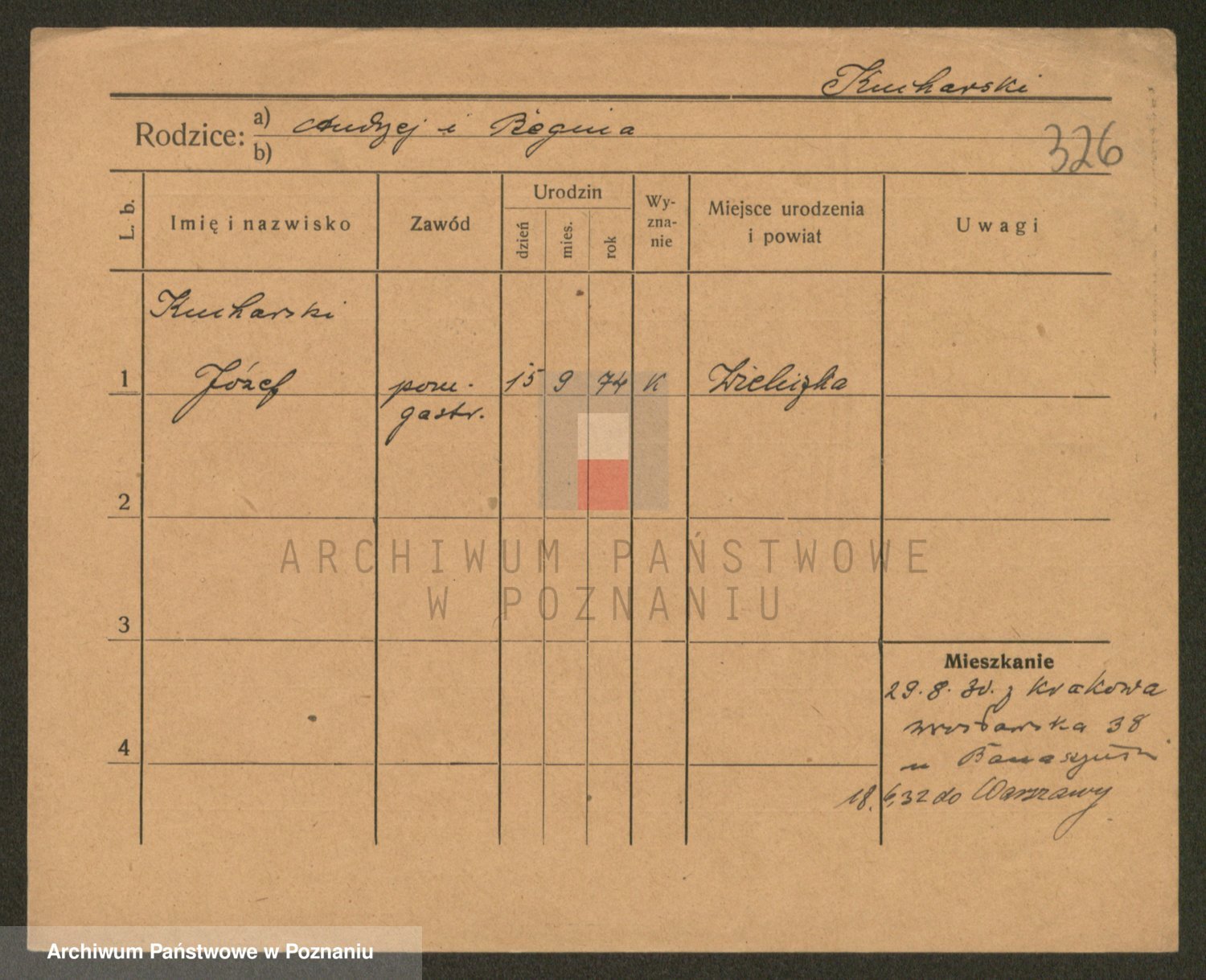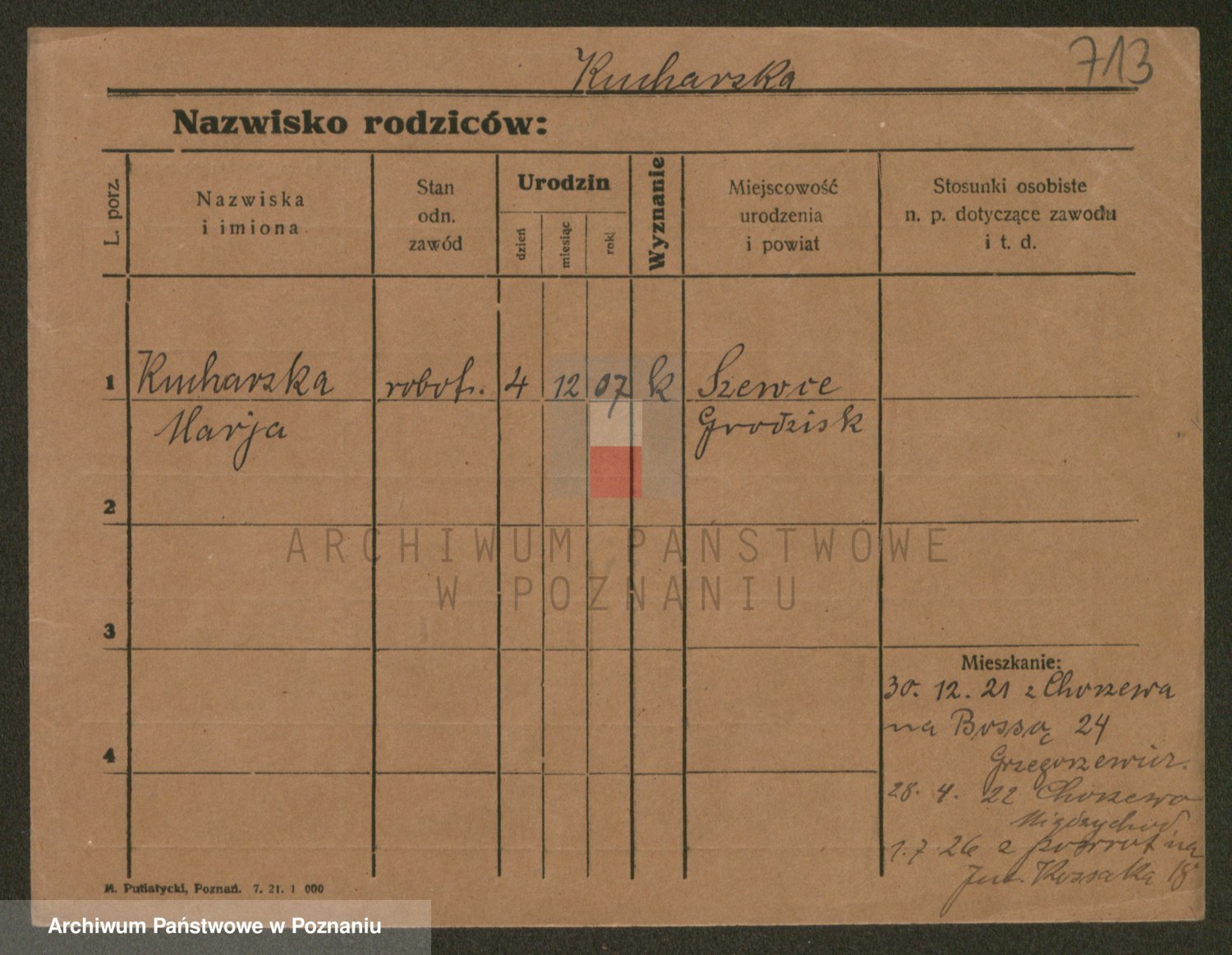 Podgląd karty osobowej dostępny jest po kliknięciu na nazwisko lub ikonkę karty. Można dokonywać powiększenia (ikony na górze) lub przechodzić między kolejnymi skanami (strzałki po bokach).