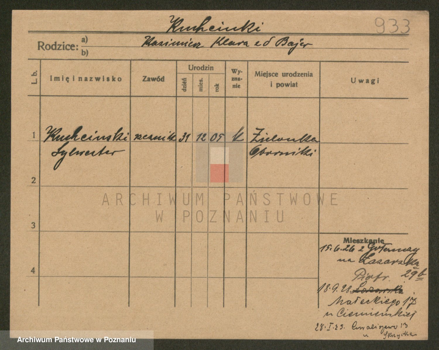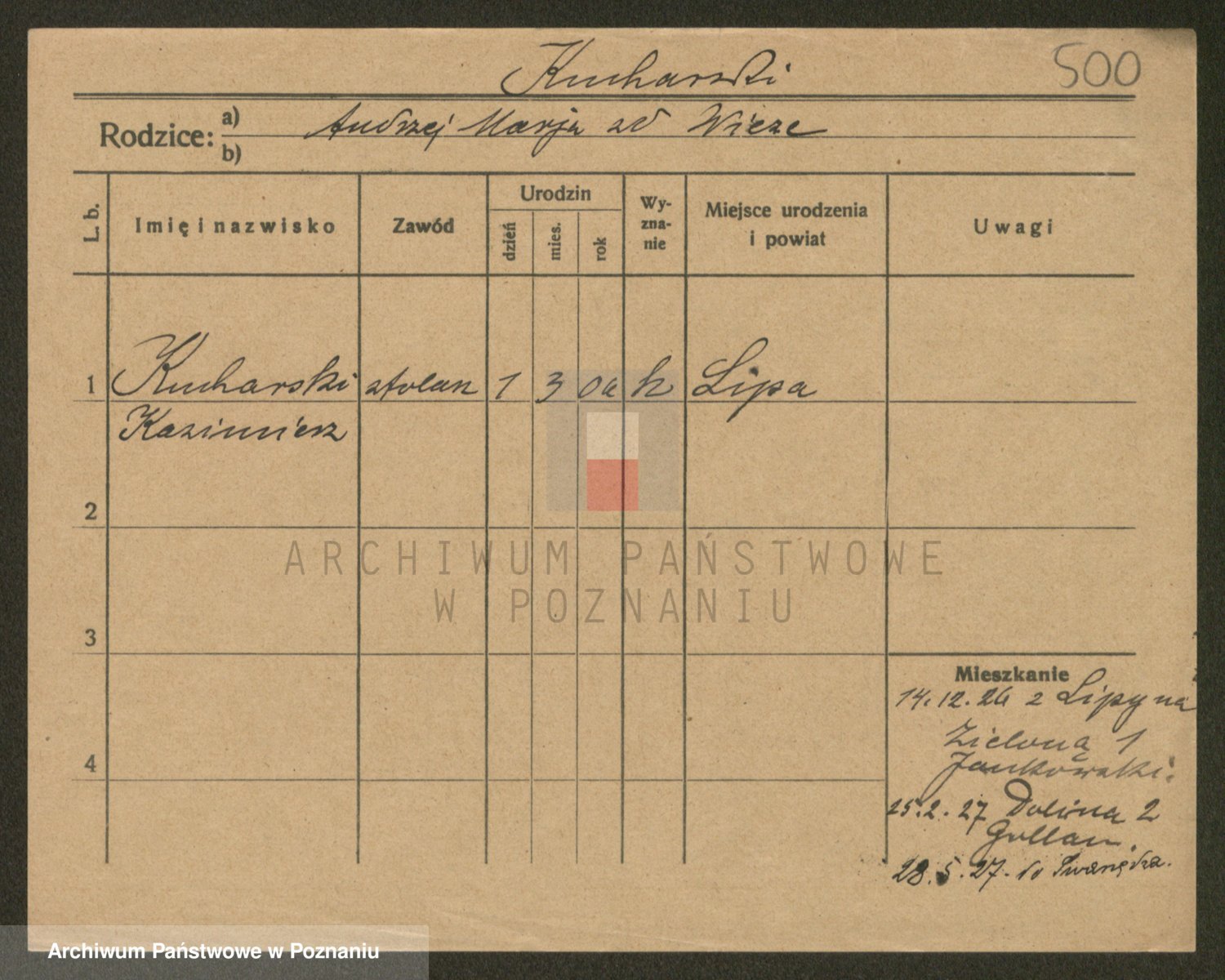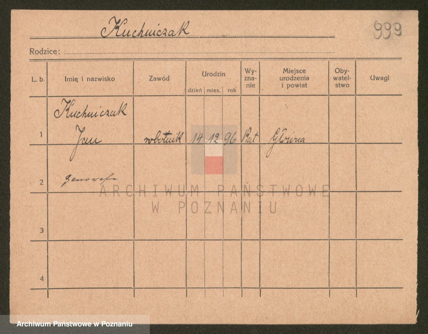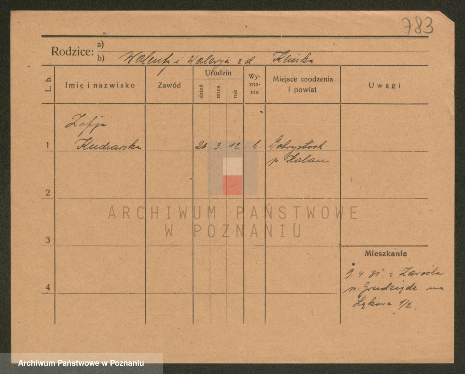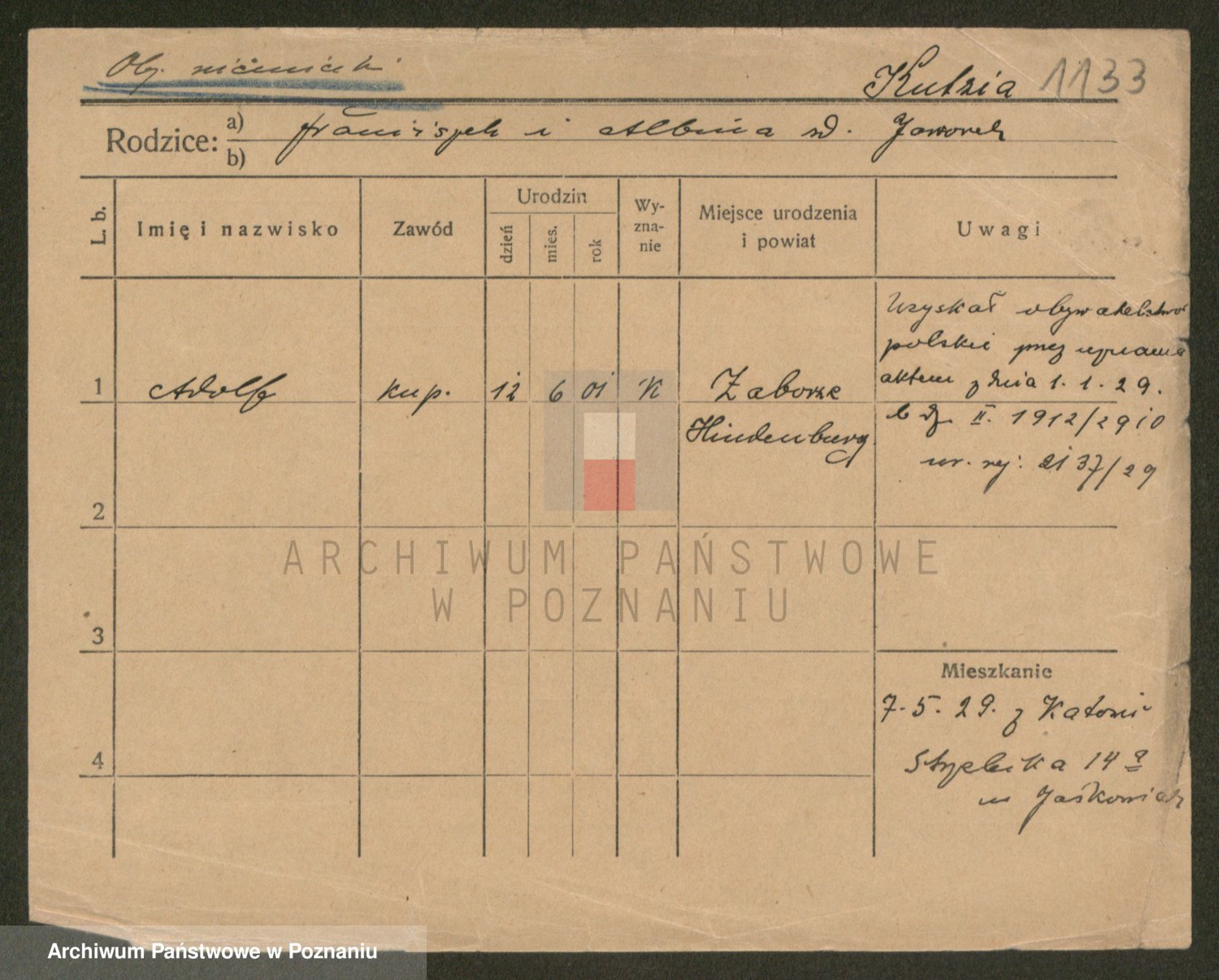 Podgląd karty osobowej dostępny jest po kliknięciu na nazwisko lub ikonkę karty. Można dokonywać powiększenia (ikony na górze) lub przechodzić między kolejnymi skanami (strzałki po bokach).