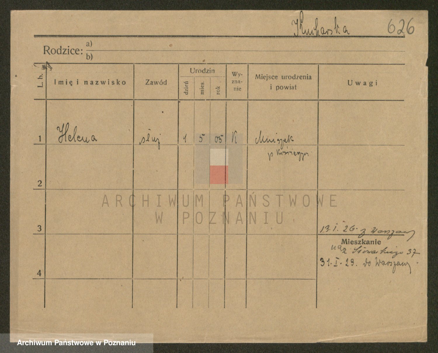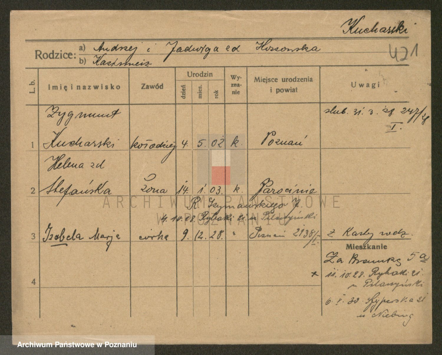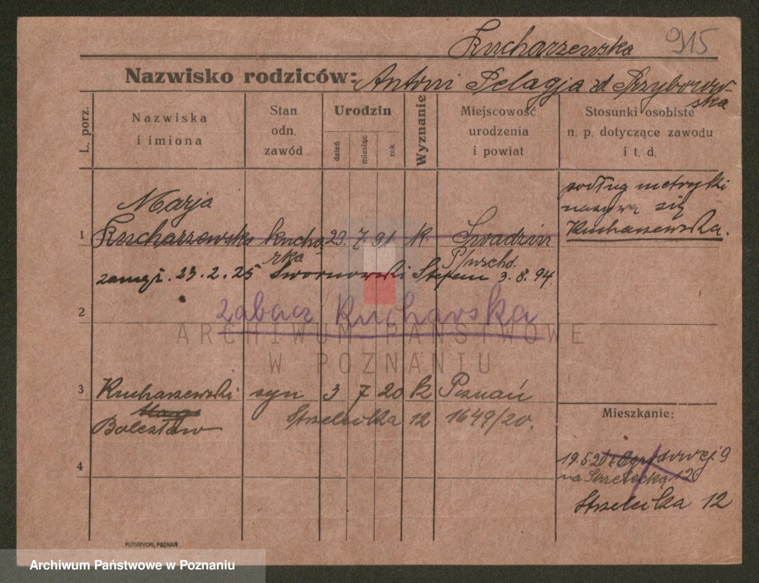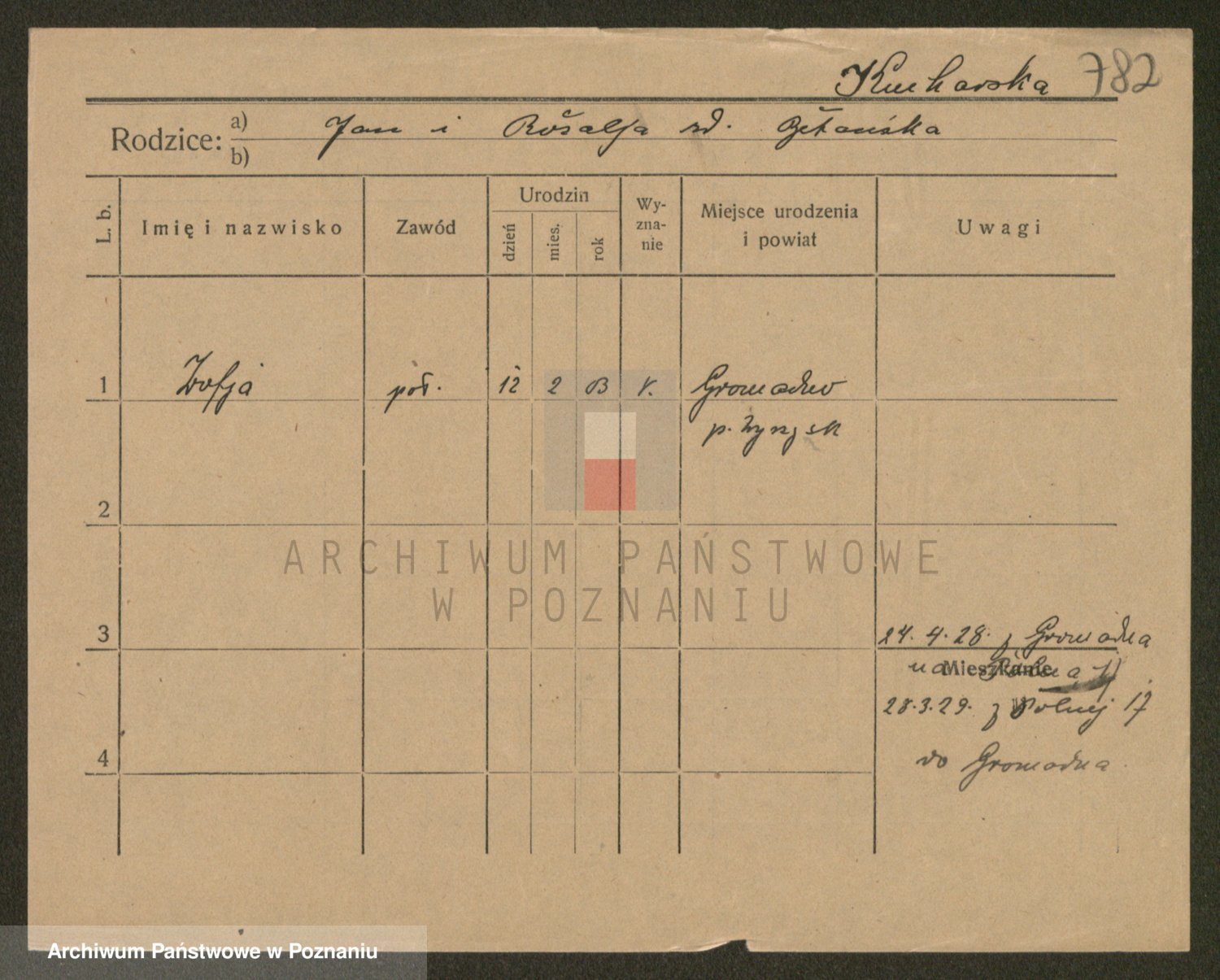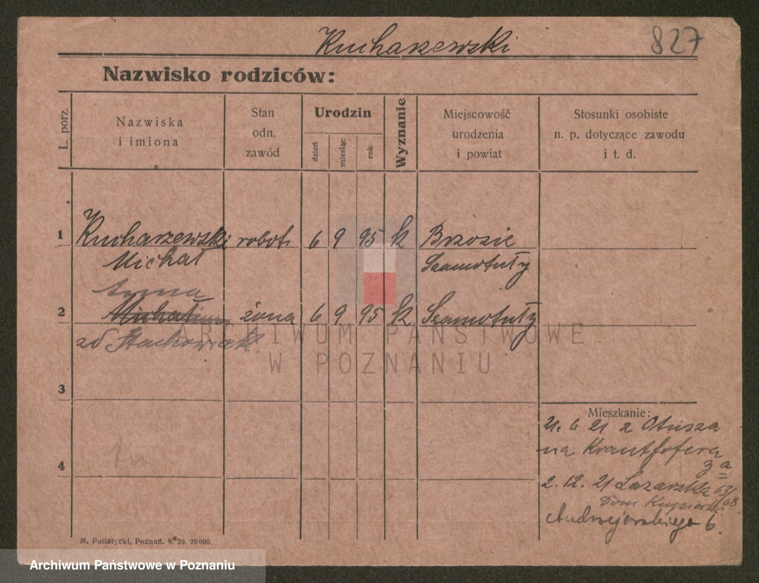 Podgląd karty osobowej dostępny jest po kliknięciu na nazwisko lub ikonkę karty. Można dokonywać powiększenia (ikony na górze) lub przechodzić między kolejnymi skanami (strzałki po bokach).