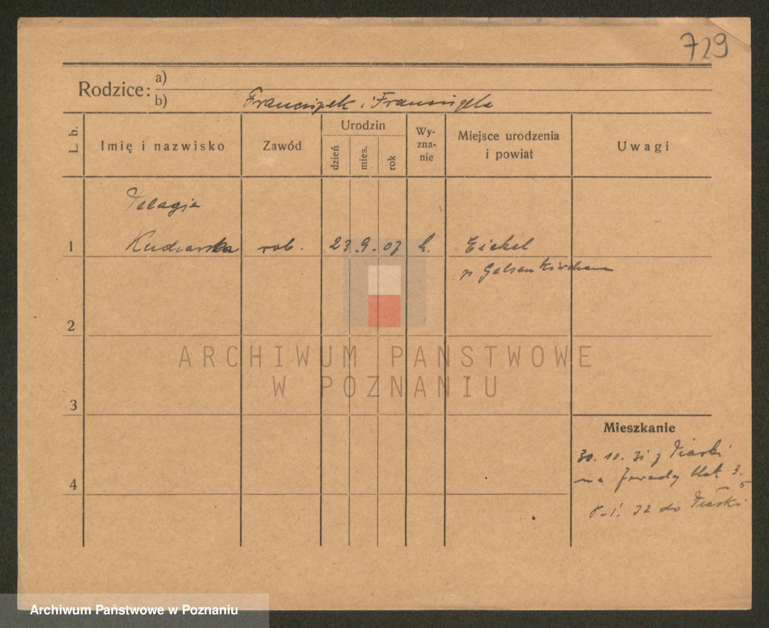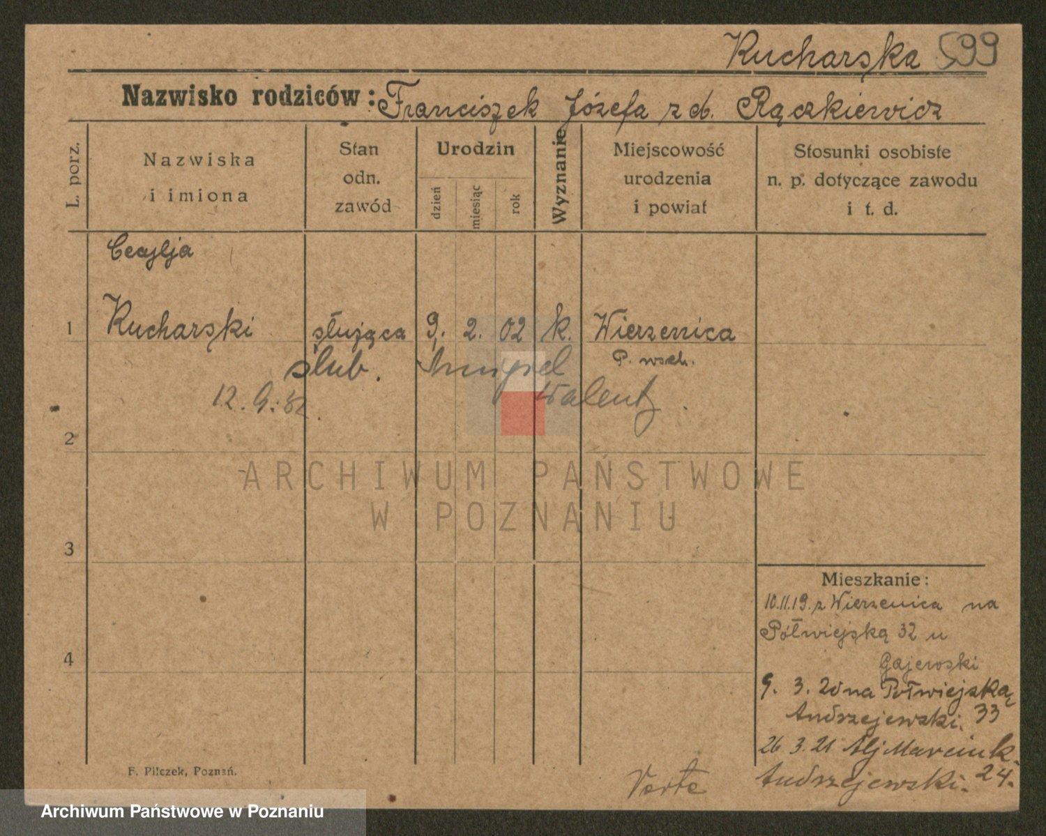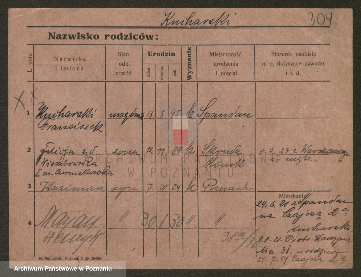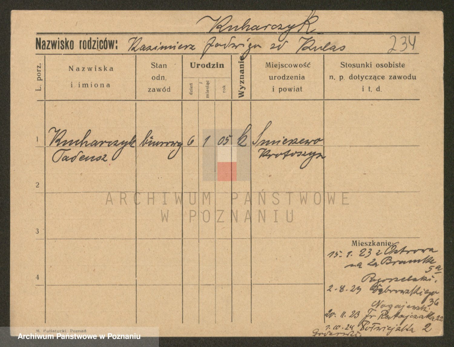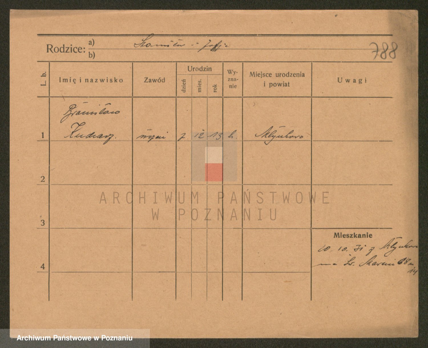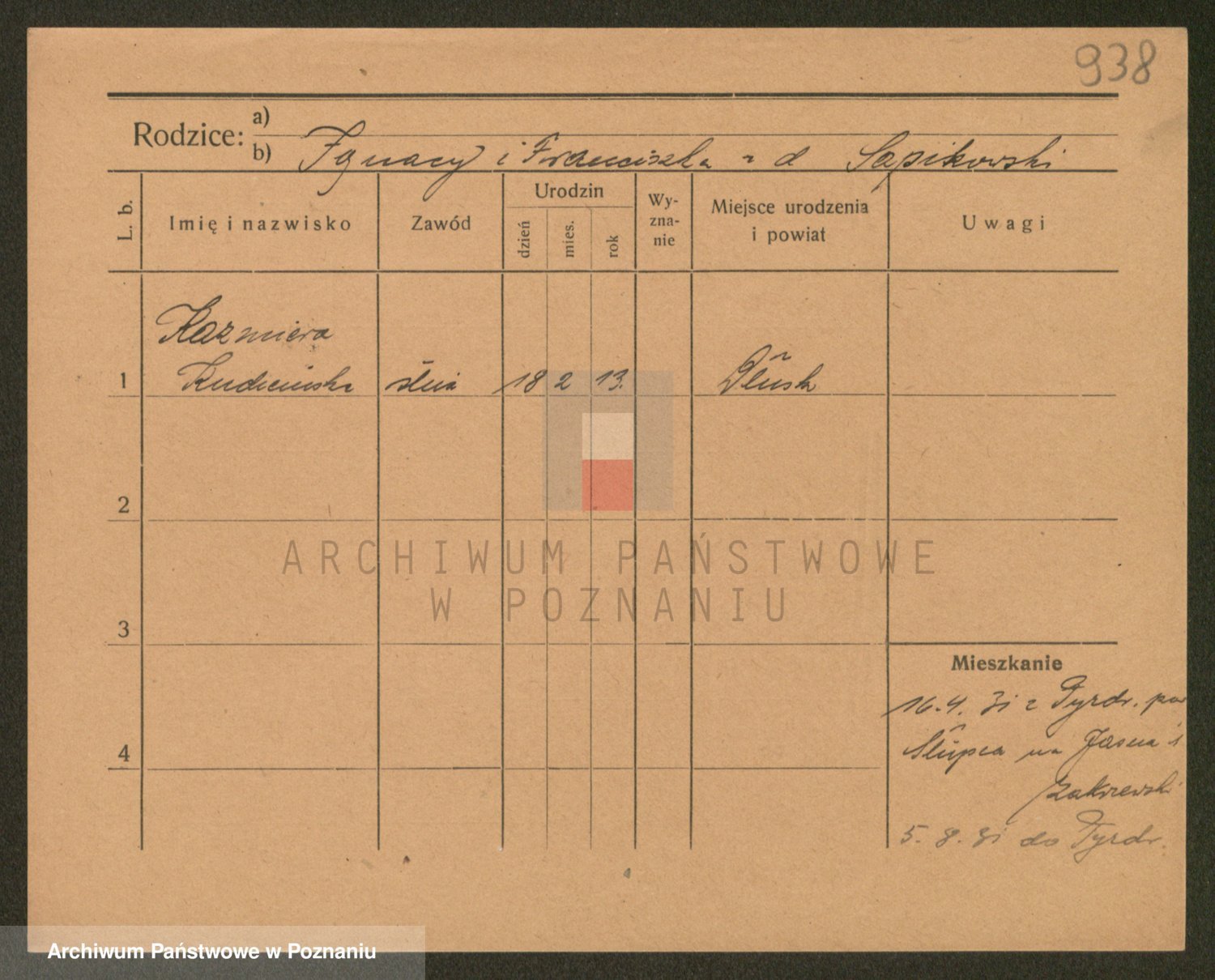 Podgląd karty osobowej dostępny jest po kliknięciu na nazwisko lub ikonkę karty. Można dokonywać powiększenia (ikony na górze) lub przechodzić między kolejnymi skanami (strzałki po bokach).