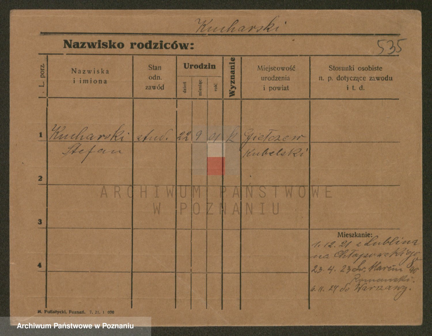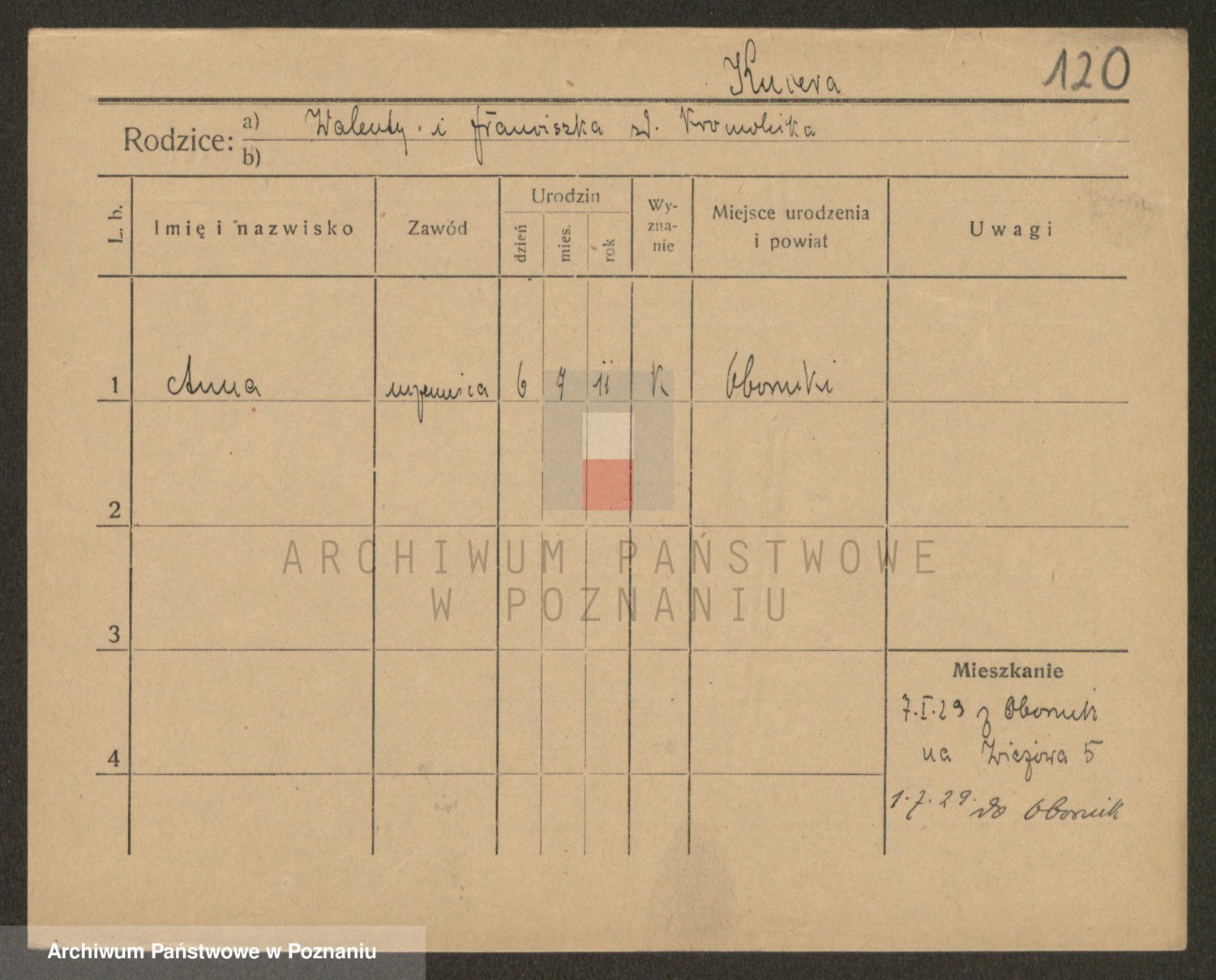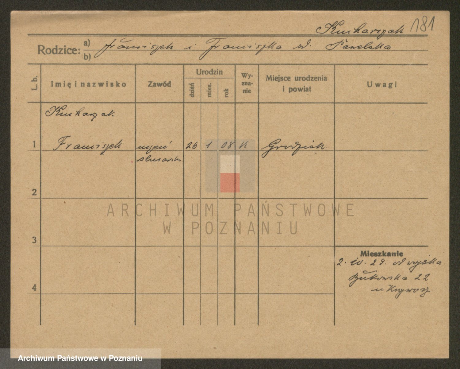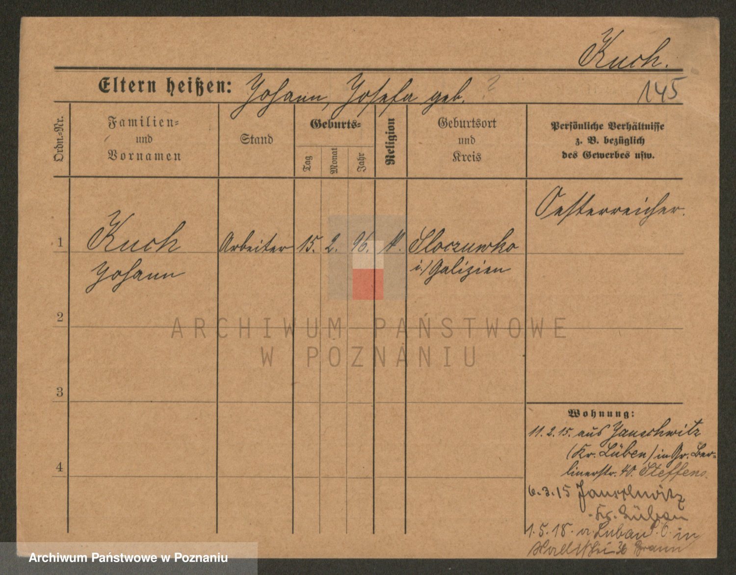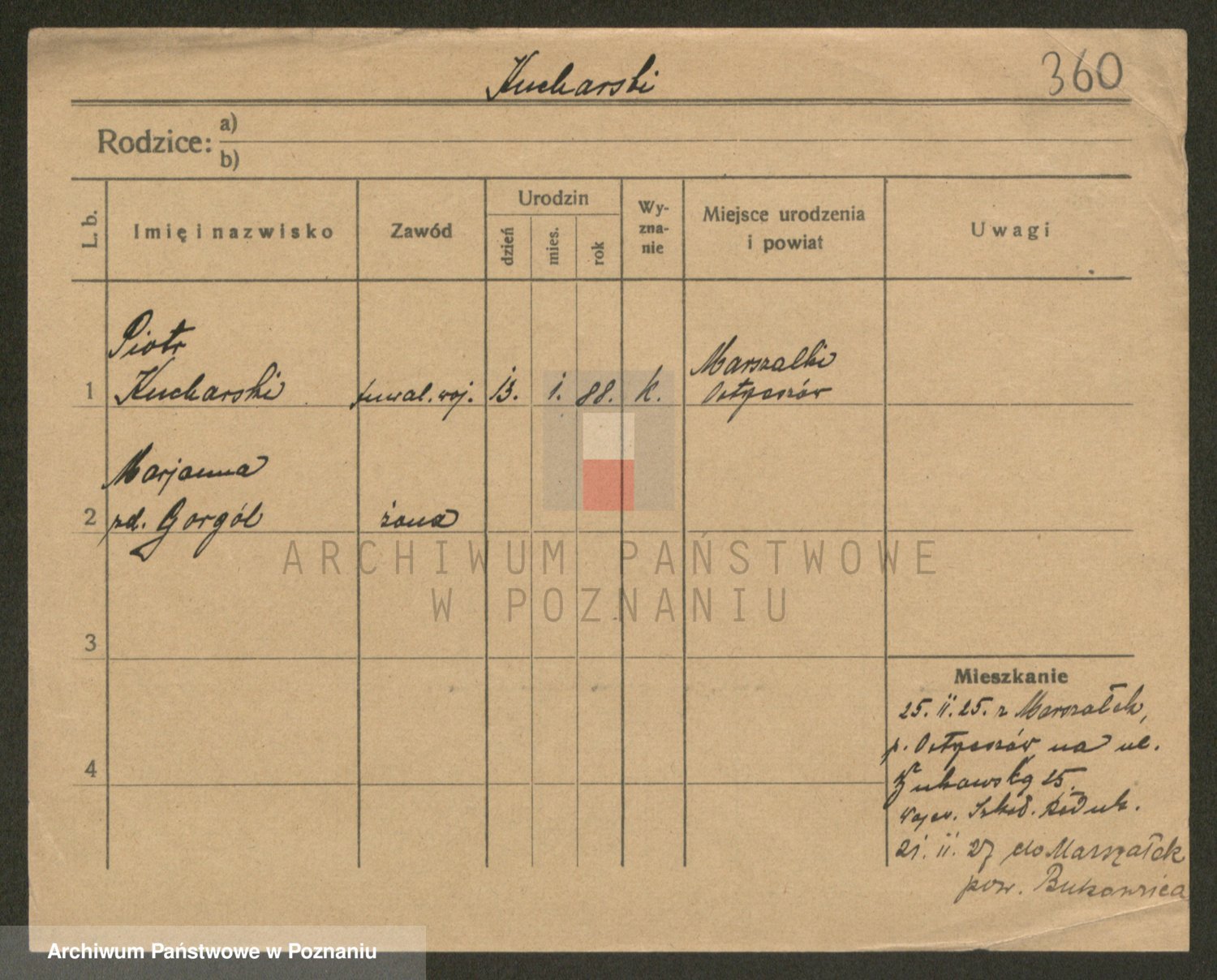 Podgląd karty osobowej dostępny jest po kliknięciu na nazwisko lub ikonkę karty. Można dokonywać powiększenia (ikony na górze) lub przechodzić między kolejnymi skanami (strzałki po bokach).