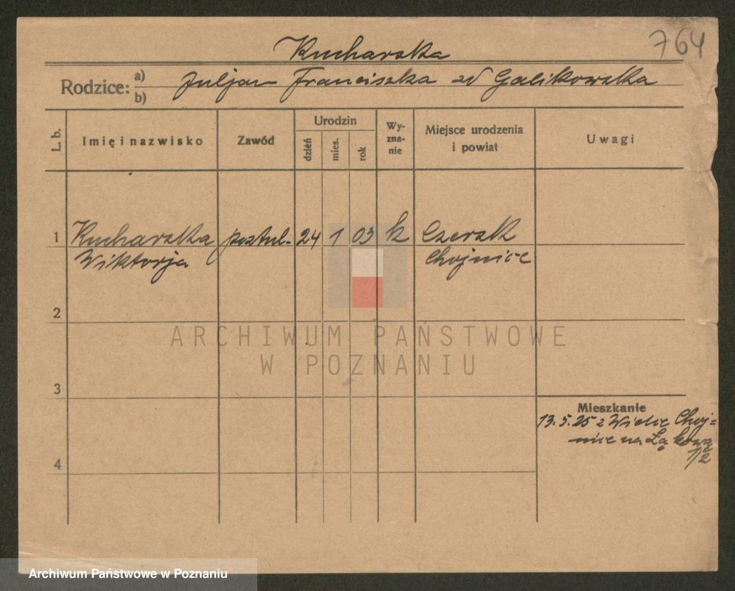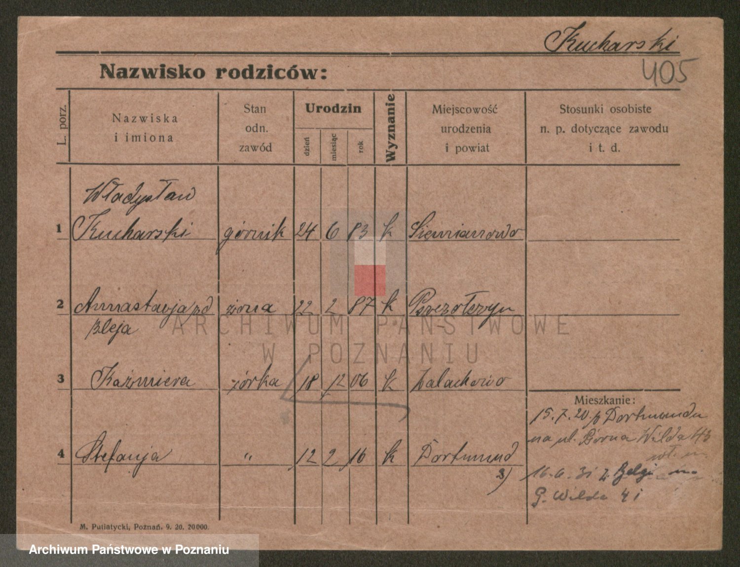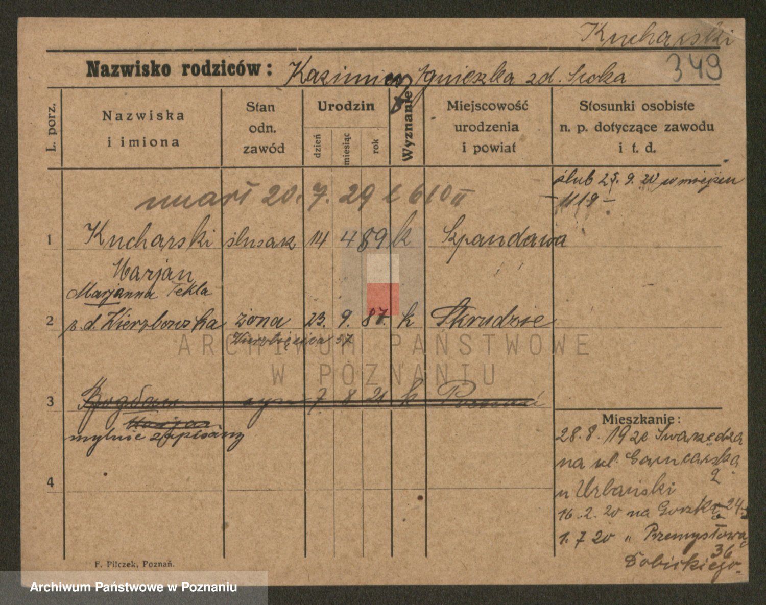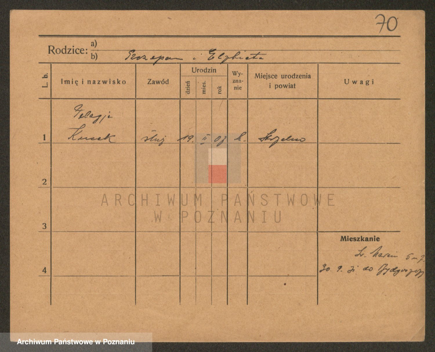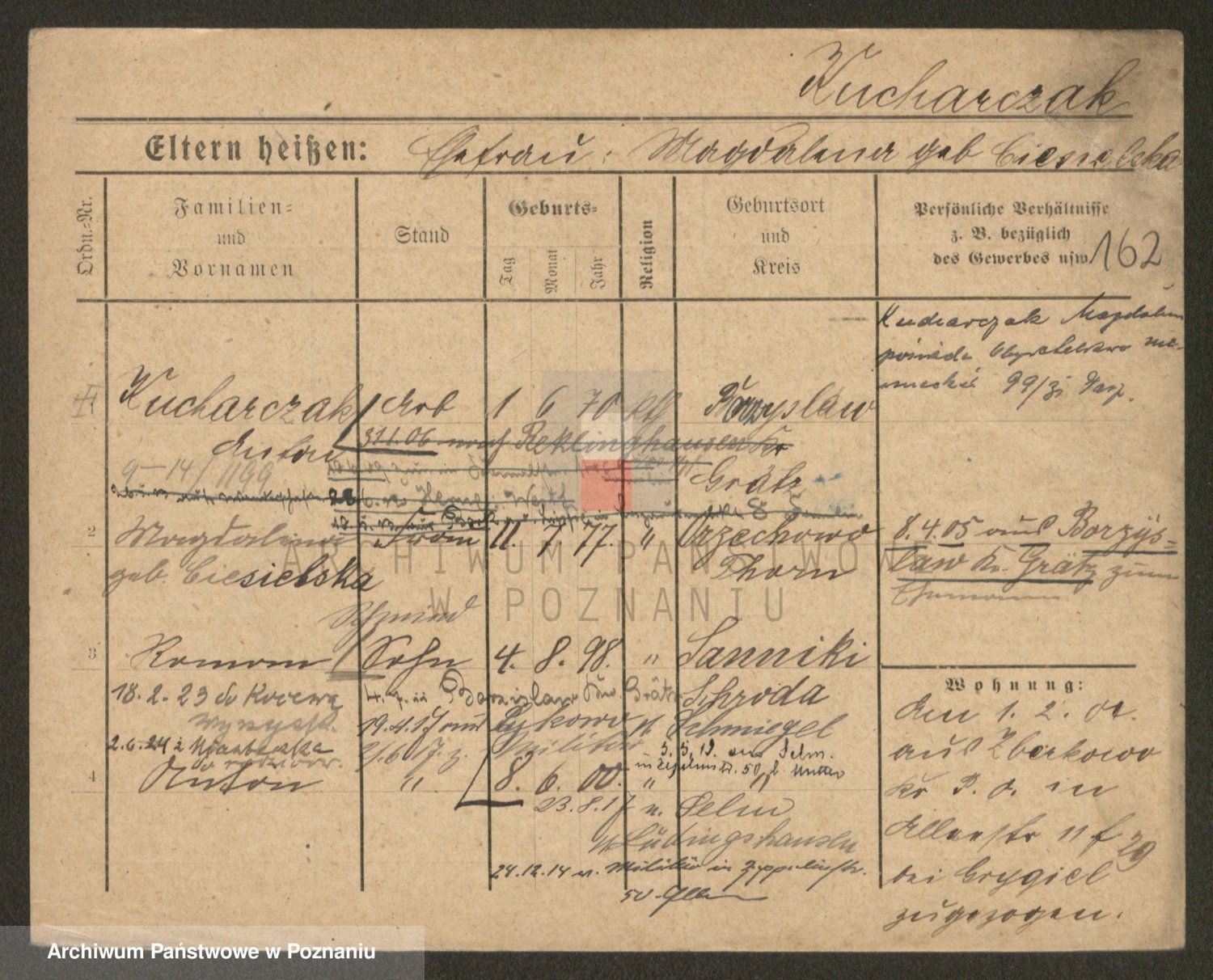 Podgląd karty osobowej dostępny jest po kliknięciu na nazwisko lub ikonkę karty. Można dokonywać powiększenia (ikony na górze) lub przechodzić między kolejnymi skanami (strzałki po bokach).