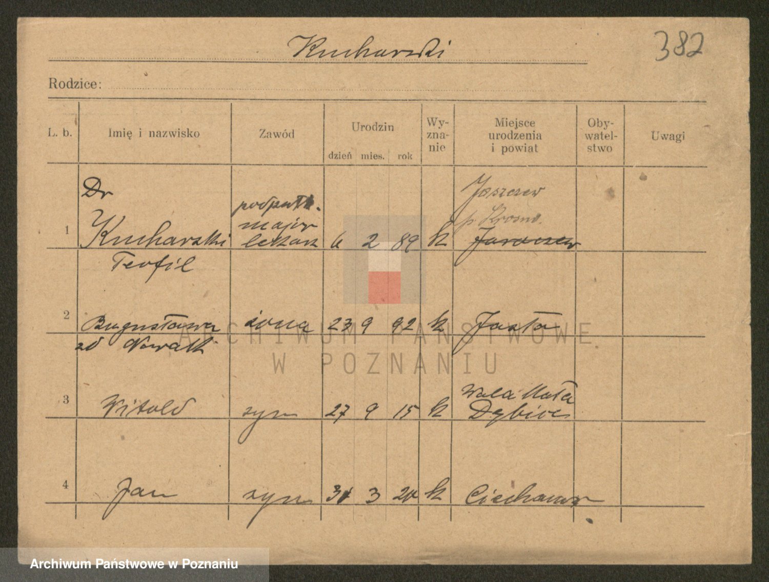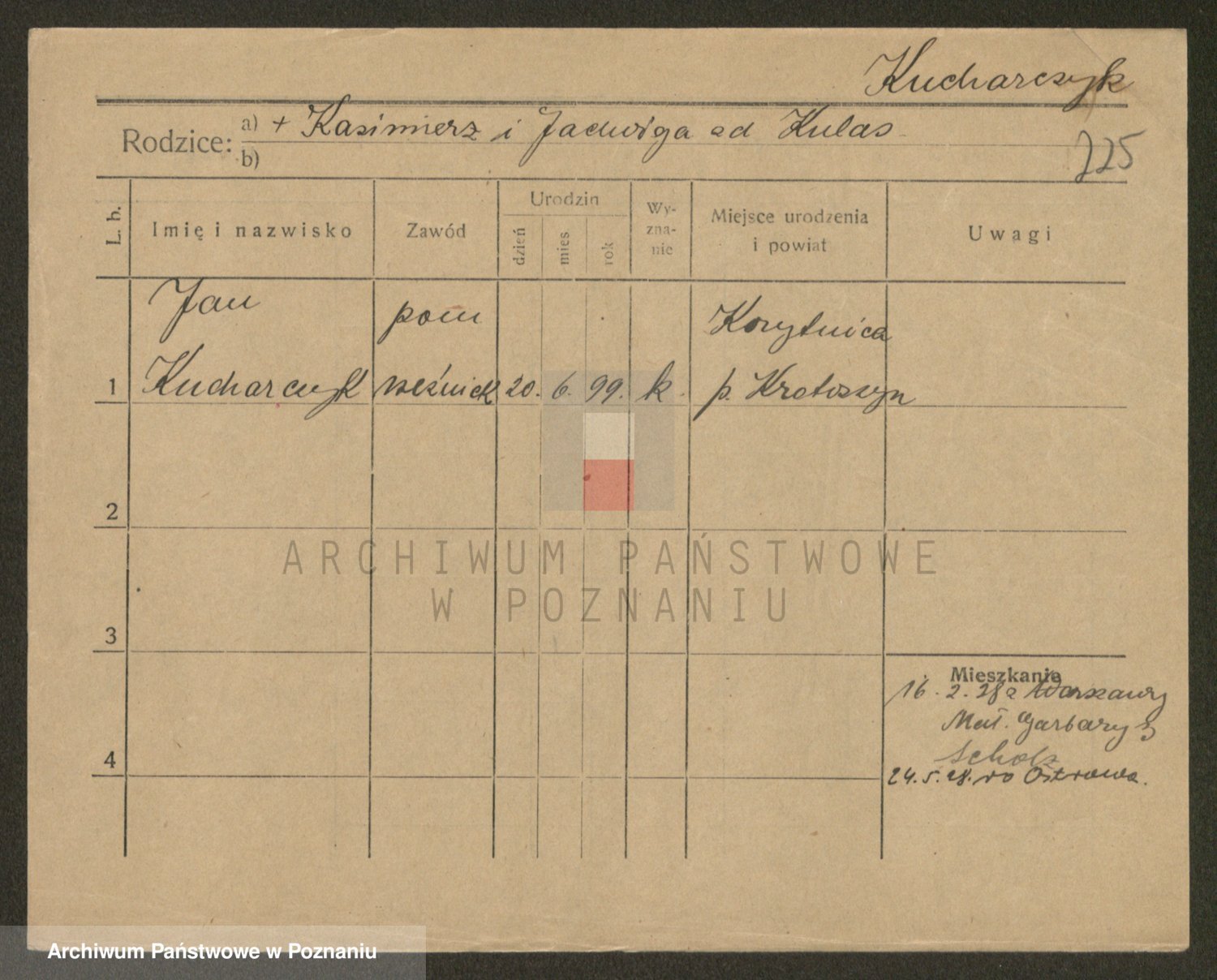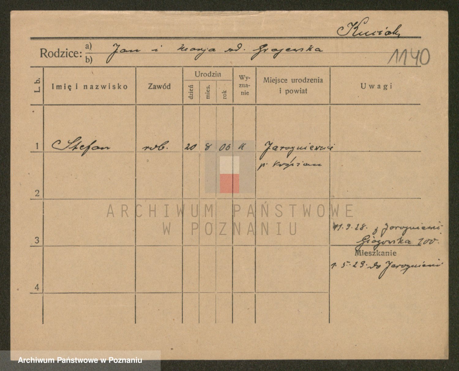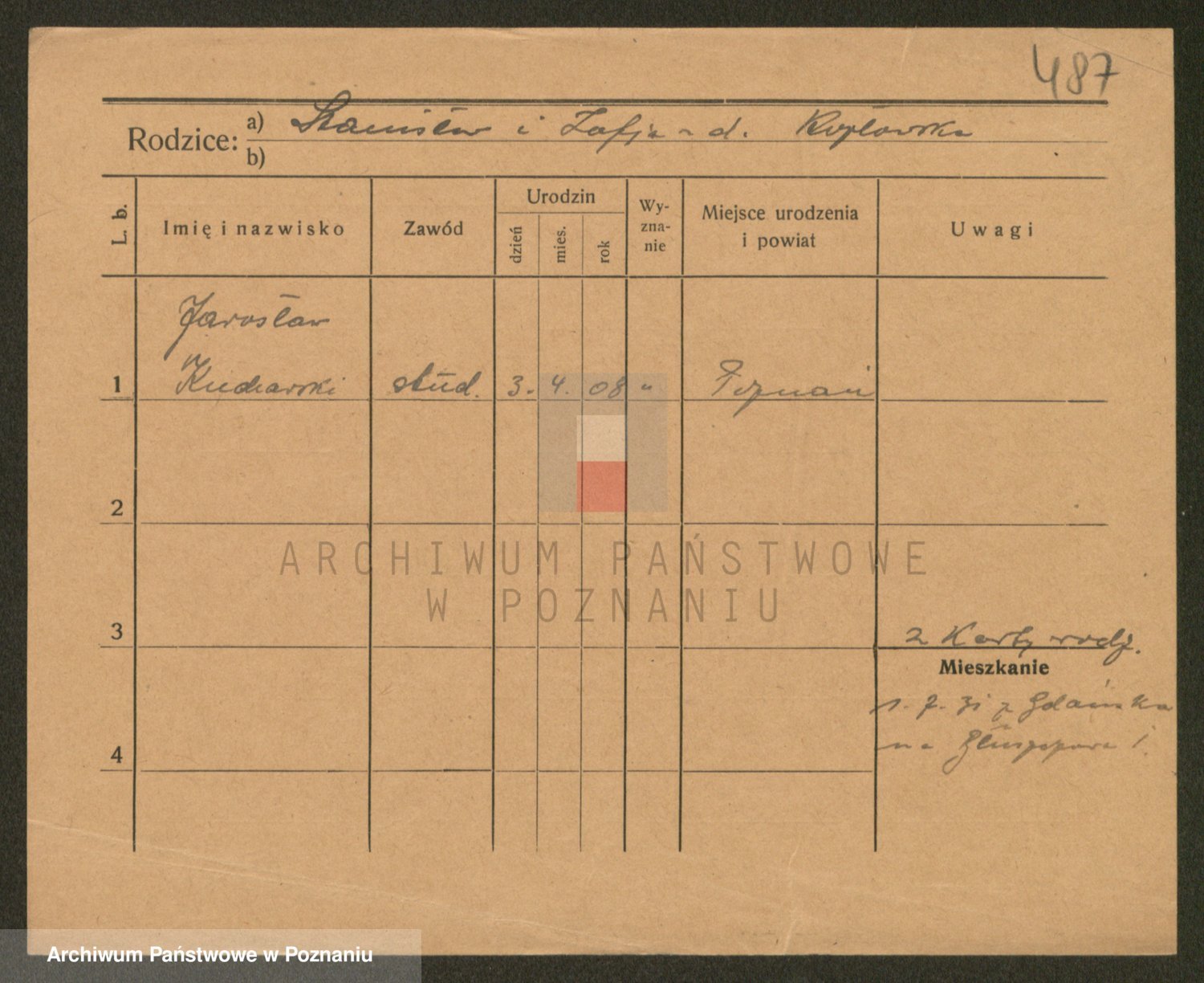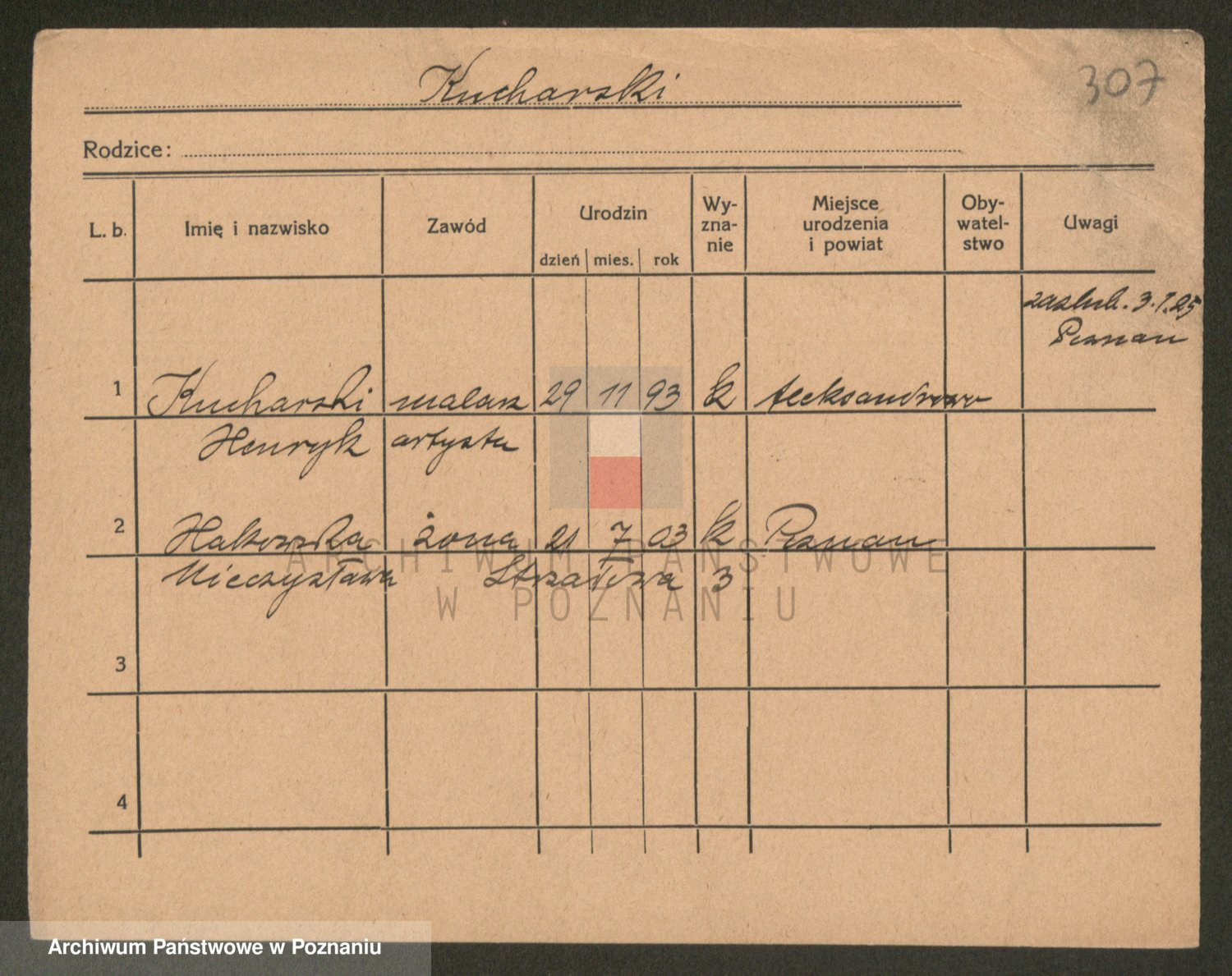 Podgląd karty osobowej dostępny jest po kliknięciu na nazwisko lub ikonkę karty. Można dokonywać powiększenia (ikony na górze) lub przechodzić między kolejnymi skanami (strzałki po bokach).