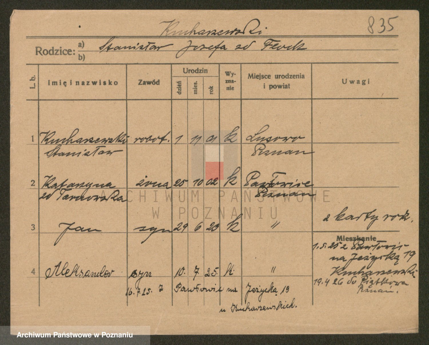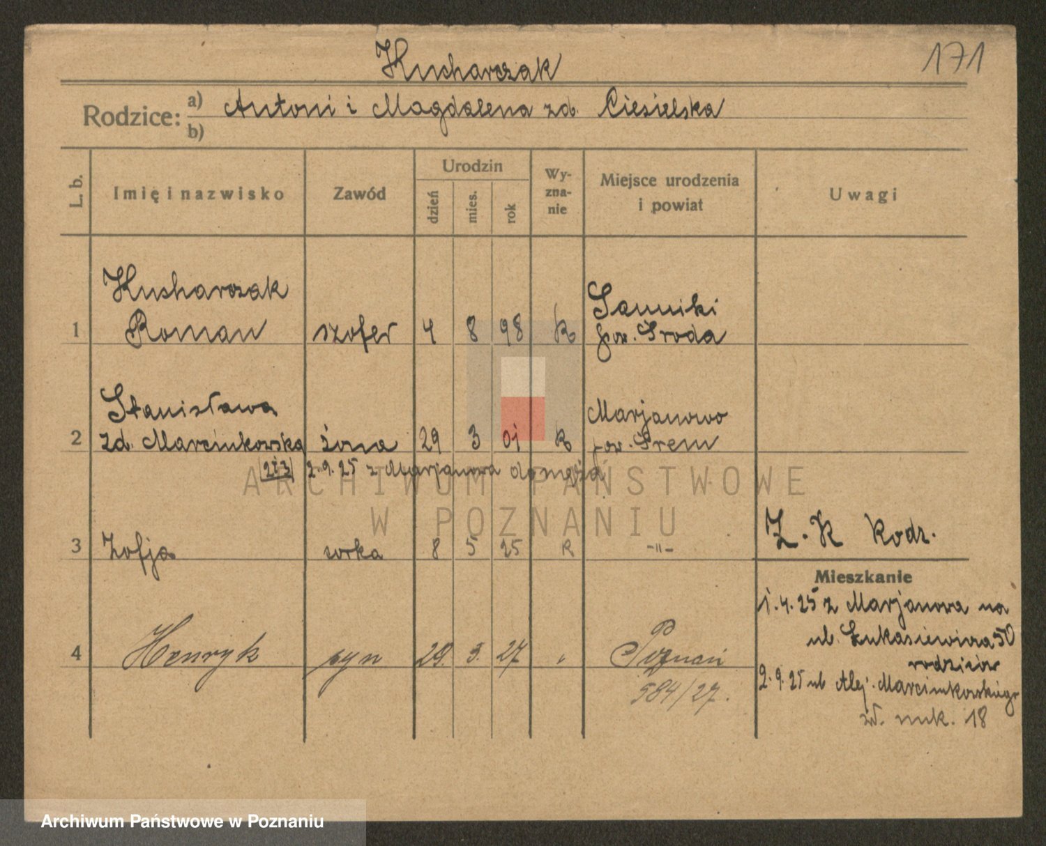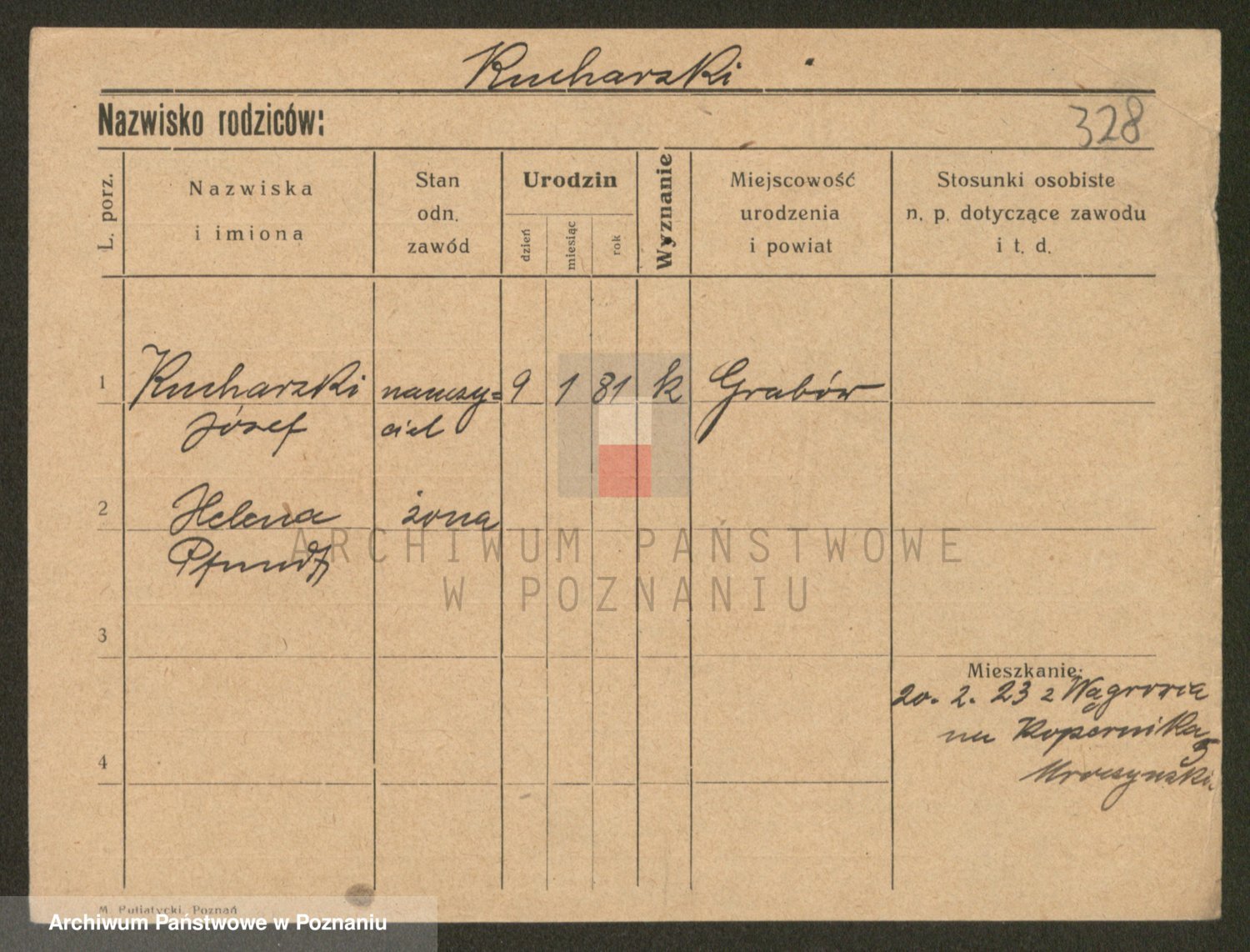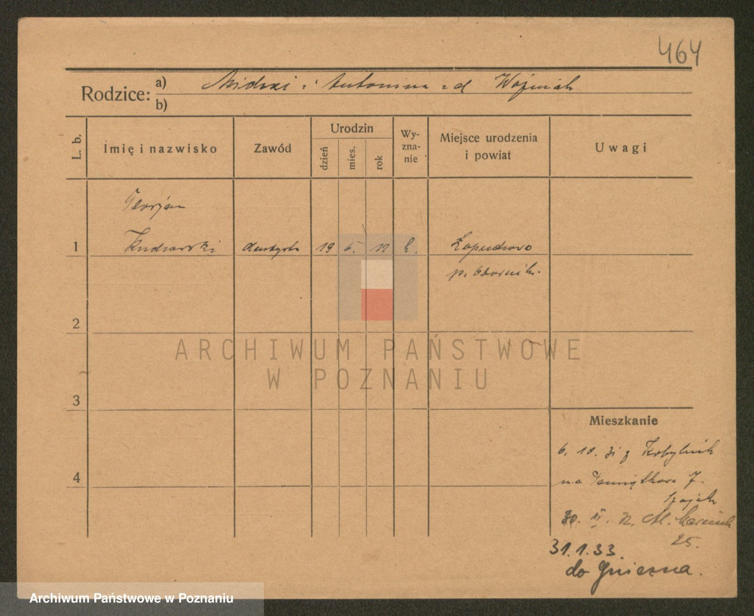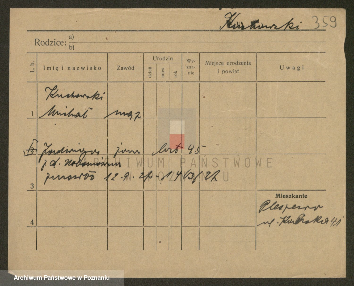 Podgląd karty osobowej dostępny jest po kliknięciu na nazwisko lub ikonkę karty. Można dokonywać powiększenia (ikony na górze) lub przechodzić między kolejnymi skanami (strzałki po bokach).