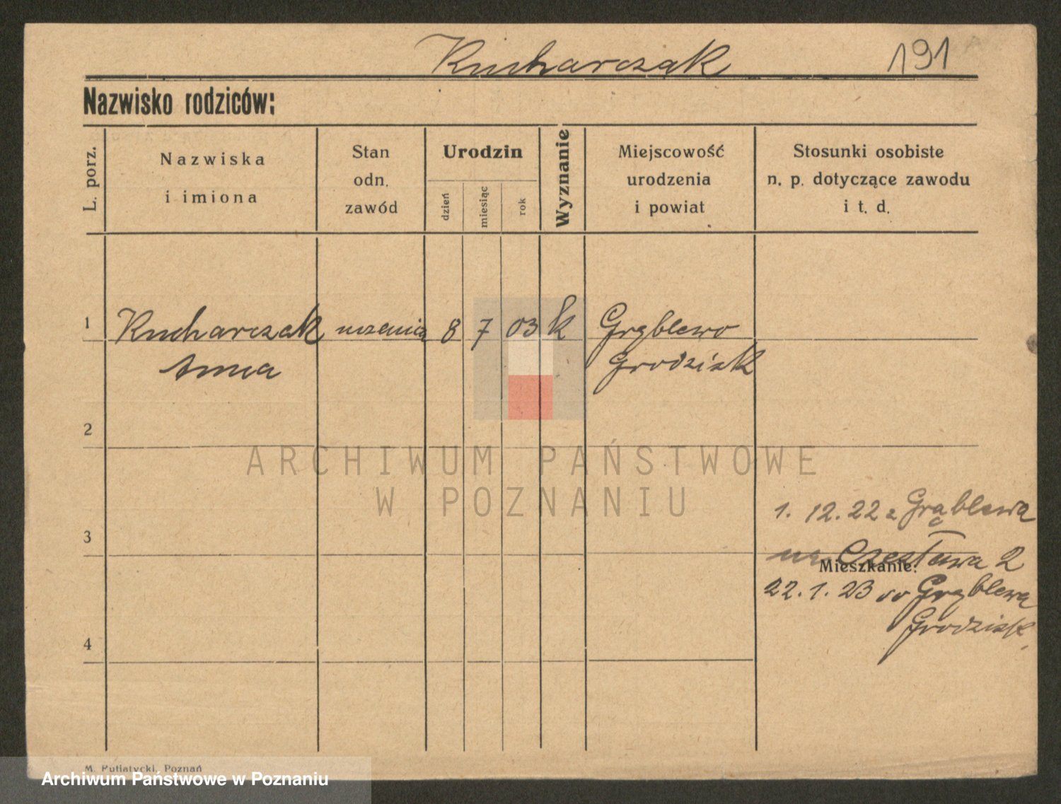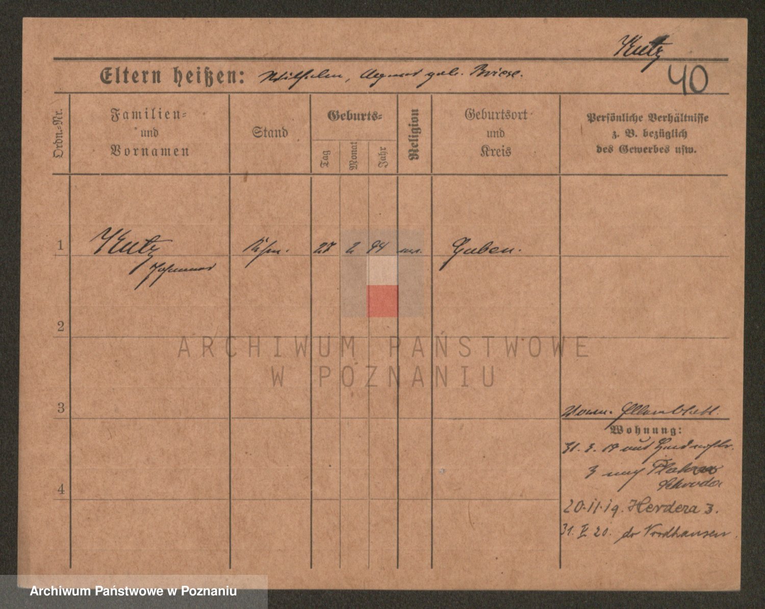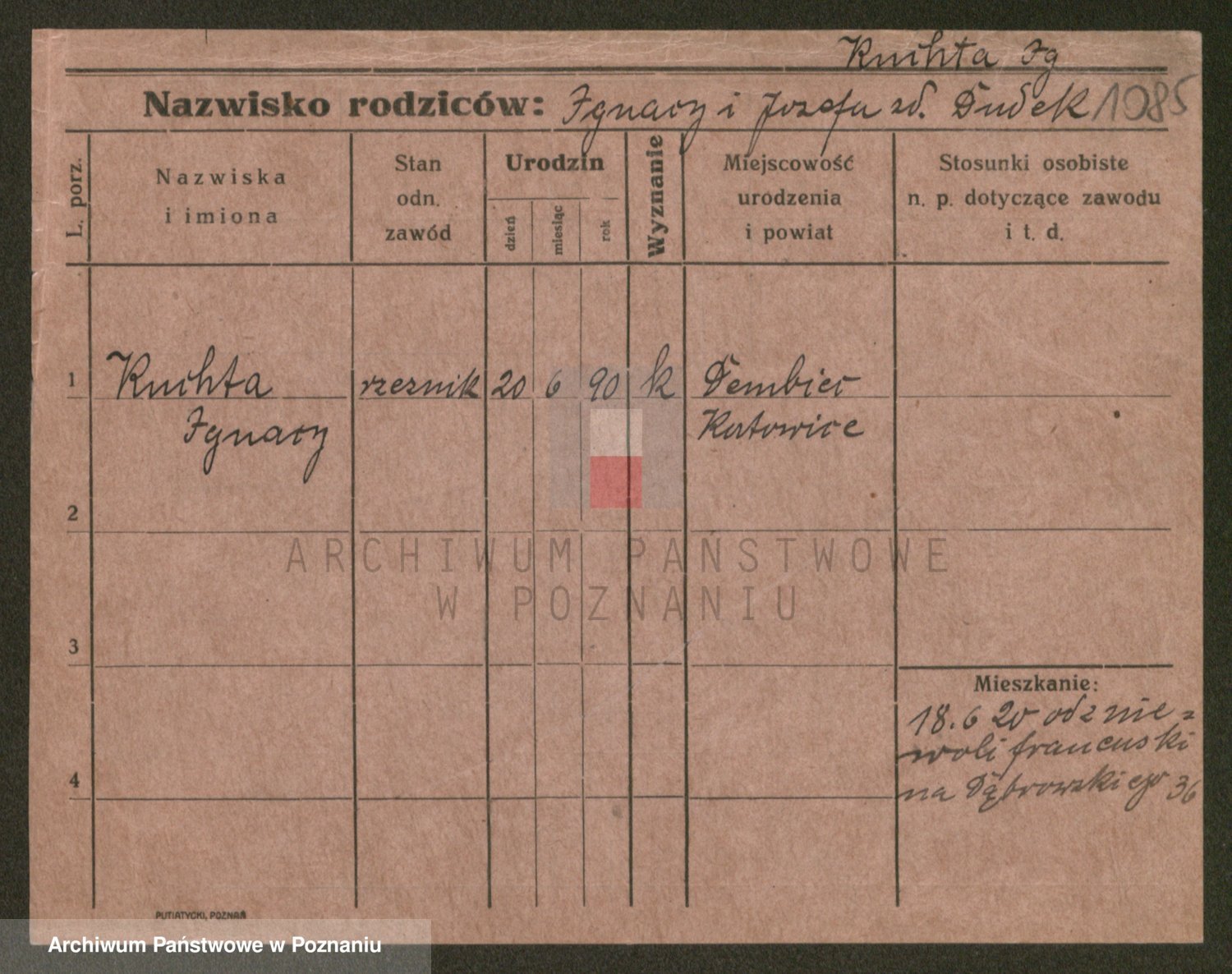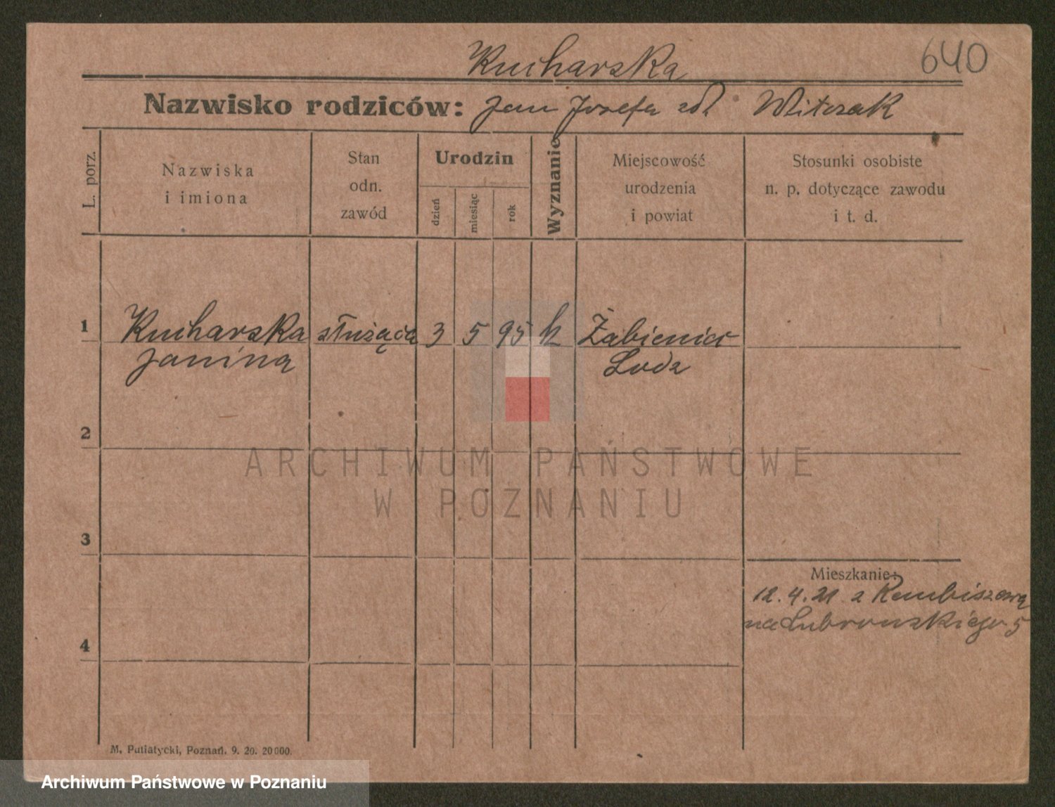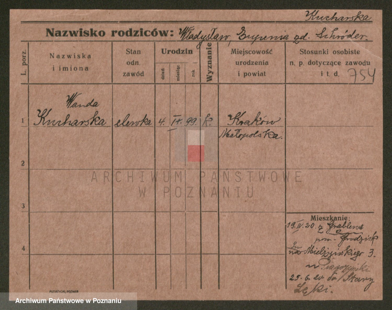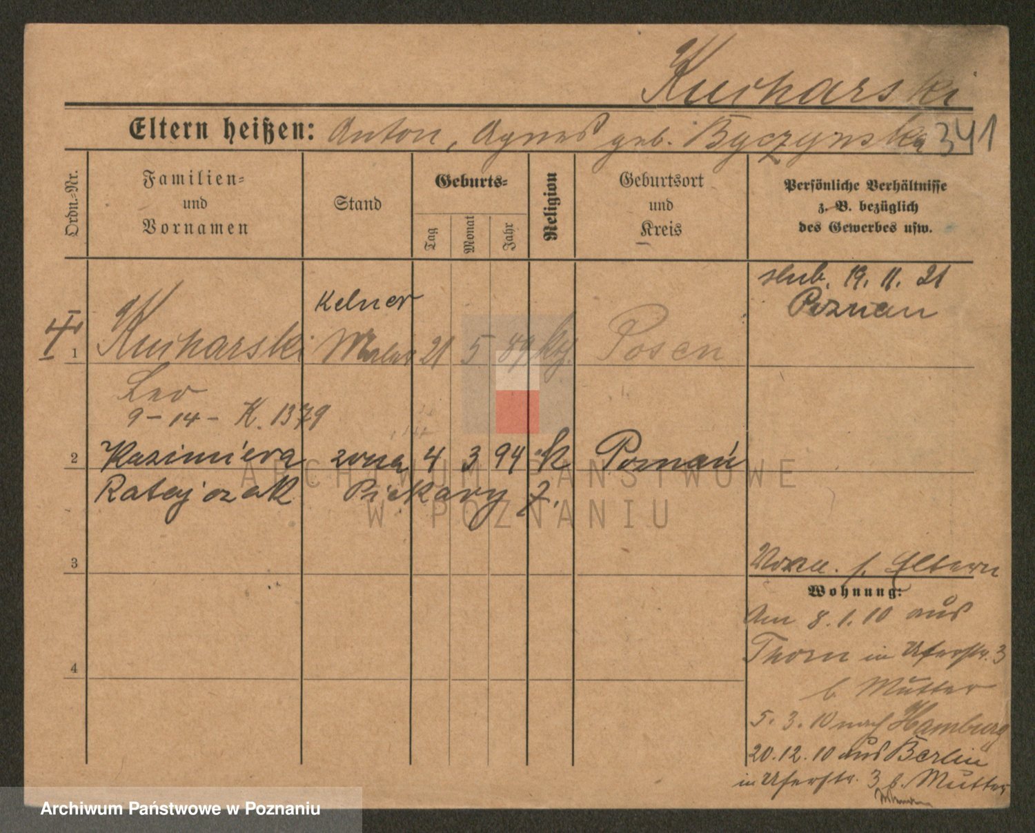Podgląd karty osobowej dostępny jest po kliknięciu na nazwisko lub ikonkę karty. Można dokonywać powiększenia (ikony na górze) lub przechodzić między kolejnymi skanami (strzałki po bokach).